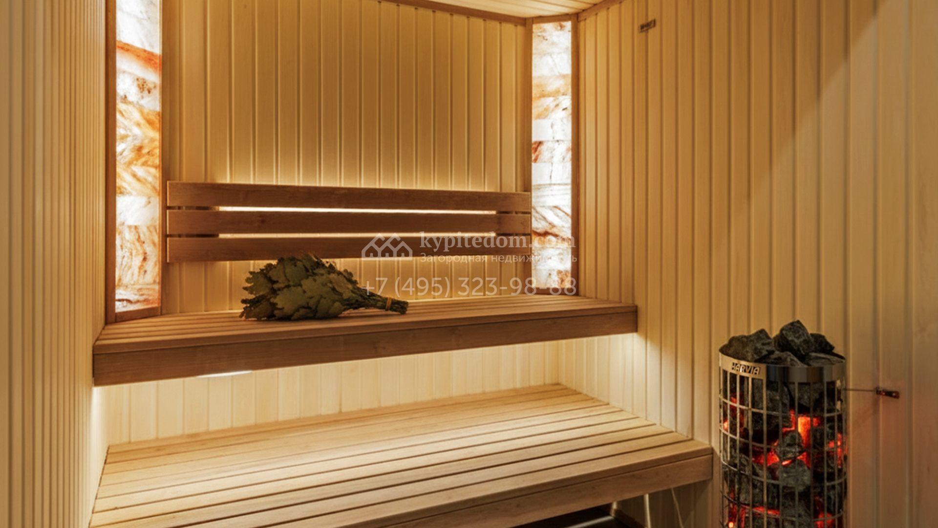 Планировка включает просторную гостиную-столовую площадью более 100 м², кухню, четыре уютные спальни, приватный кабинет и сауну с печью «Харвия» (Harvia). Веранда с зоной барбекю станет любимым местом для тёплых ужинов в кругу близких. Кроме того, на территории построили дом для персонала площадью 150 м², где разместили квартиру с кухней, спальней и мастерской, а также гараж на два автомобиля. Рядом предусмотрена открытая парковка на 9 машин. Участок благоустроен — здесь засеян аккуратный газон, растут высокие сосны, высажены декоративные кустарники и организовано уединённое патио с костровищем.