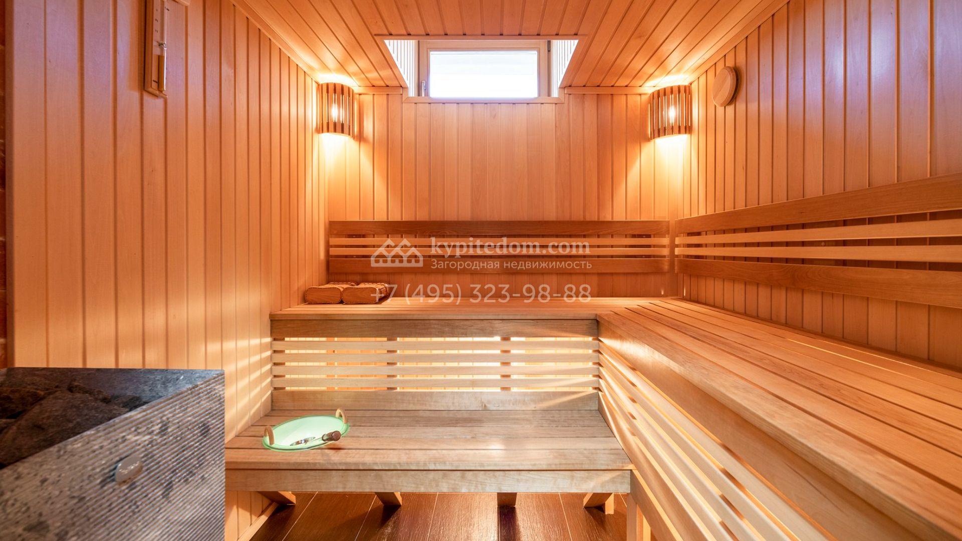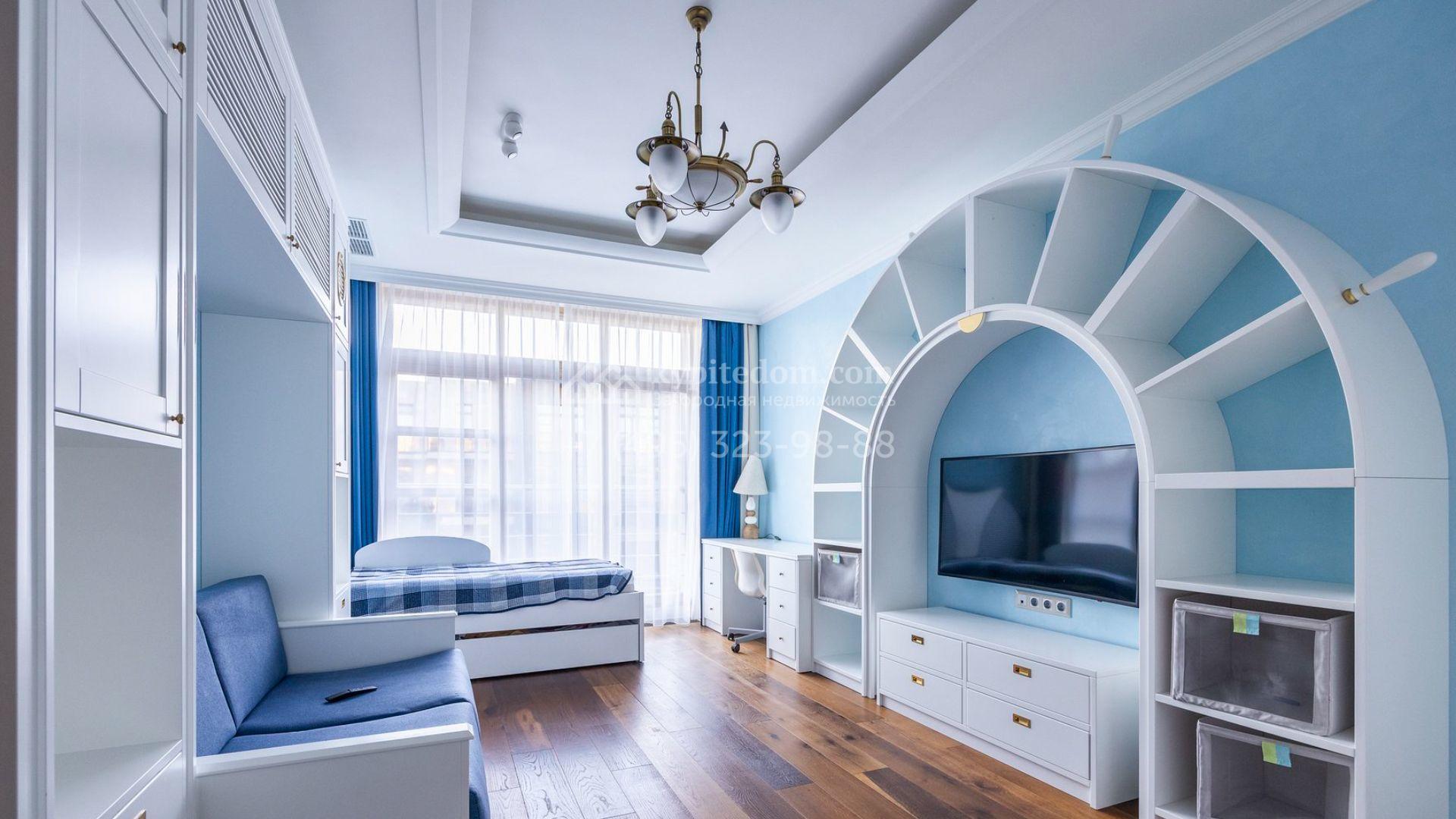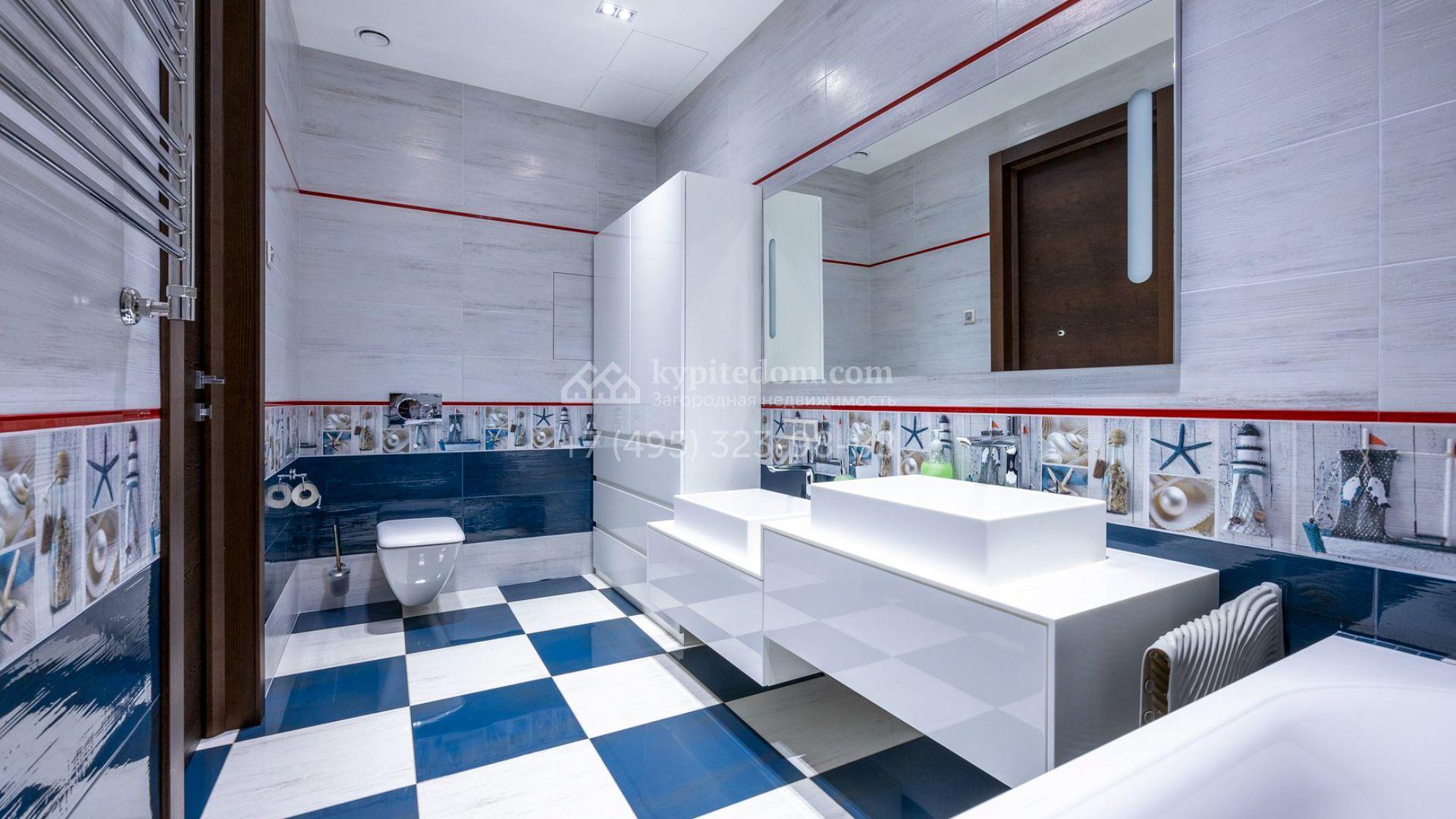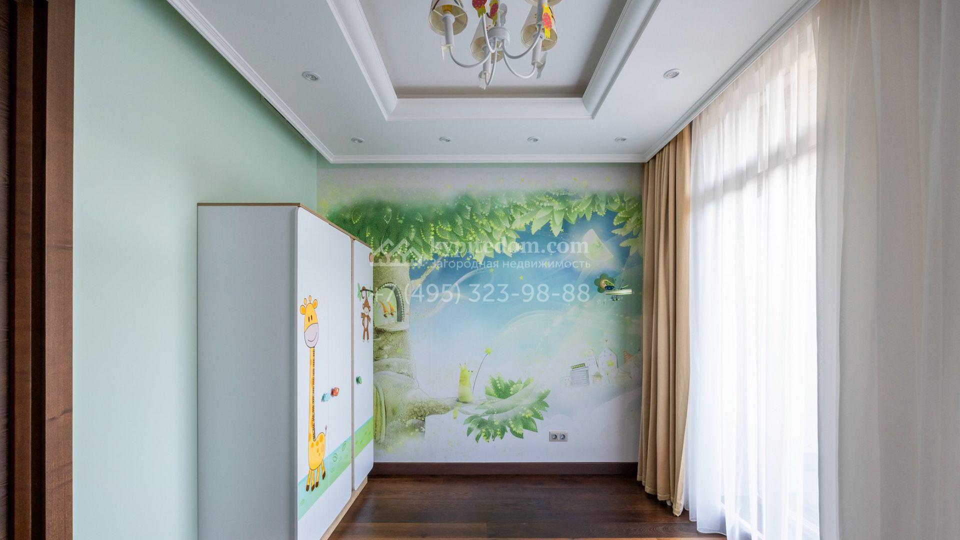 Таунхаус площадью 310 м² расположен на полевом участке 2,7 сотки. Фасад в райтовском стиле облицован травертином, лиственницей и мрамором. В отделке современного интерьера использованы дорогостоящие материалы, установлена мебель и система «умный дом». Планировка дома включает 5 спален, просторную кухню-гостиную с камином, столовую с выходом на участок и кабинет. В контуре резиденции расположен гараж. На участке выполнен ландшафтный дизайн, по периметру высажены туи и вымощены дорожки.