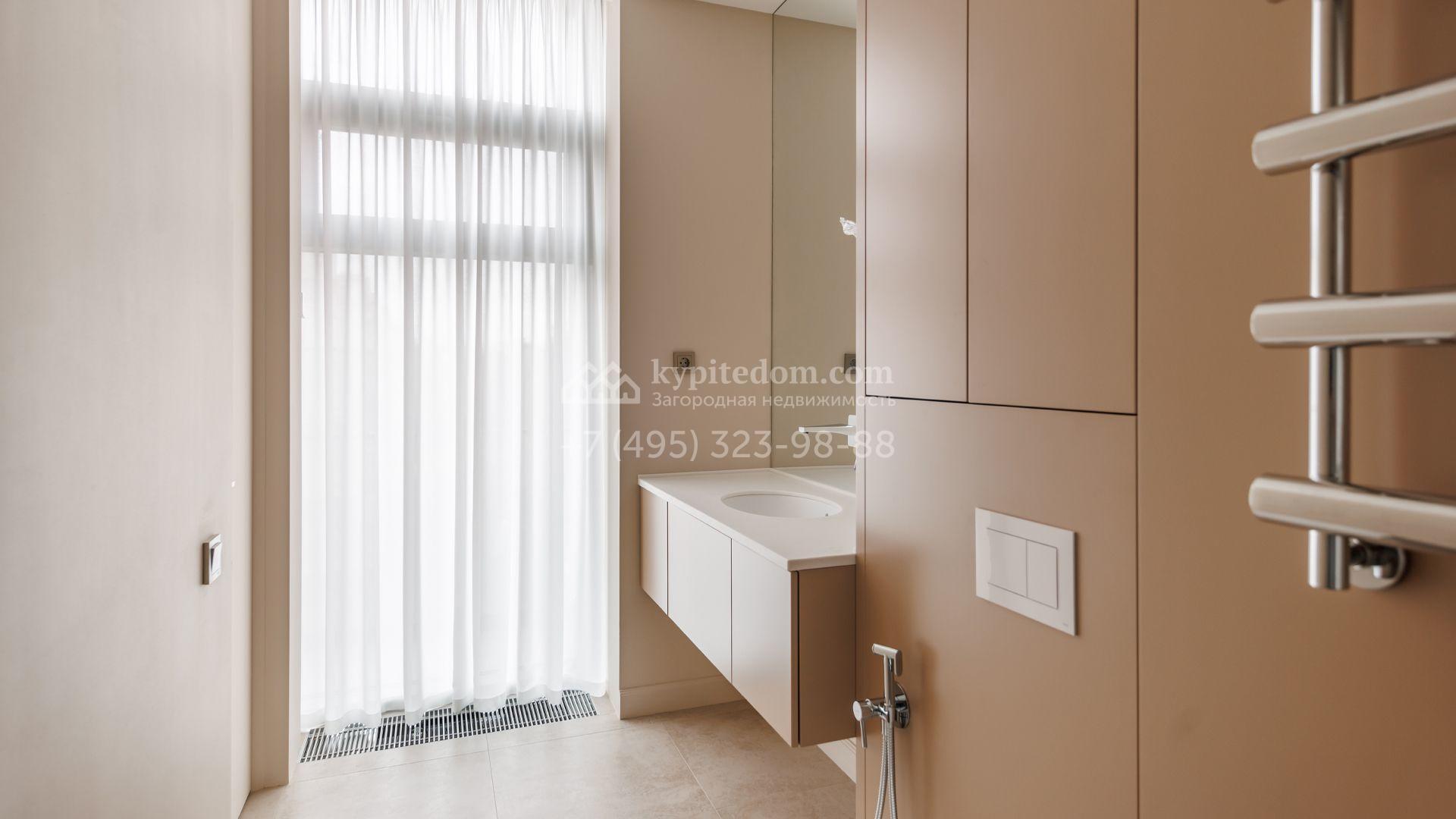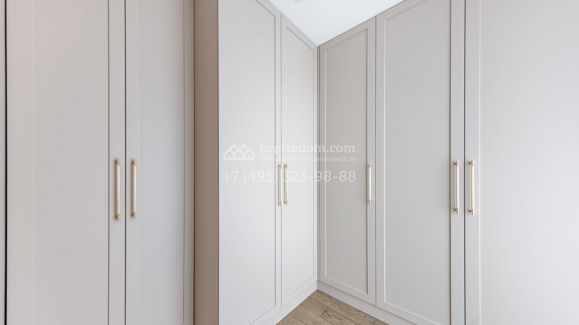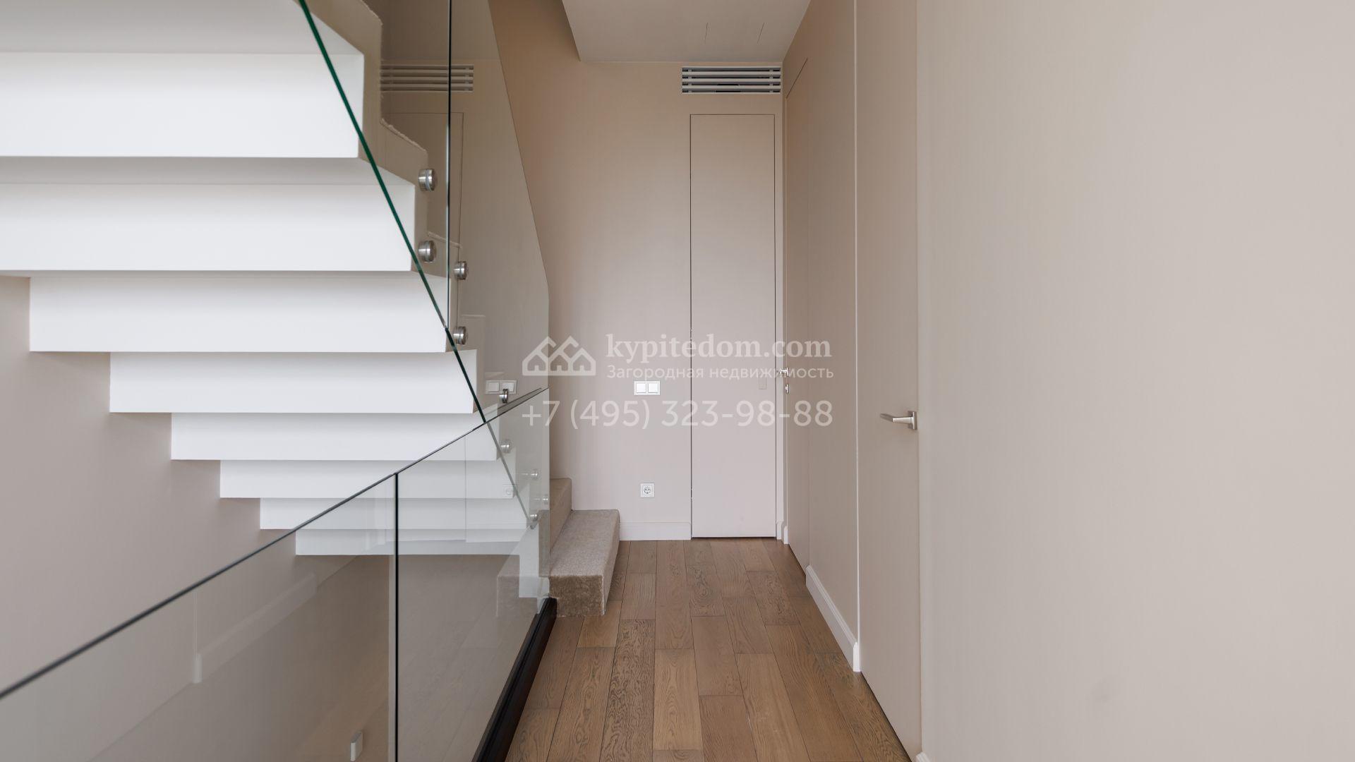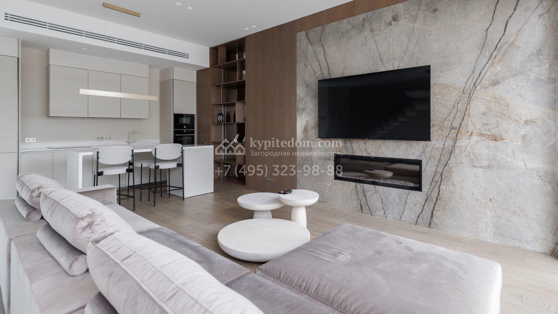 Таунхаус площадью 240 м² расположен в середине секции на участке 3,5 сотки. Современный фасад здания выполнен из австрийских панелей, имитирующих дерево, и изготовлен из высокопрочного пластика. Внутреннее оформление демонстрирует эстетику минимализма и выдержано в светлых нейтральных оттенках. Мебель в серо-кремовых тонах от итальянских брендов органично сочетается с натуральными текстурами дерева и мрамора. Широкоформатные панорамные окна и тщательно продуманные сценарии освещения завершают композицию.