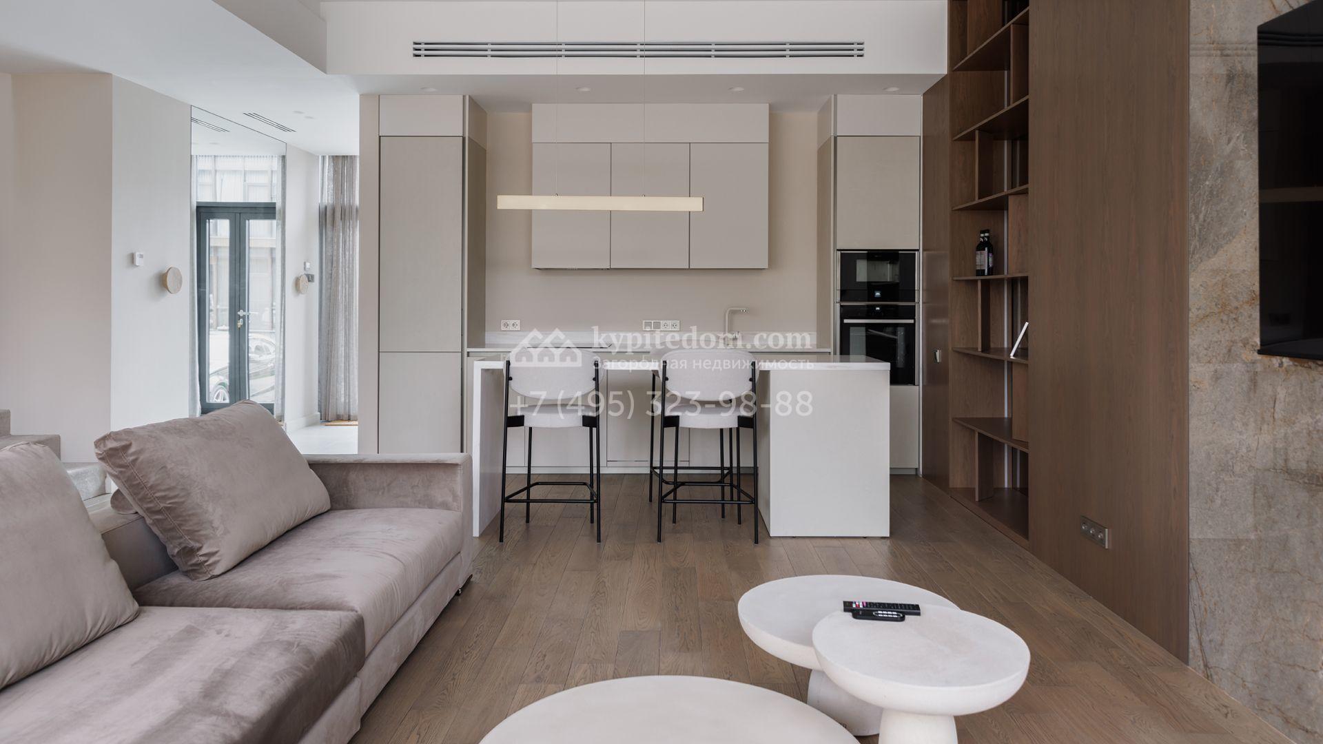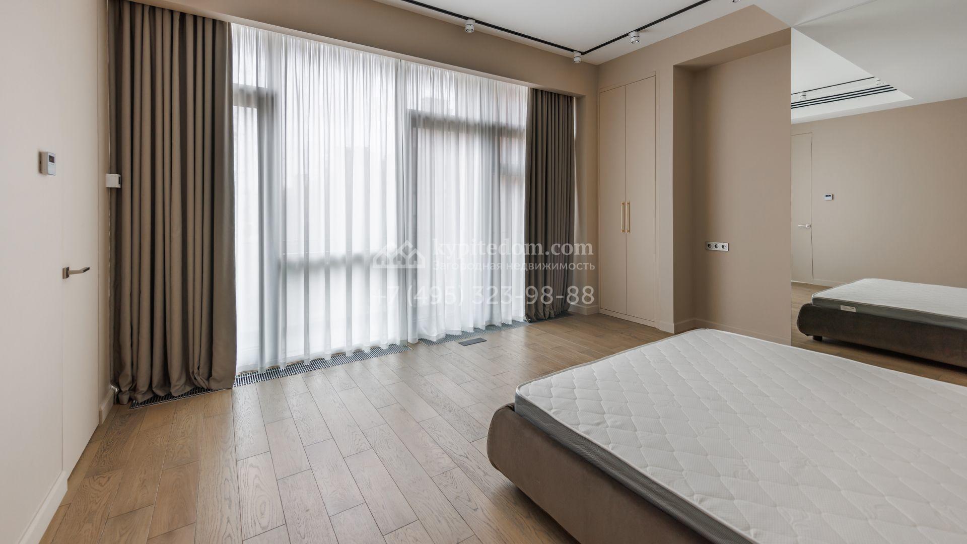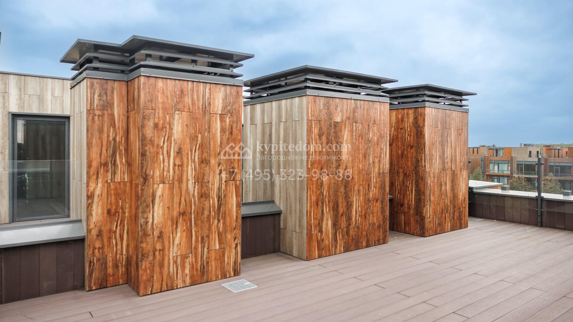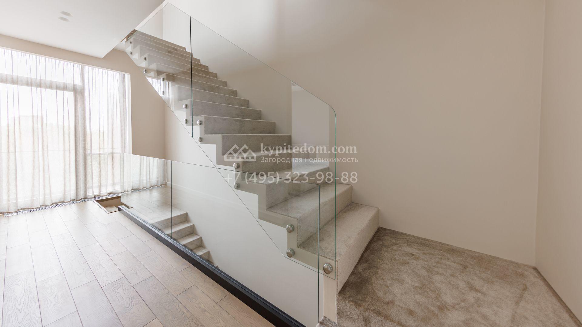 Таунхаус площадью 240 м² расположен в середине секции на участке 3,5 сотки. Современный фасад здания выполнен из австрийских панелей, имитирующих дерево, и изготовлен из высокопрочного пластика. Внутреннее оформление демонстрирует эстетику минимализма и выдержано в светлых нейтральных оттенках. Мебель в серо-кремовых тонах от итальянских брендов органично сочетается с натуральными текстурами дерева и мрамора. Широкоформатные панорамные окна и тщательно продуманные сценарии освещения завершают композицию.