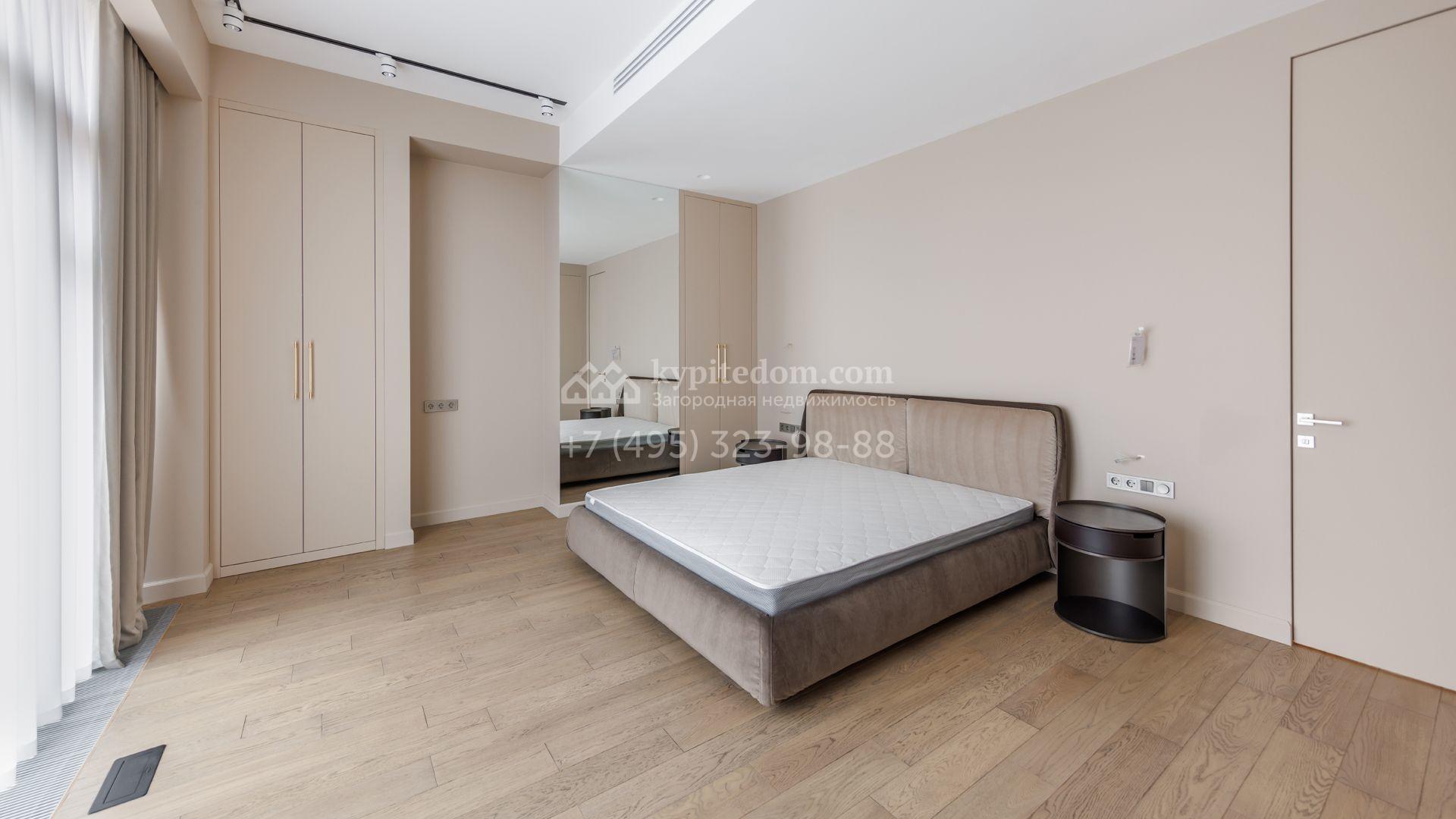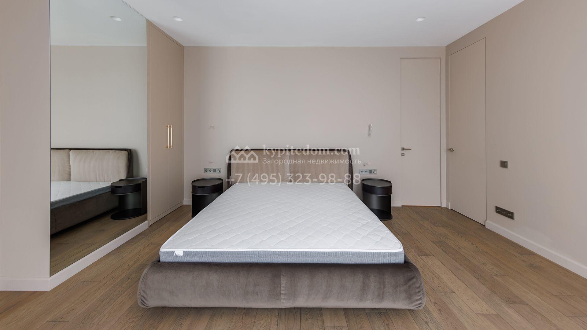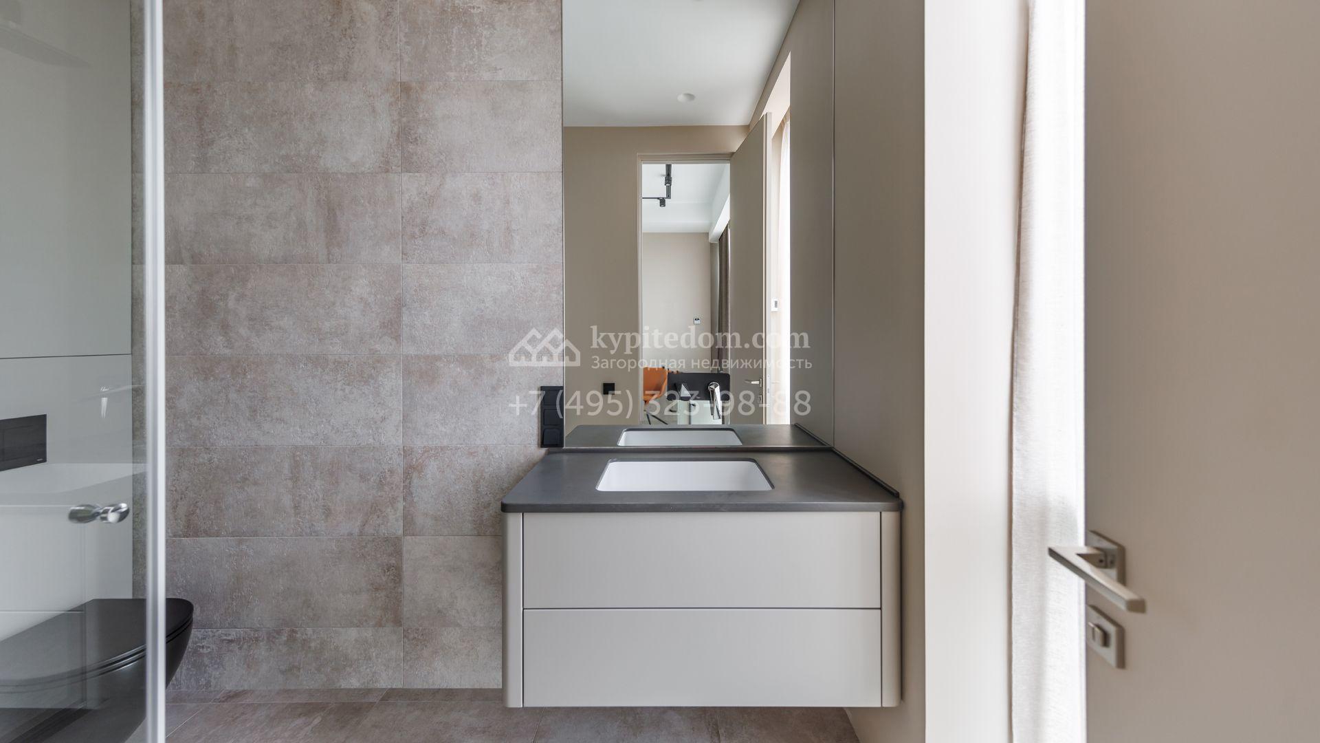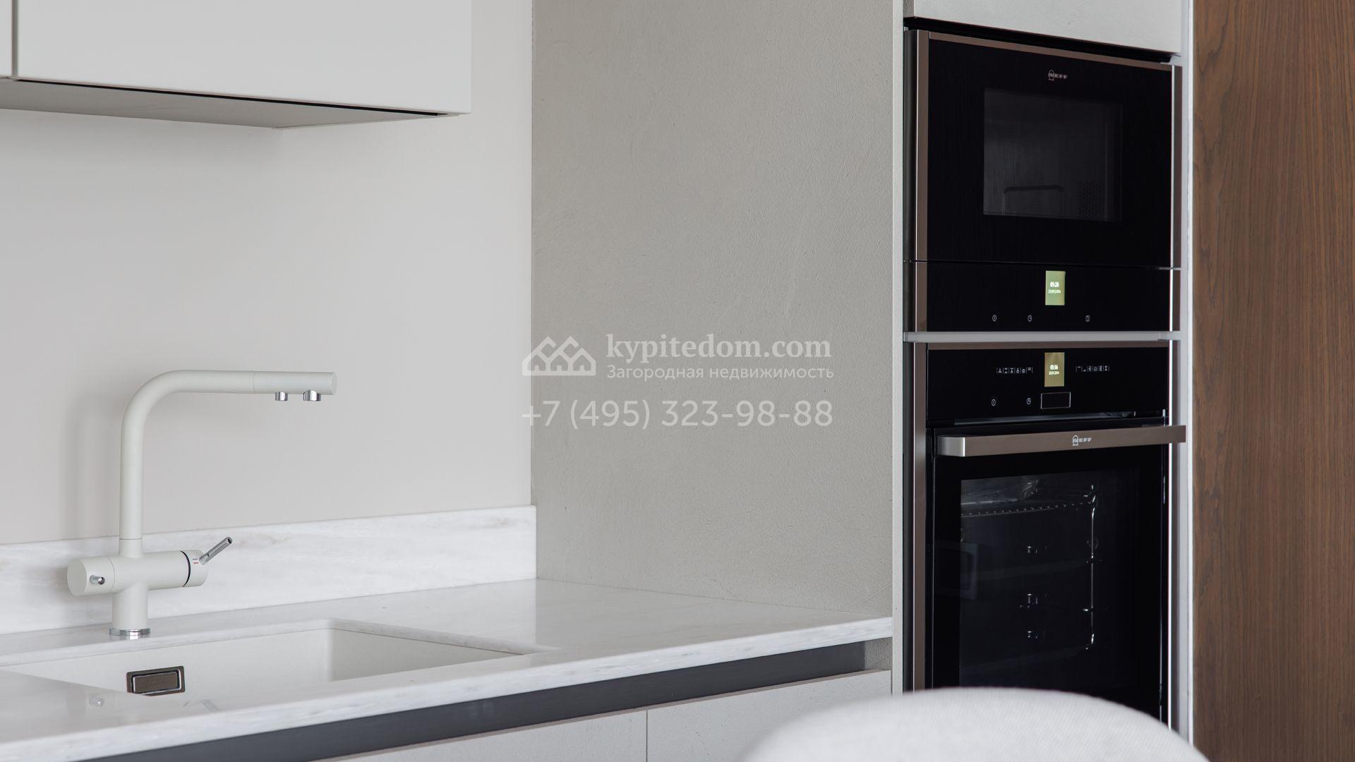 Таунхаус оборудован всей необходимой техникой и сантехникой от известных европейских марок. Также в интерьере присутствуют дизайнерские люстры, трековые и настенные светильники от итальянских брендов. Планировка включает 3 спальни, кабинет и кухню-гостиную с камином и террасой. Вокруг участка высажены туи, создавая уютное и уединенное место для отдыха с зоной для барбекю.