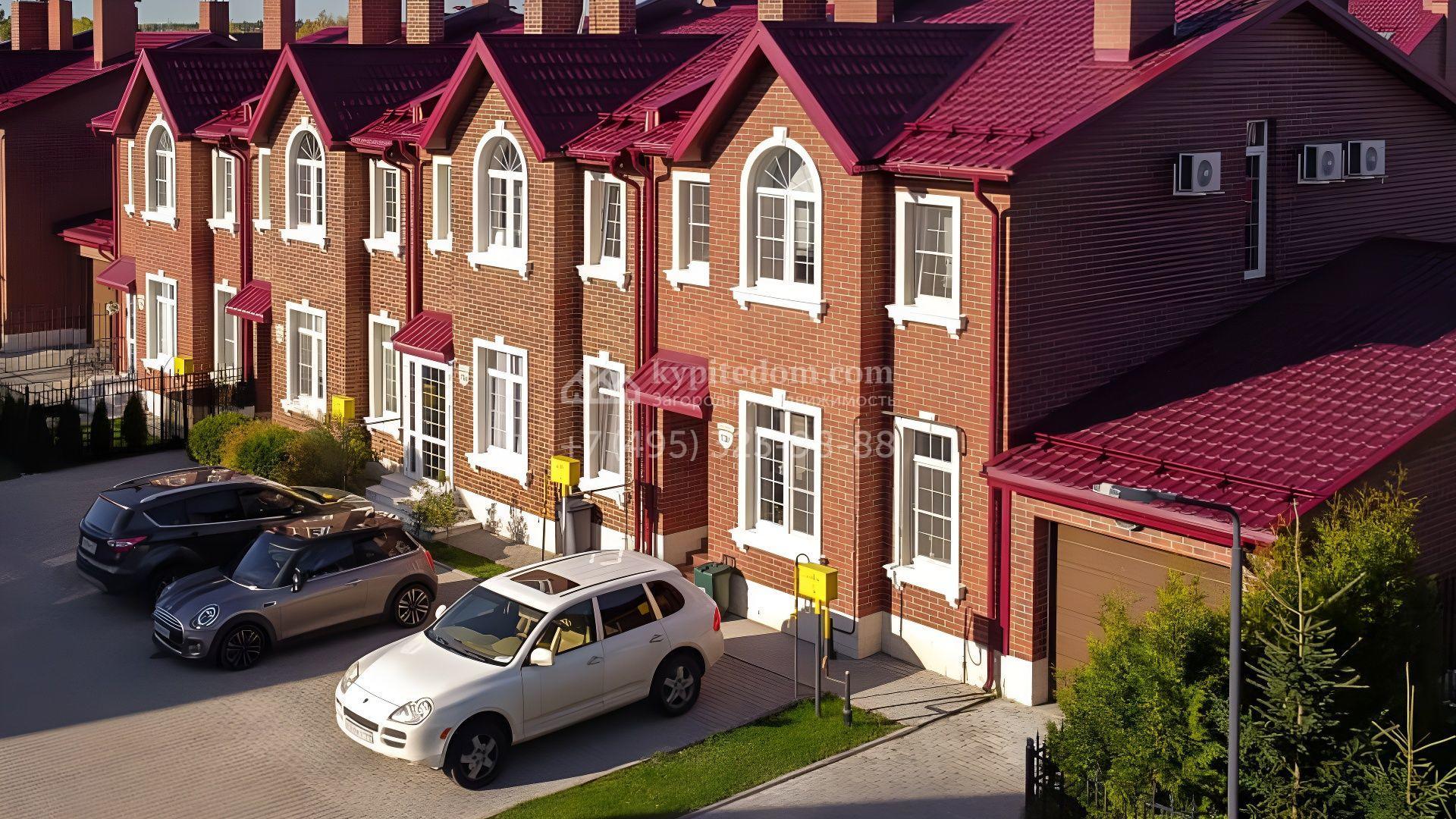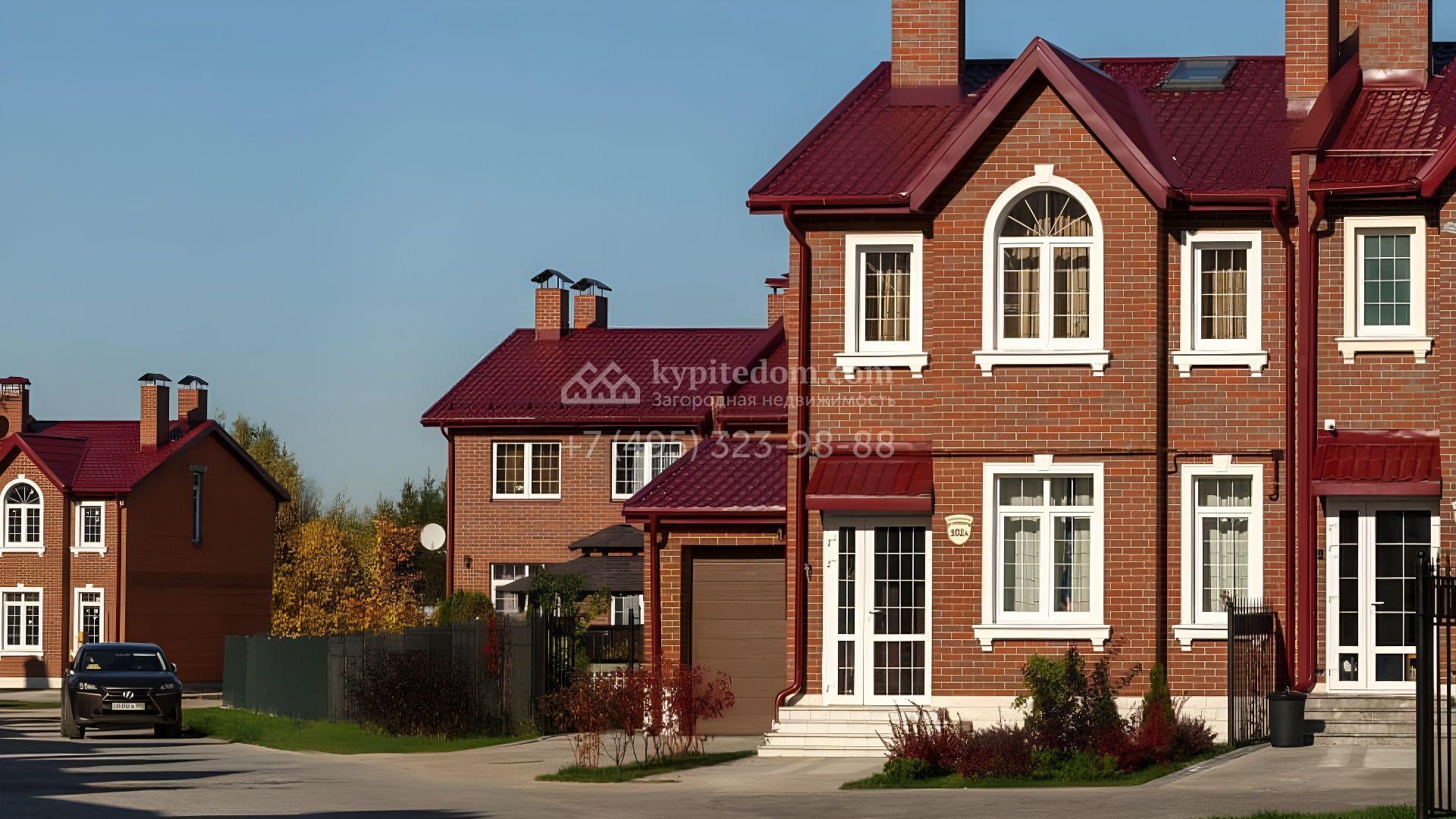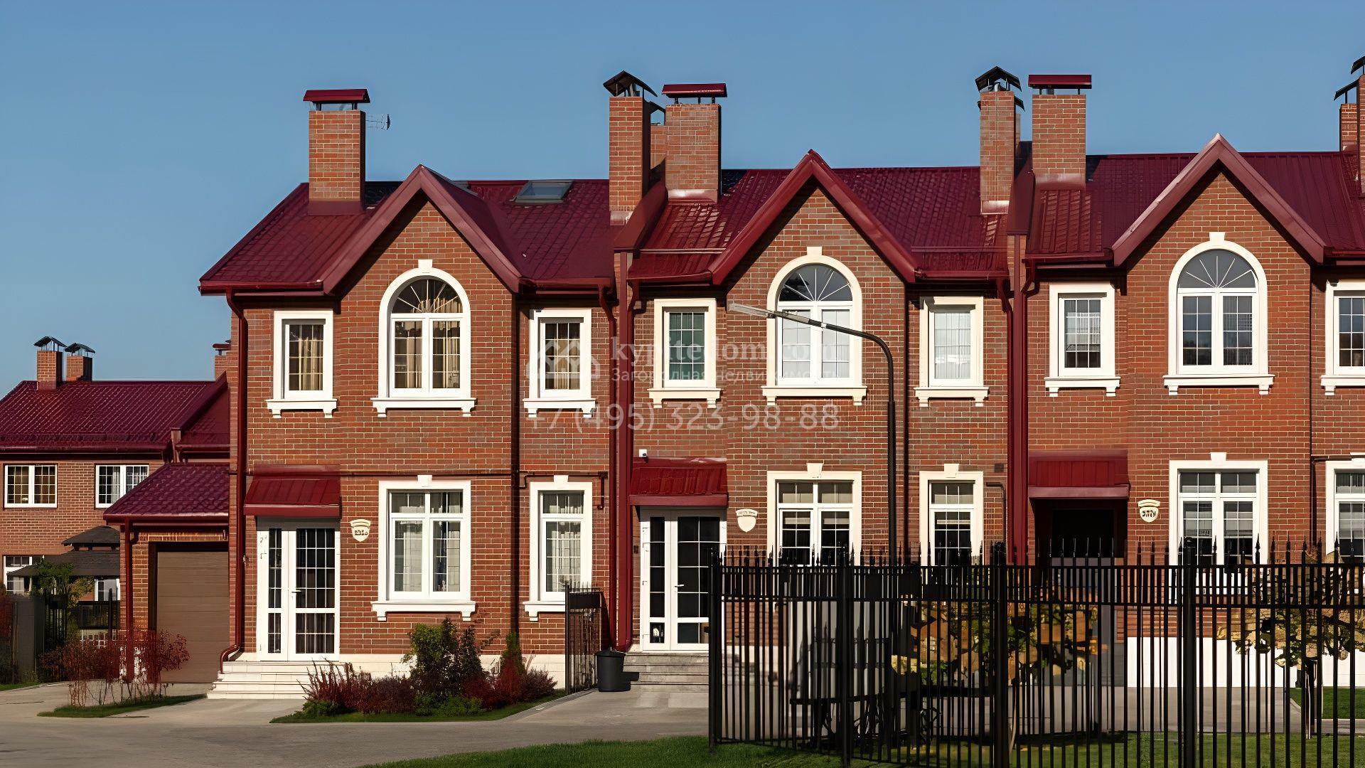 Уютный таунхаус в английском стиле площадью 115 м² на полевом участке 2,3 сотки. Фасад здания облицован красно-коричневым клинкерным кирпичом. Свободная планировка позволяет организовать пространство по собственному усмотрению, есть возможность выбрать готовый дизайн-проект с учетом особенностей планировки. Проектом предусмотрены 3 спальни, просторная гостиная, кухня и 2 санузла. На ухоженном участке можно обустроить уютные места для отдыха с барбекю-зоной.