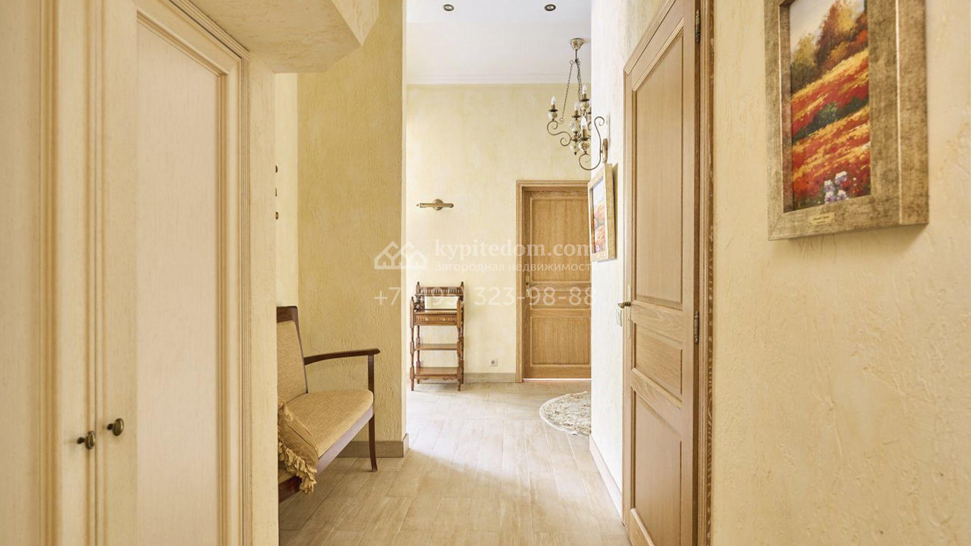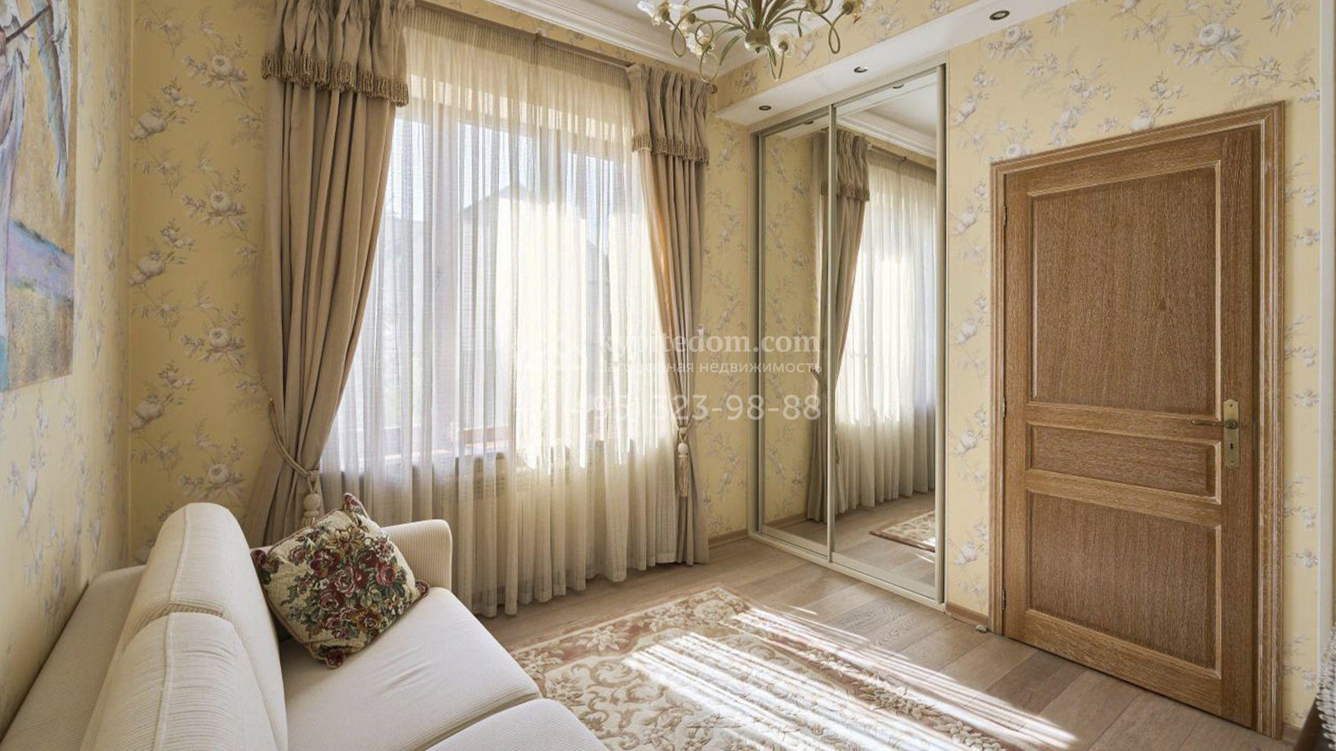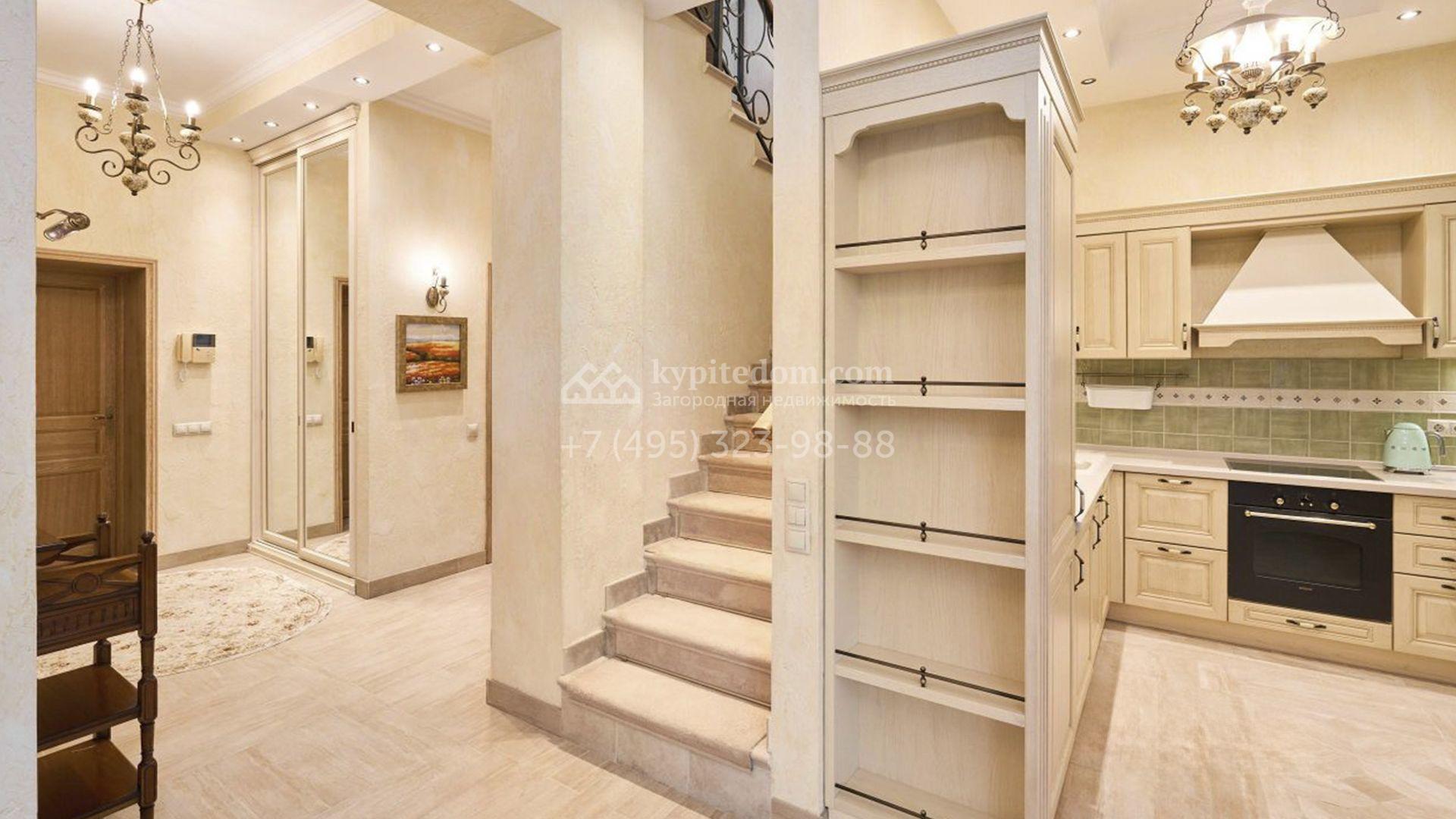 Загородный таунхаус площадью 250 м² расположен на живописном лесном участке 5 соток в тихой части поселка. Фасад выполнен в европейском стиле, облицован кремовой штукатуркой и украшен плиткой с фактурой камня. Интерьеры выдержаны в сдержанных, преимущественно светлых тонах и дополнены элегантной мебелью, современной бытовой техникой и сантехникой. Система кондиционирования обеспечивает безукоризненный комфорт.