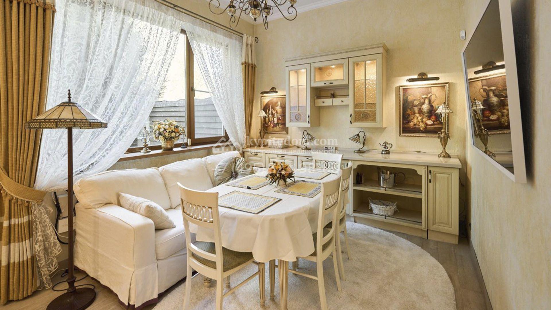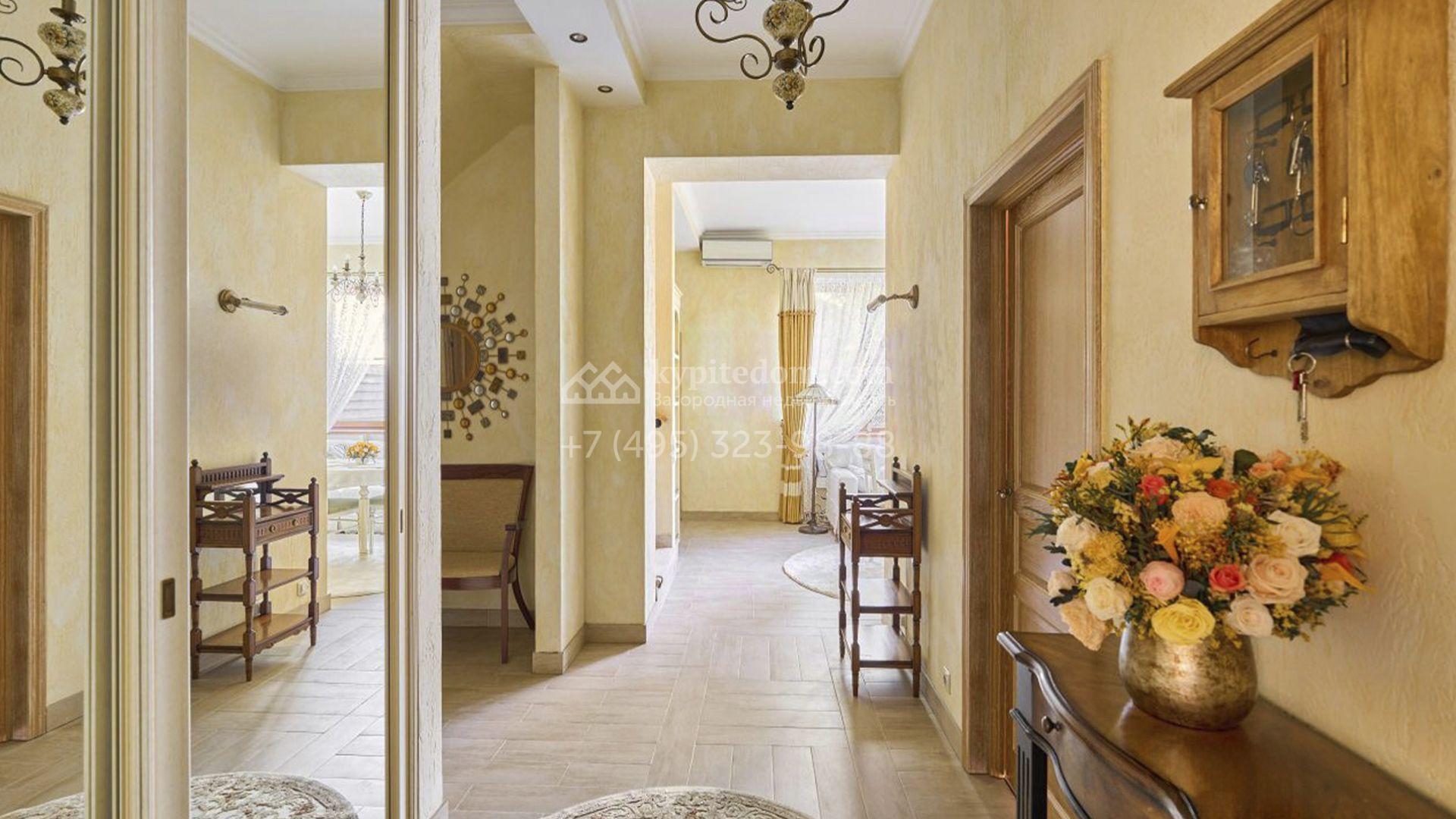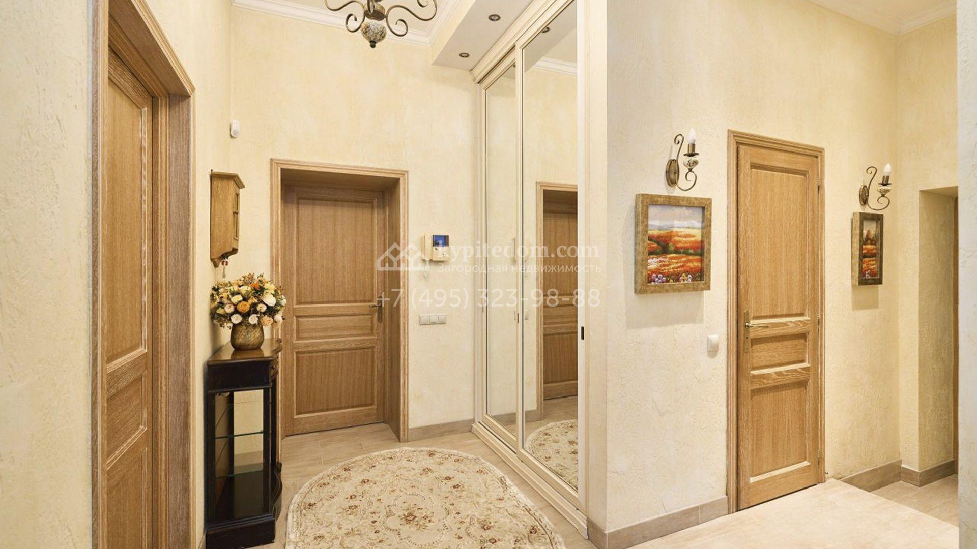 Загородный таунхаус площадью 250 м² расположен на живописном лесном участке 5 соток в тихой части поселка. Фасад выполнен в европейском стиле, облицован кремовой штукатуркой и украшен плиткой с фактурой камня. Интерьеры выдержаны в сдержанных, преимущественно светлых тонах и дополнены элегантной мебелью, современной бытовой техникой и сантехникой. Система кондиционирования обеспечивает безукоризненный комфорт.