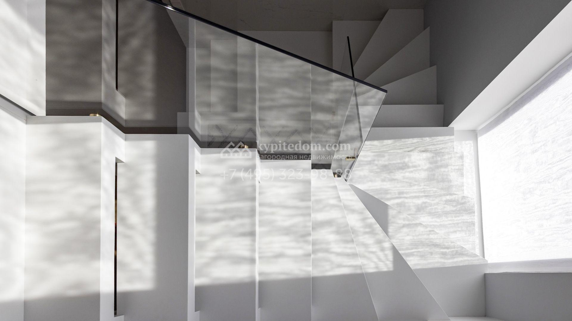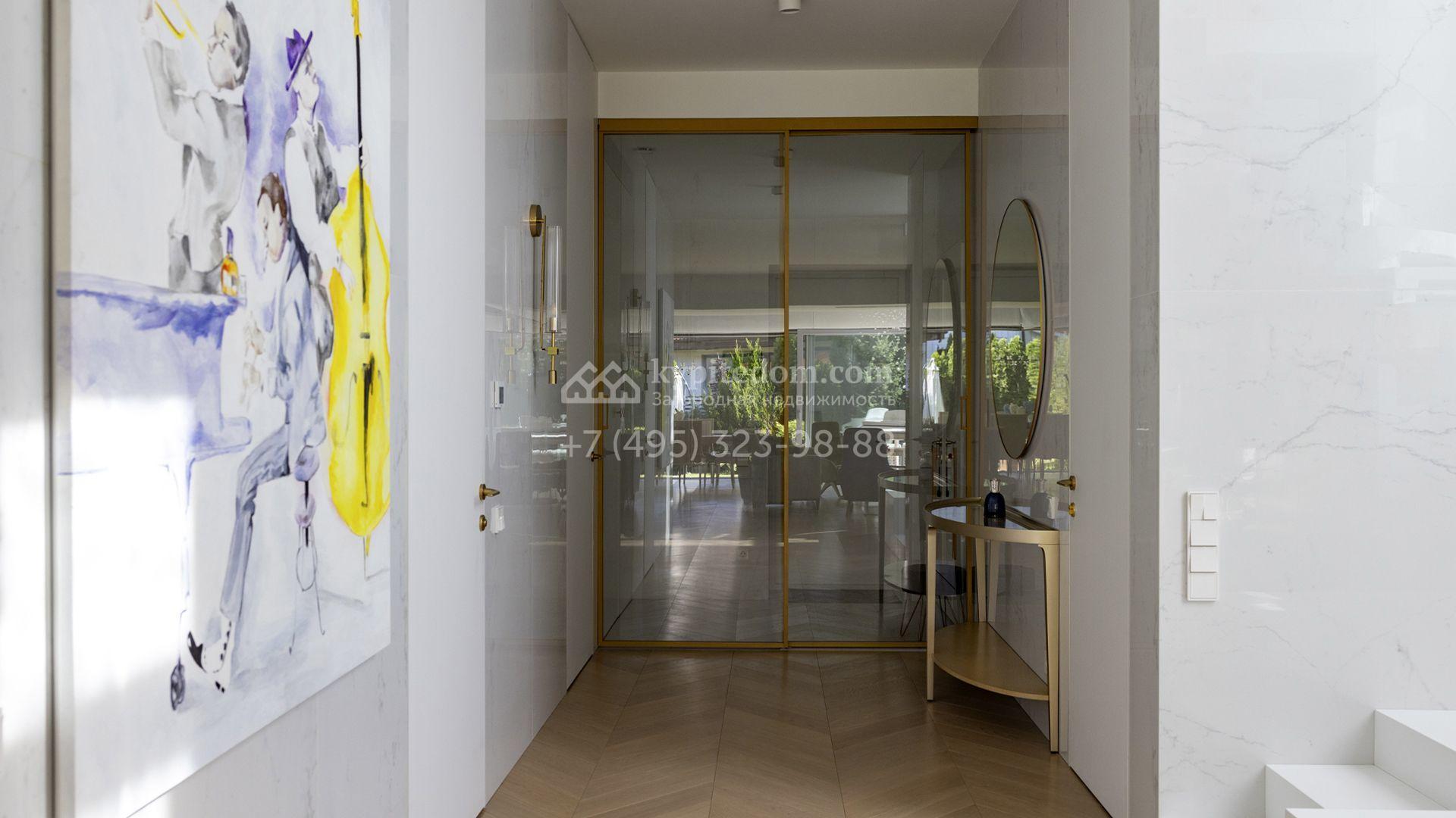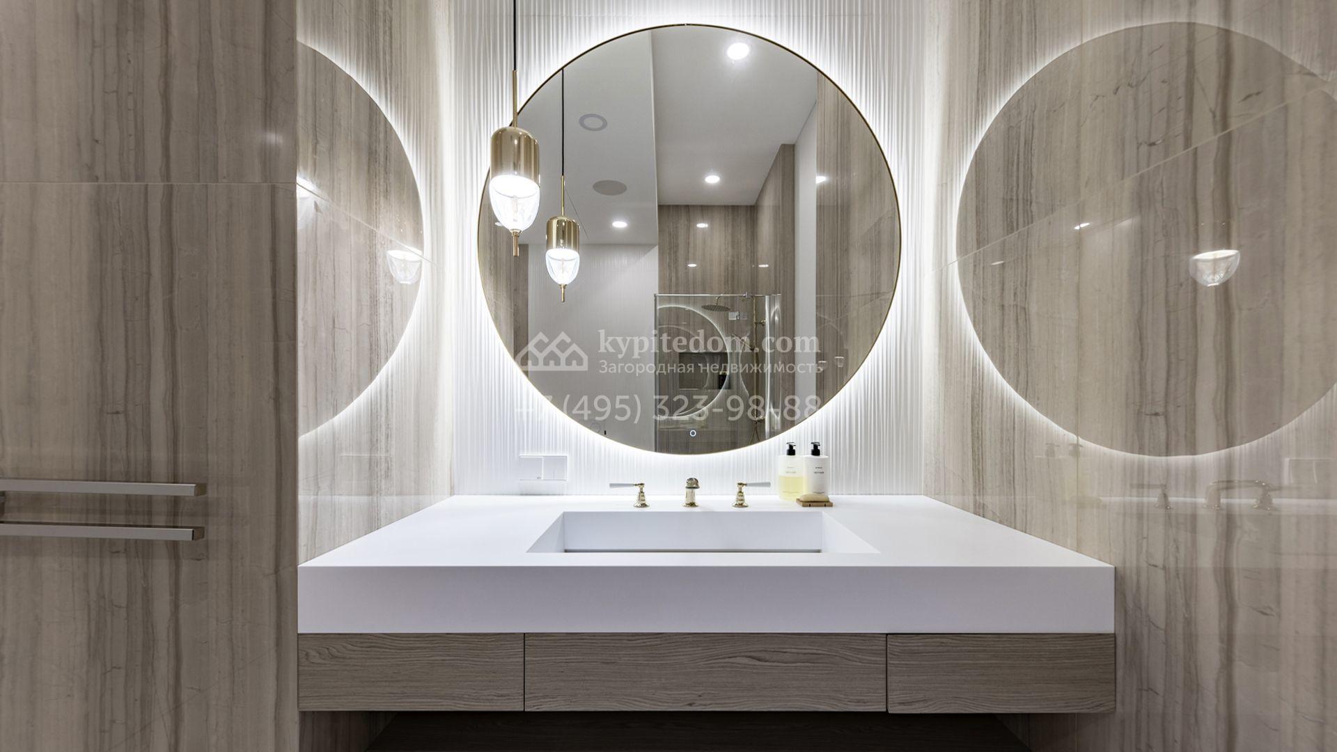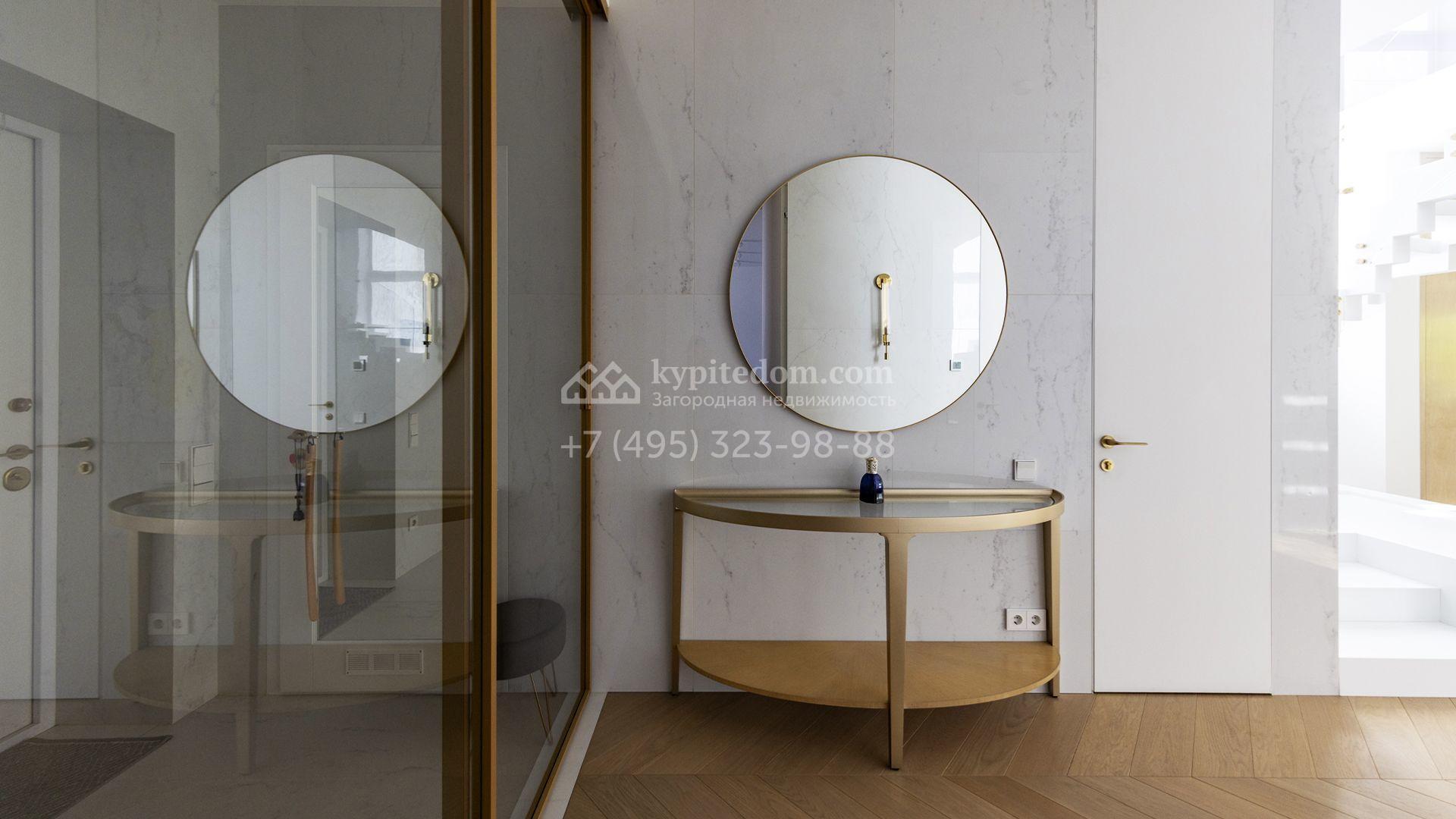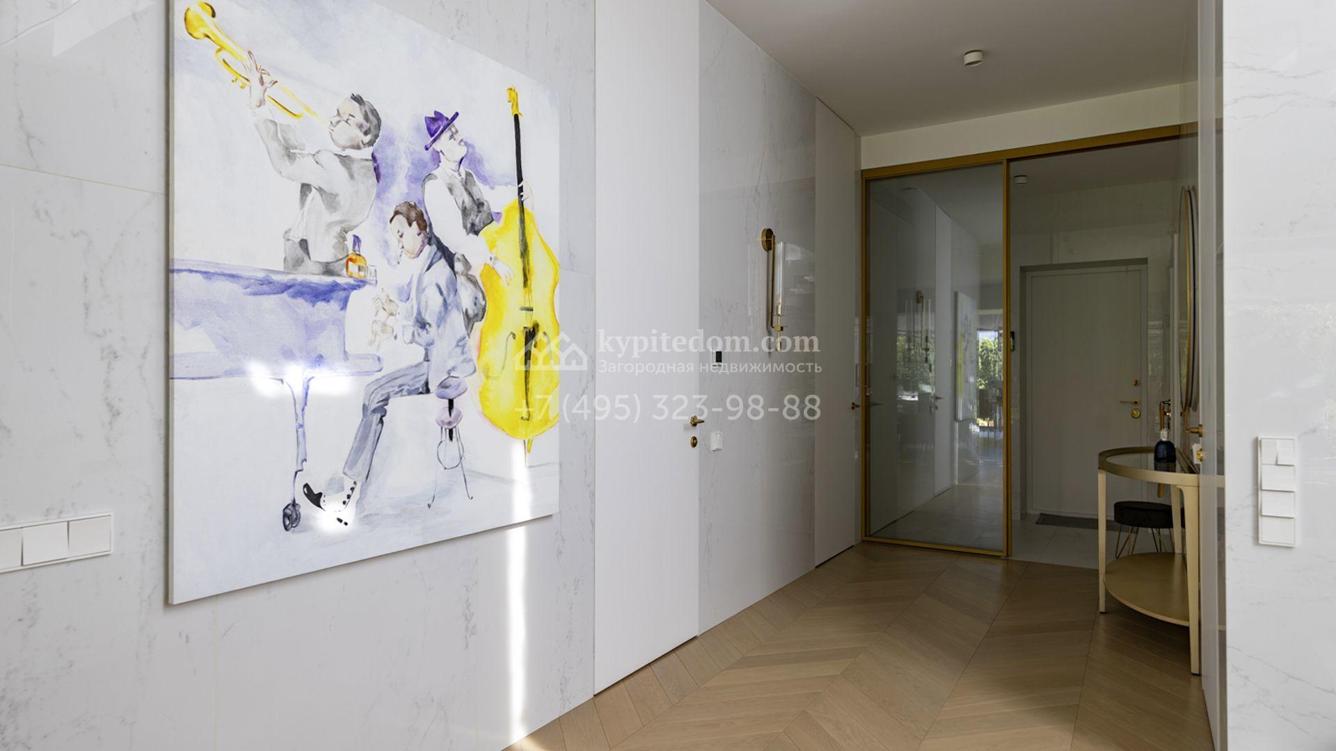 Загородный таунхаус площадью 230 м² расположен на полевом участке 4 сотки. Фасад, выполненный в европейском стиле, облицован кремовой штукатуркой и благородным красным клинкерным кирпичом, а также украшен элегантными рустовкой, пилястрами и лепниной. Современные интерьеры выдержаны в светлых тонах и гармонично сочетают фактуры камня и дерева. Комфортная мебель, встроенная бытовая техника, изящные люстры и тщательно подобранные предметы декора дополняют образ. Для идеального микроклимата установлена система кондиционирования.