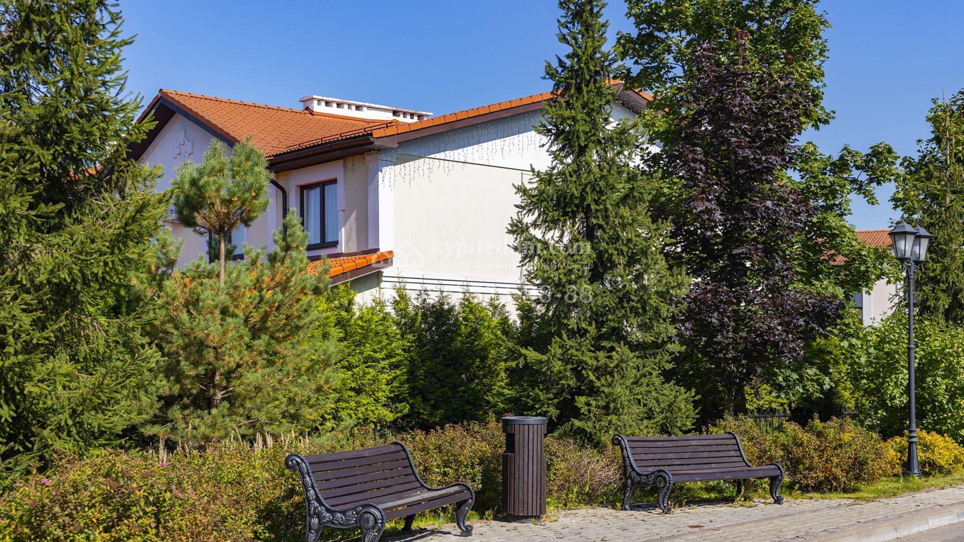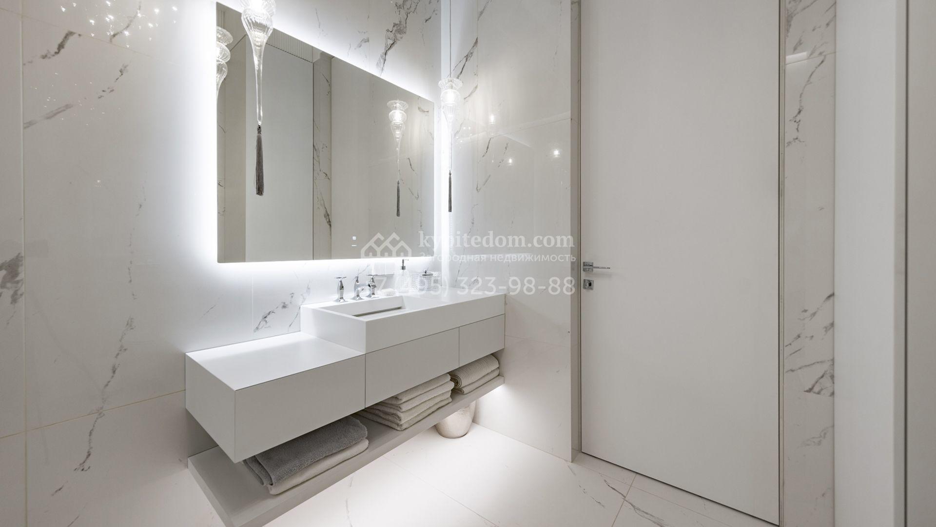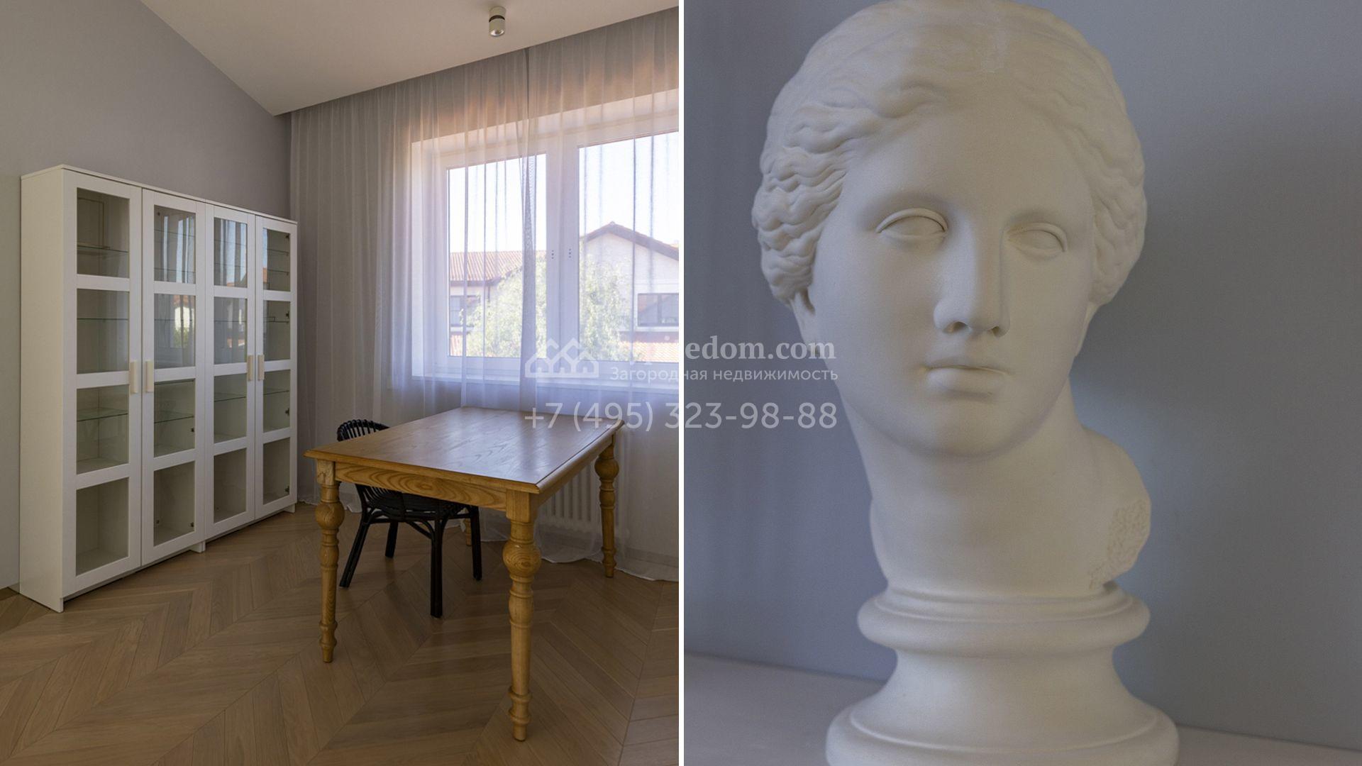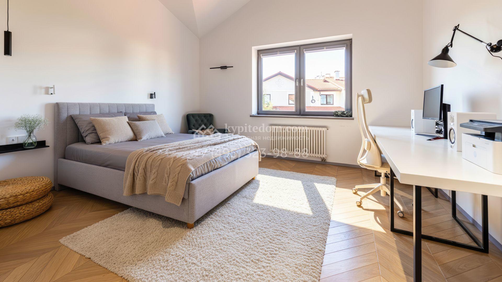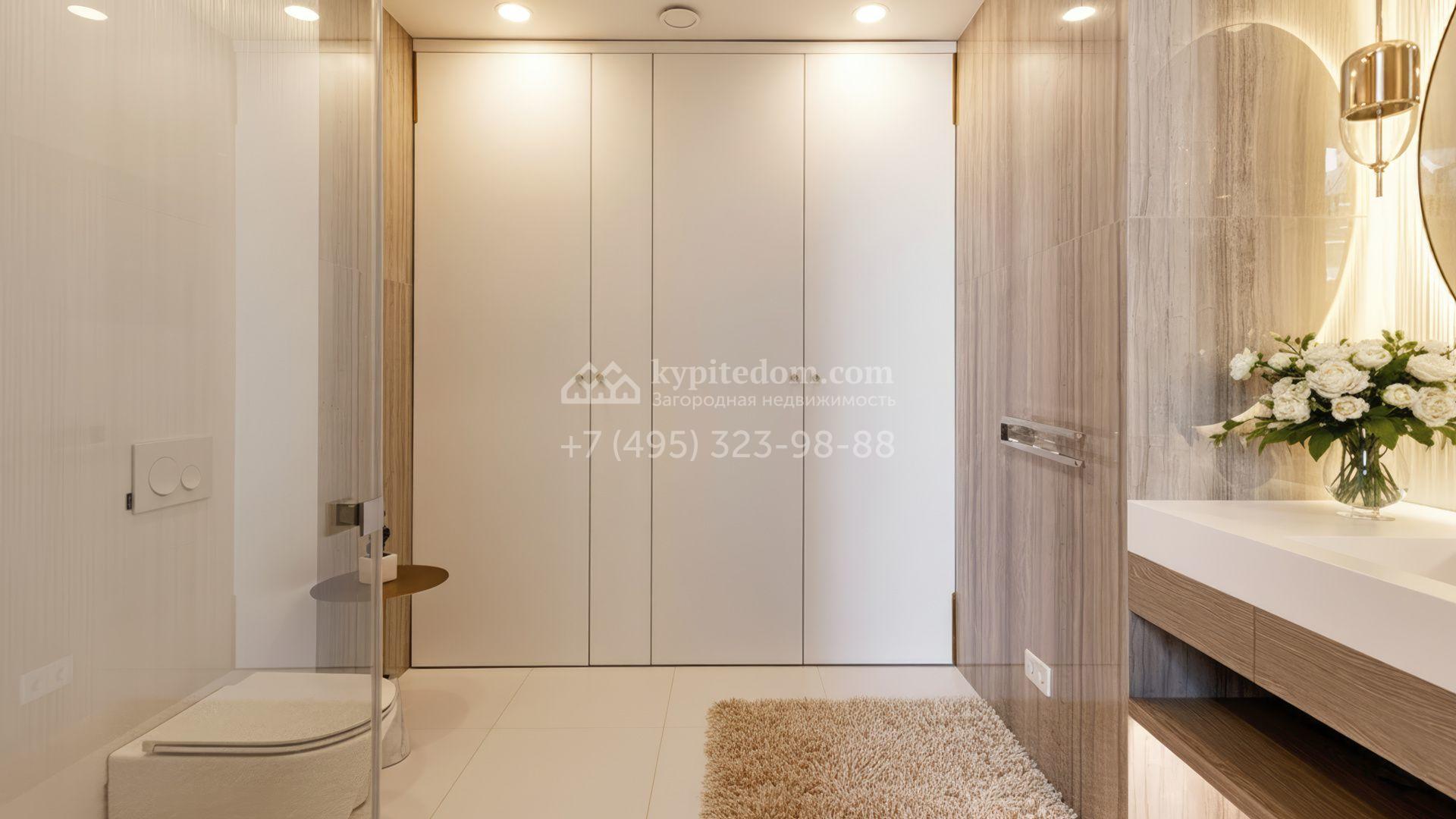 Загородный таунхаус площадью 230 м² расположен на полевом участке 4 сотки. Фасад, выполненный в европейском стиле, облицован кремовой штукатуркой и благородным красным клинкерным кирпичом, а также украшен элегантными рустовкой, пилястрами и лепниной. Современные интерьеры выдержаны в светлых тонах и гармонично сочетают фактуры камня и дерева. Комфортная мебель, встроенная бытовая техника, изящные люстры и тщательно подобранные предметы декора дополняют образ. Для идеального микроклимата установлена система кондиционирования.