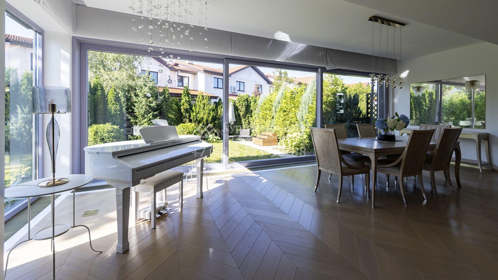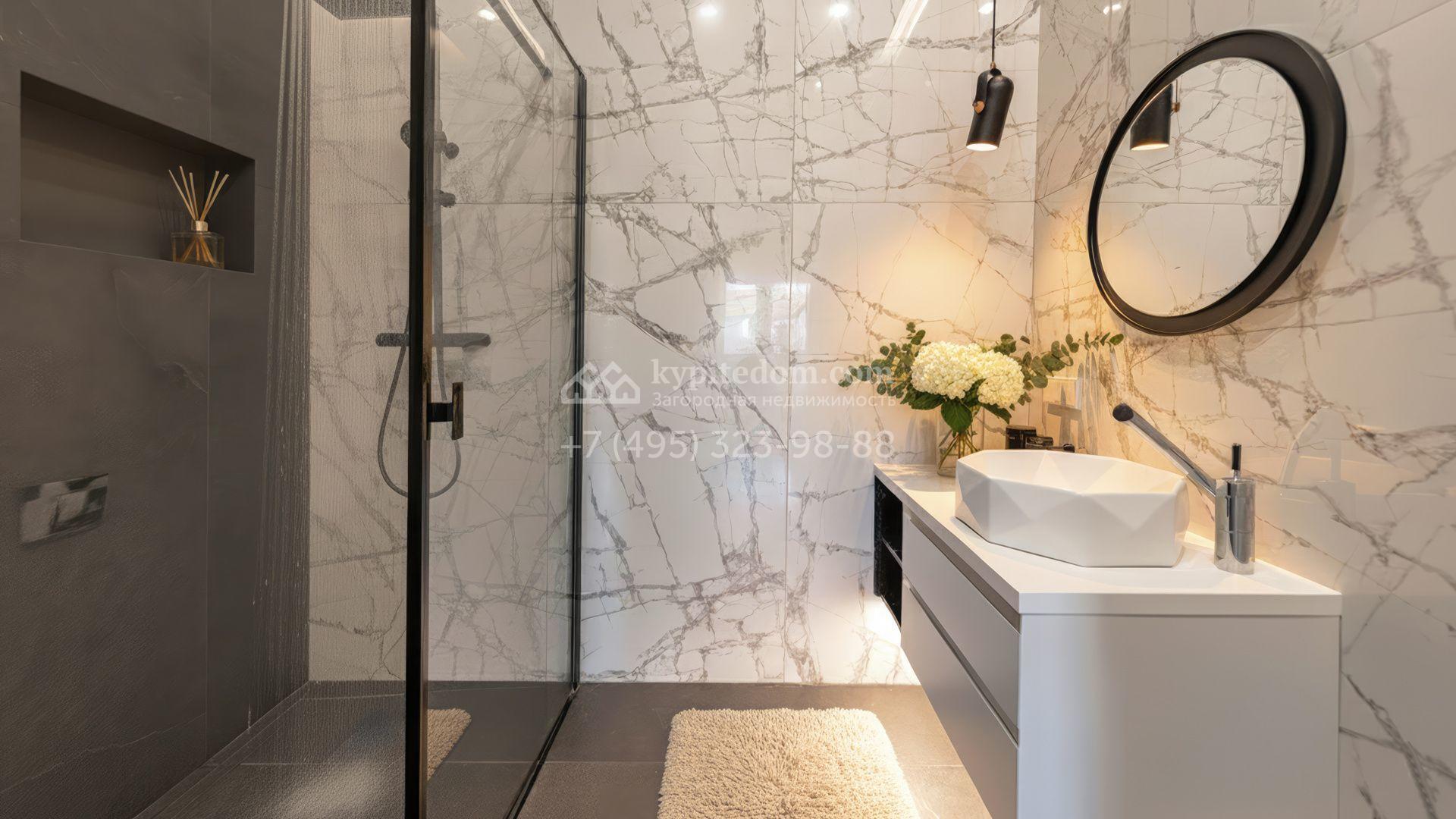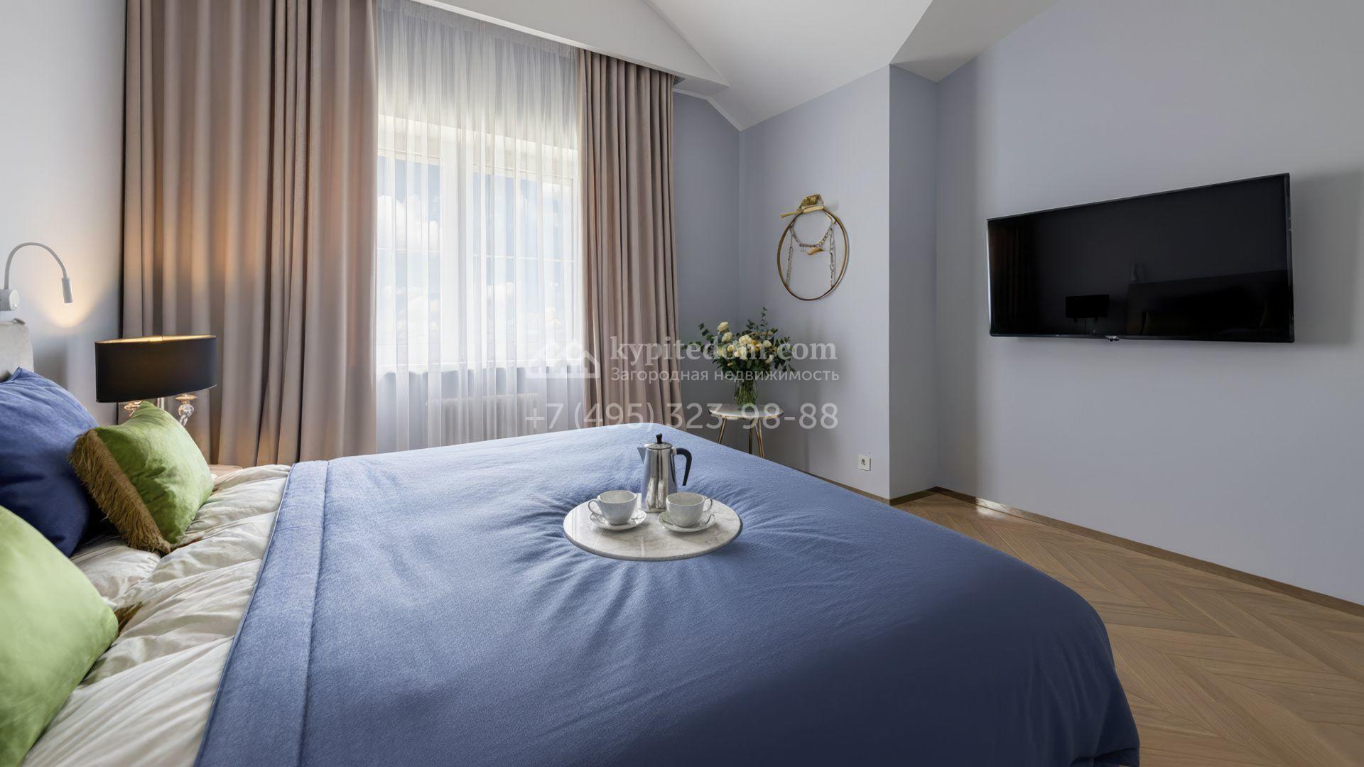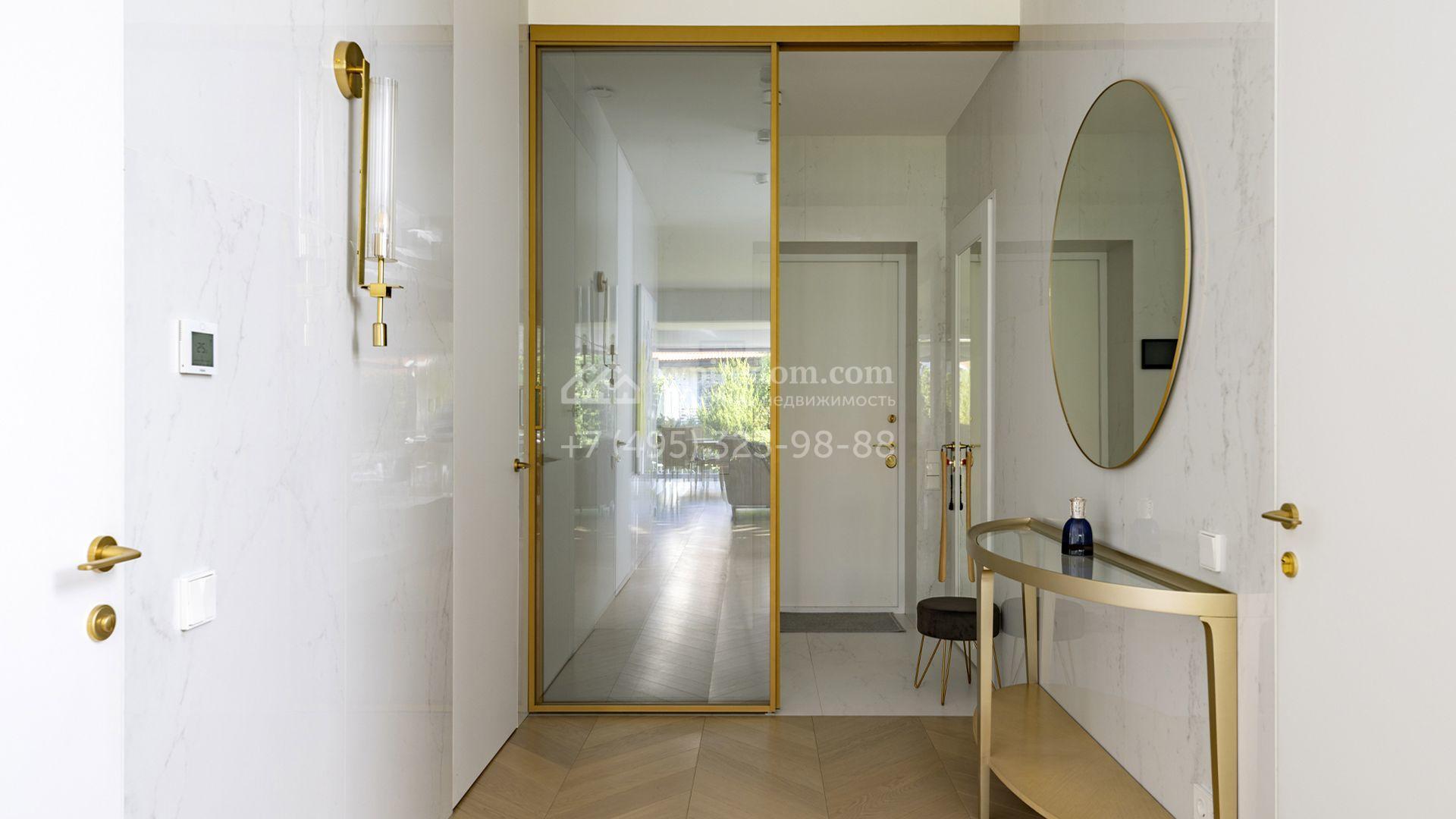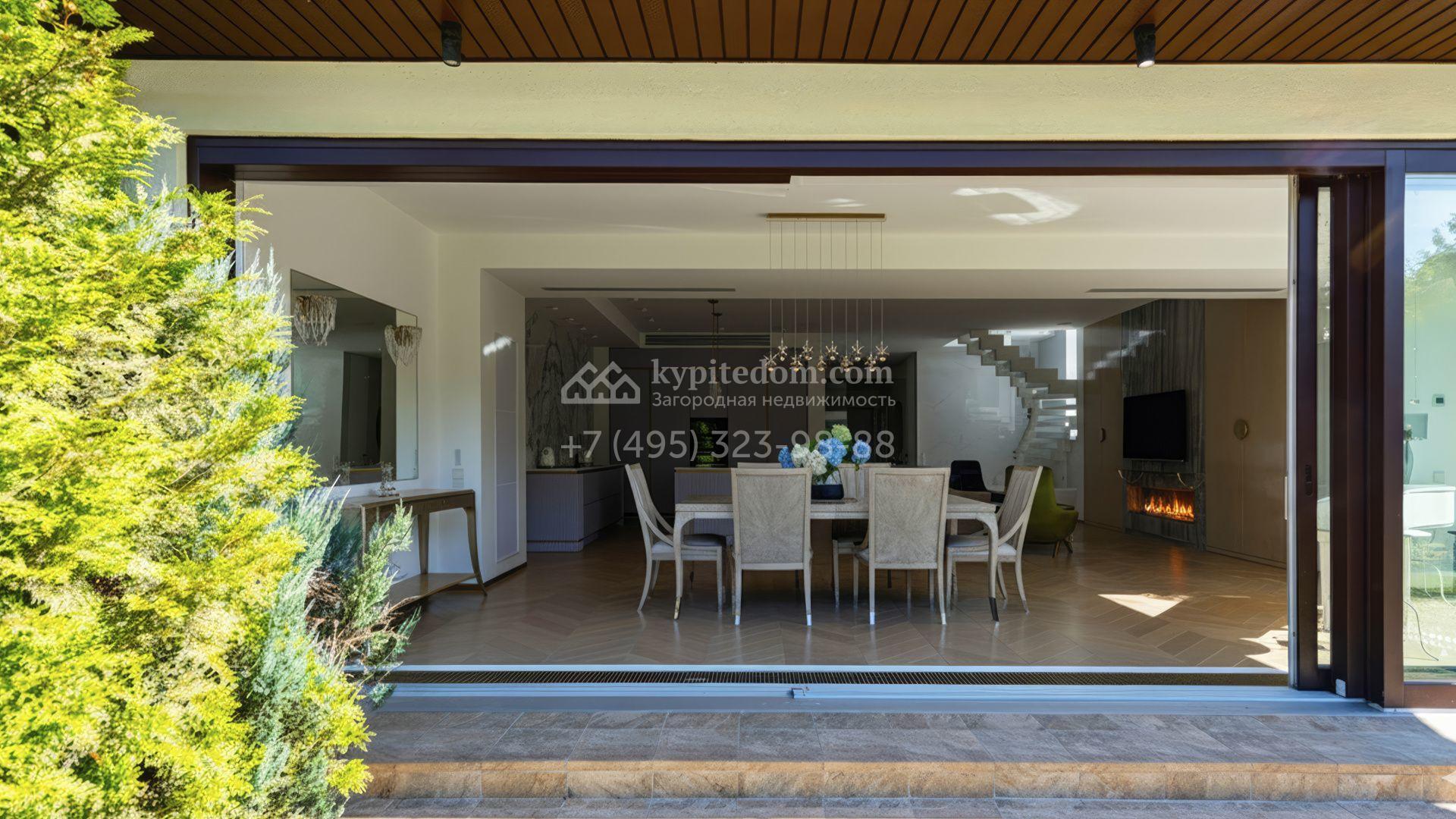 Загородный таунхаус площадью 230 м² расположен на полевом участке 4 сотки. Фасад, выполненный в европейском стиле, облицован кремовой штукатуркой и благородным красным клинкерным кирпичом, а также украшен элегантными рустовкой, пилястрами и лепниной. Современные интерьеры выдержаны в светлых тонах и гармонично сочетают фактуры камня и дерева. Комфортная мебель, встроенная бытовая техника, изящные люстры и тщательно подобранные предметы декора дополняют образ. Для идеального микроклимата установлена система кондиционирования.