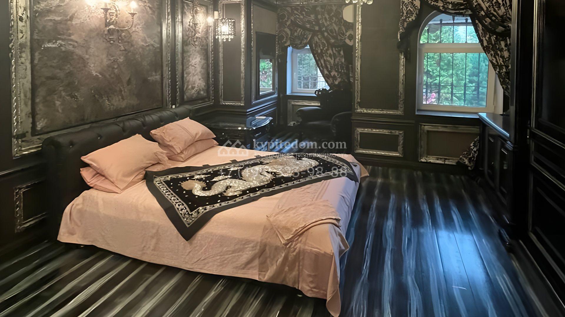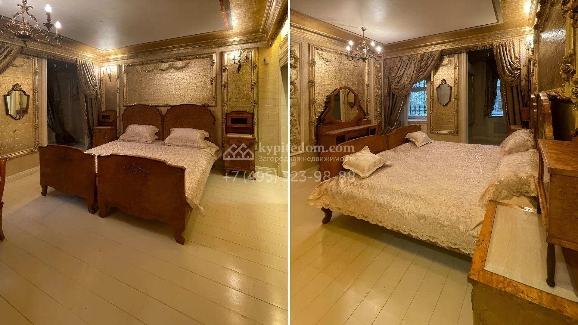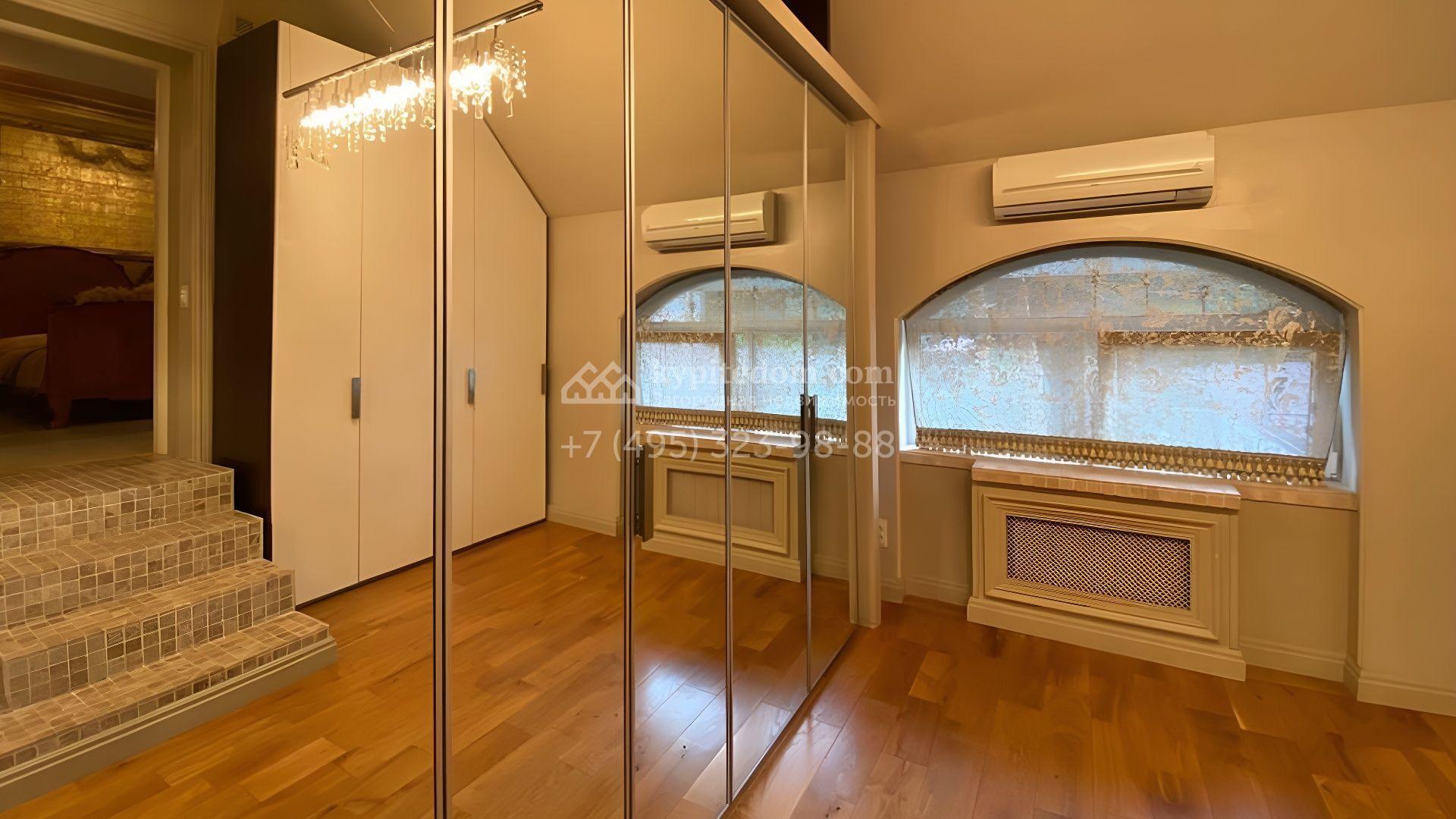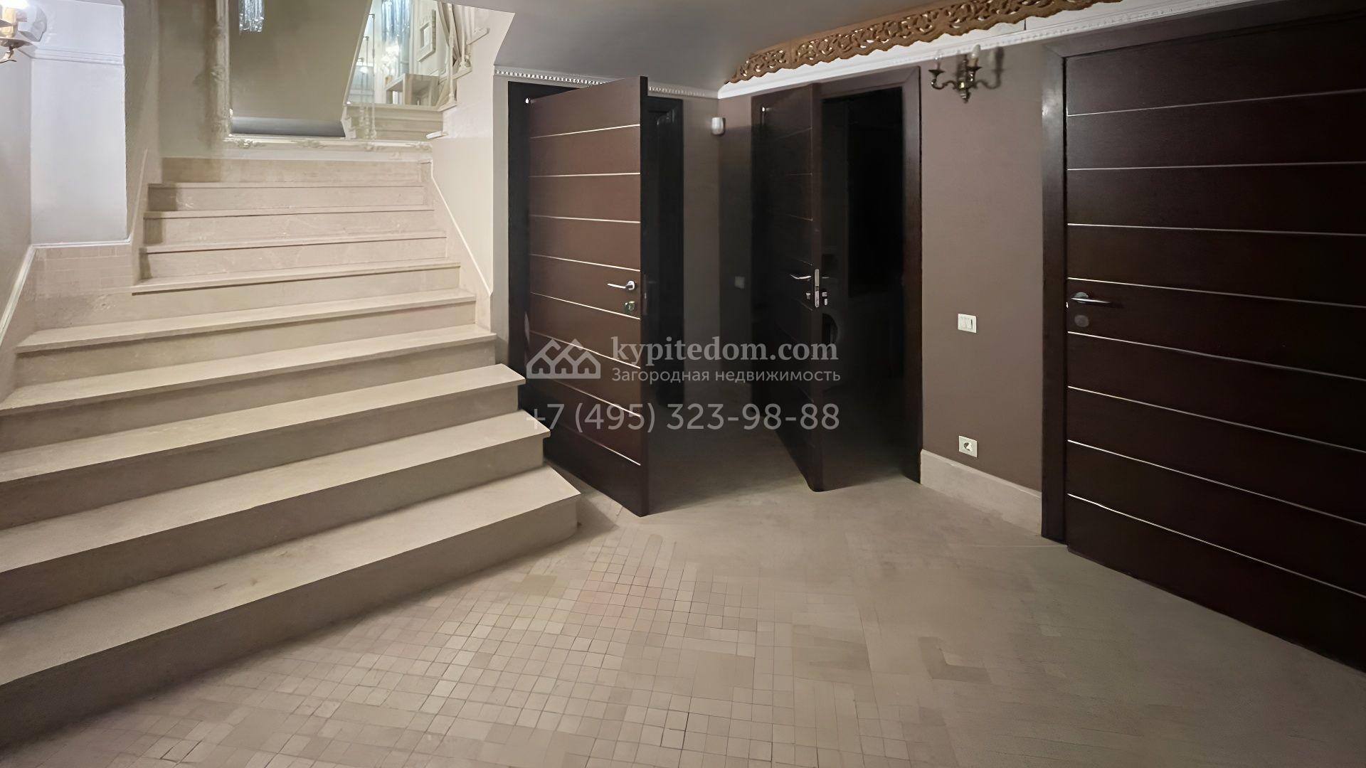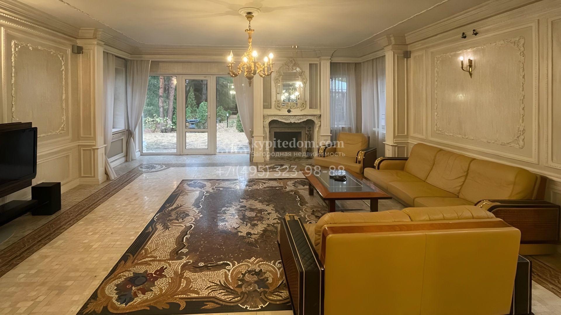 Таунхаус площадью 364 м² расположен на уютном полевом участке 6 соток. Светлый фасад с красной крышей выполнен в европейском стиле, на оконных проемах установлены защитные ролл-жалюзи и декоративные решетки. Интерьер сочетает элементы современности и классики, на полах уложена мраморная мозаика, на стенах выполнена художественная покраска стен, установлена встроенная мебель итальянского производства. Планировкой дома предусмотрены 4 спальни, гостиная с камином, 2 кухни, турецкая баня и блок детской зоны с кухней, ванной и отдельным входом. На участке выполнен ландшафтный дизайн, растут взрослые хвойные деревья, построен садовый домик, на террасе оборудована зона барбекю.