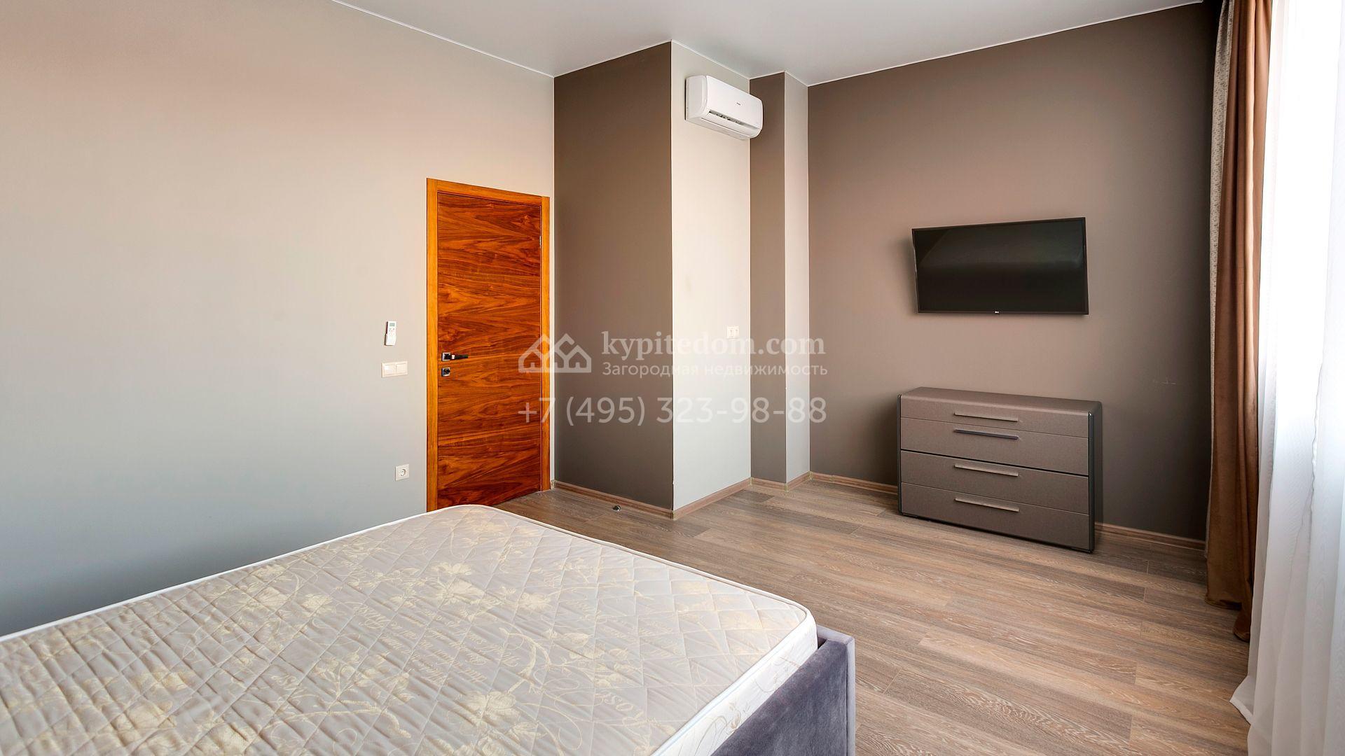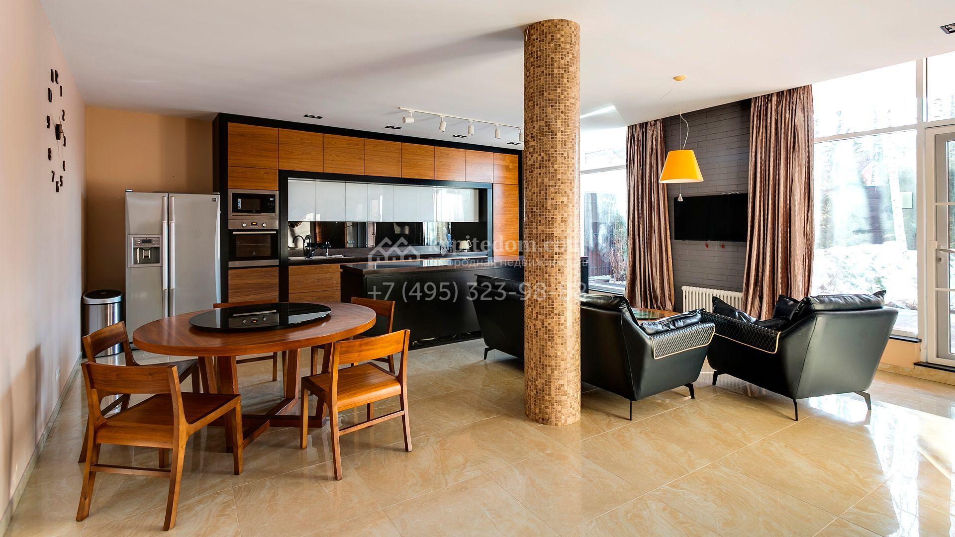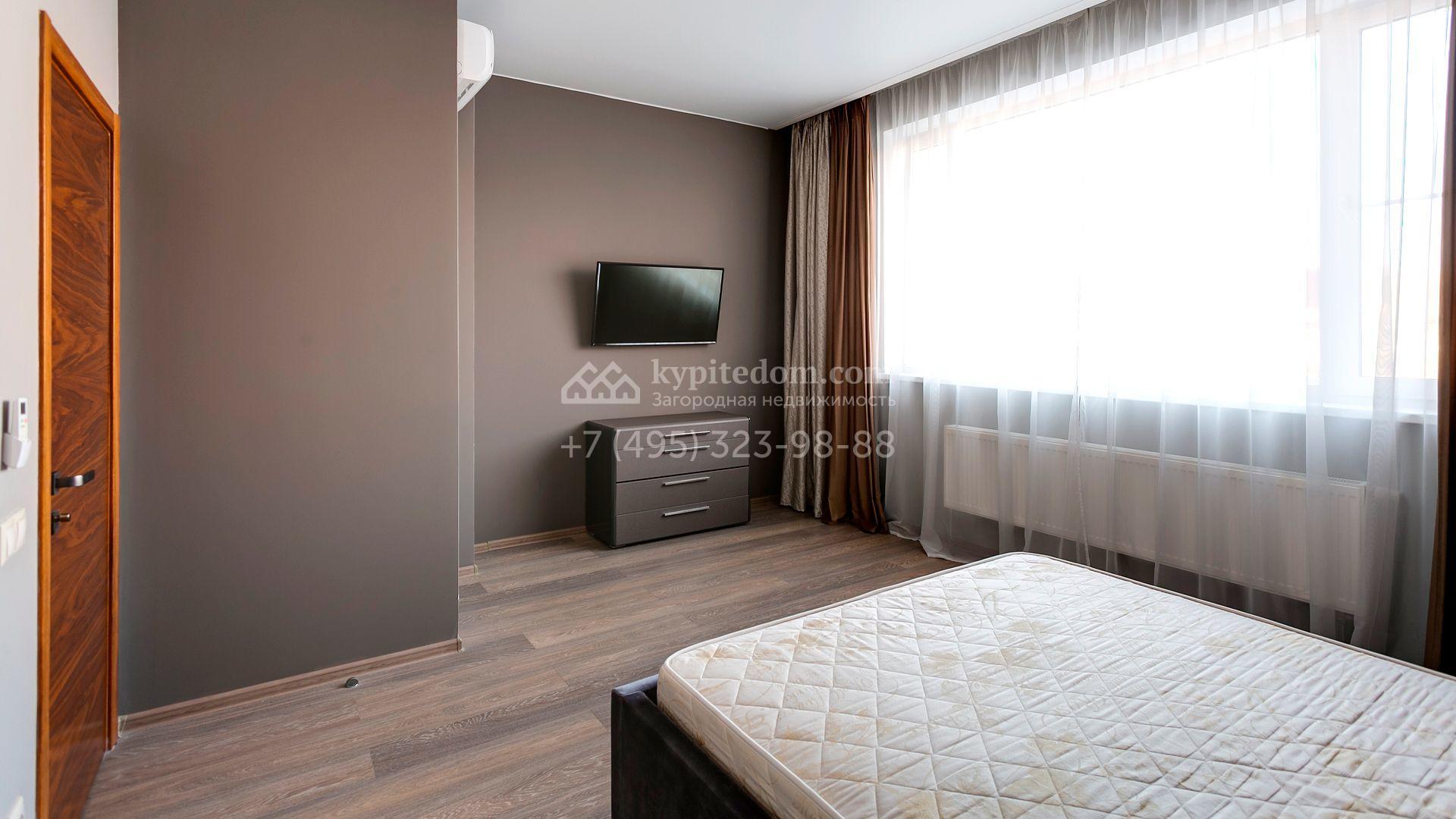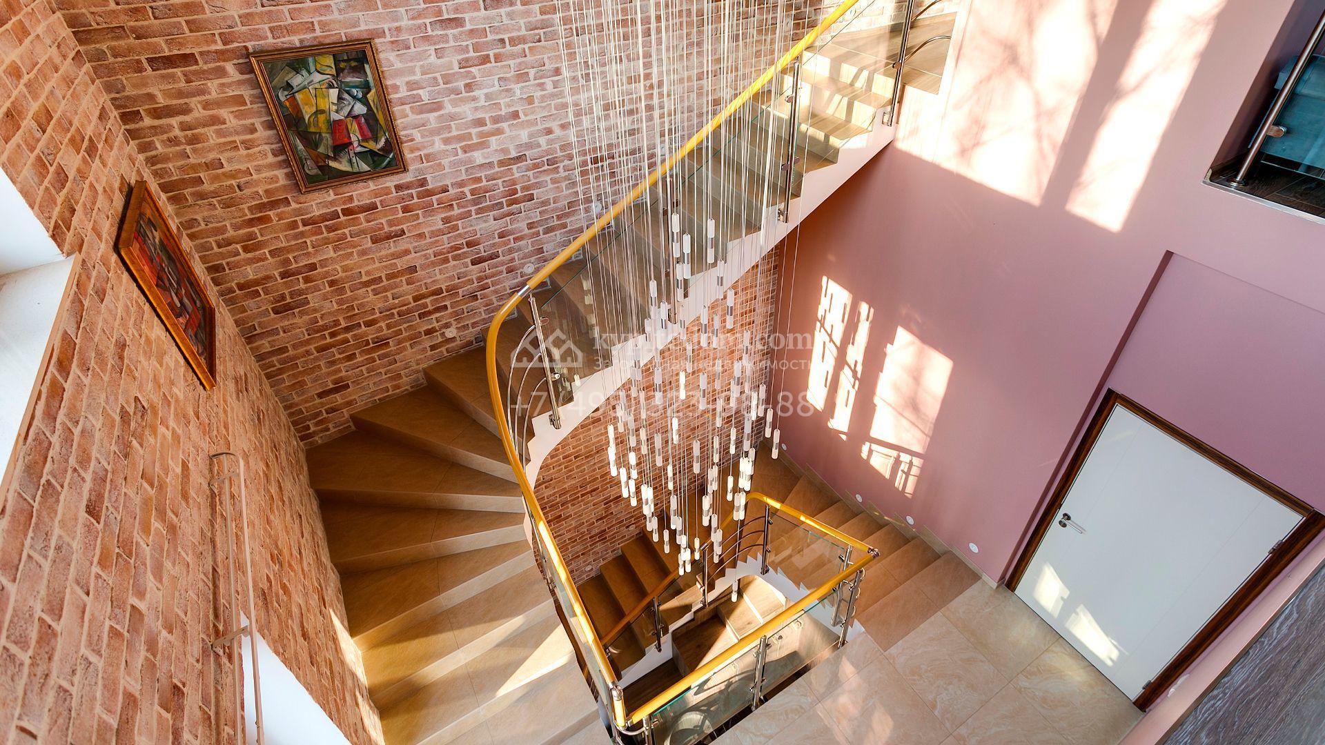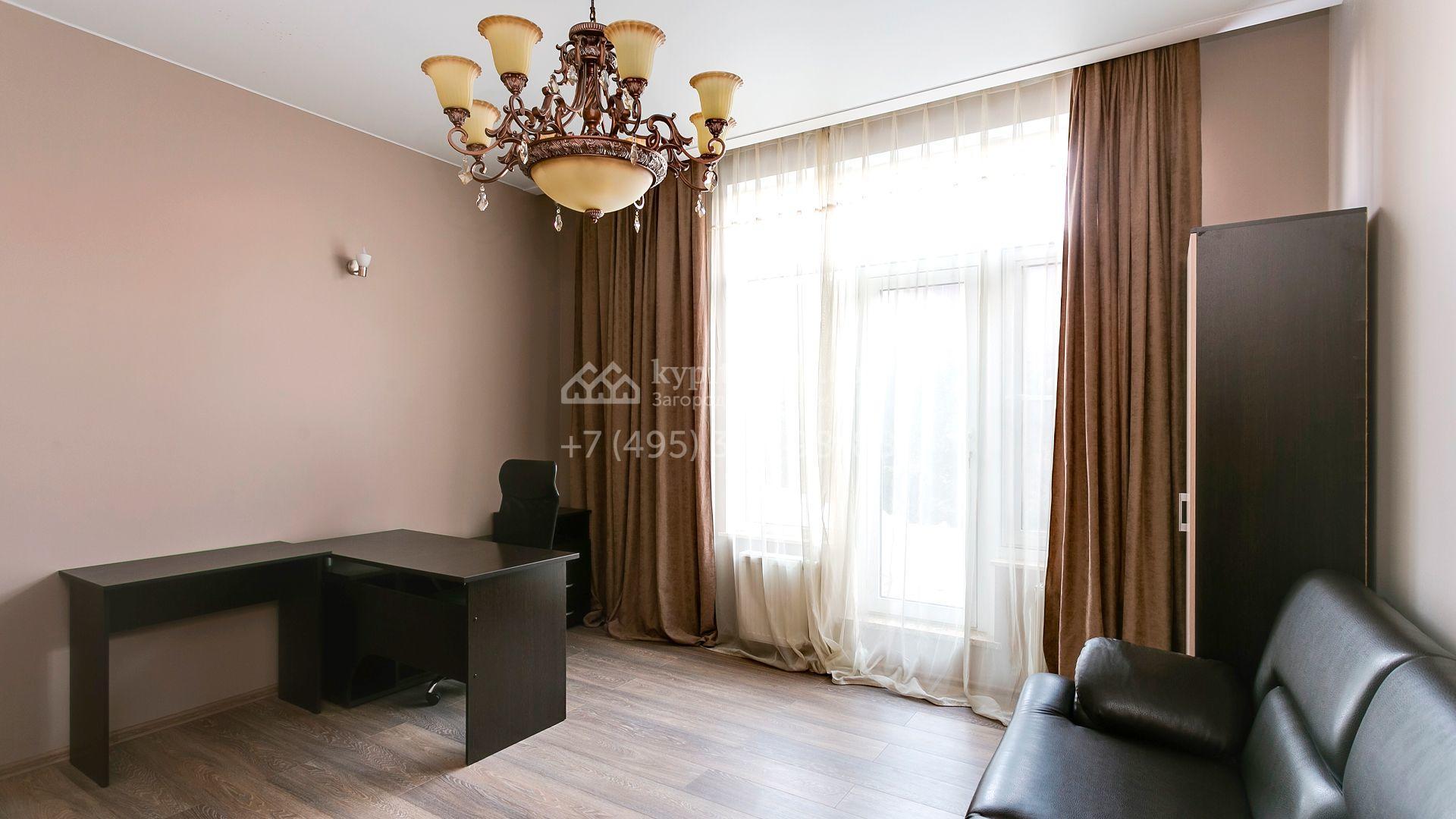 Трехэтажный таунхаус площадью 400 м² расположен на полевом участке 10 соток. Фасад выполнен из красного клинкерного кирпича, окна украшены белыми наличниками. Современный интерьер выполнен в теплой палитре оттенков, создающих атмосферу уюта. В доме спланировали 5 спален, гостиную-столовую-кухню, бильярдную с зоной отдыха и бассейн. На территории предусмотрены гараж на 2 машины, паркинг на 6 машин, баня с 2 гостевыми спальнями и зона барбекю. На участке выполнен ландшафтный дизайн, вымощены дорожки.
