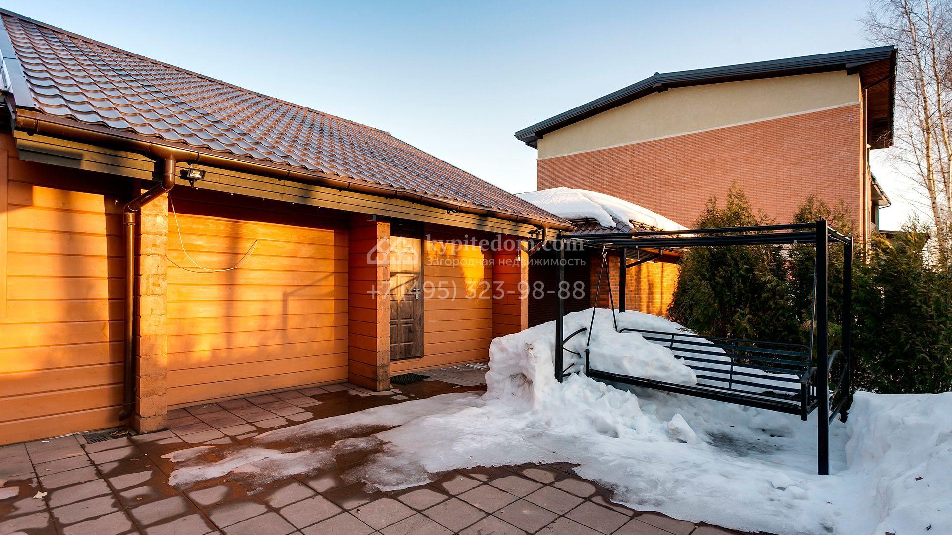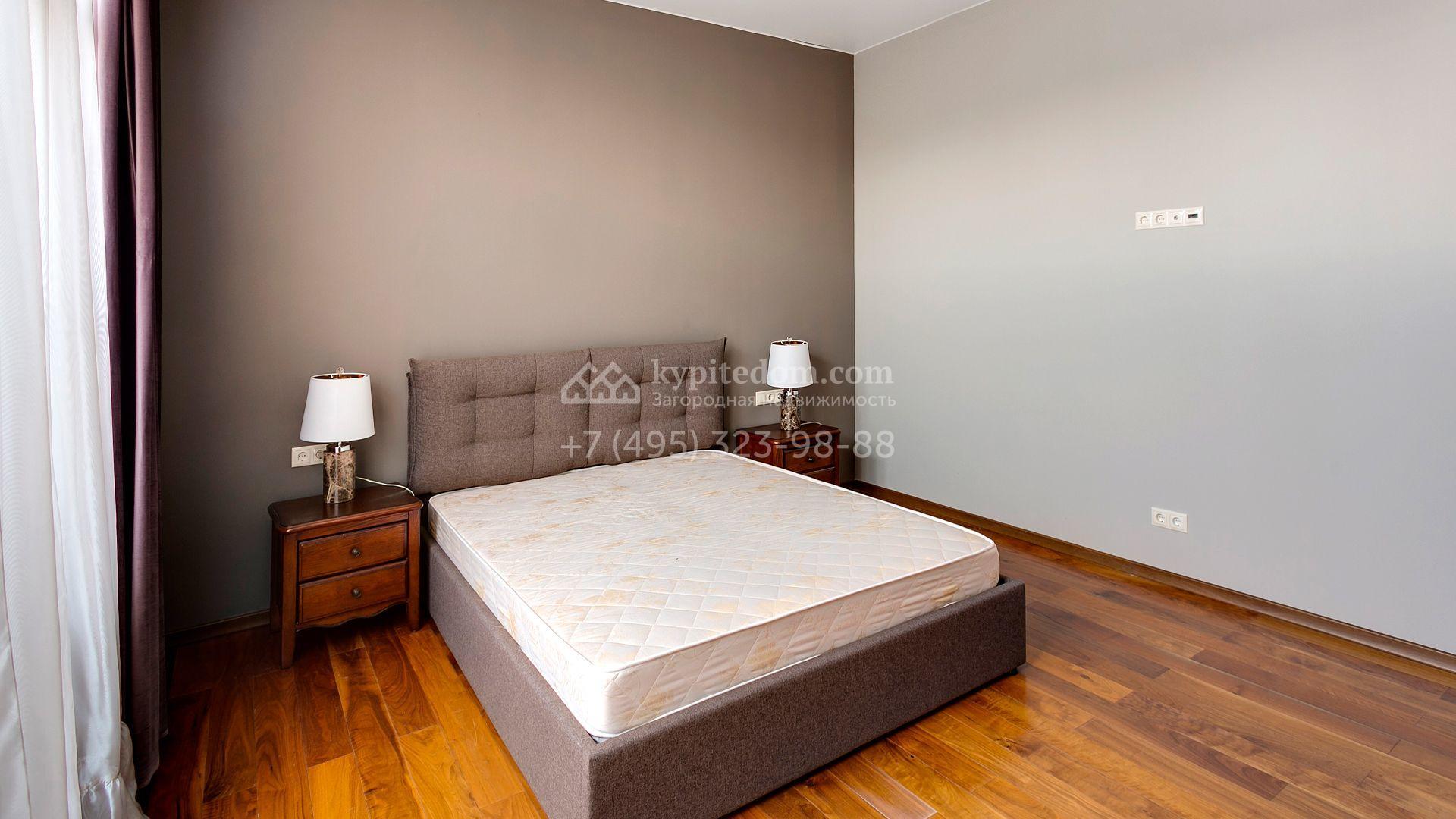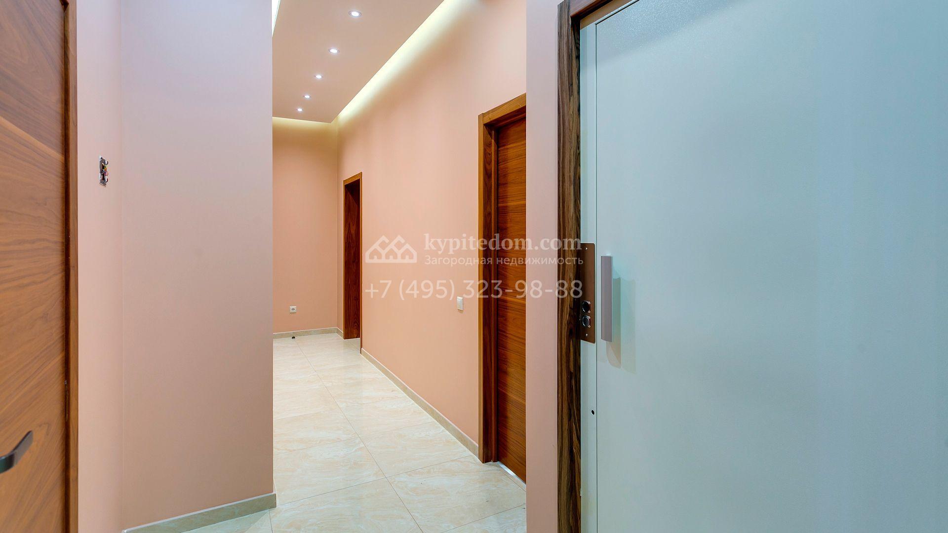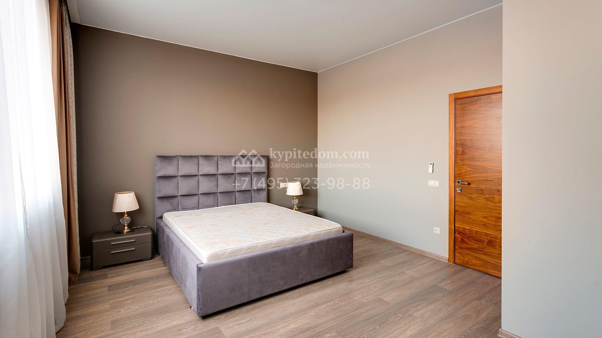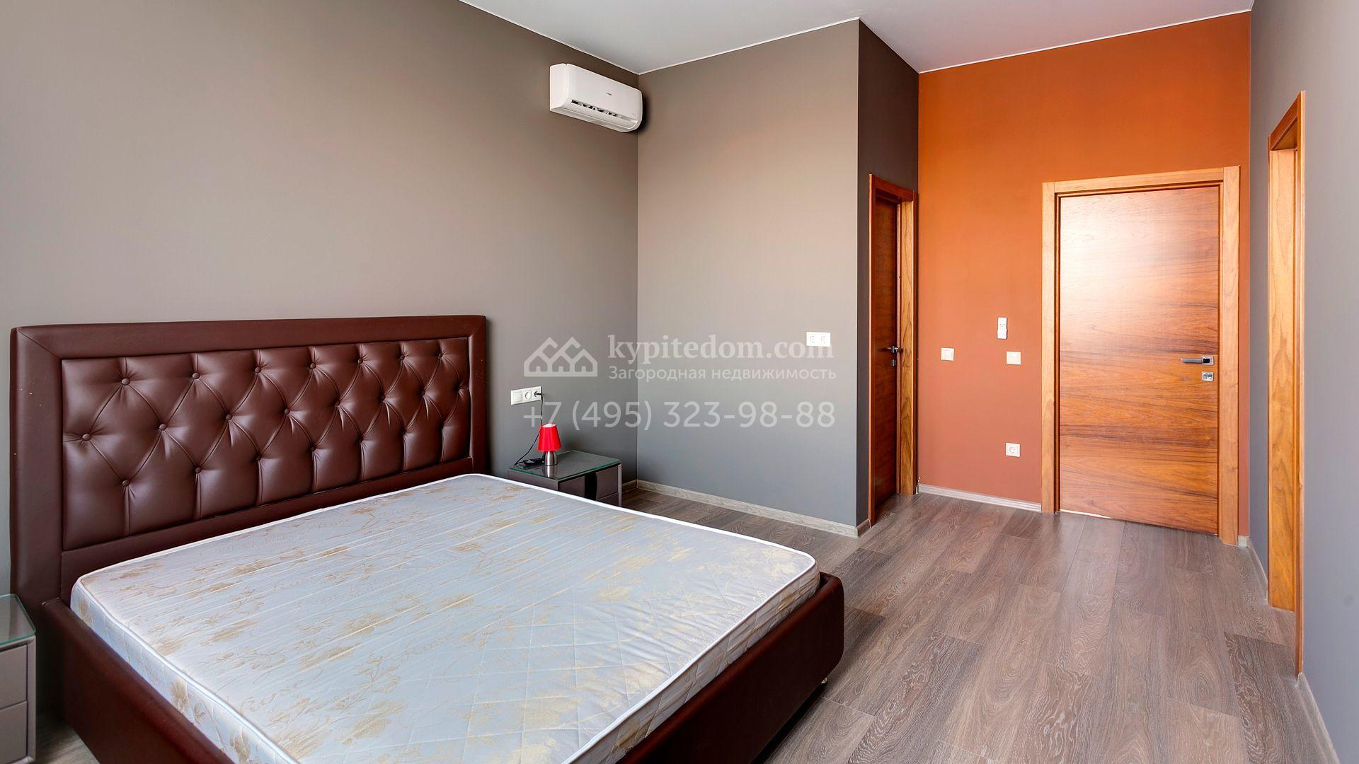 Трехэтажный таунхаус площадью 400 м² расположен на полевом участке 10 соток. Фасад выполнен из красного клинкерного кирпича, окна украшены белыми наличниками. Современный интерьер выполнен в теплой палитре оттенков, создающих атмосферу уюта. В доме спланировали 5 спален, гостиную-столовую-кухню, бильярдную с зоной отдыха и бассейн. На территории предусмотрены гараж на 2 машины, паркинг на 6 машин, баня с 2 гостевыми спальнями и зона барбекю. На участке выполнен ландшафтный дизайн, вымощены дорожки.