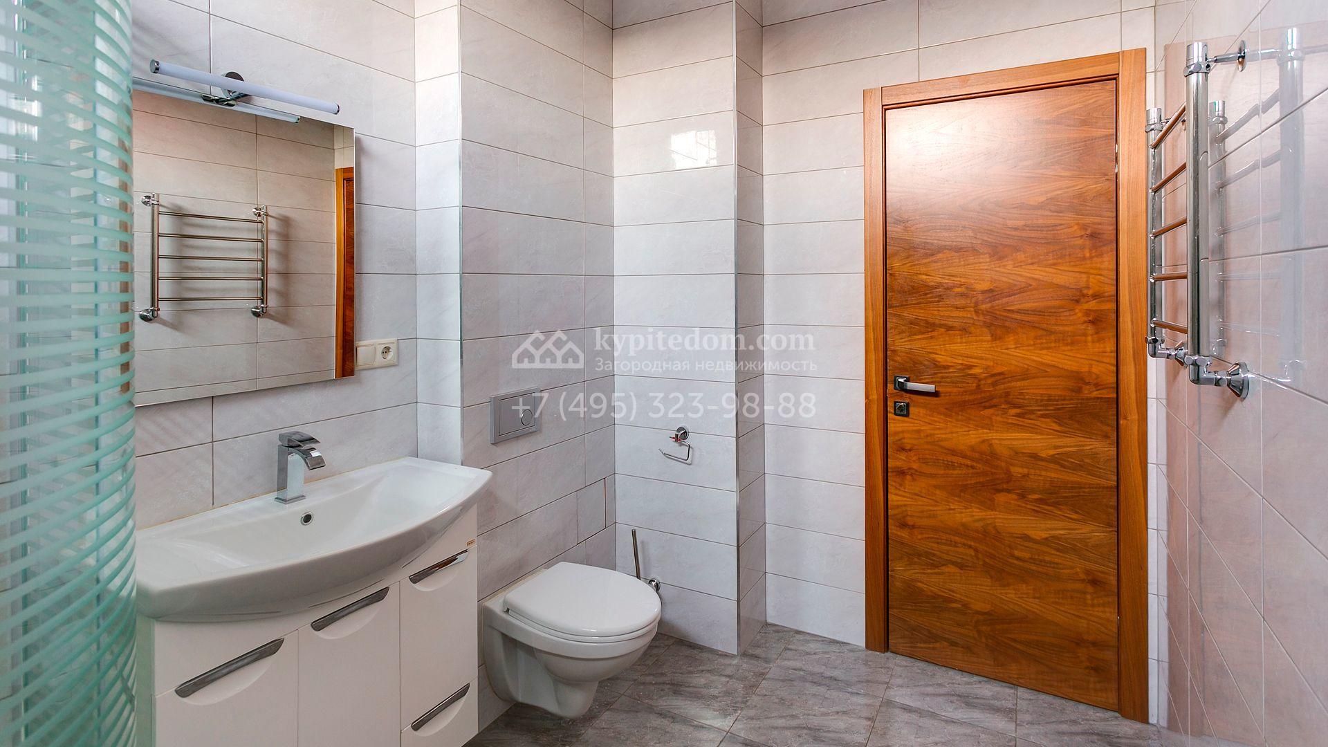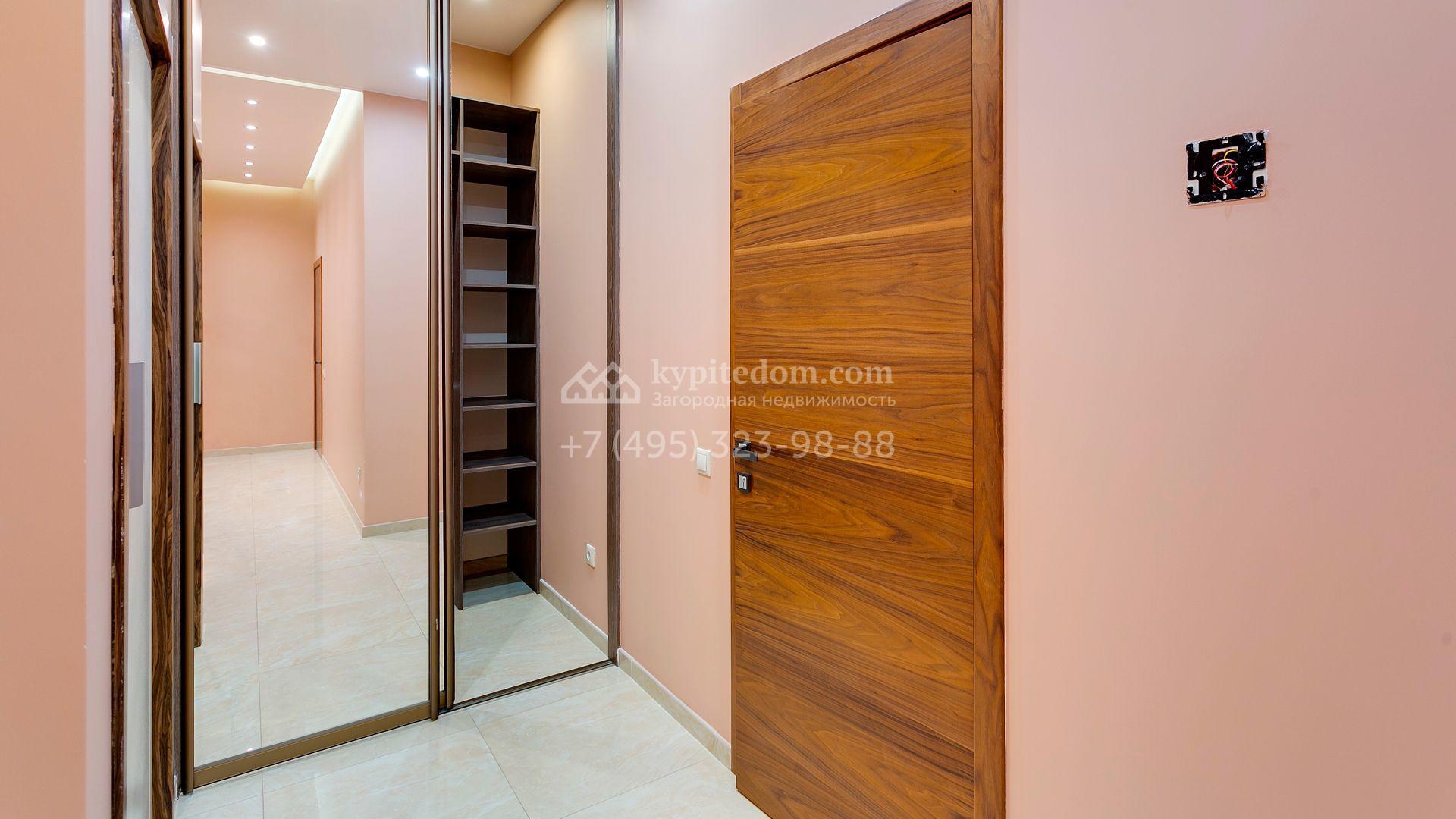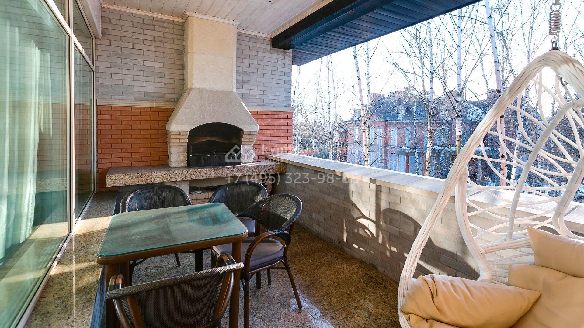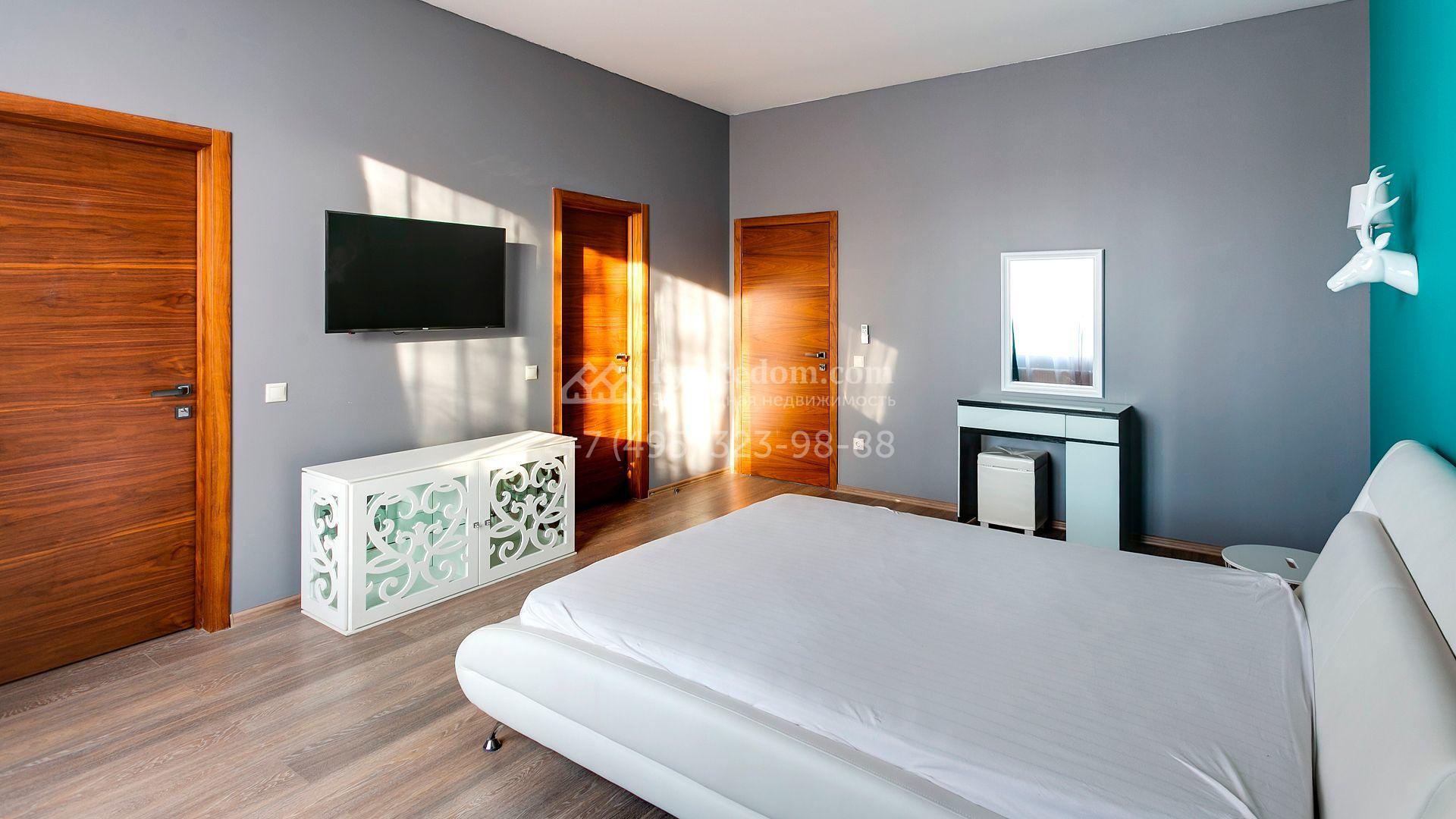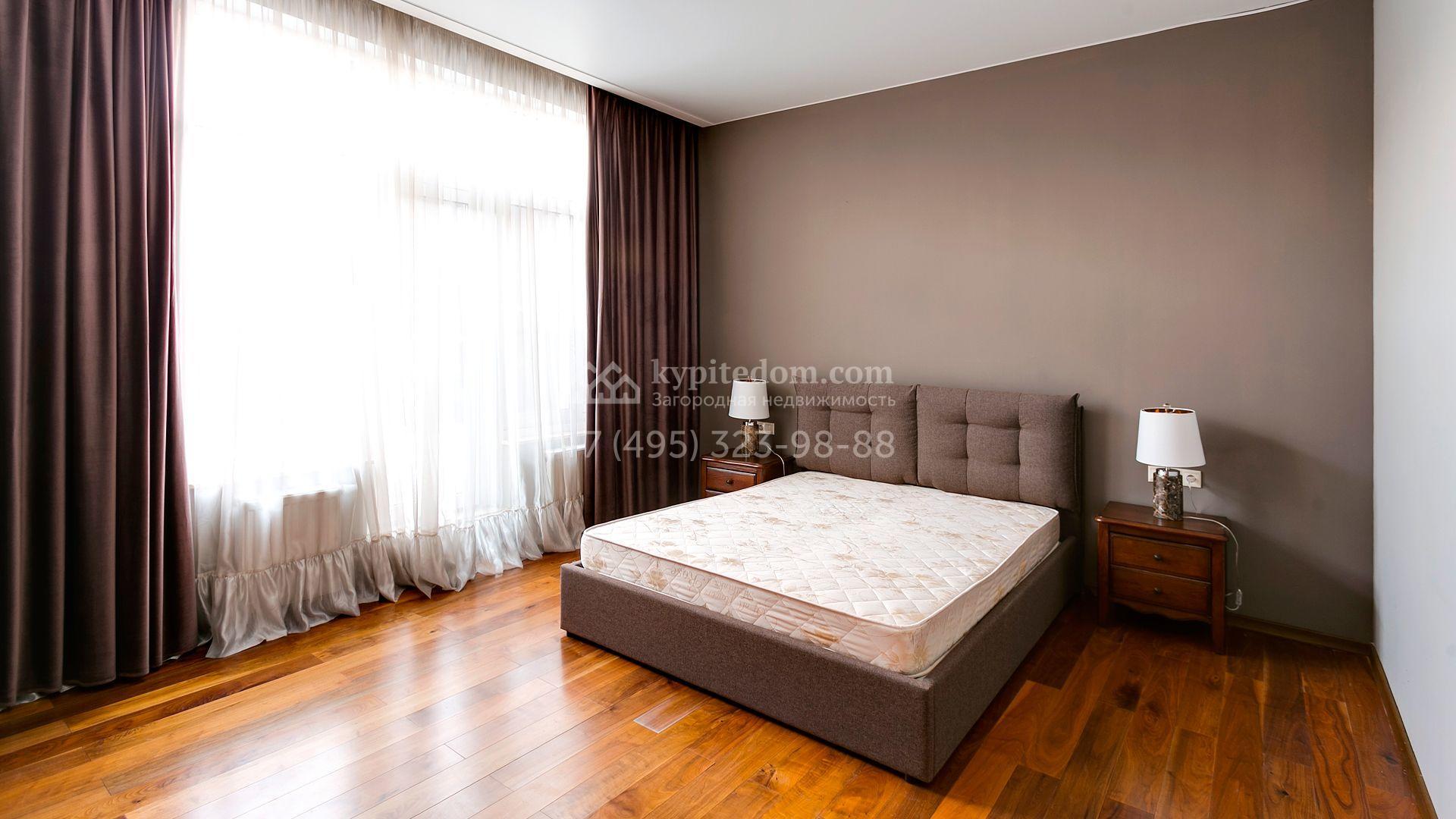 Трехэтажный таунхаус площадью 400 м² расположен на полевом участке 10 соток. Фасад выполнен из красного клинкерного кирпича, окна украшены белыми наличниками. Современный интерьер выполнен в теплой палитре оттенков, создающих атмосферу уюта. В доме спланировали 5 спален, гостиную-столовую-кухню, бильярдную с зоной отдыха и бассейн. На территории предусмотрены гараж на 2 машины, паркинг на 6 машин, баня с 2 гостевыми спальнями и зона барбекю. На участке выполнен ландшафтный дизайн, вымощены дорожки.