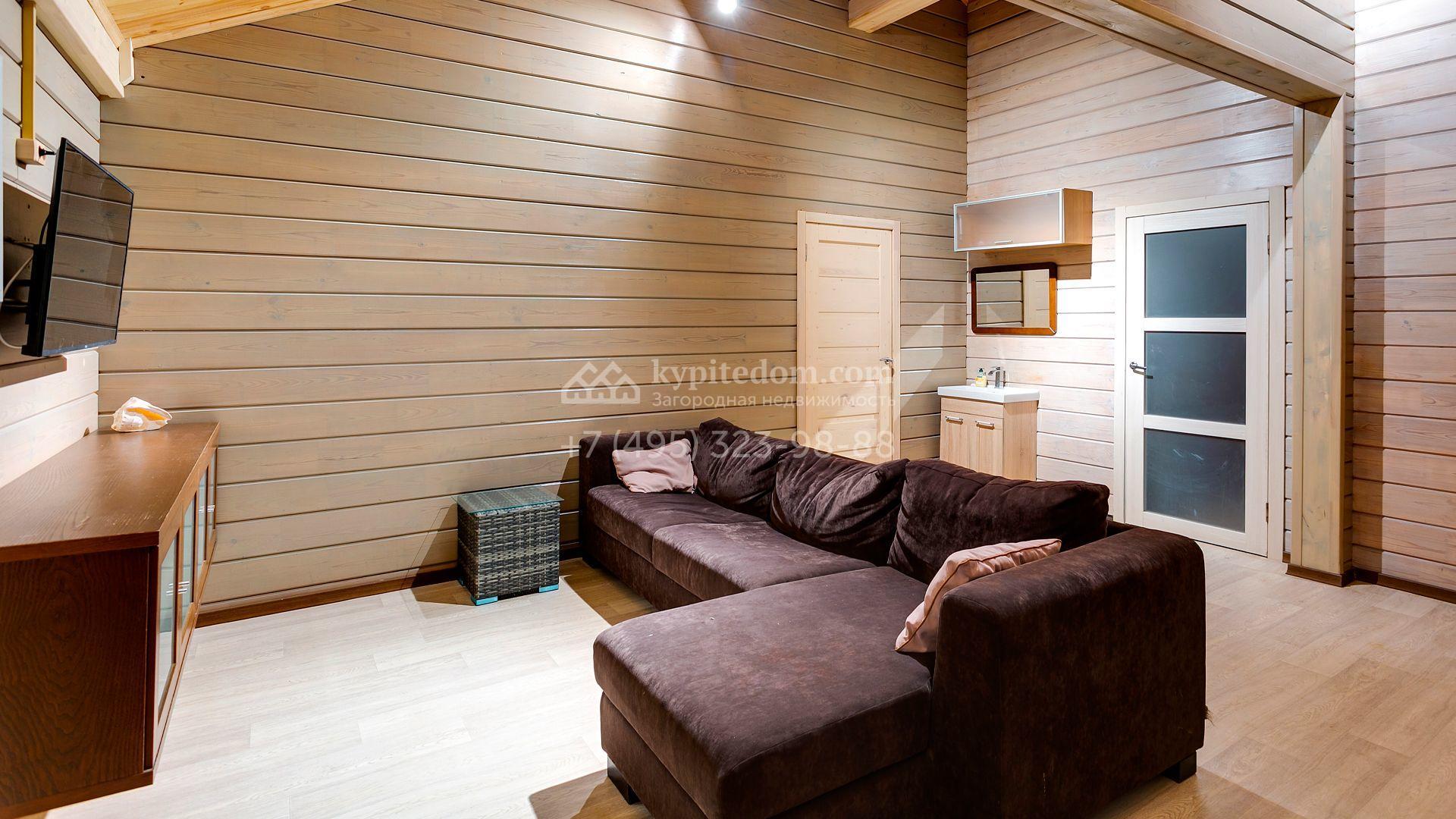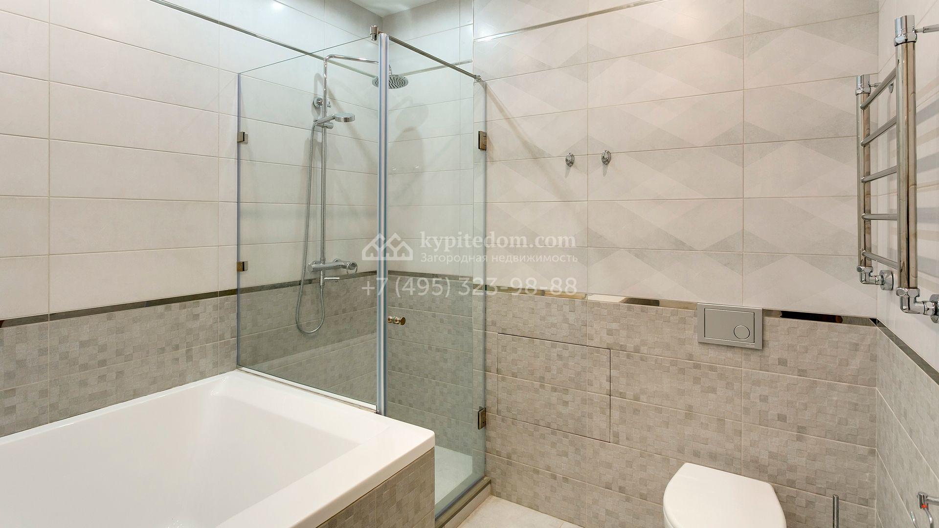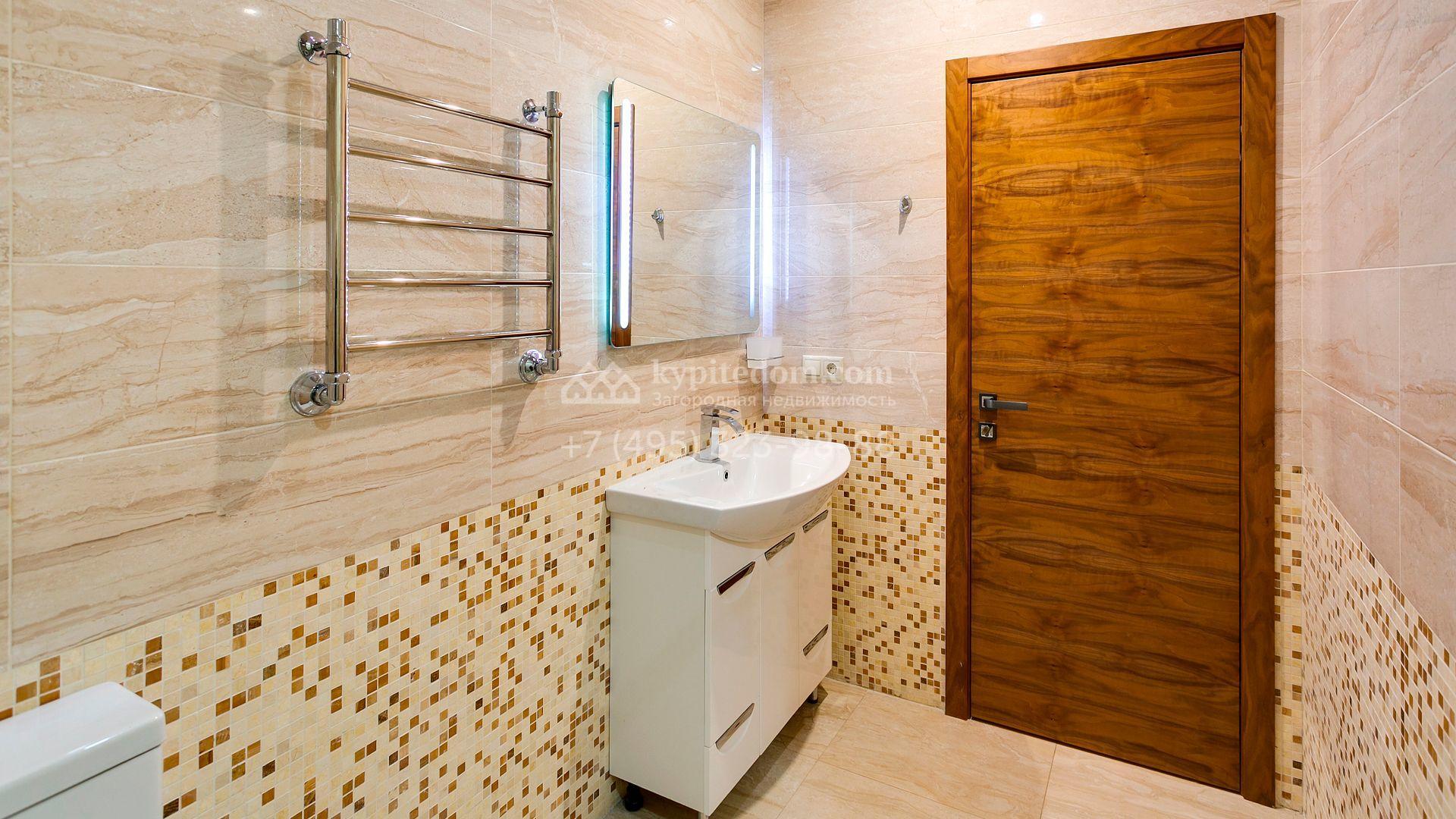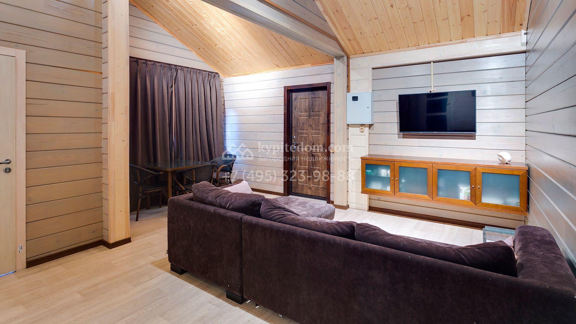 Трехэтажный таунхаус площадью 400 м² расположен на полевом участке 10 соток. Фасад выполнен из красного клинкерного кирпича, окна украшены белыми наличниками. Современный интерьер выполнен в теплой палитре оттенков, создающих атмосферу уюта. В доме спланировали 5 спален, гостиную-столовую-кухню, бильярдную с зоной отдыха и бассейн. На территории предусмотрены гараж на 2 машины, паркинг на 6 машин, баня с 2 гостевыми спальнями и зона барбекю. На участке выполнен ландшафтный дизайн, вымощены дорожки.