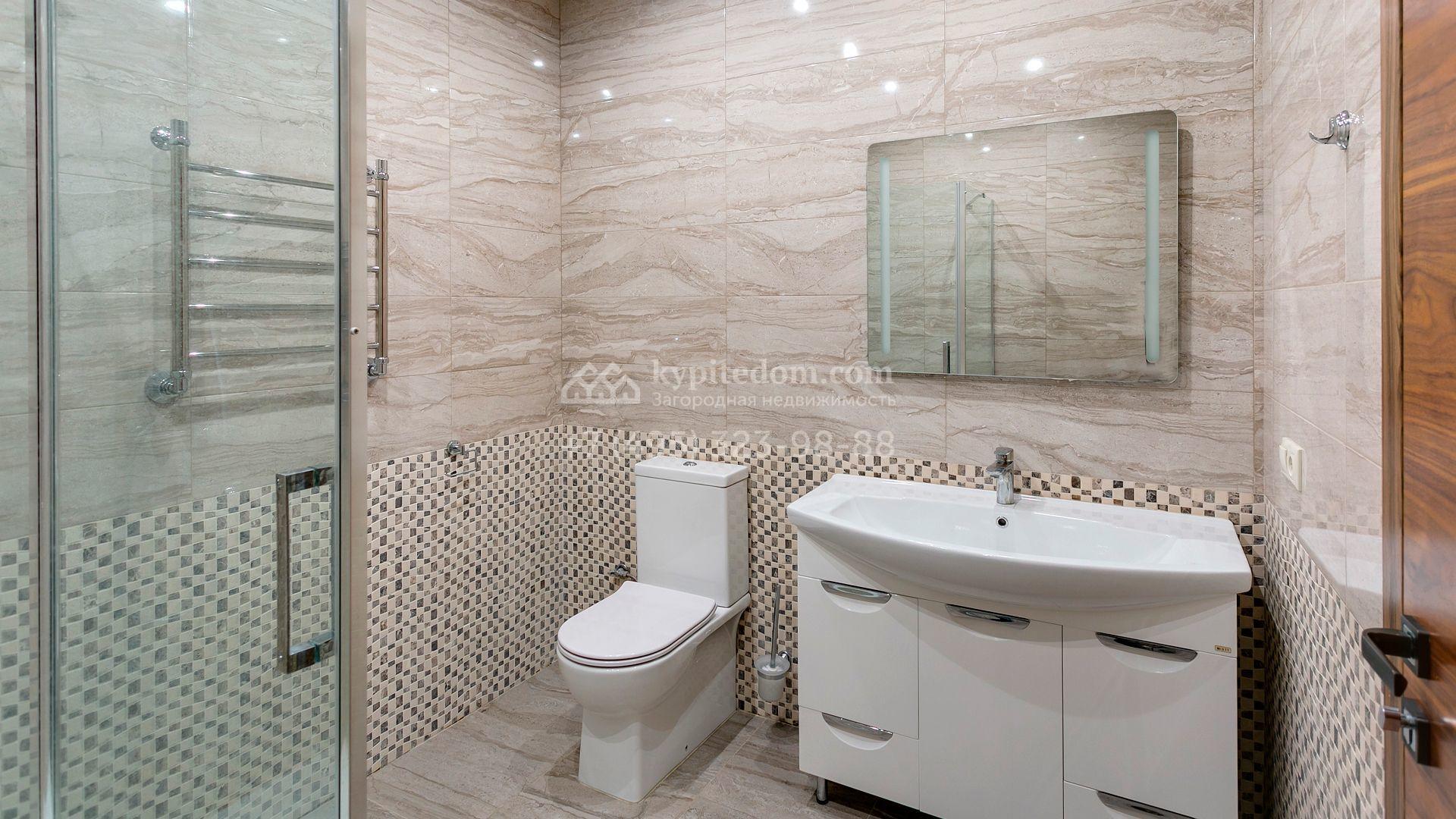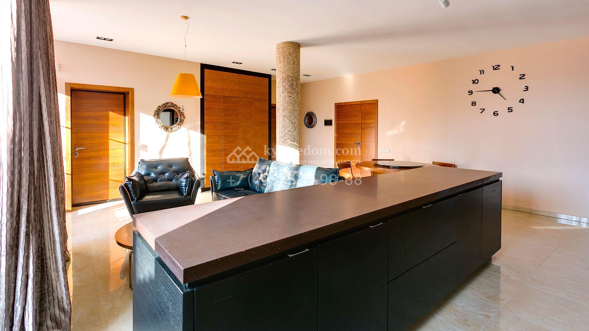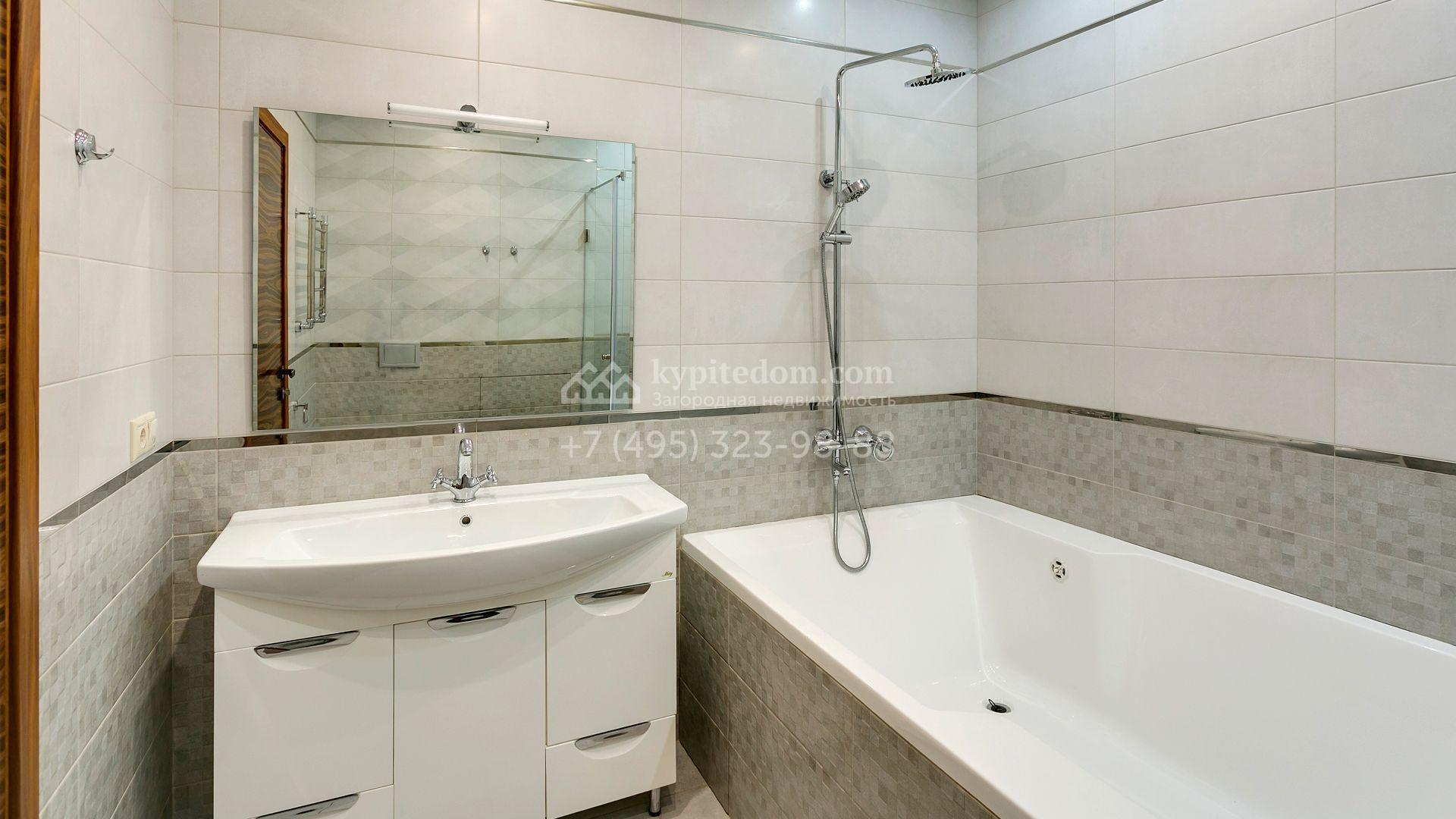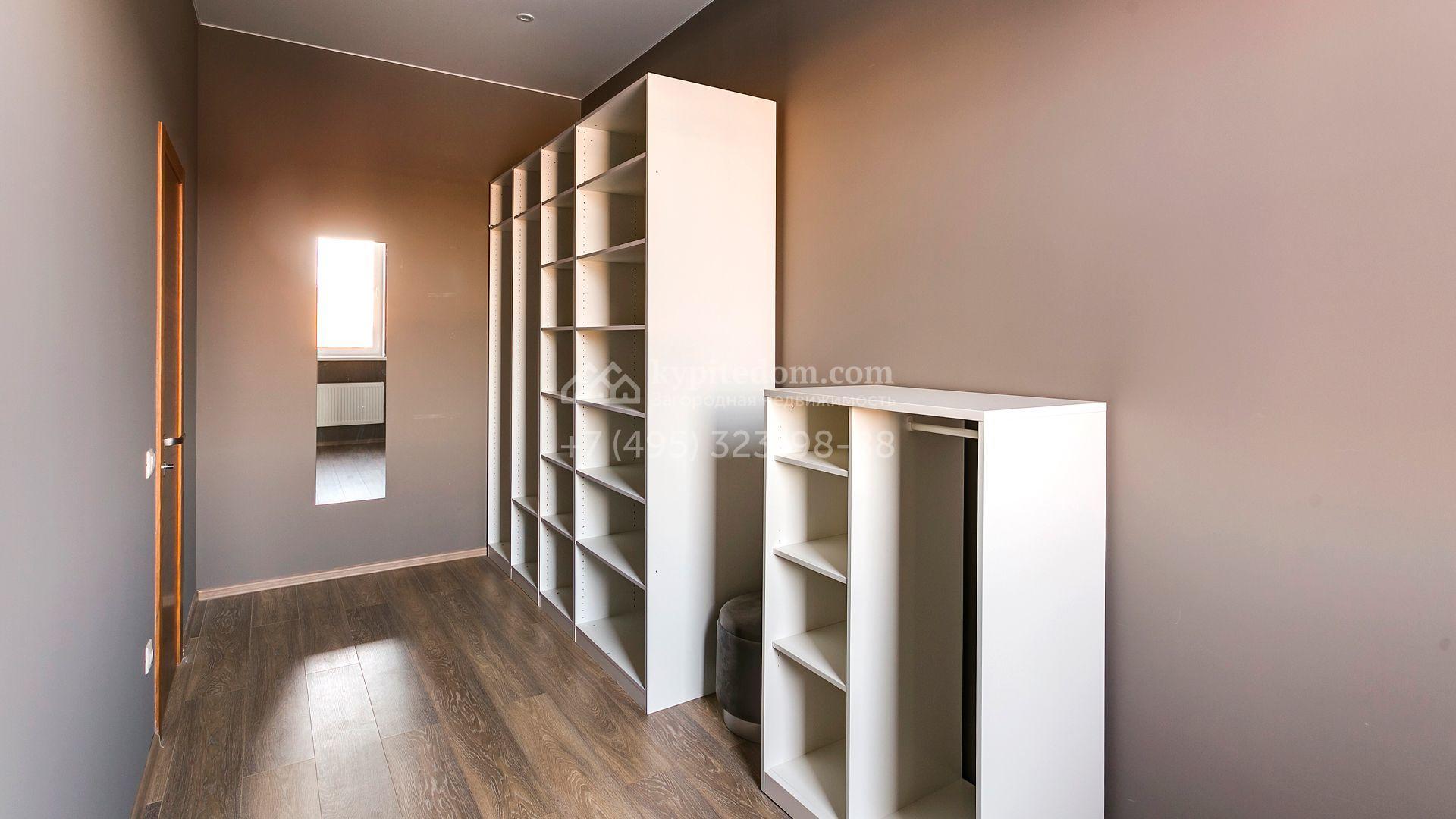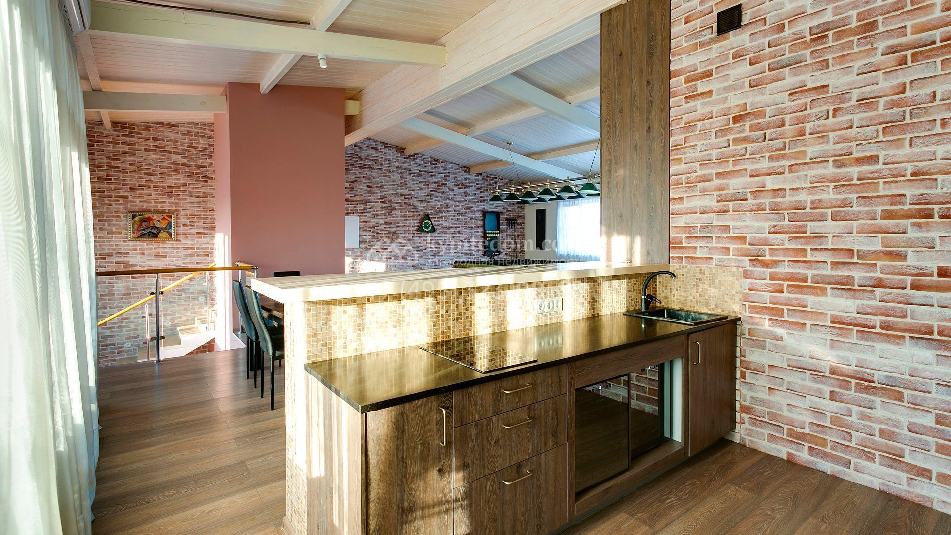 Трехэтажный таунхаус площадью 400 м² расположен на полевом участке 10 соток. Фасад выполнен из красного клинкерного кирпича, окна украшены белыми наличниками. Современный интерьер выполнен в теплой палитре оттенков, создающих атмосферу уюта. В доме спланировали 5 спален, гостиную-столовую-кухню, бильярдную с зоной отдыха и бассейн. На территории предусмотрены гараж на 2 машины, паркинг на 6 машин, баня с 2 гостевыми спальнями и зона барбекю. На участке выполнен ландшафтный дизайн, вымощены дорожки.