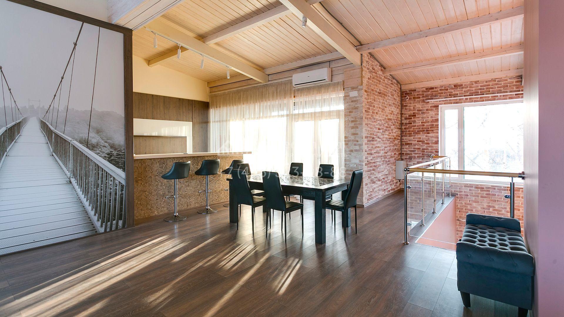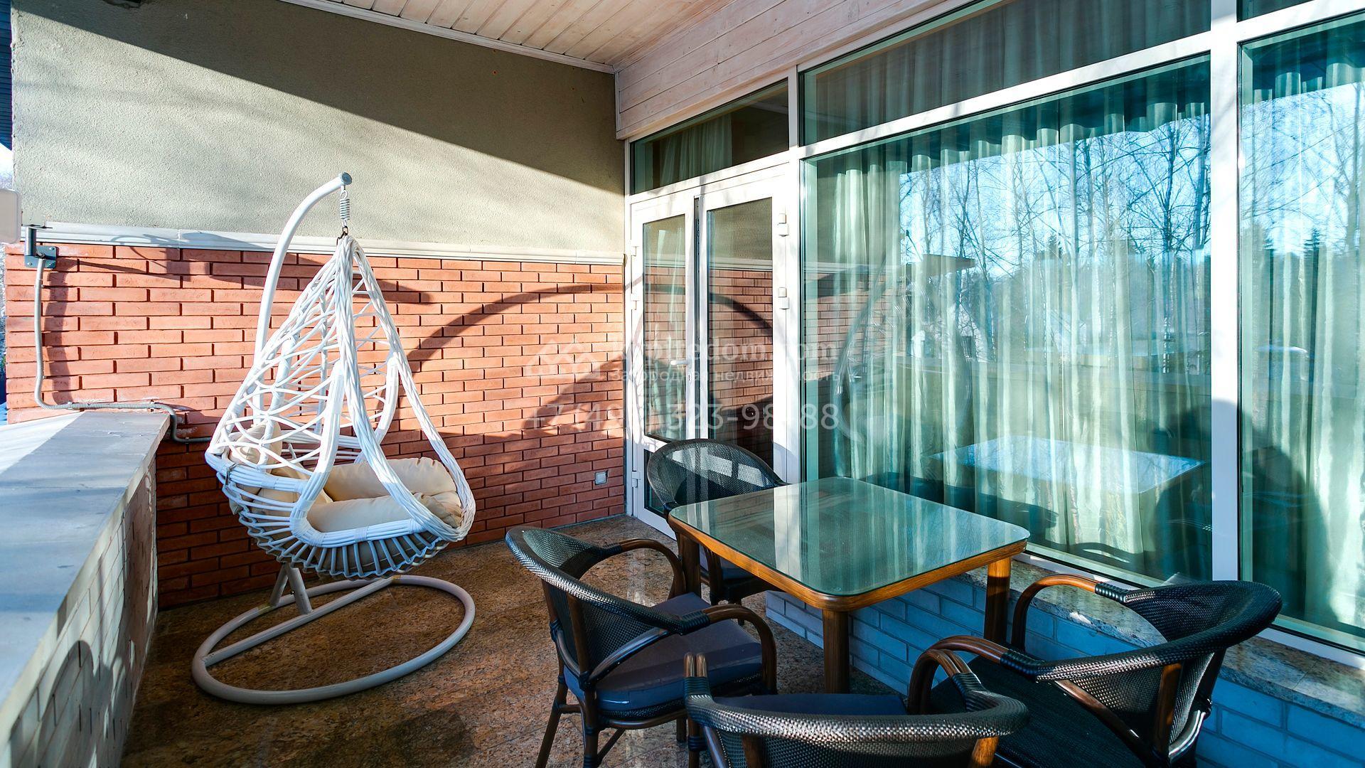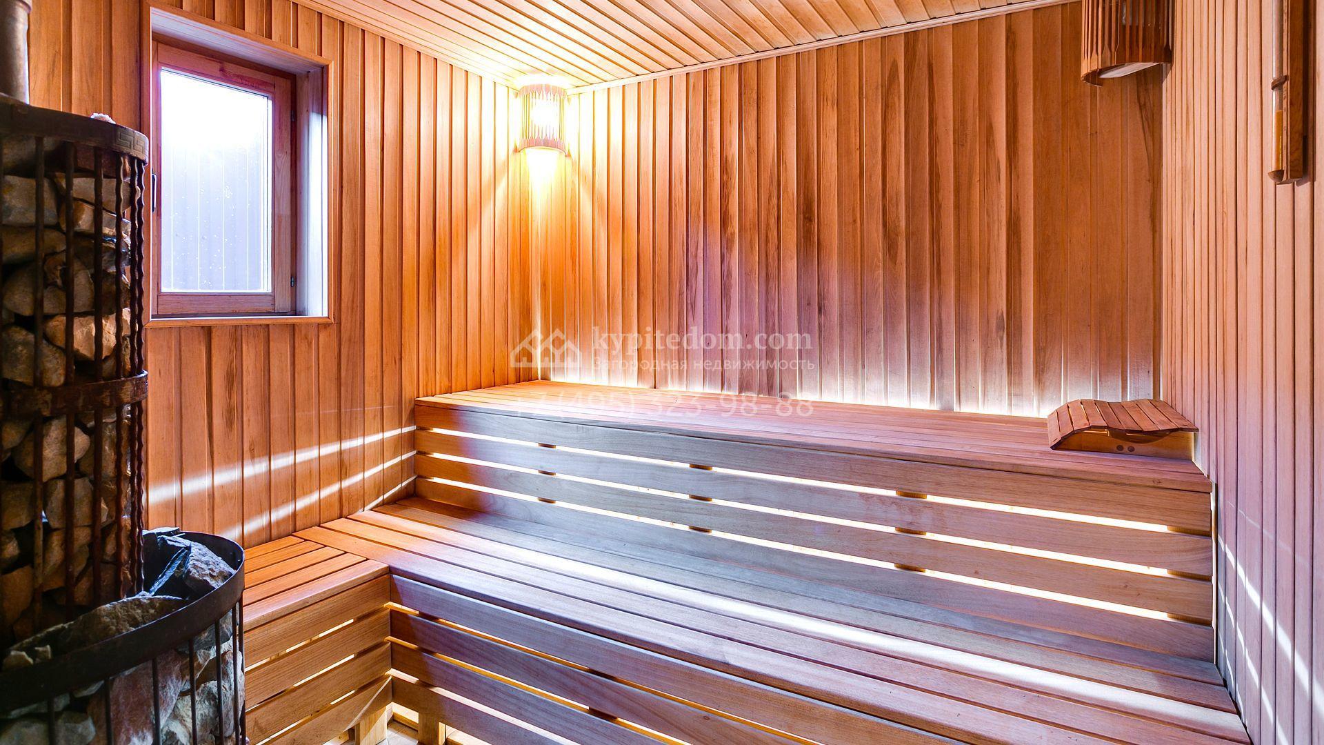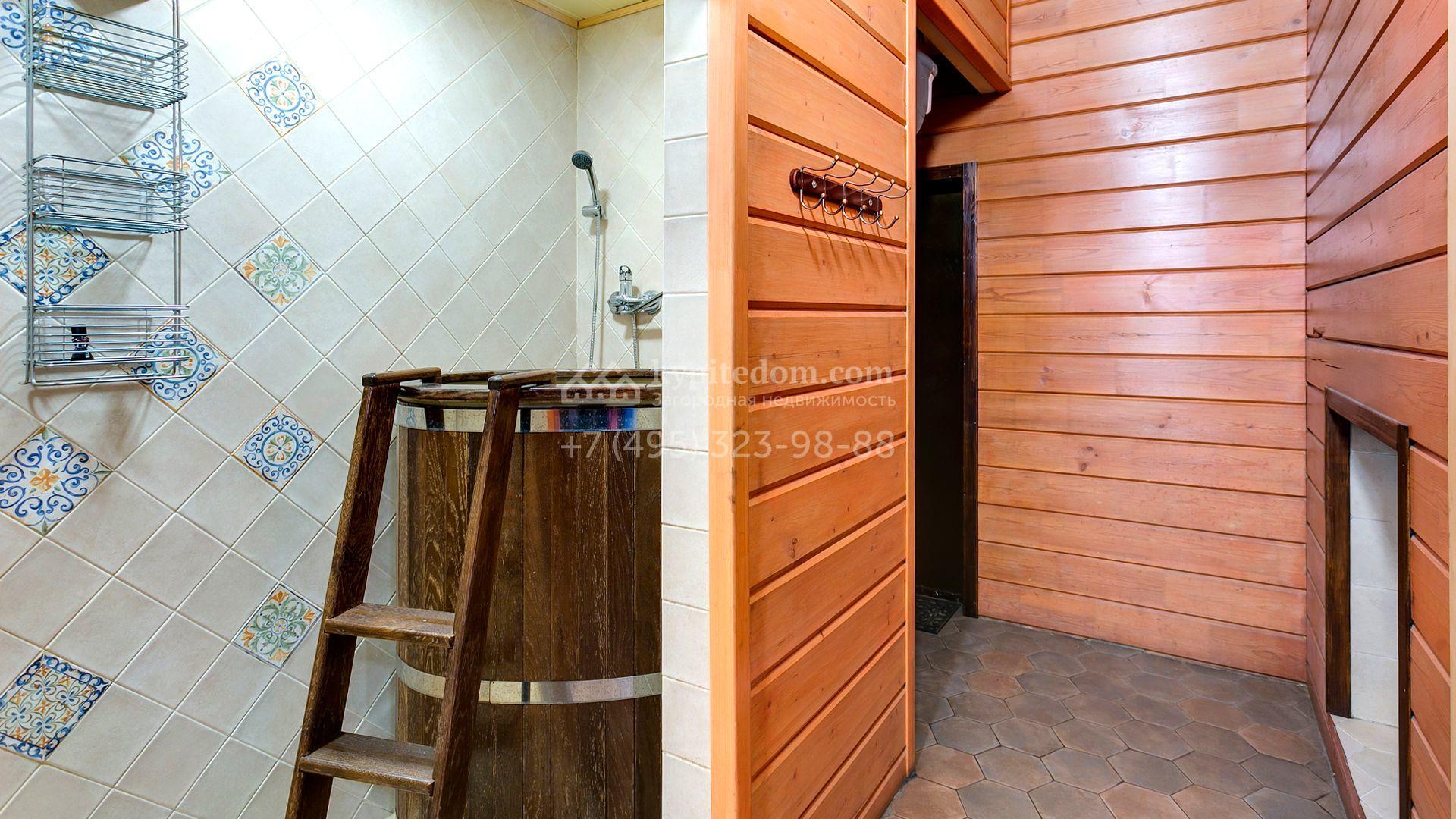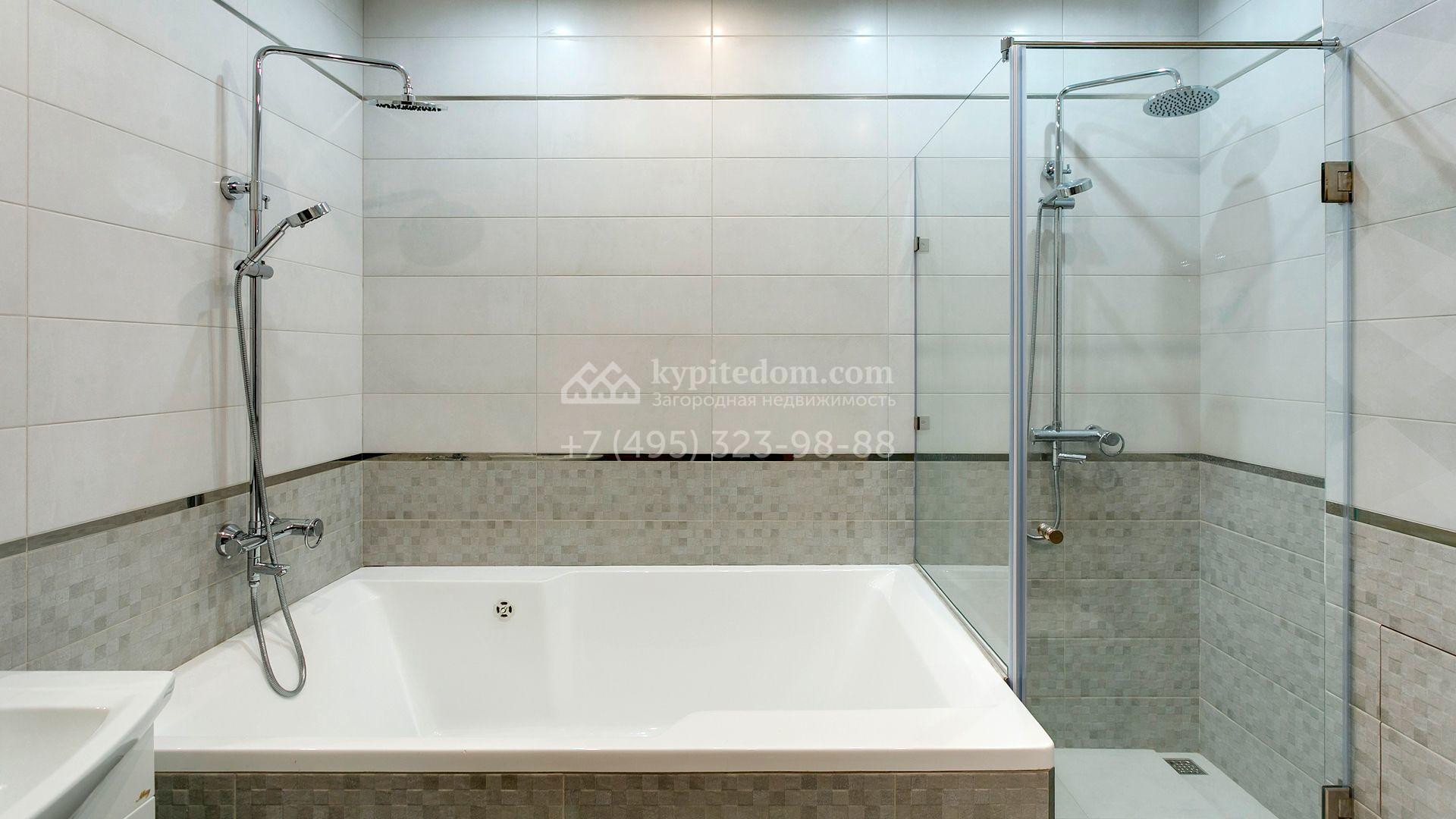 Трехэтажный таунхаус площадью 400 м² расположен на полевом участке 10 соток. Фасад выполнен из красного клинкерного кирпича, окна украшены белыми наличниками. Современный интерьер выполнен в теплой палитре оттенков, создающих атмосферу уюта. В доме спланировали 5 спален, гостиную-столовую-кухню, бильярдную с зоной отдыха и бассейн. На территории предусмотрены гараж на 2 машины, паркинг на 6 машин, баня с 2 гостевыми спальнями и зона барбекю. На участке выполнен ландшафтный дизайн, вымощены дорожки.