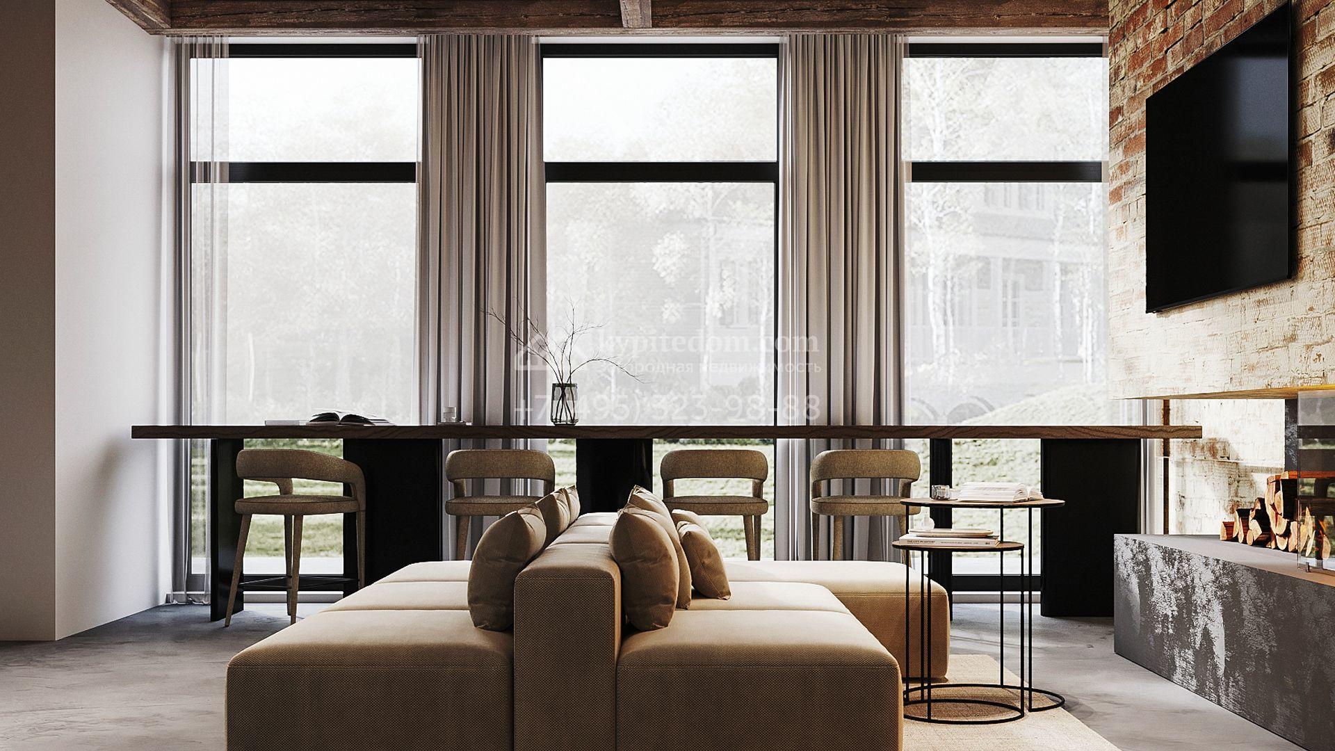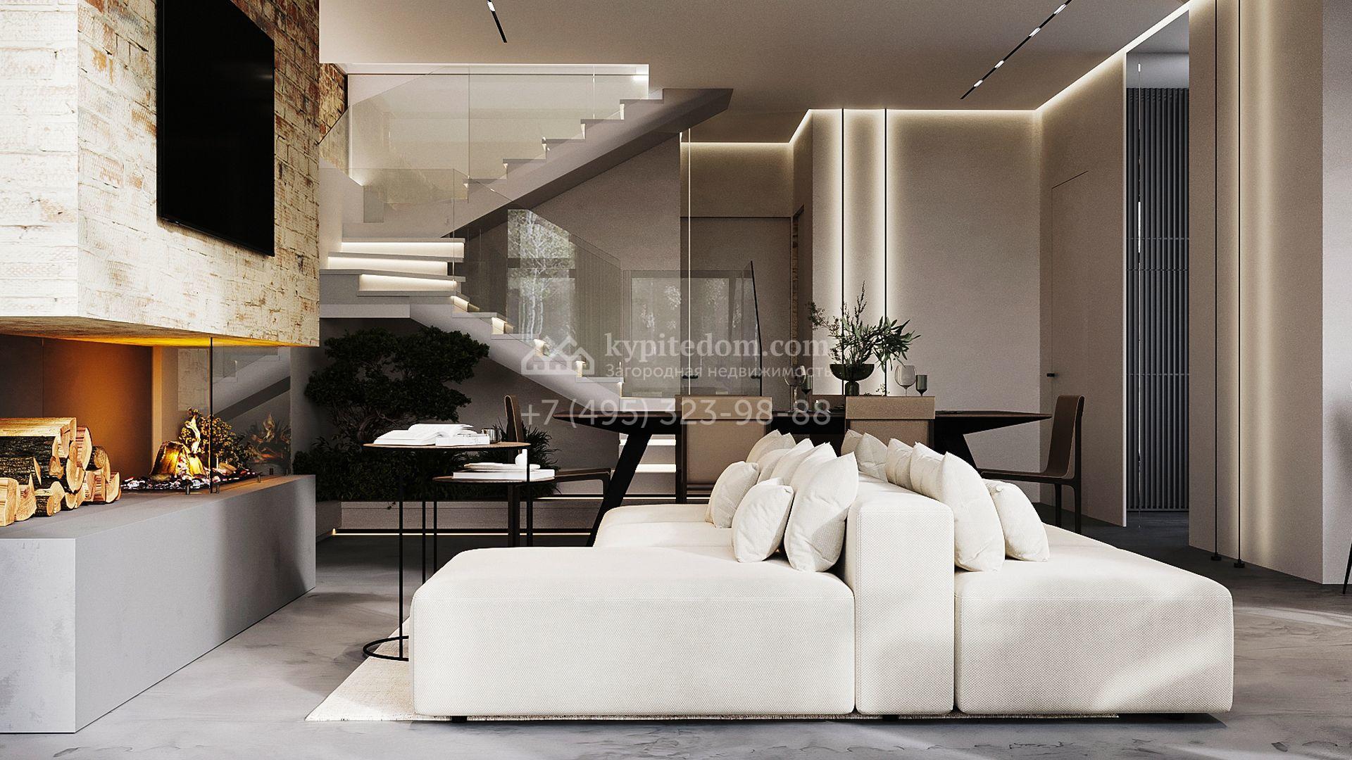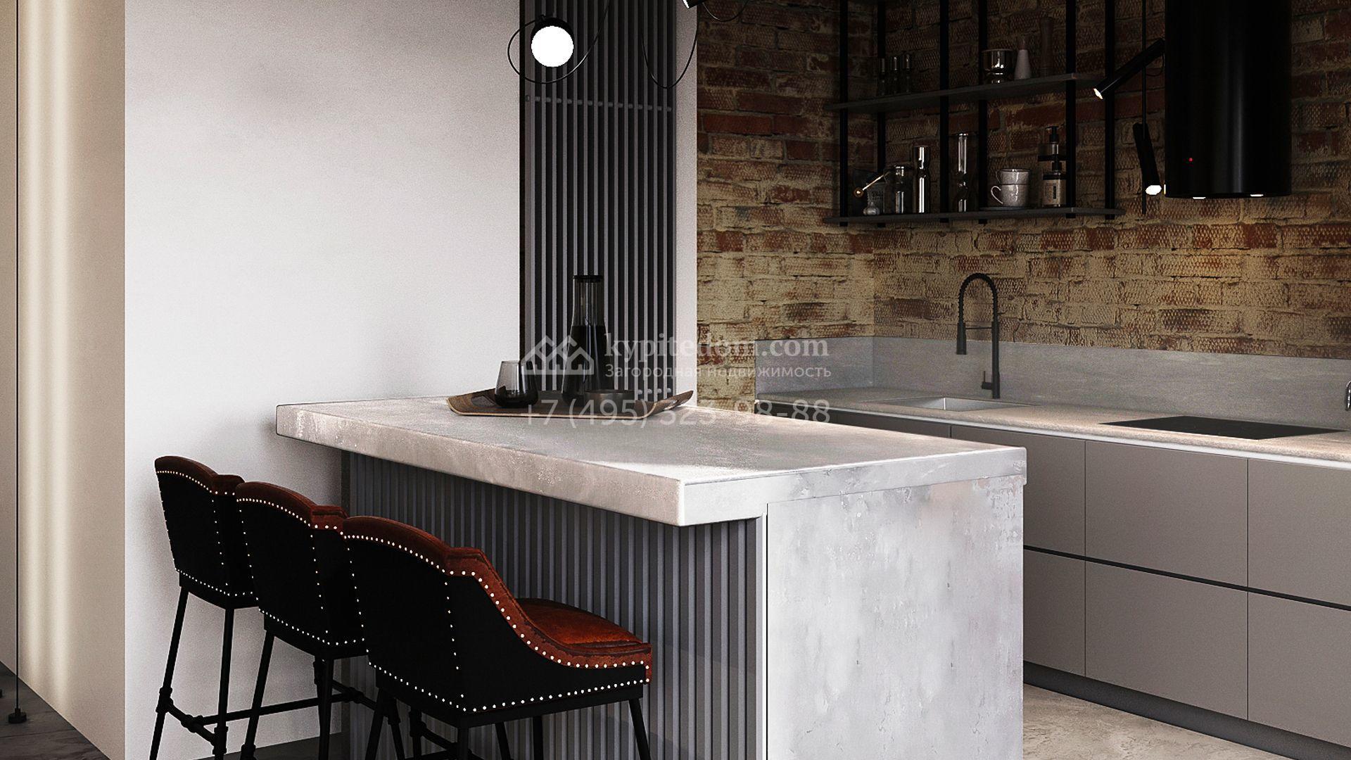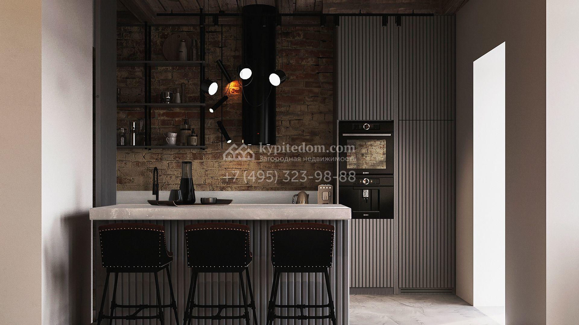 Трехуровневый таунхаус площадью 363 м² расположен на уютном участке 5 соток. Интерьер оформлен в стиле «лофт» с использованием теплых приглушенных оттенков, имитации кирпичной кладки и подсветки. В резиденции разместили 5 спален, уютную гостиную-кухню с камином и выходом на террасу, дровяную сауну и 2 комнаты, в которых можно обустроить зоны отдыха и досуга. Участок подойдет для размещения барбекю.