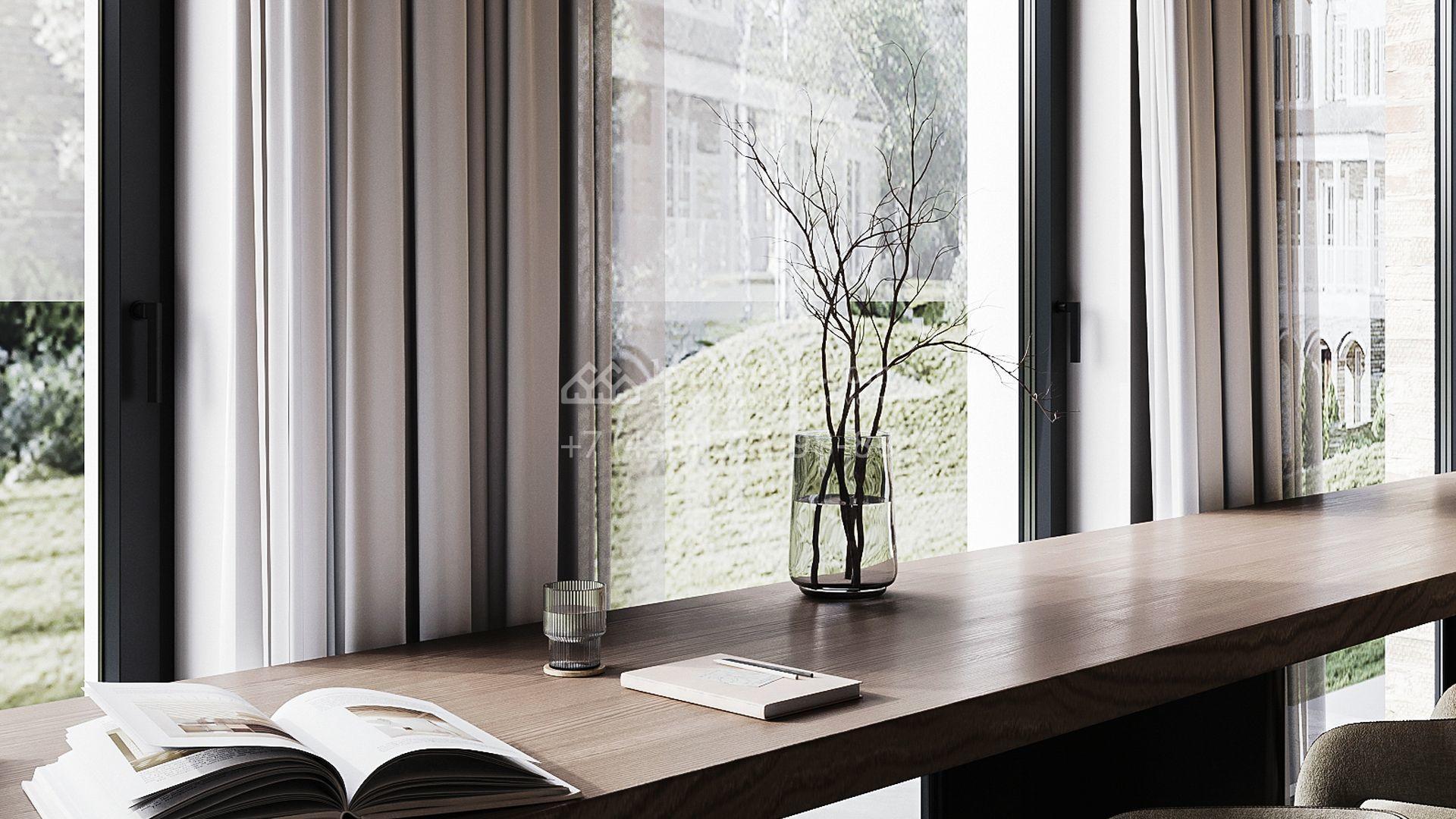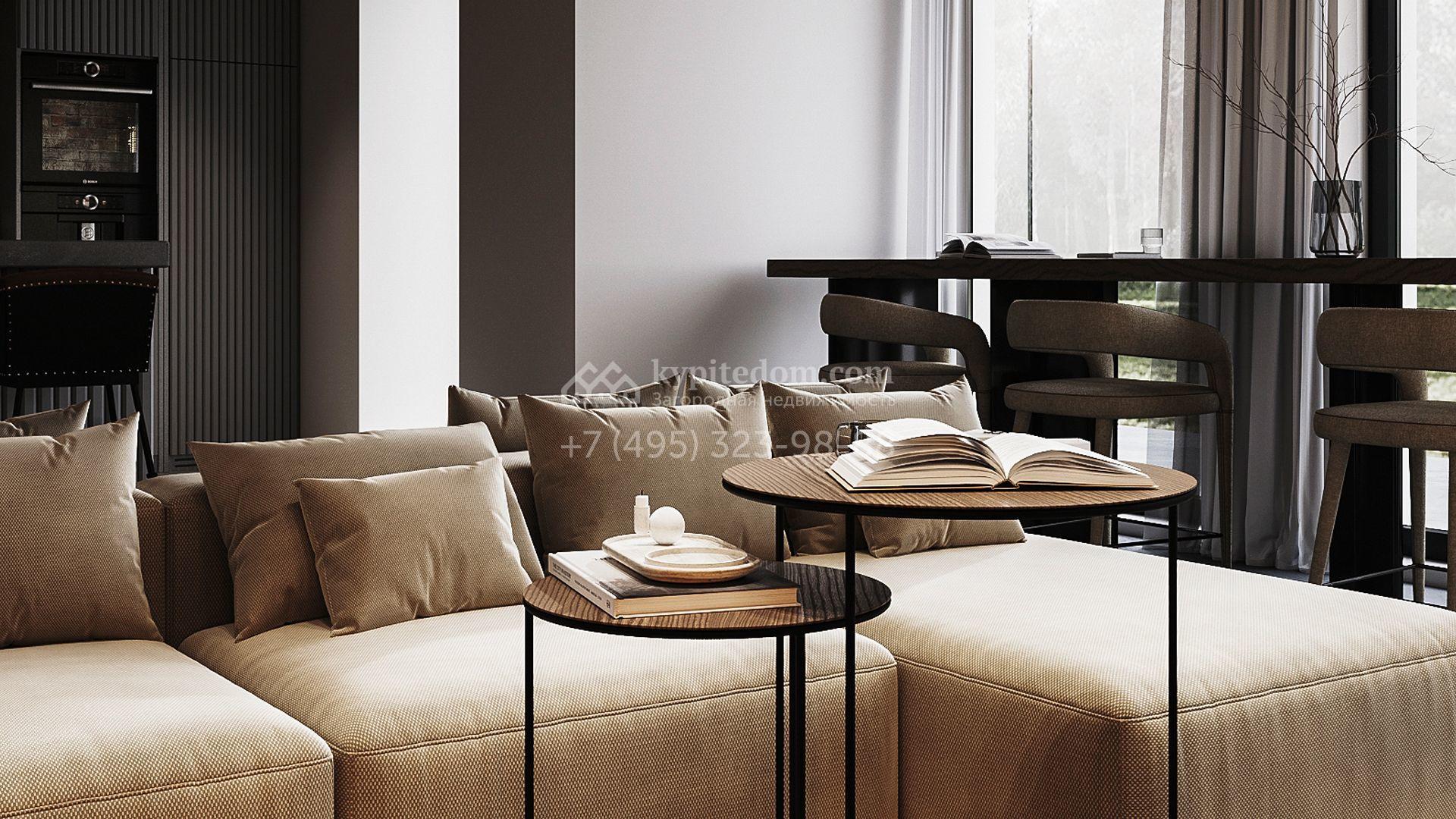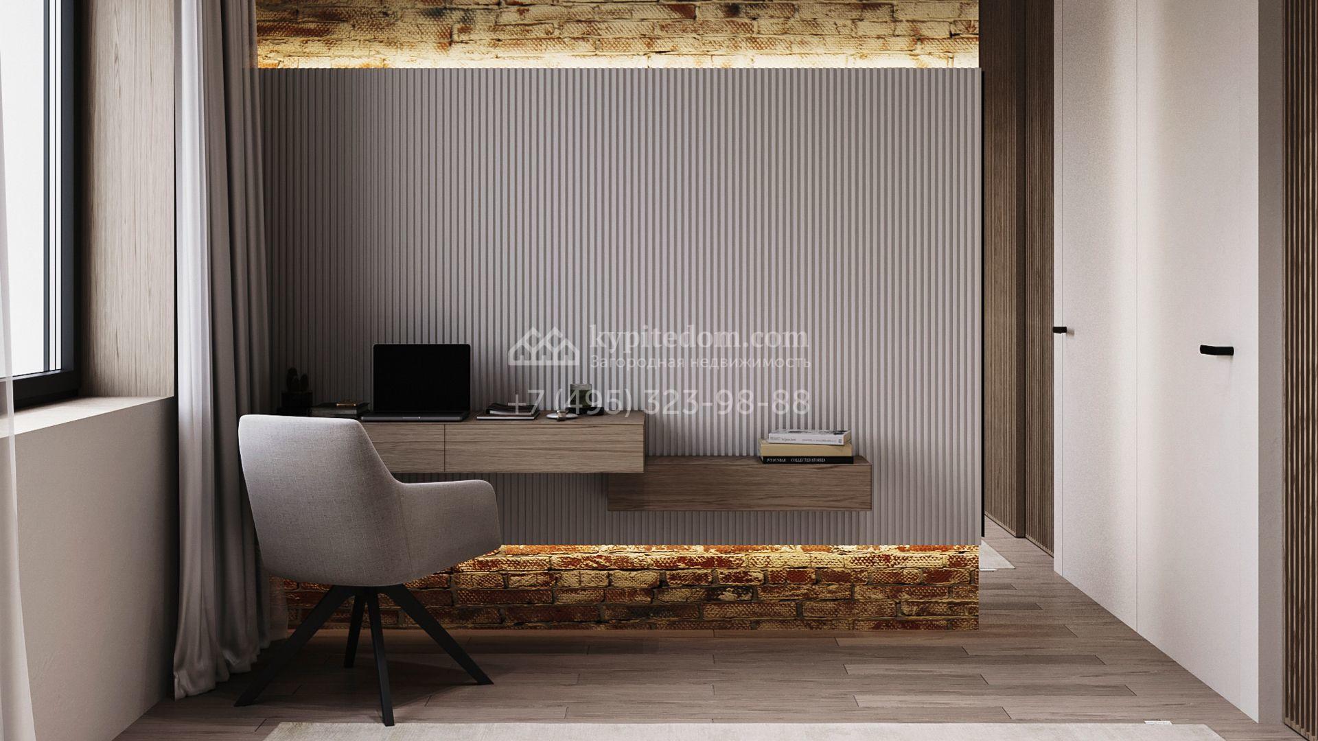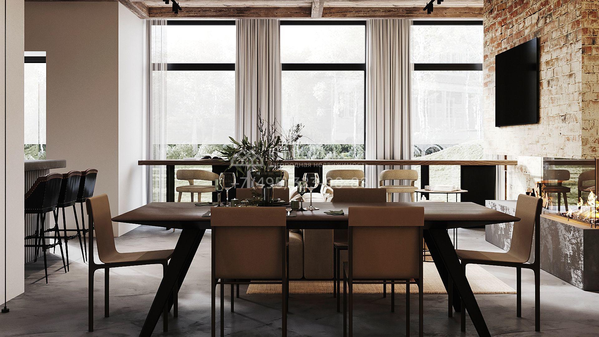 Трехуровневый таунхаус площадью 363 м² расположен на уютном участке 5 соток. Интерьер оформлен в стиле «лофт» с использованием теплых приглушенных оттенков, имитации кирпичной кладки и подсветки. В резиденции разместили 5 спален, уютную гостиную-кухню с камином и выходом на террасу, дровяную сауну и 2 комнаты, в которых можно обустроить зоны отдыха и досуга. Участок подойдет для размещения барбекю.