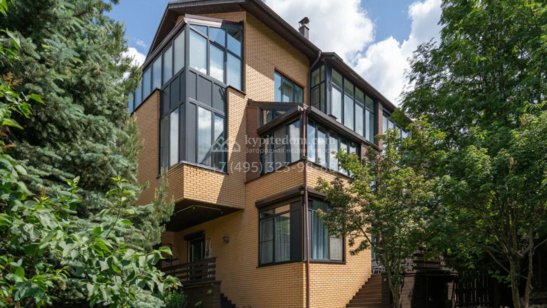 Загородный коттедж площадью 500 м² расположен на участке 5,8 соток в тихой части поселка с живописным видом на лес. Современный фасад облицован кирпичом в бежево-коричневой гамме. Большие панорамные окна наполняют внутреннее пространство воздухом и солнечными лучами.