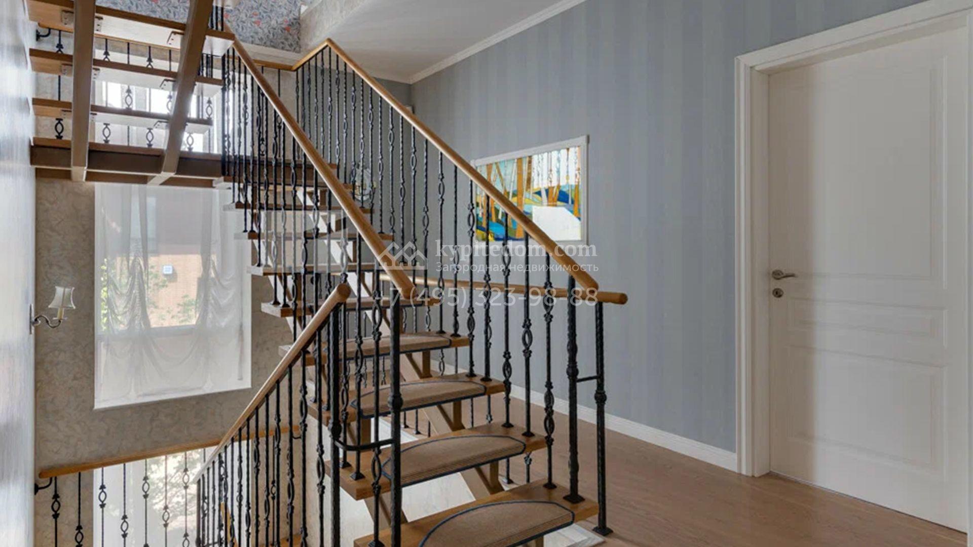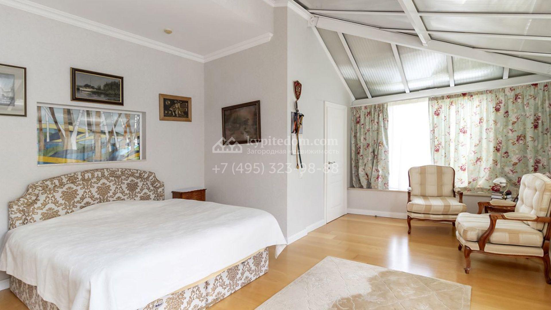 Планировка включает просторную гостиную с израцовым камином, объединенную с кухней-столовой с небольшим островом, 5 уютных спален, кабинет, комнату отдыха, сауну, террасу и гараж, рассчитанный на 2 машины. Также перед коттеджем предусмотрена парковочная площадка для 3-х автомобилей. На участке выполнен ландшафтный дизайн, засеян газон, аккуратно вымощены дорожки и обустроена зона для барбекю.