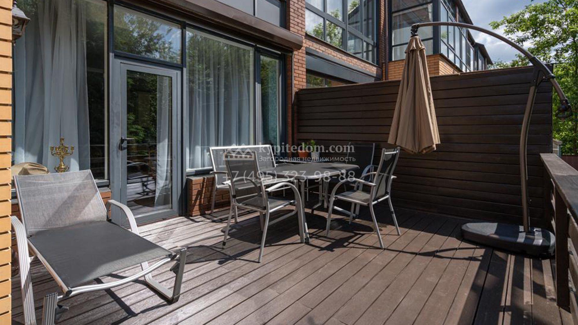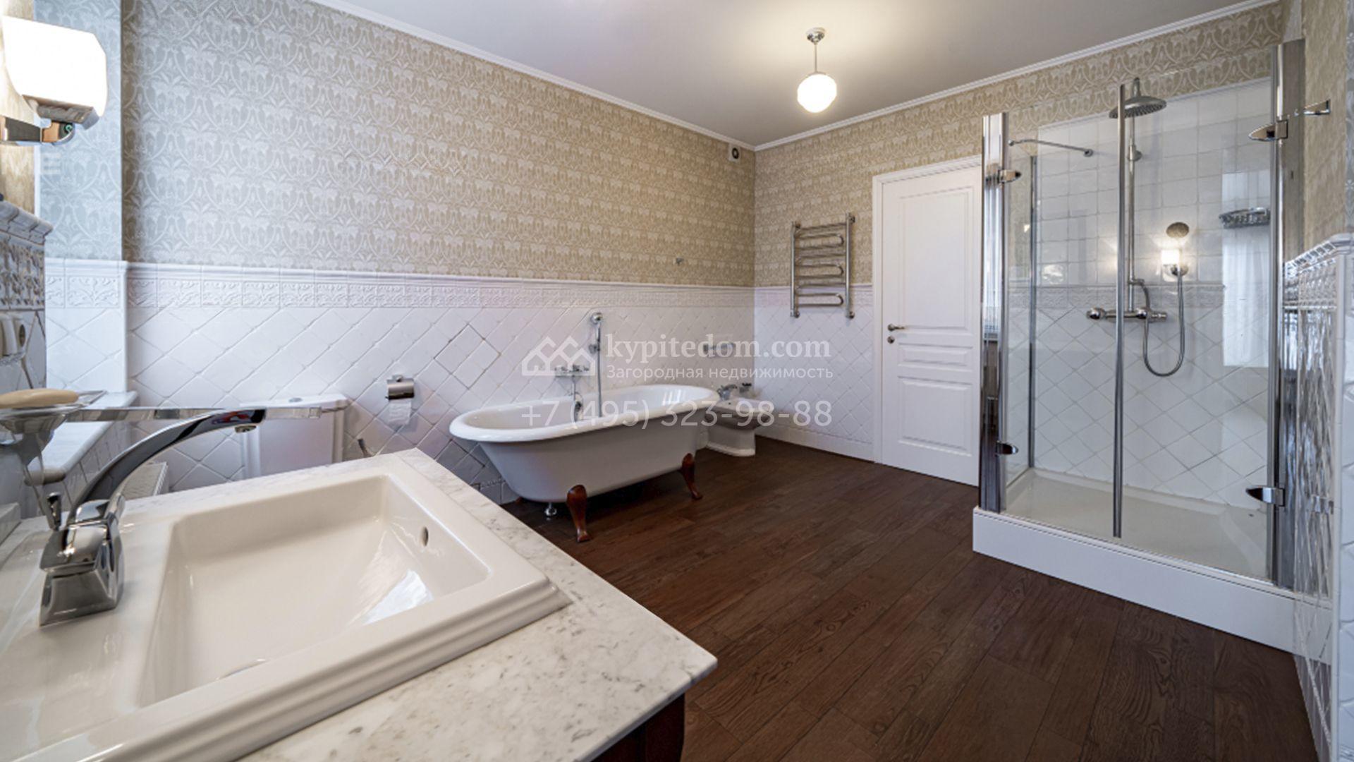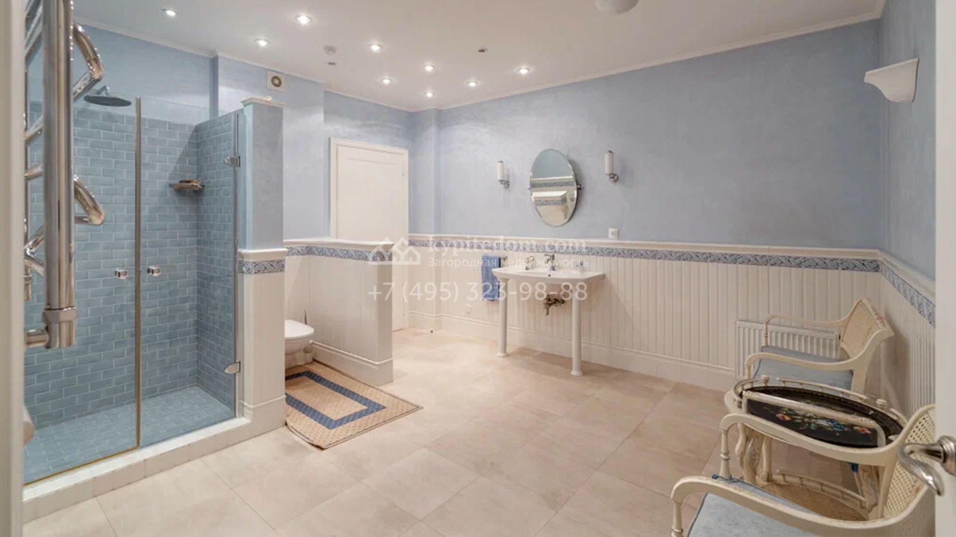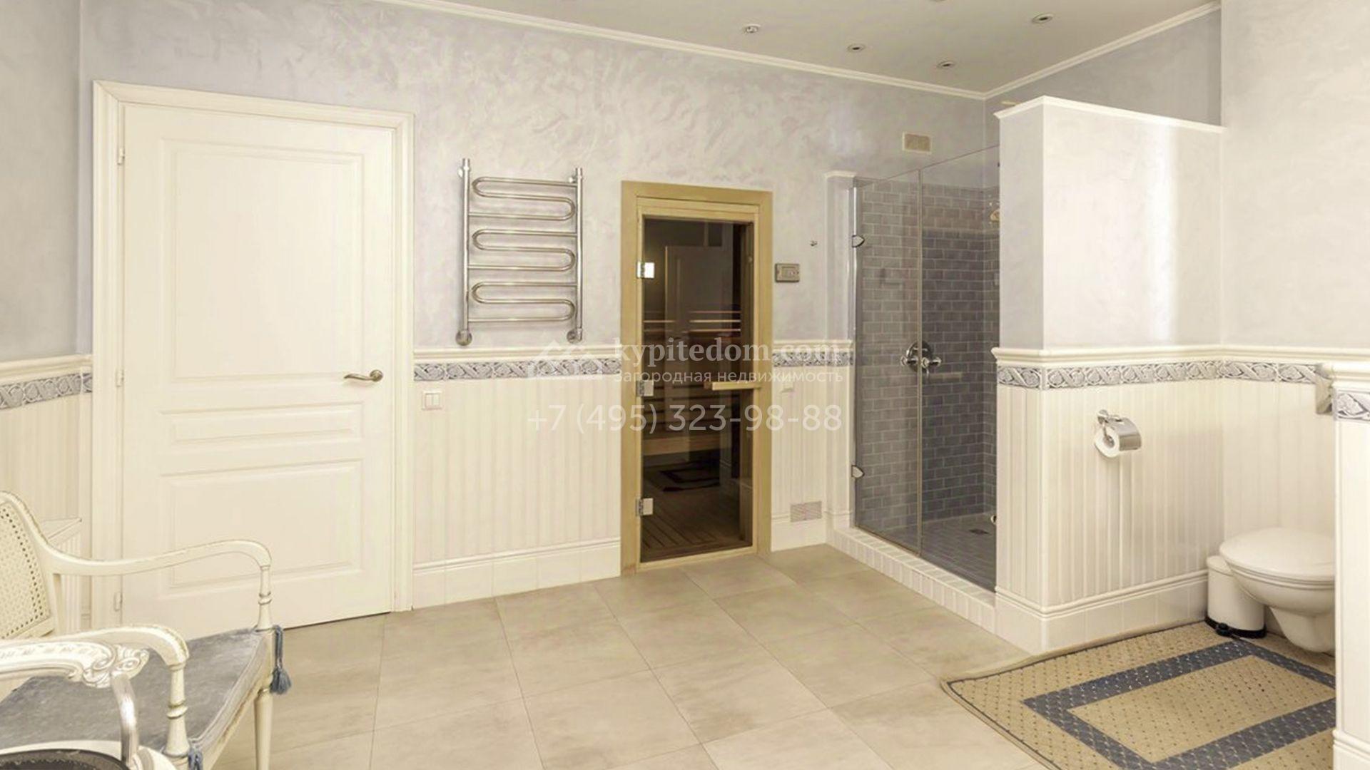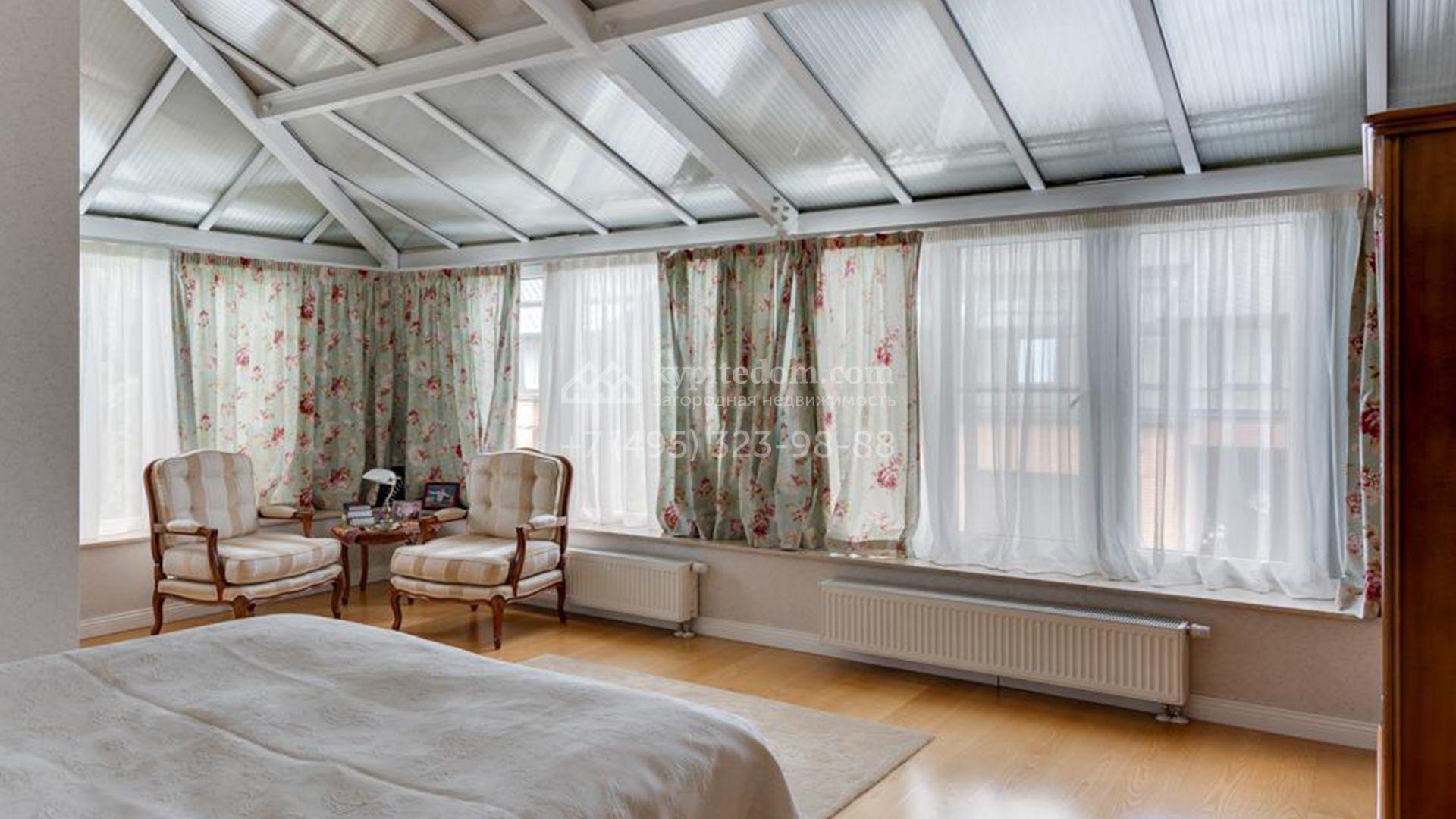 Интерьер с элементами английского стиля выдержан в светлых тонах и отделан с использованием натуральных материалов — дерева и мрамора. Дом укомплектован итальянской и английской мебелью, оснащен бытовой техникой Miele и сантехникой. Для дополнительного комфорта в любое время года установлены кондиционеры Daikin.