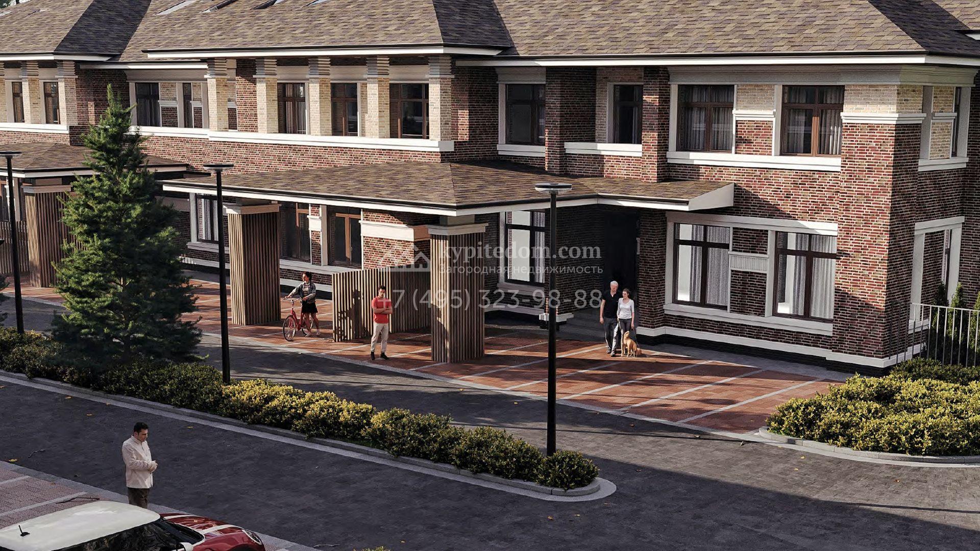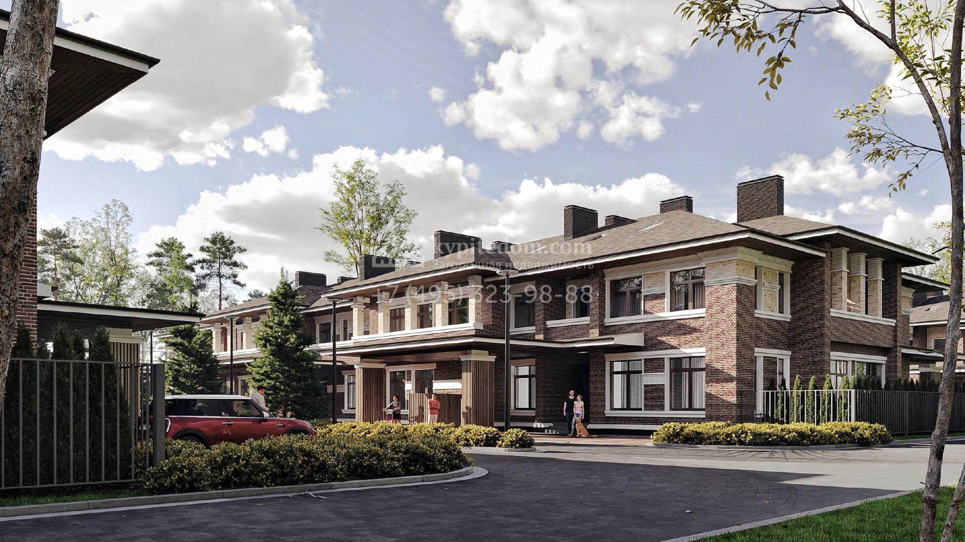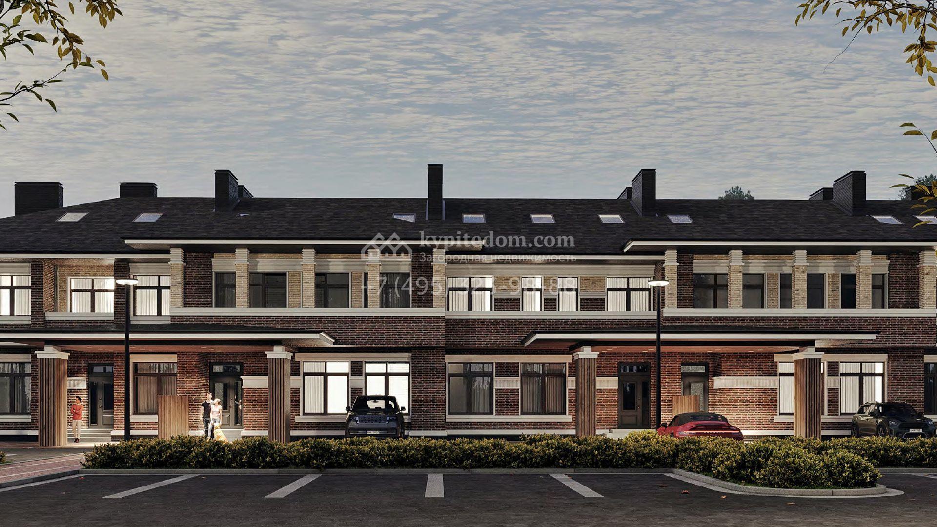 Загородный таунхаус без отделки площадью 470 м² расположен на просторном участке 7,2 сотки. Фасад здания оформлен в современном стиле и облицован коричневой клинкерной плиткой с декоративными молдингами, подшив кровли и навесы выполнены из лиственницы, установлены теплые двухкамерные стеклопакеты Rehau. В доме спланировали 6 спален, гостиную-столовую, кухню, кабинет и игровую. На участке засеян газон, высажены туи, территория со стороны главного фасада выполнена из тротуарной брусчатки, предусмотрены 3 парковочных места, одно из которых под навесом.