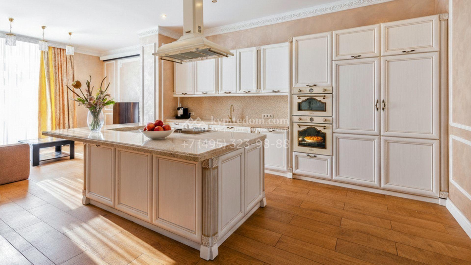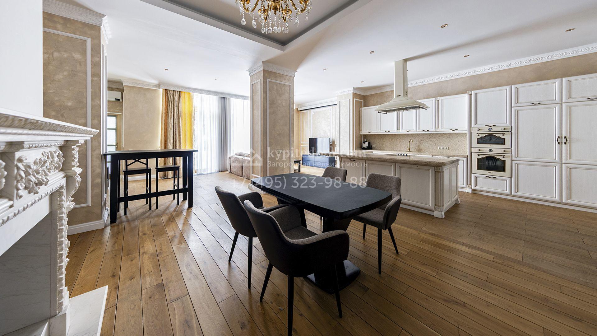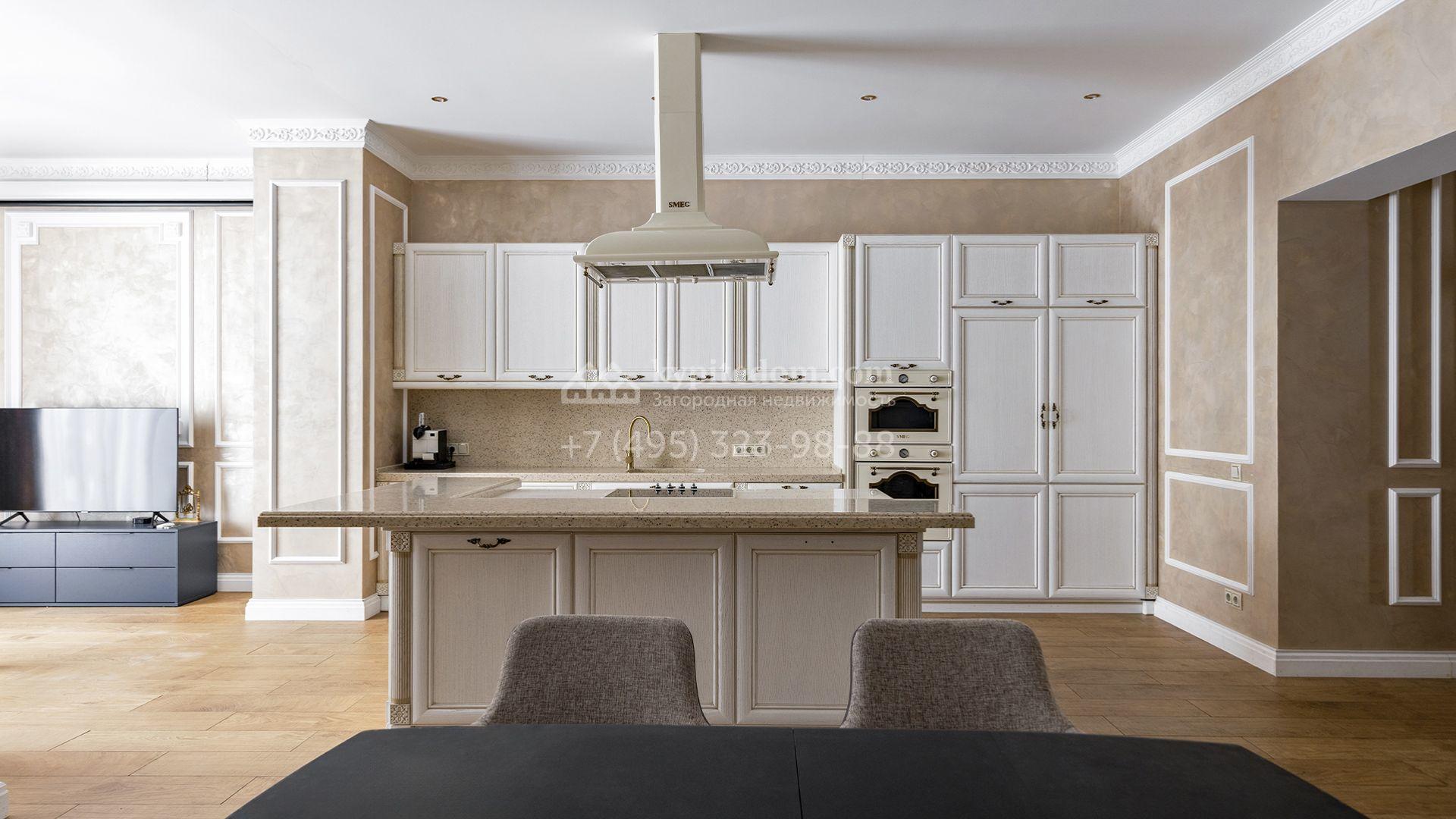 Загородный таунхаус площадью 265 м² расположен на полевом участке 3 сотки, на тихой улице в самом сердце посёлка. Современный фасад гармонично сочетает фактуры дерева и благородного травертина. Панорамные окна открывают живописные виды и наполняют внутренние пространства солнечными лучами. Интерьеры, выполненные в неоклассическом стиле, выдержаны в светлых тонах, украшены изящными молдингами и люстрами, а также укомплектованы комфортной мебелью. Кондиционирование и система «тёплый пол» поддерживают идеальный микроклимат в течение всего года.