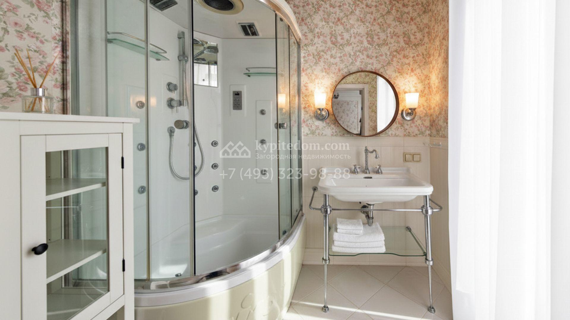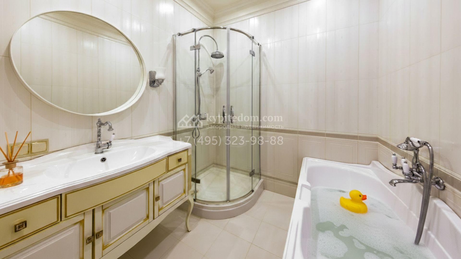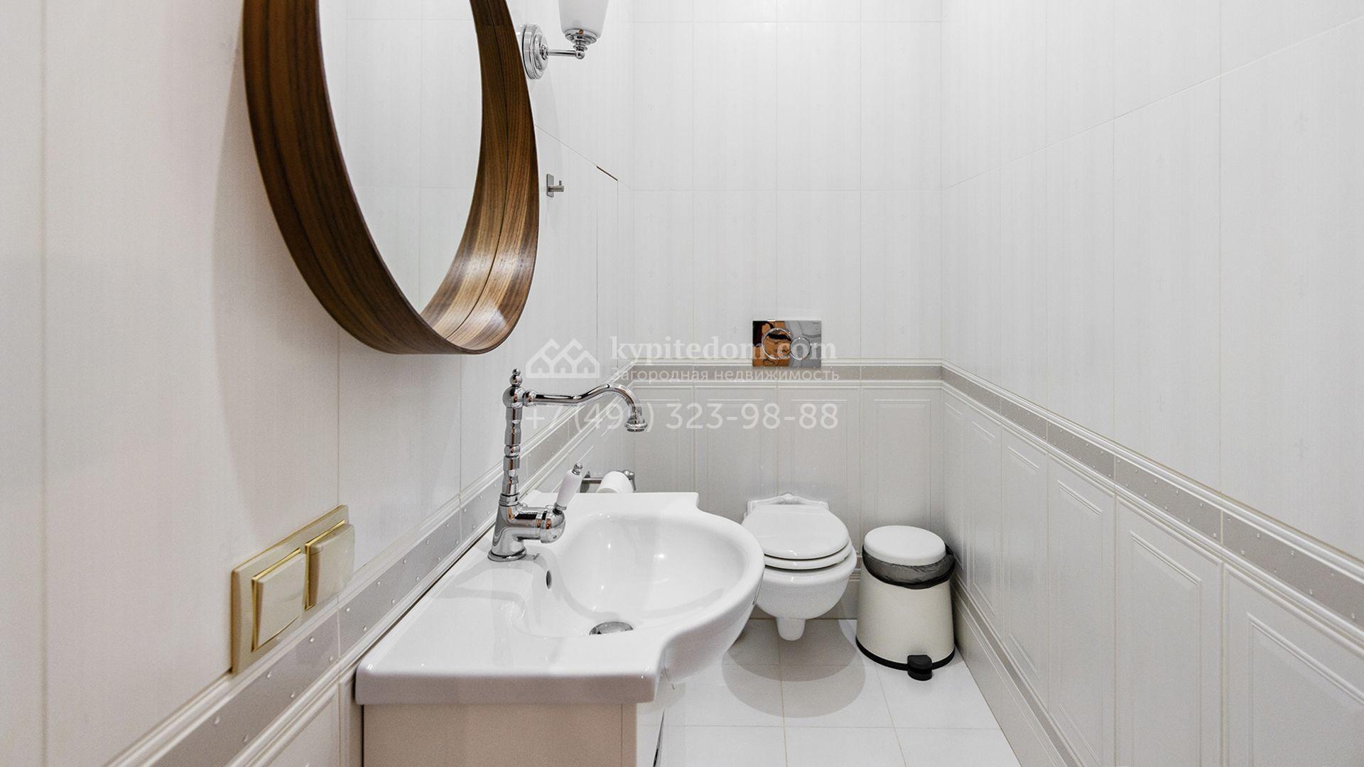 Центром притяжения в доме стала гостиная-столовая с камином, объединённая с кухней, оснащённой удобным островом. Кроме того, планировка включает четыре уютные спальни, приватный кабинет и вместительные гардеробные. На террасах и балконах будет приятно проводить время, встречая рассвет или провожая закат с чашечкой кофе. Оставить машину можно во встроенном гараже. На участке засеян аккуратный газон, организована зона для барбекю с профессиональным мангалом, а по периметру высажены туи, создающие атмосферу уединения.