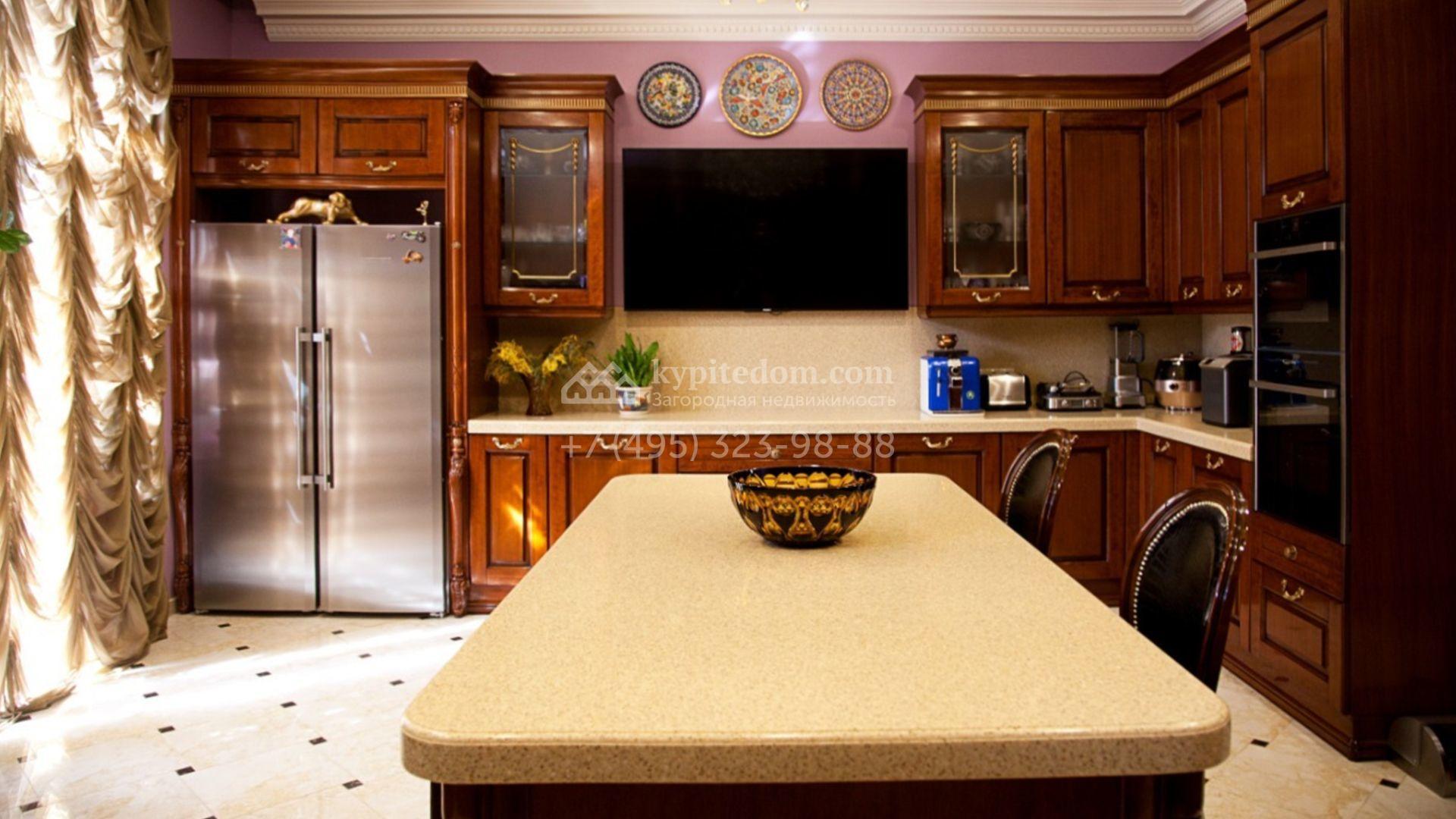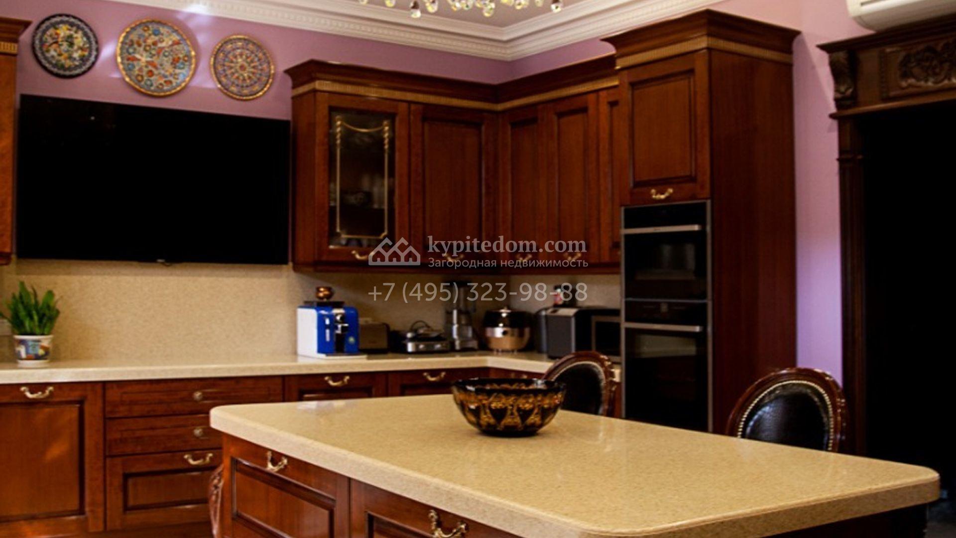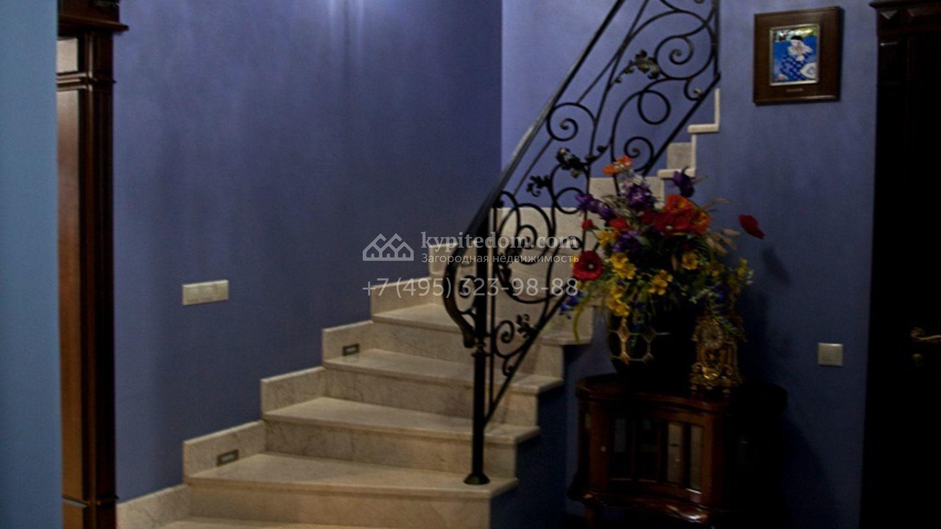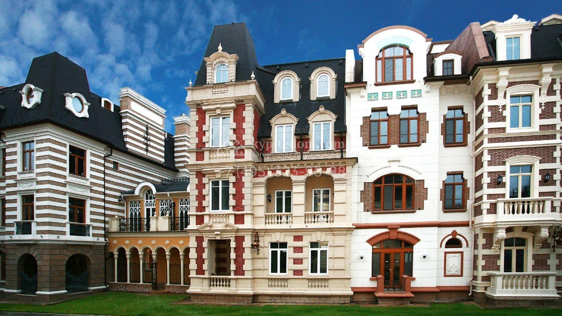 Уютный 4-этажный таунхаус во фламандском стиле площадью 320 м² расположен в середине секции на участке площадью 1,6 соток. Белый фасад таунхауса украшен ставнями на окнах и лепными элементами. На первом этаже расположена кухня с деревянными фасадами и встроенной техникой, и столовая с витражным потолком. На верхние этажи ведет лестница и лифт. На втором, третьем уровне расположены спальни с санузлами и гардеробными.