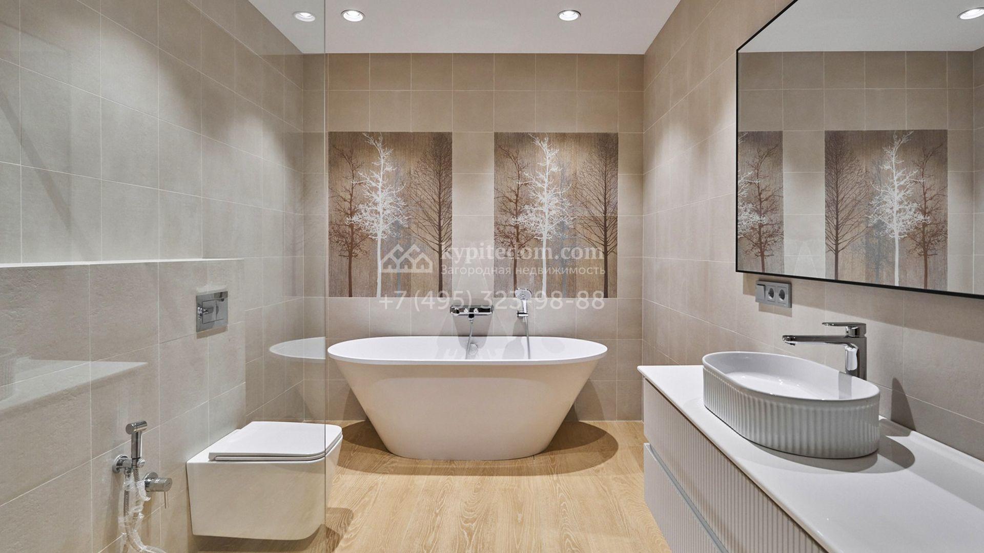 Современные интерьеры выдержаны в светлых тонах, отделаны с использованием итальянской плитки, а также частично укомплектованы мебелью и встроенной бытовой техникой Bosch. Канальное кондиционирование Mitsubishi обеспечивает идеальный микроклимат в течение всего года.