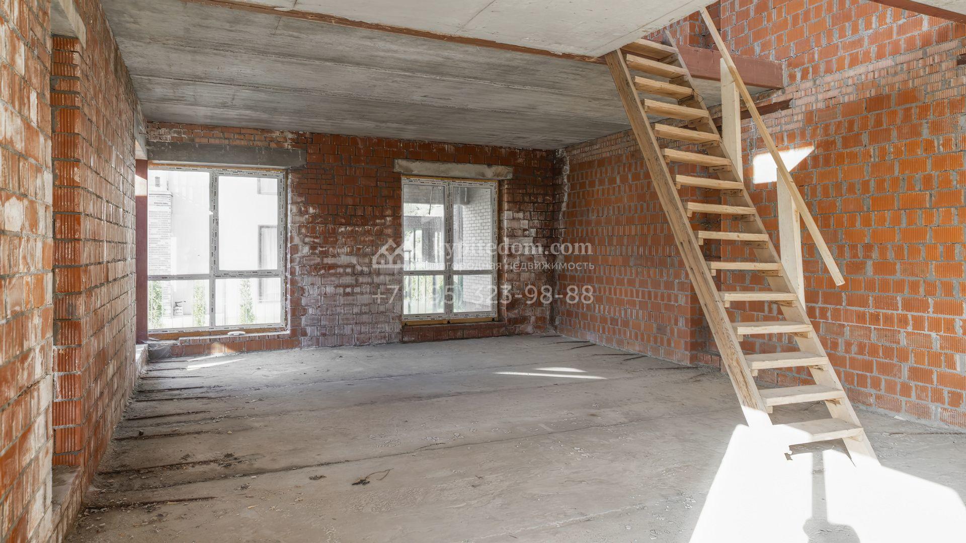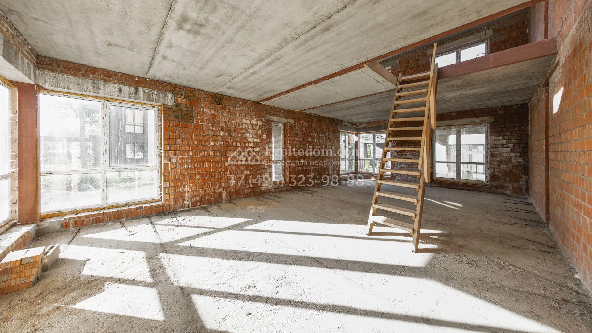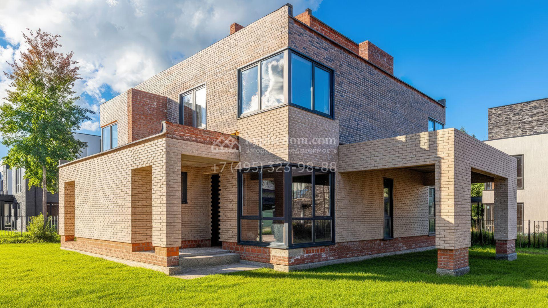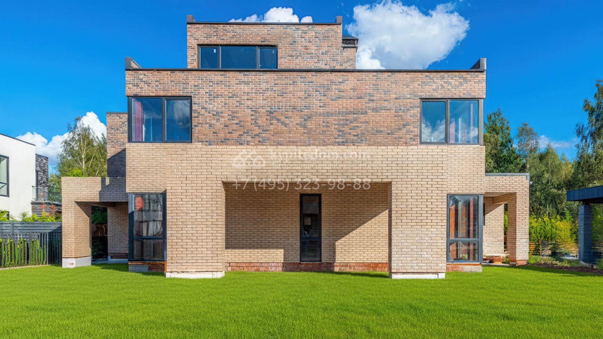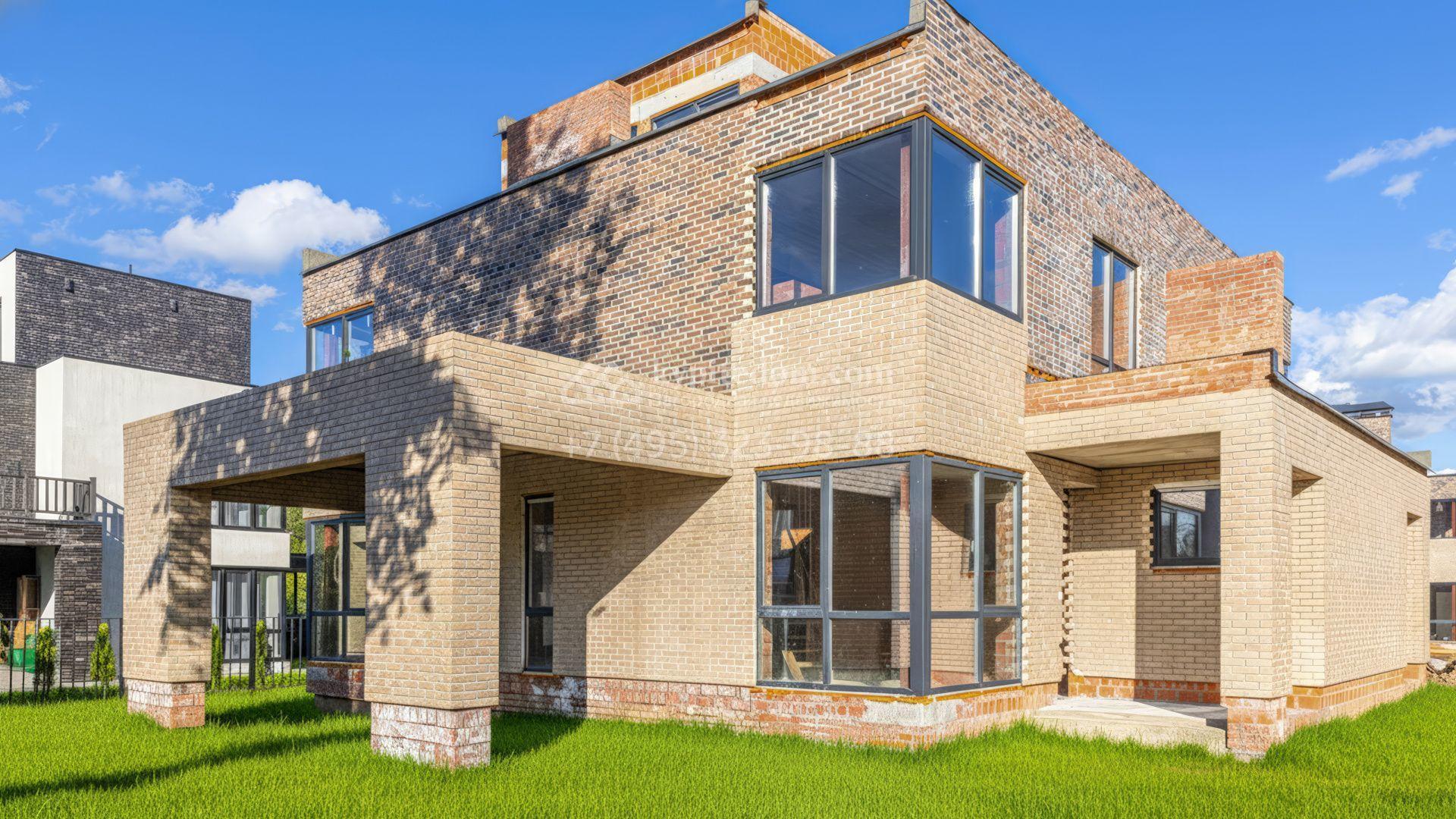 Новый загородный таунхаус площадью 225 м² расположен на полевом участке 4,7 соток. Современный фасад со строгими кубическими формами облицован клинкерным кирпичом. Благодаря большой площади панорамного остекления дом наполнен светом и воздухом. Свободная планировка и отсутствие отделки предоставляют будущим владельцам полную свободу для реализации своих идей.