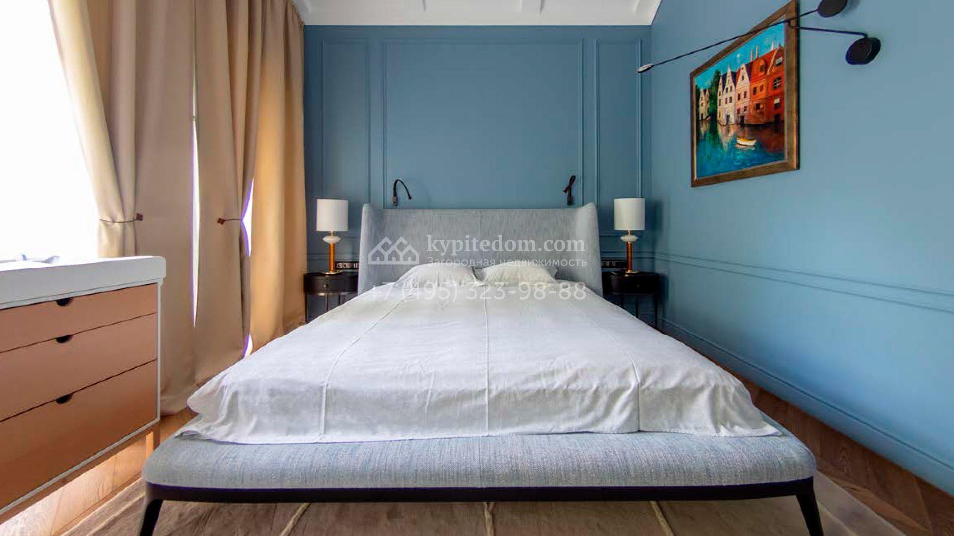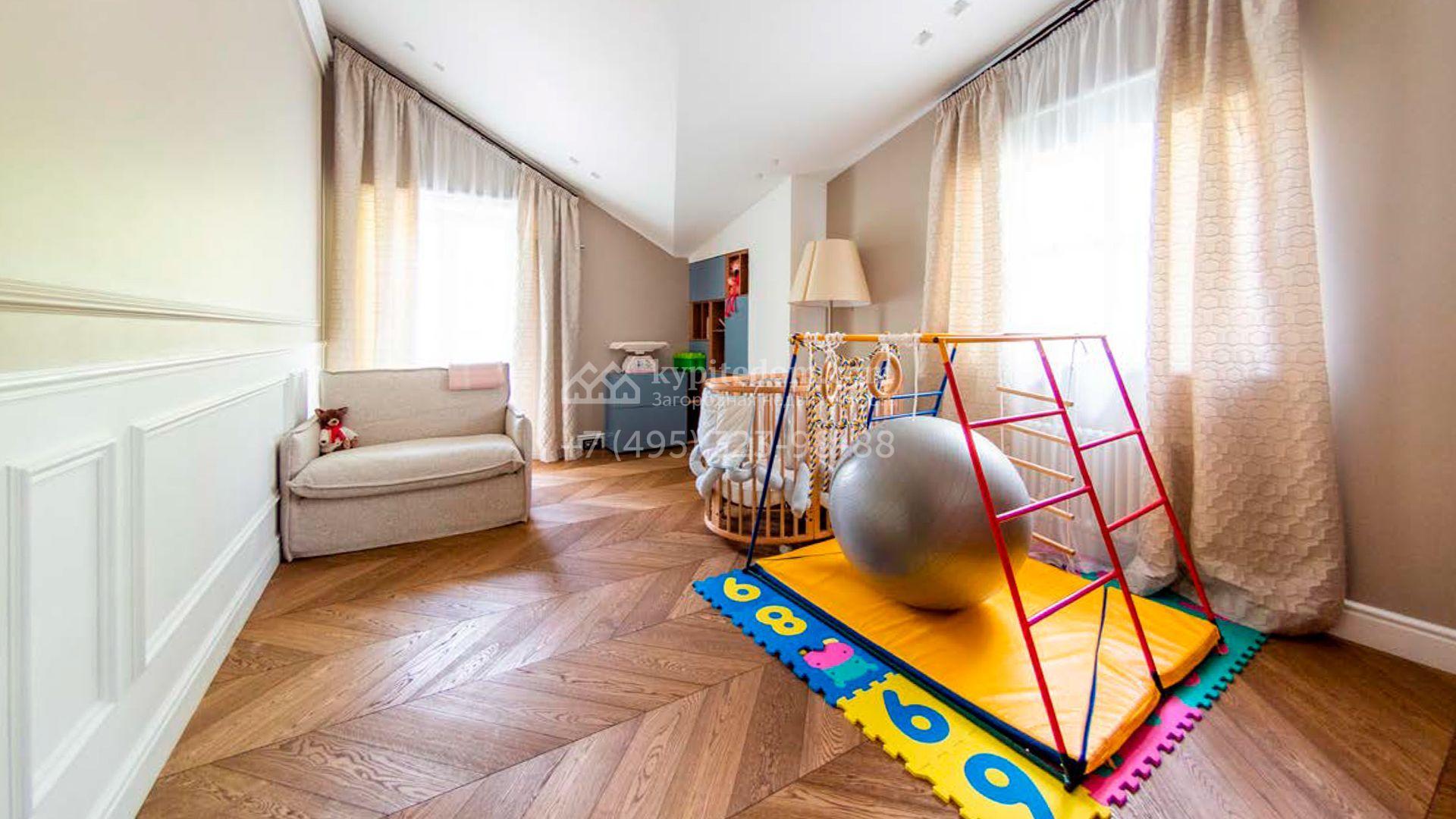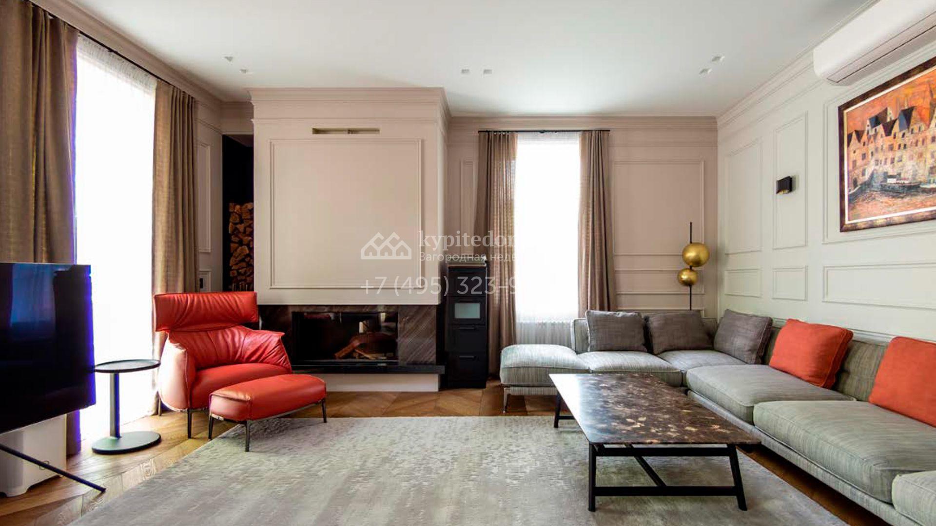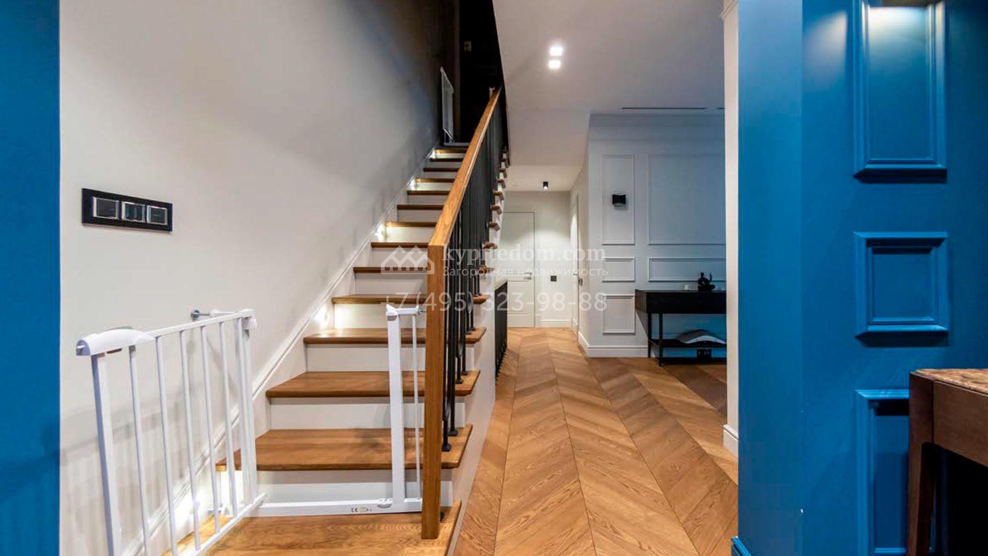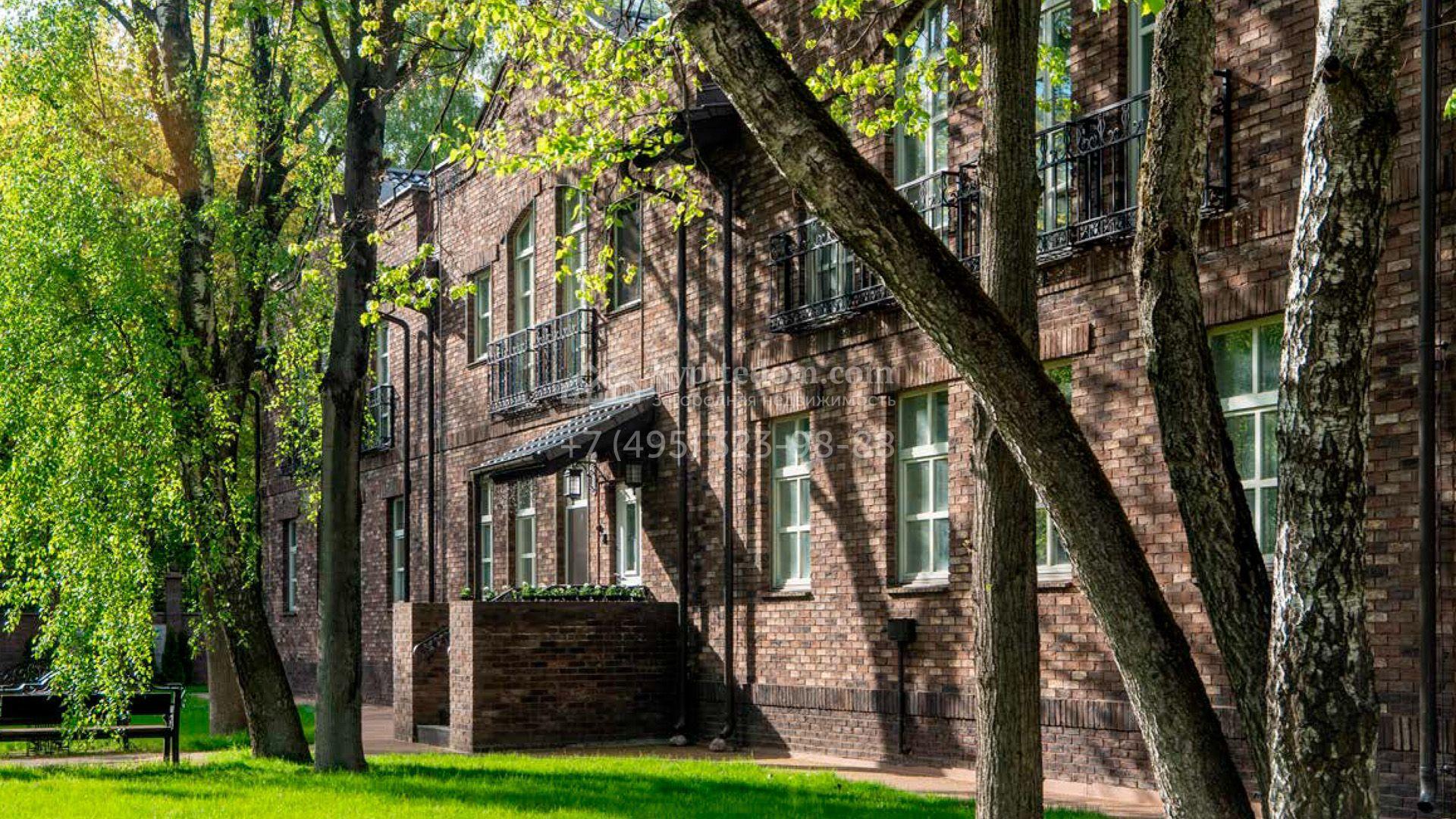 Уютный таунхаус площадью 170 м² расположен на облагороженном лесном участке 2,5 сотки. Фасад в английском стиле облицован красно-коричневым клинкерным кирпичом, установлены белые массивные рамы с коваными чугунными балконами. Классический интерьер сочетает светлые мягкие оттенки и фактуру дерева. В доме спланировали 2 спальни, уютную гостиную с камином, кухню, кабинет и сауну. Предусмотрены терраса 19 м² и парковочное место.