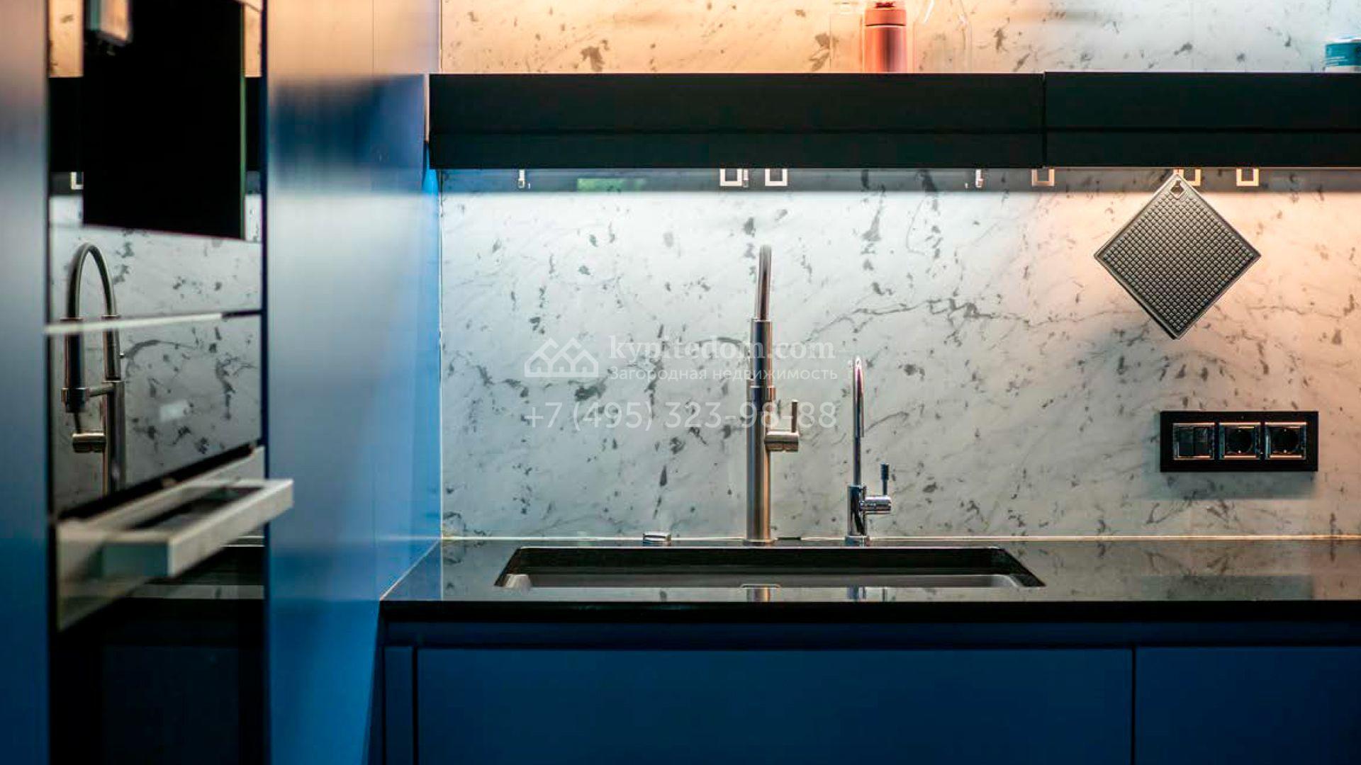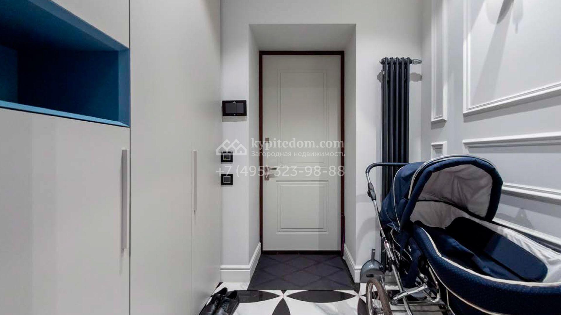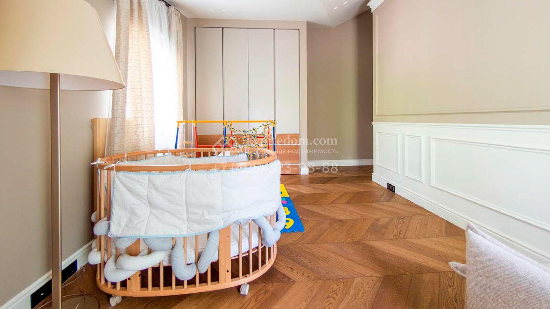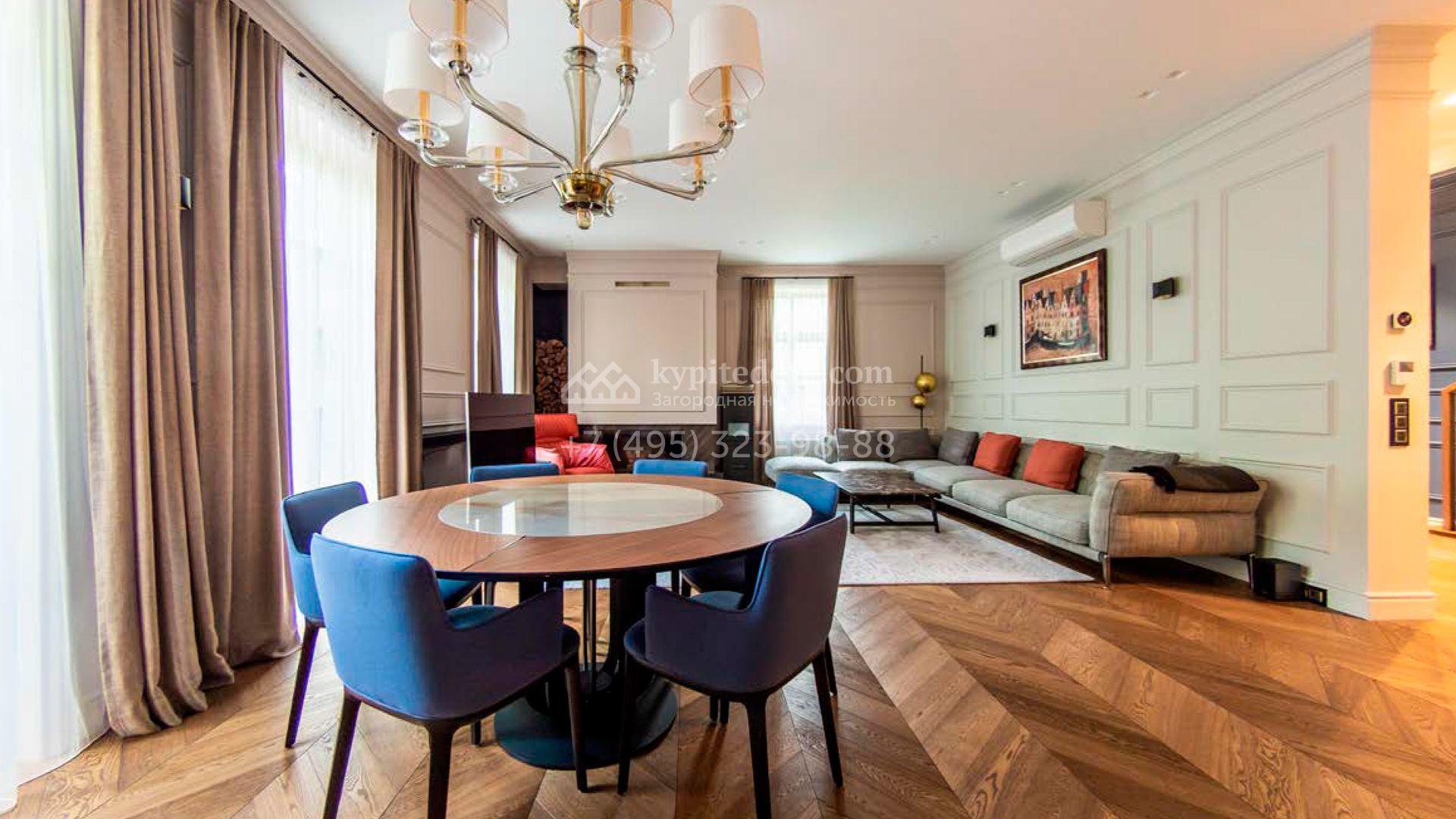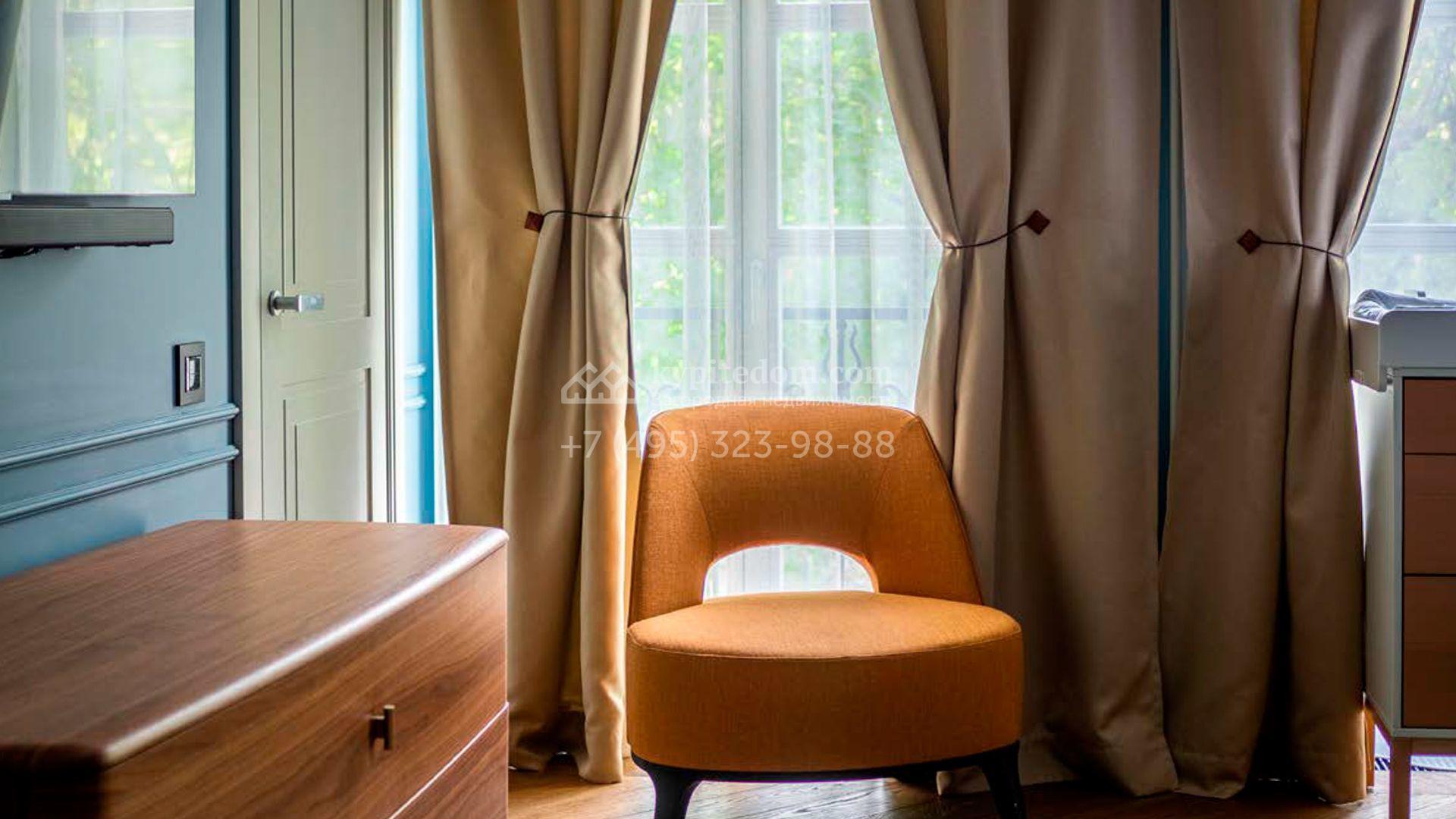Уютный таунхаус площадью 170 м² расположен на облагороженном лесном участке 2,5 сотки. Фасад в английском стиле облицован красно-коричневым клинкерным кирпичом, установлены белые массивные рамы с коваными чугунными балконами. Классический интерьер сочетает светлые мягкие оттенки и фактуру дерева. В доме спланировали 2 спальни, уютную гостиную с камином, кухню, кабинет и сауну. Предусмотрены терраса 19 м² и парковочное место.