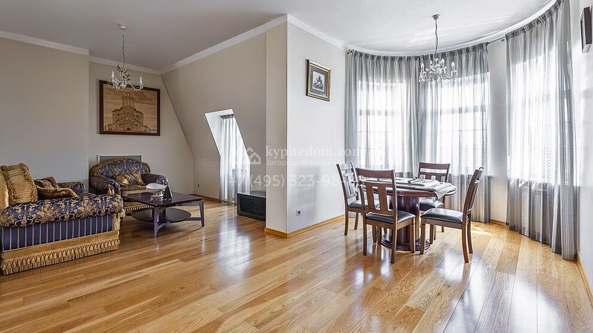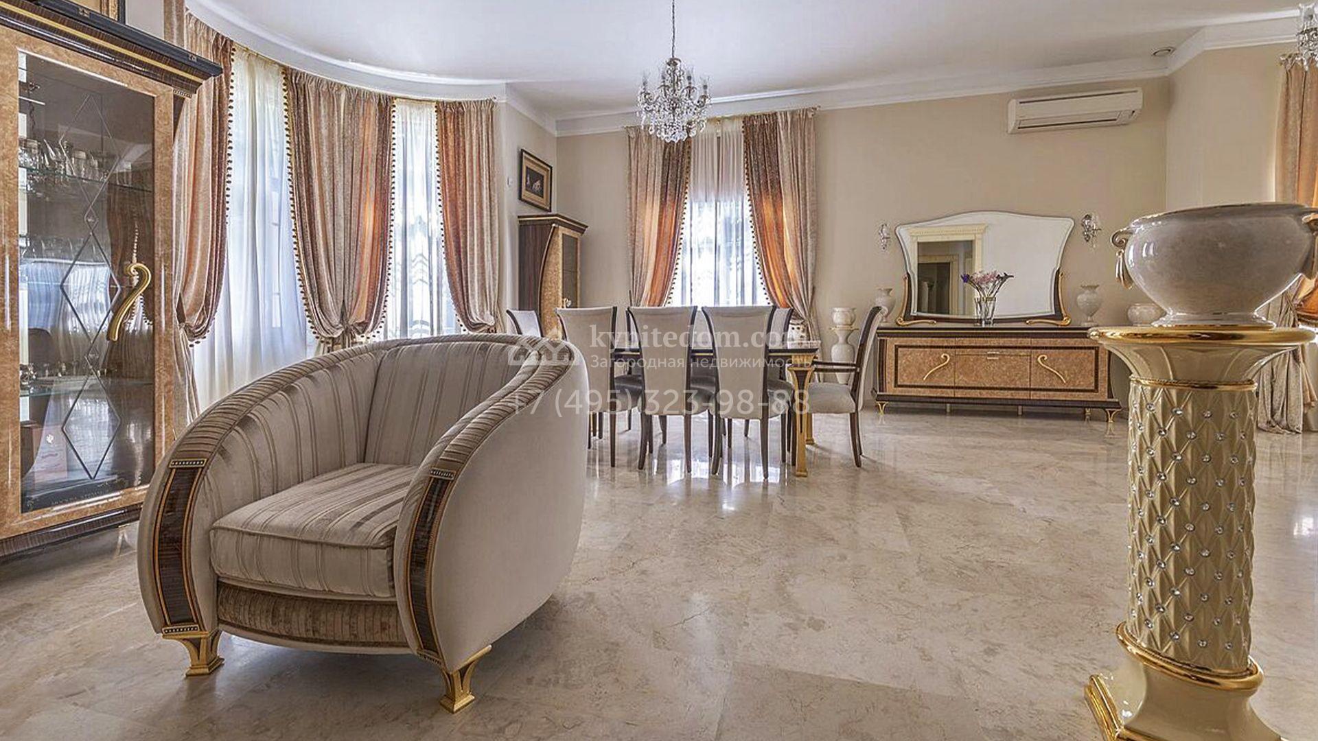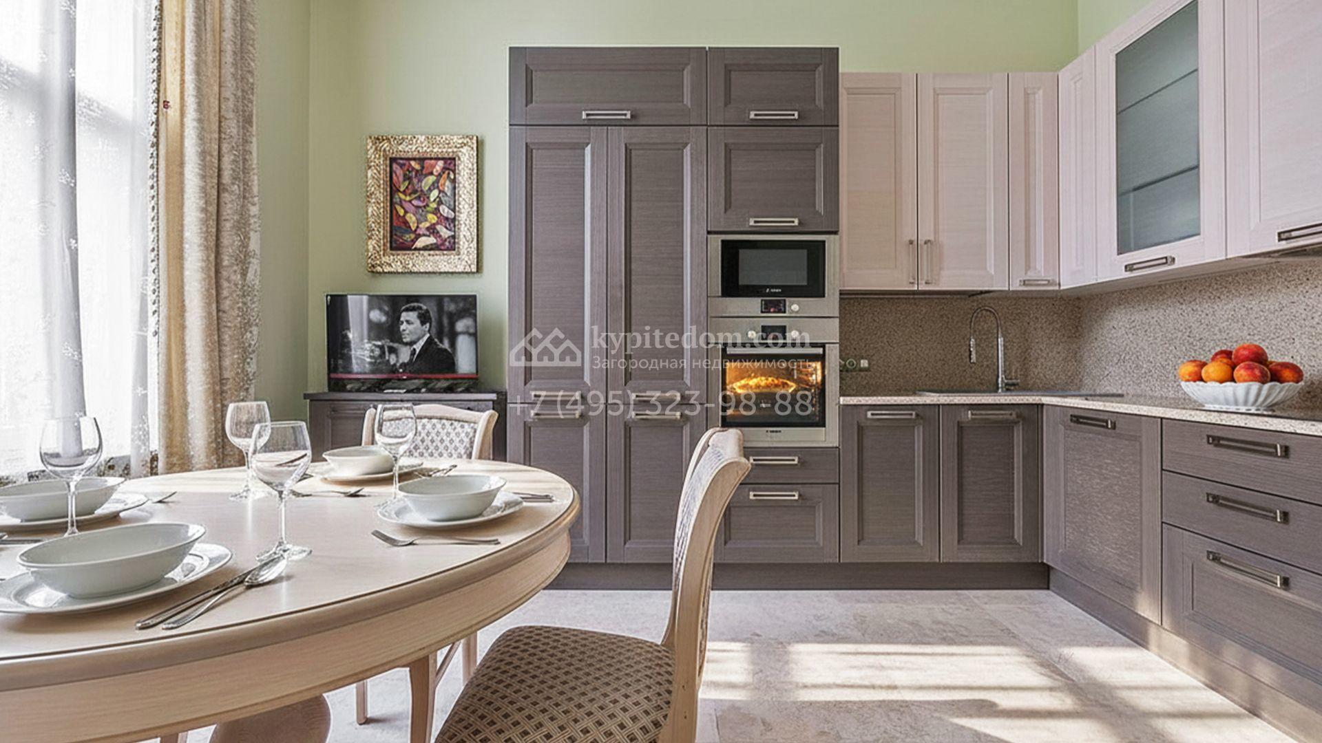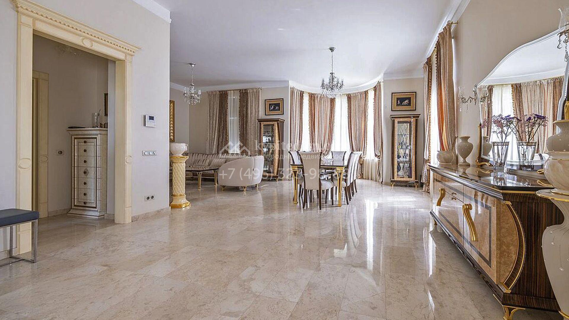 Загородный таунхаус площадью 350 м² расположен на полевом участке 8 соток в тихой части посёлка. Фасад, выполненный в европейском стиле, облицован благородным клинкерным кирпичом и украшен белоснежными рустами, изящными наличниками и замковым камнем. Внутри встречают интерьеры с трёхметровыми полотками, отделанные мрамором в светлой пастельной гамме. Дом полностью готов к жизни: он укомплектован мебелью и встроенной бытовой техникой, а система кондиционирования заботится об идеальном микроклимате в любое время года.