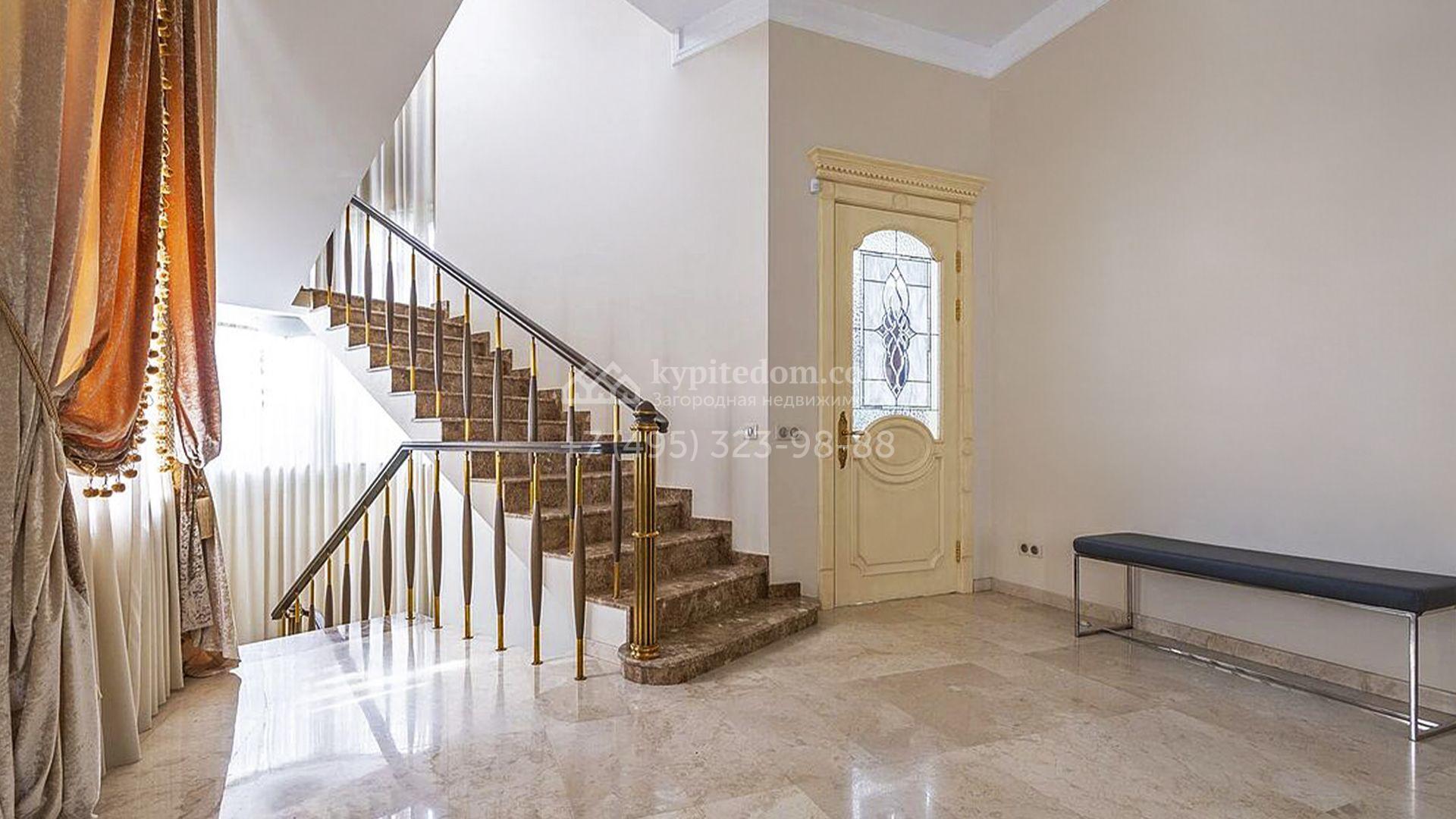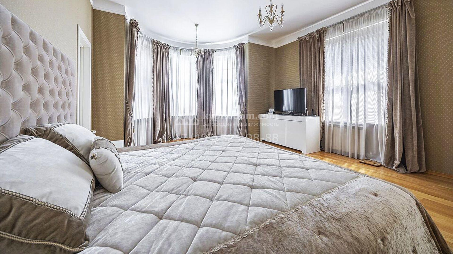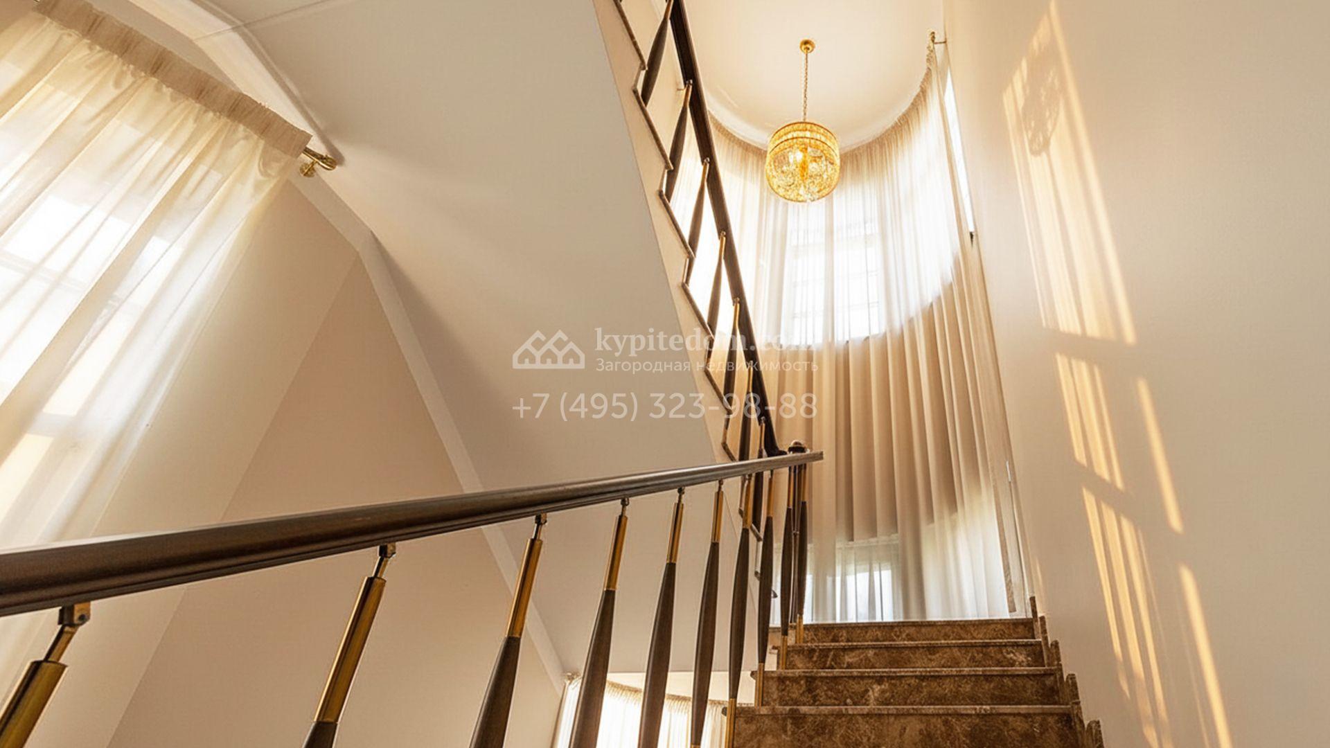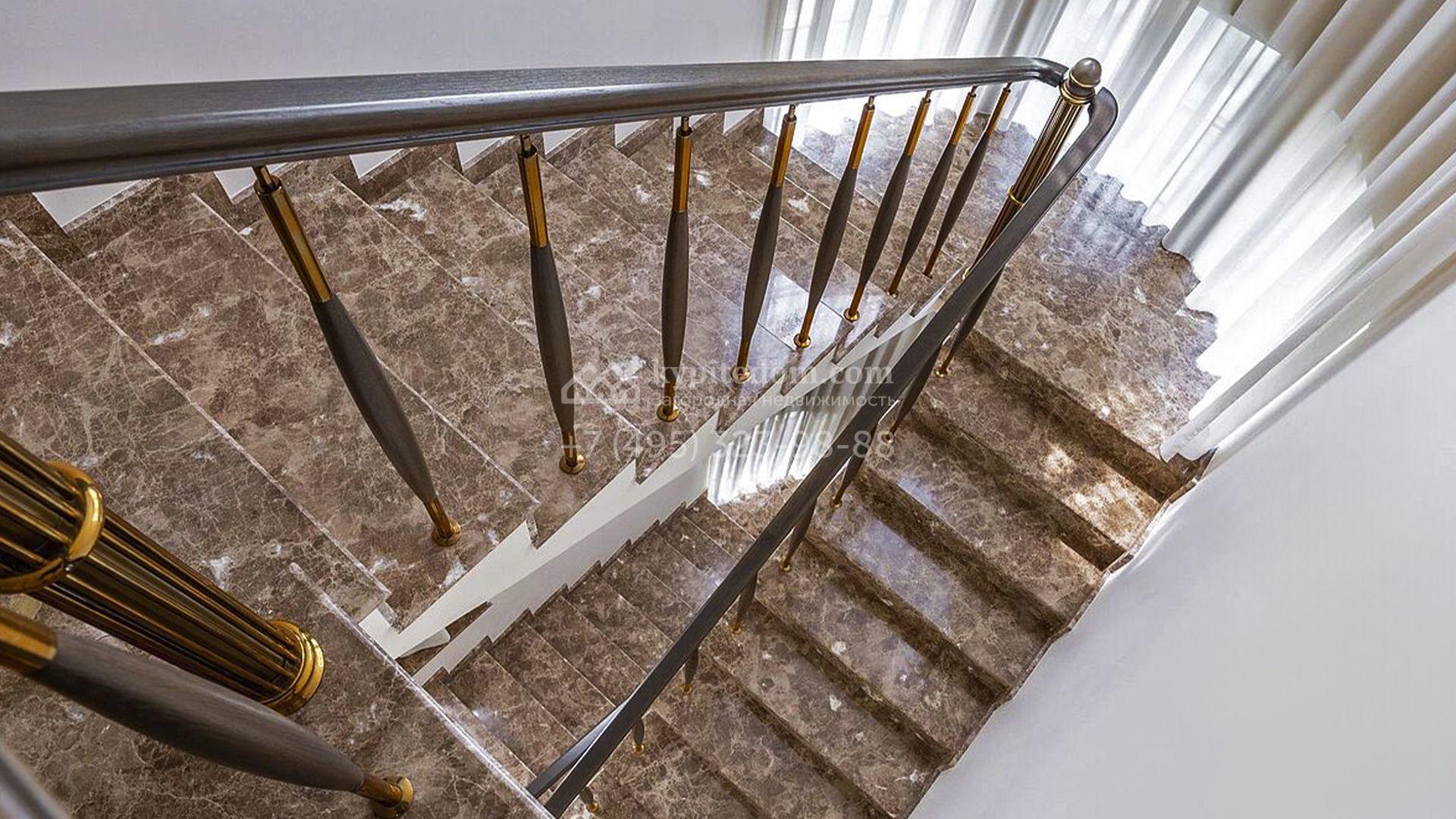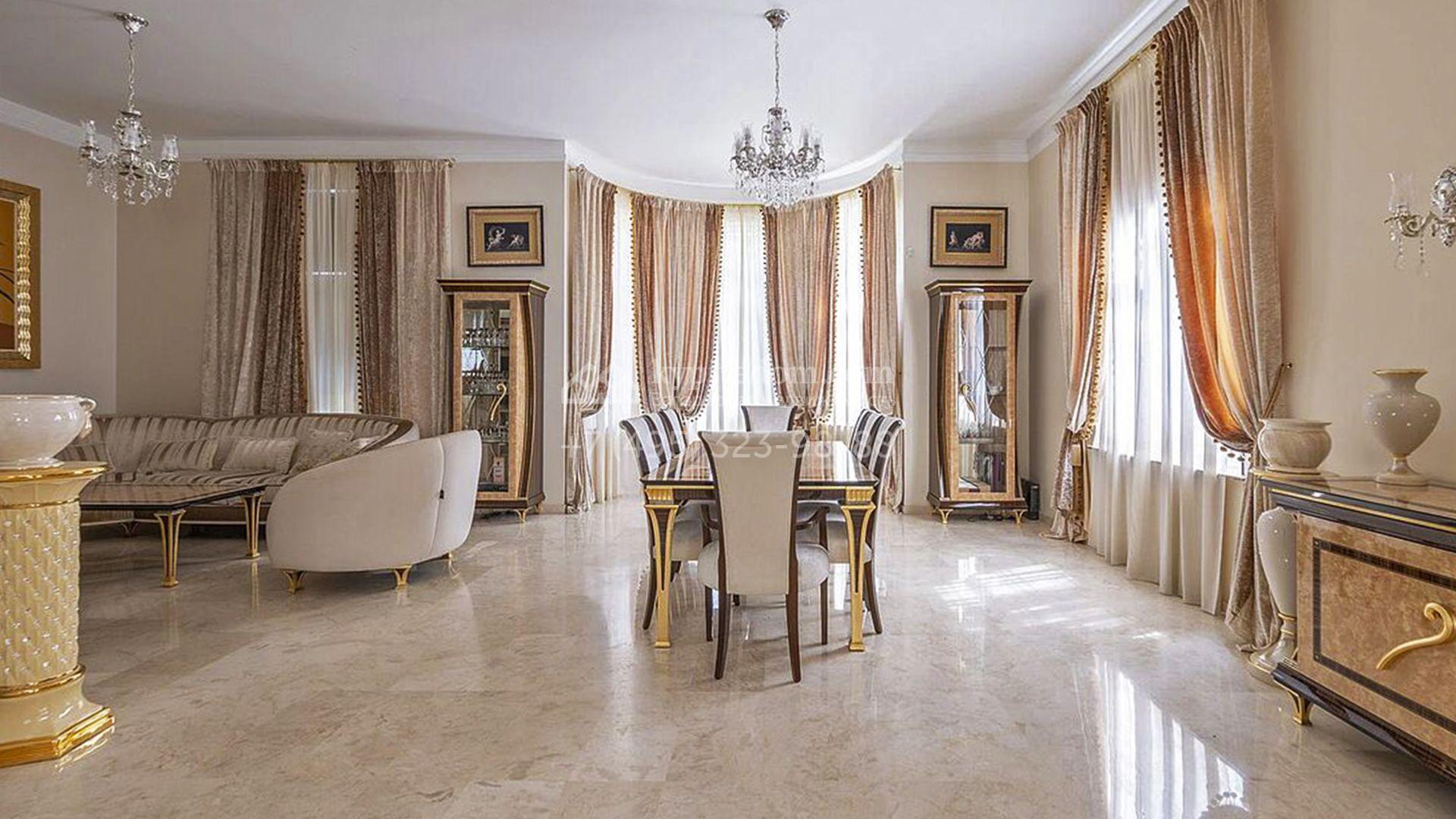Загородный таунхаус площадью 350 м² расположен на полевом участке 8 соток в тихой части посёлка. Фасад, выполненный в европейском стиле, облицован благородным клинкерным кирпичом и украшен белоснежными рустами, изящными наличниками и замковым камнем. Внутри встречают интерьеры с трёхметровыми полотками, отделанные мрамором в светлой пастельной гамме. Дом полностью готов к жизни: он укомплектован мебелью и встроенной бытовой техникой, а система кондиционирования заботится об идеальном микроклимате в любое время года.