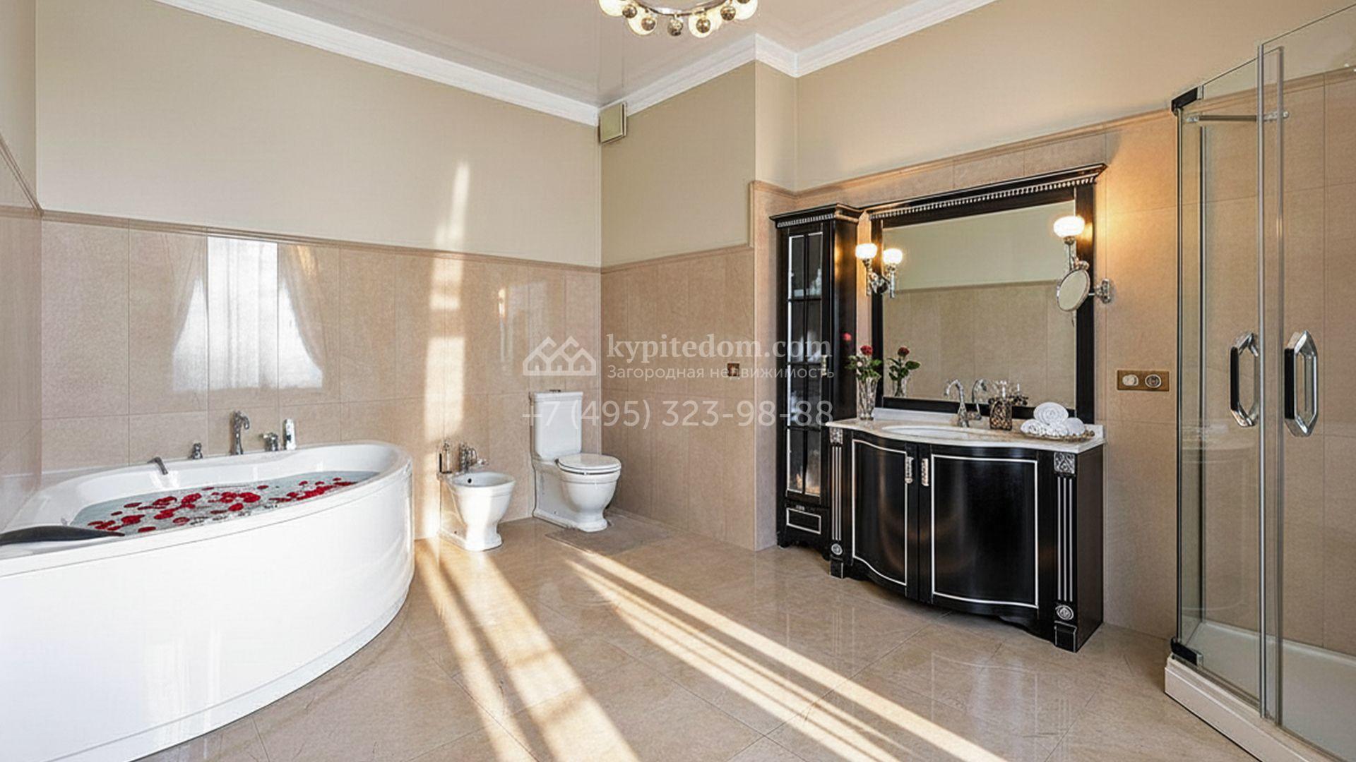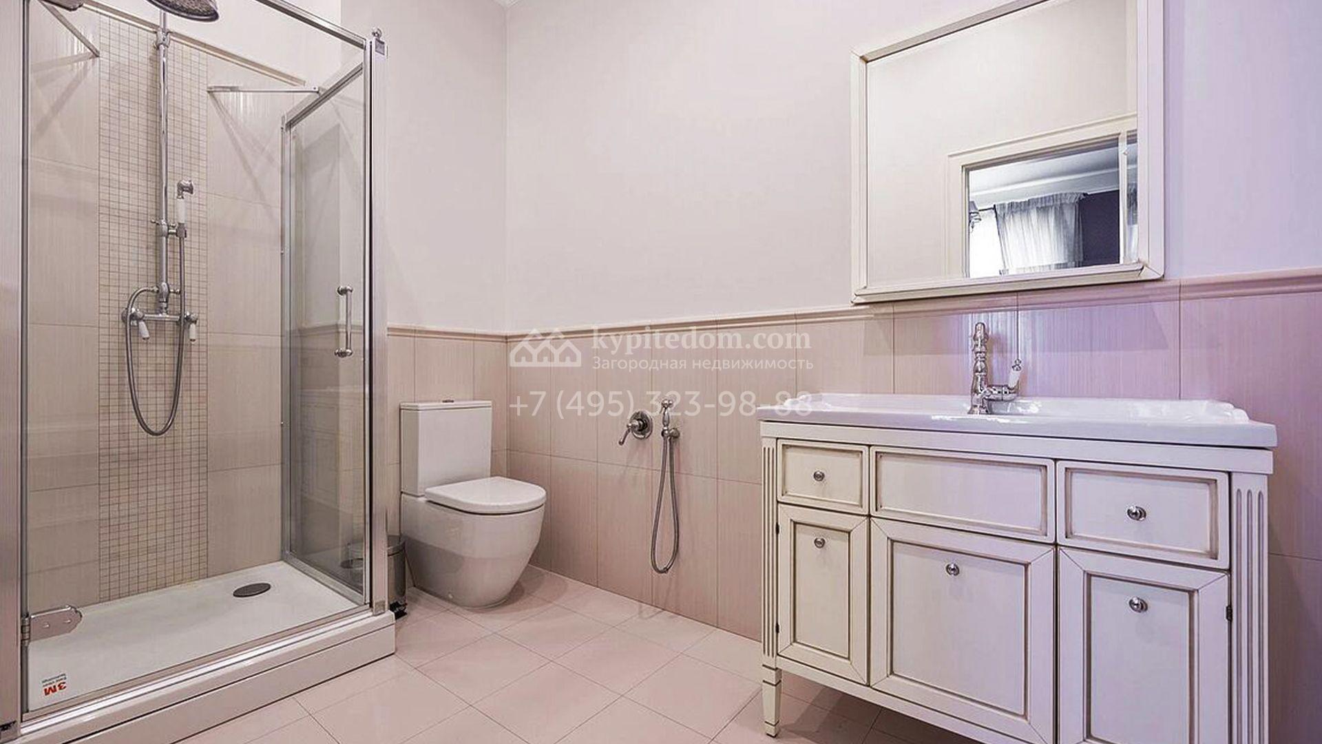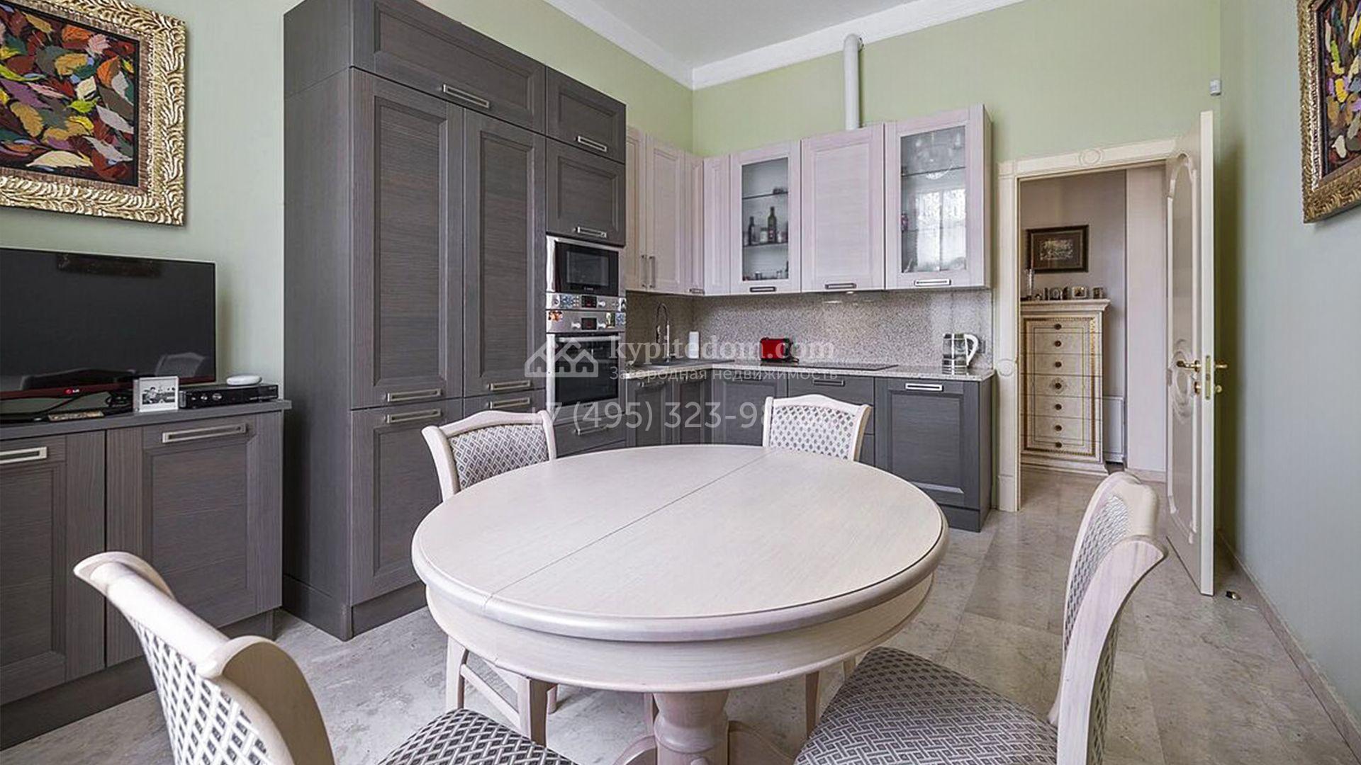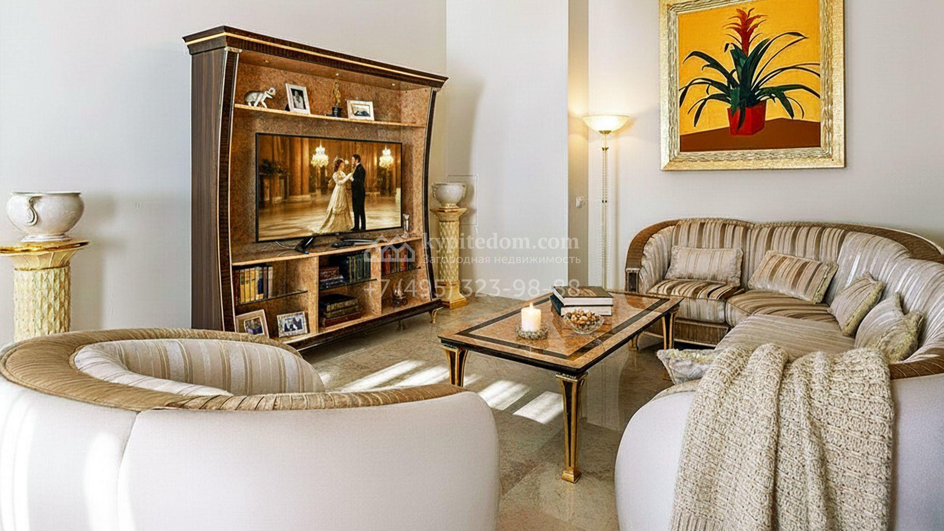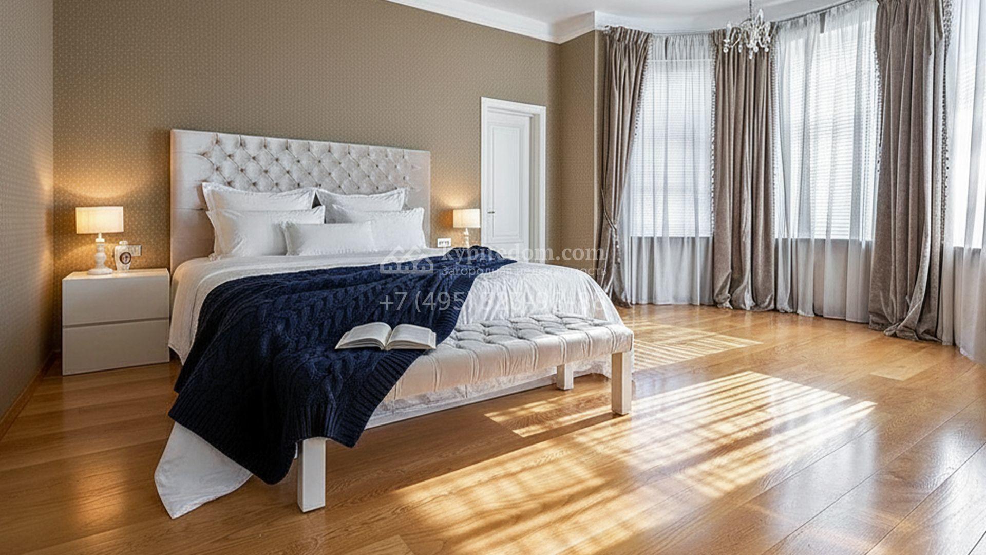 Загородный таунхаус площадью 350 м² расположен на полевом участке 8 соток в тихой части посёлка. Фасад, выполненный в европейском стиле, облицован благородным клинкерным кирпичом и украшен белоснежными рустами, изящными наличниками и замковым камнем. Внутри встречают интерьеры с трёхметровыми полотками, отделанные мрамором в светлой пастельной гамме. Дом полностью готов к жизни: он укомплектован мебелью и встроенной бытовой техникой, а система кондиционирования заботится об идеальном микроклимате в любое время года.