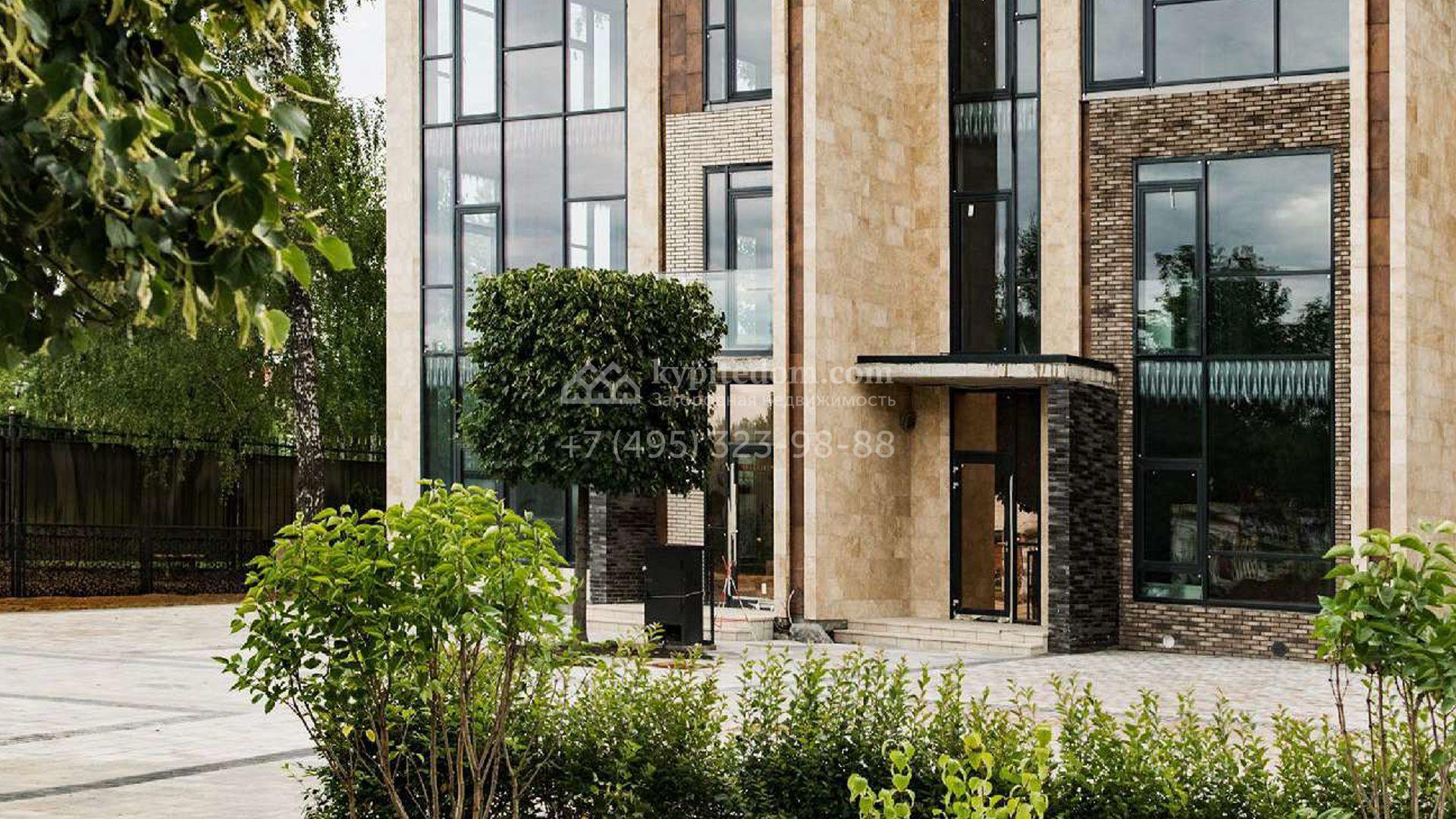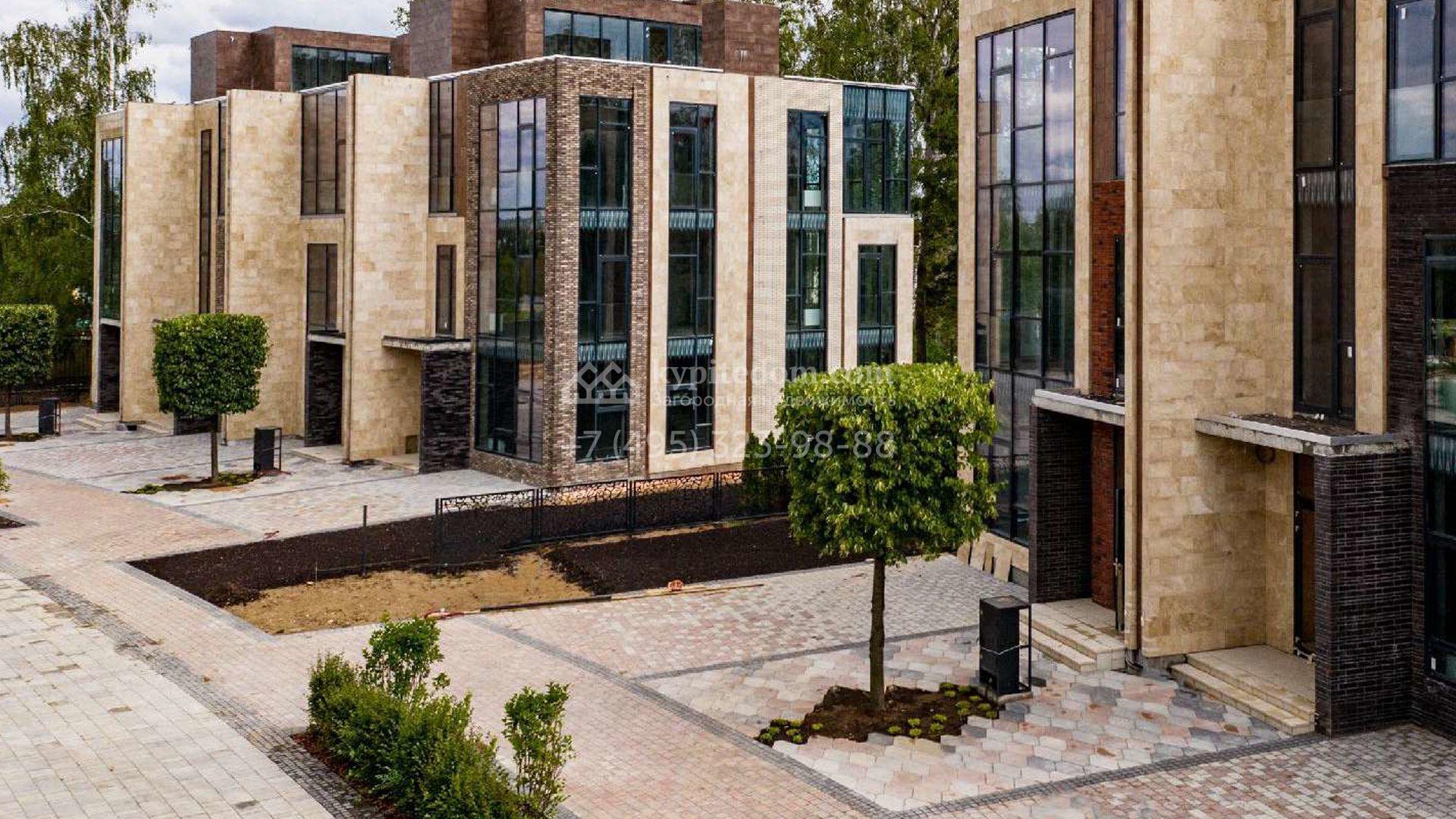 Трёхэтажный таунхаус в стиле «эко-тек» площадью 278 м² с эксплуатируемой кровлей расположен на участке 3,3 сотки. Фасад с панорамным остеклением облицован натуральным бежевым камнем и клинкером. Внутри таунхаус со свободной планировкой и потолком высоток 3,5 метра, этажи соединяет монолитная лестница. Благодаря тому, что внутри нет несущих стен, планировку можно спланировать на свое усмотрение. С третьего этажа есть выход на эксплуатируемую крышу, где можно загорать или встречать закаты. Участок скрыт от соседей живой изгородью и оборудован калиткой.