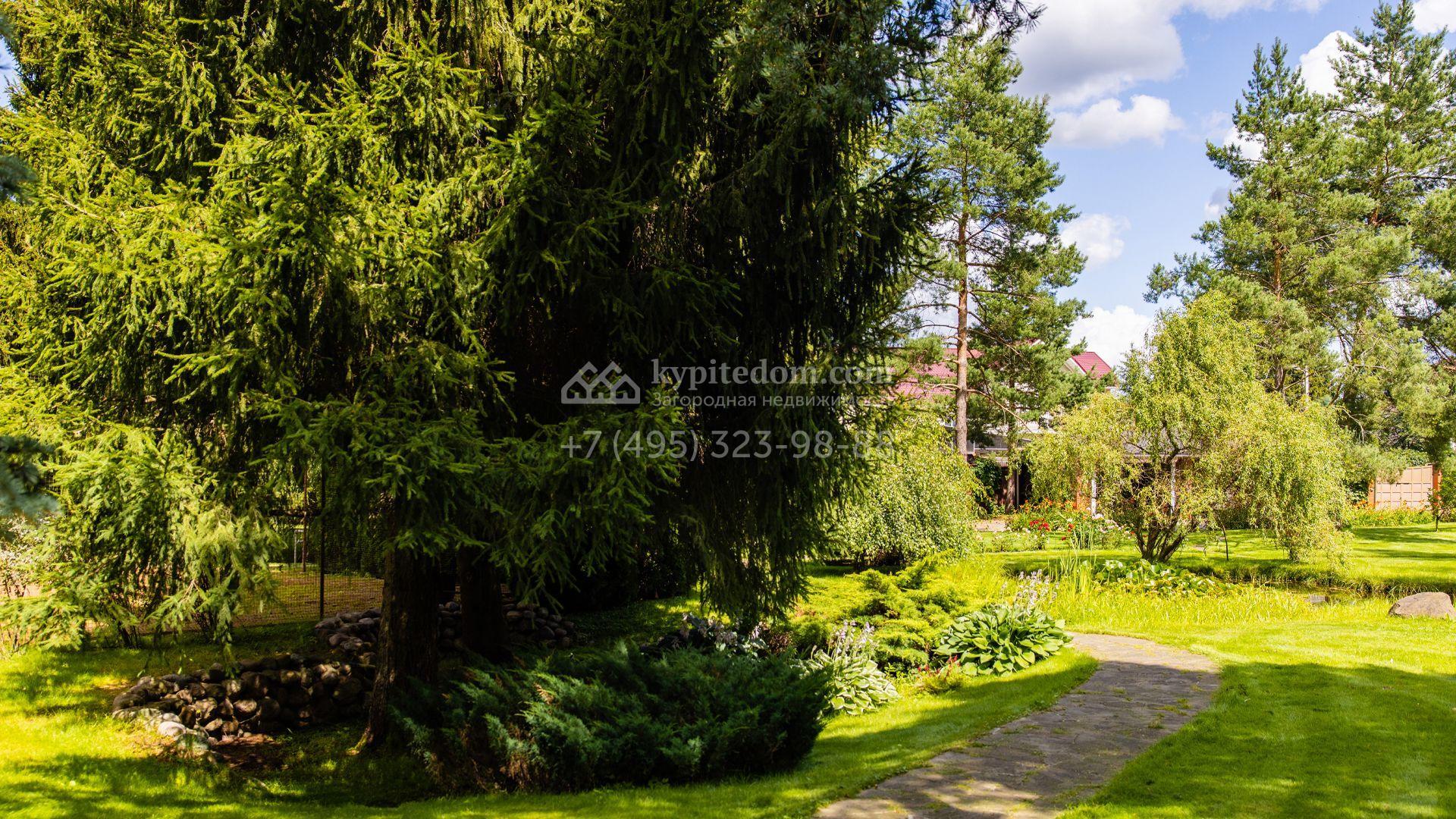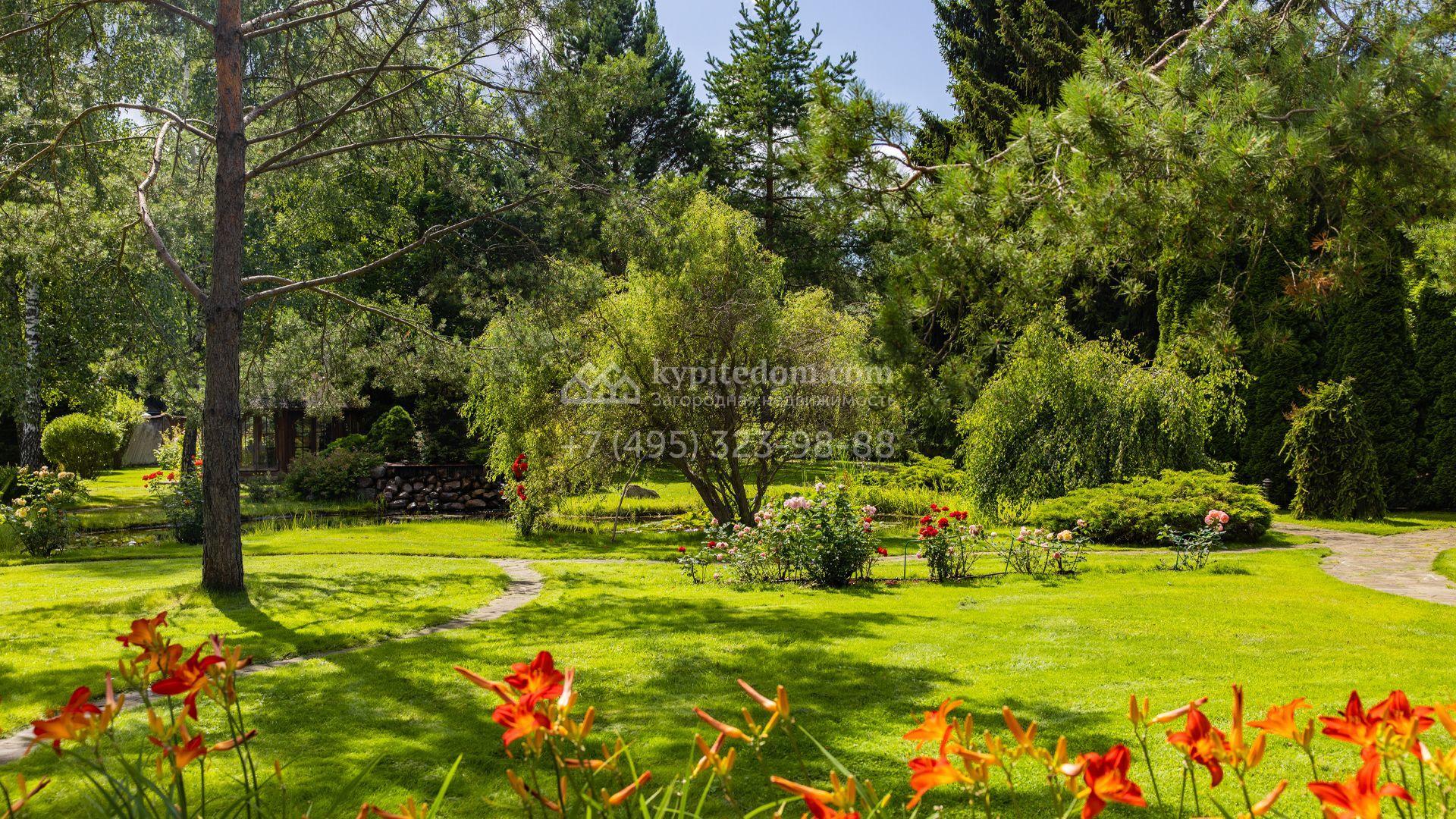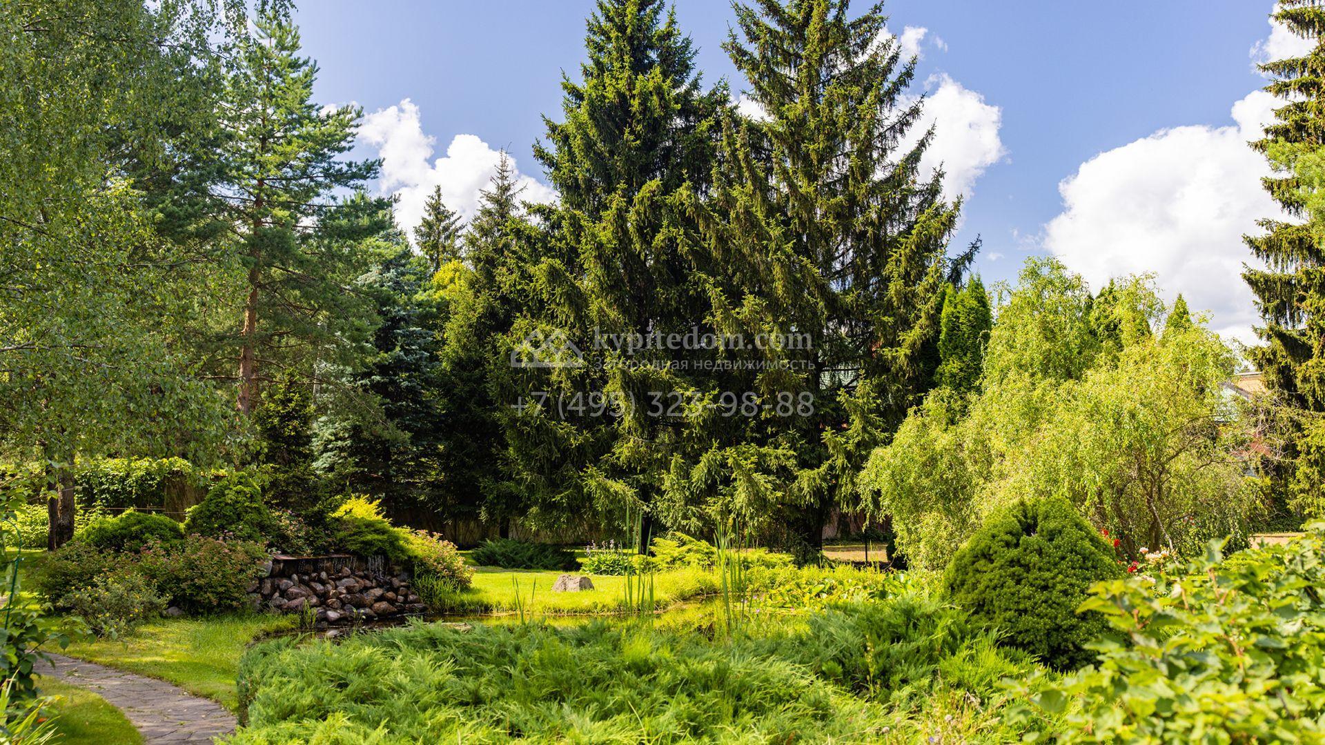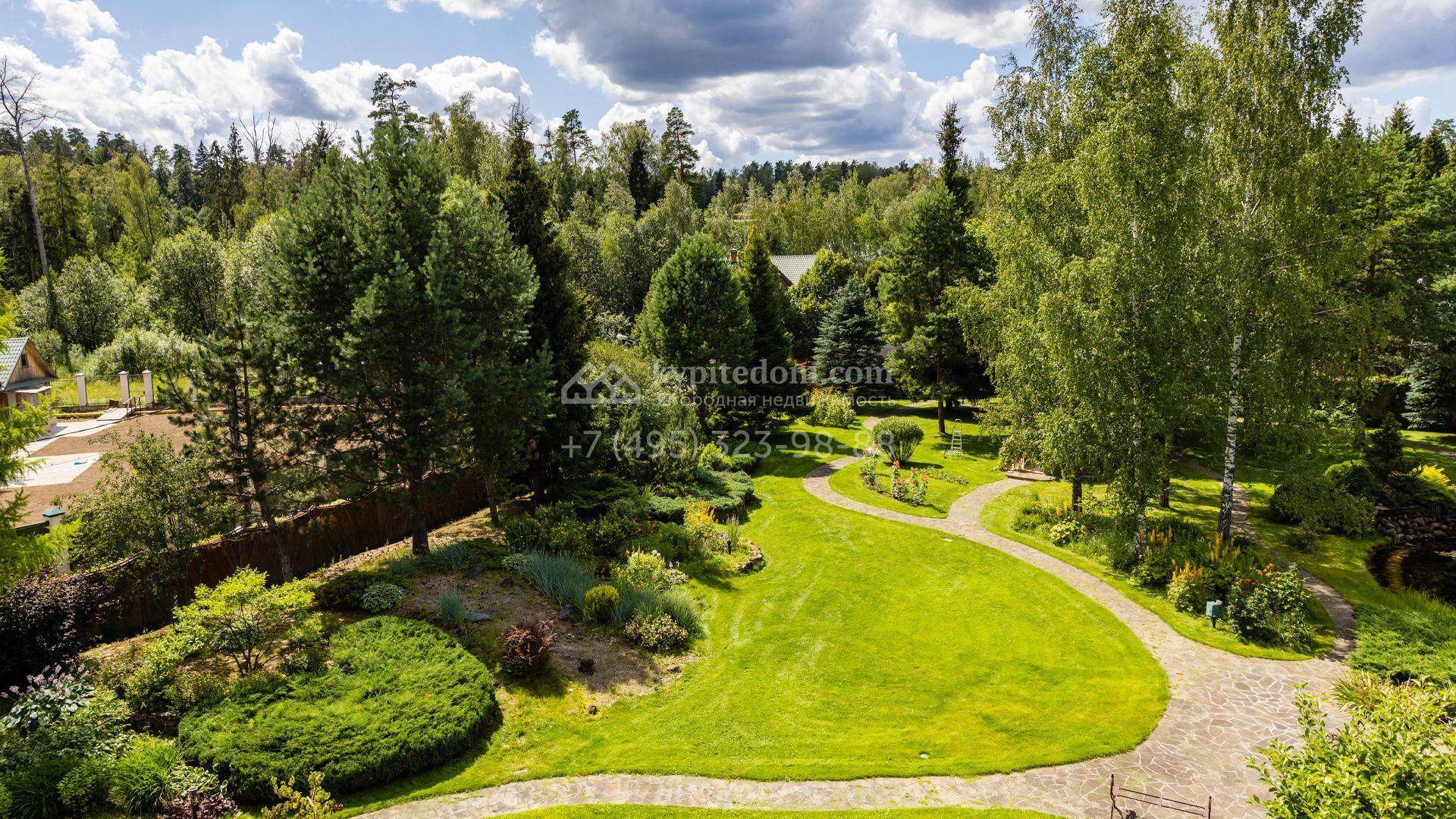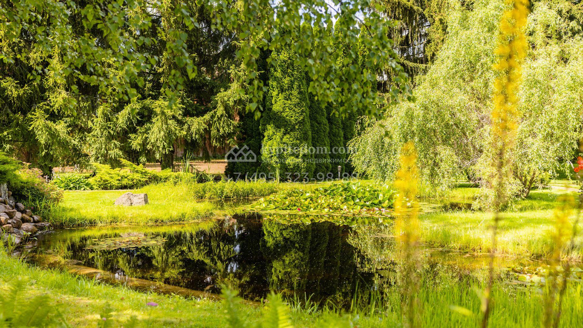Просторный участок площадью 66 соток подходит для строительства загородной резиденции с гаражом, бассейном и беседкой с зоной барбекю. Растущие на территории взрослые деревья создают приватную атмосферу. На участке выполнены ландшафтные работы, засеян газон и оборудован пруд с водопадом.