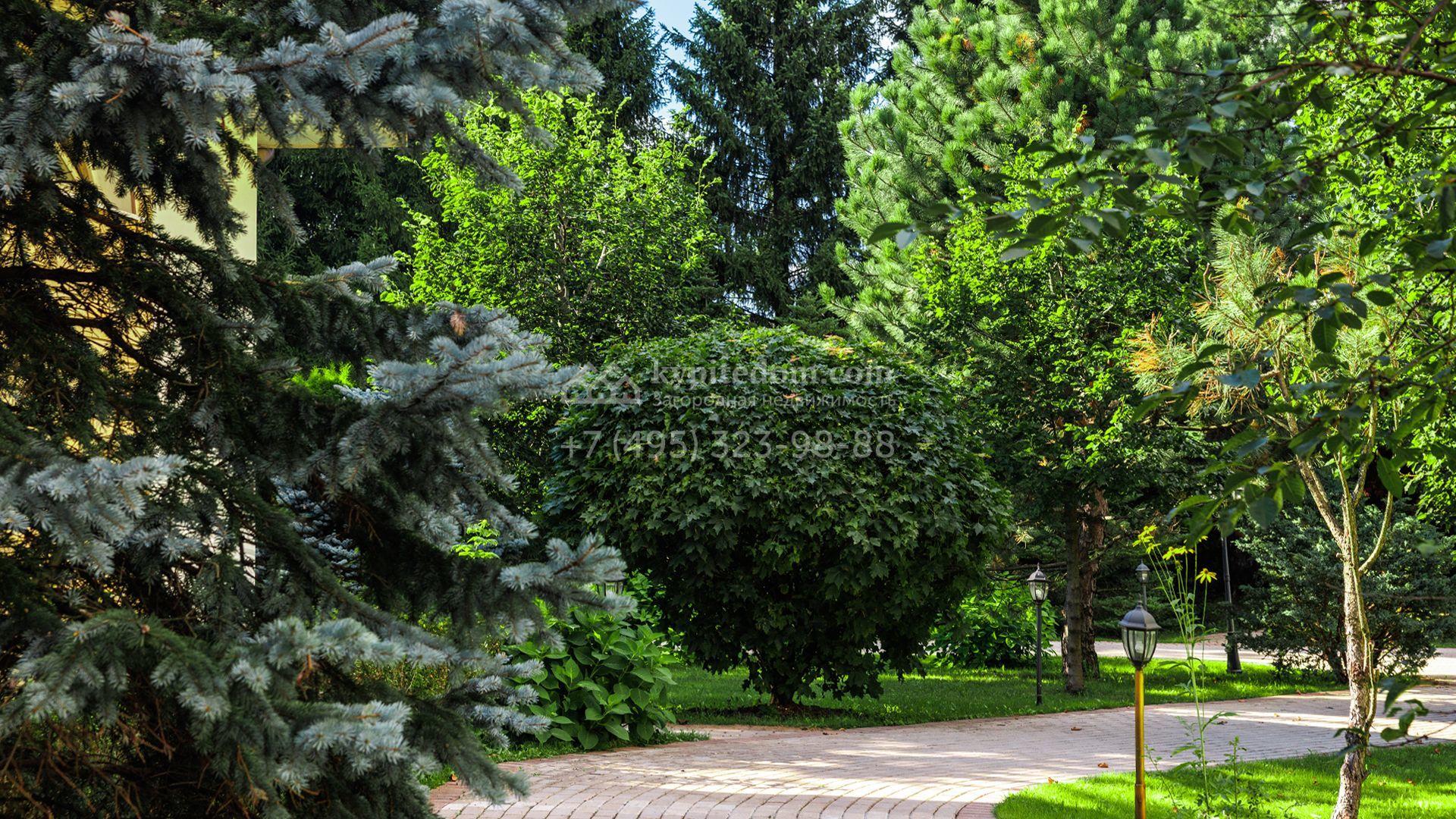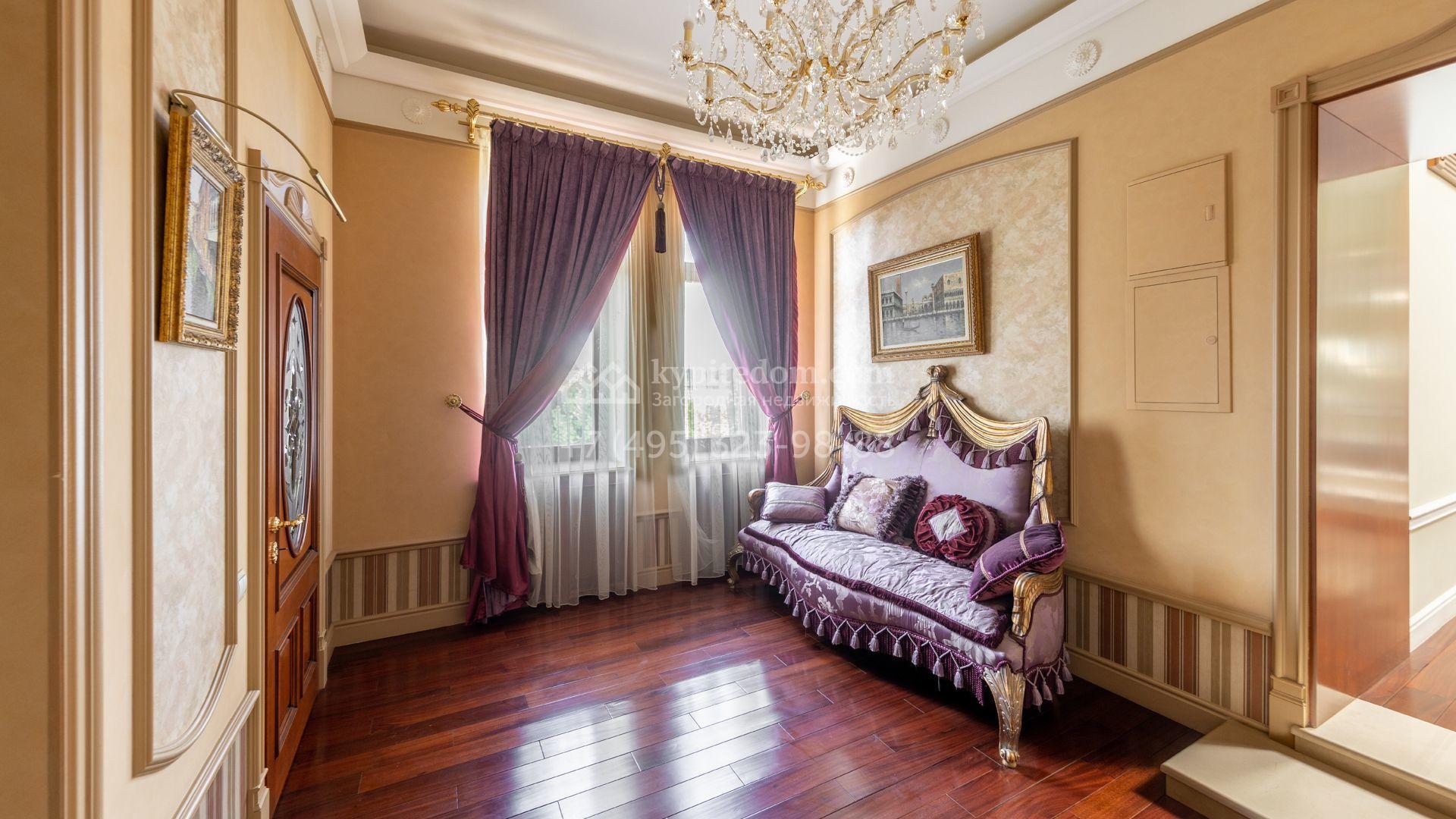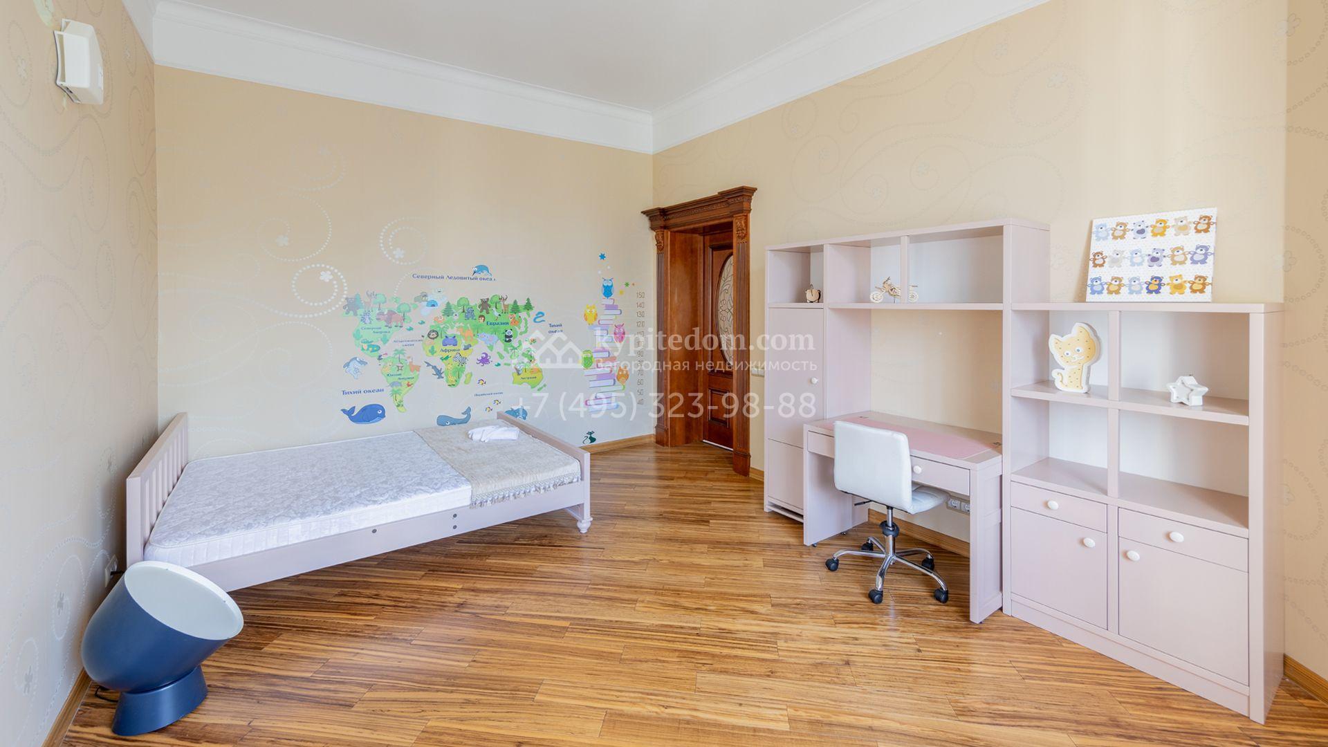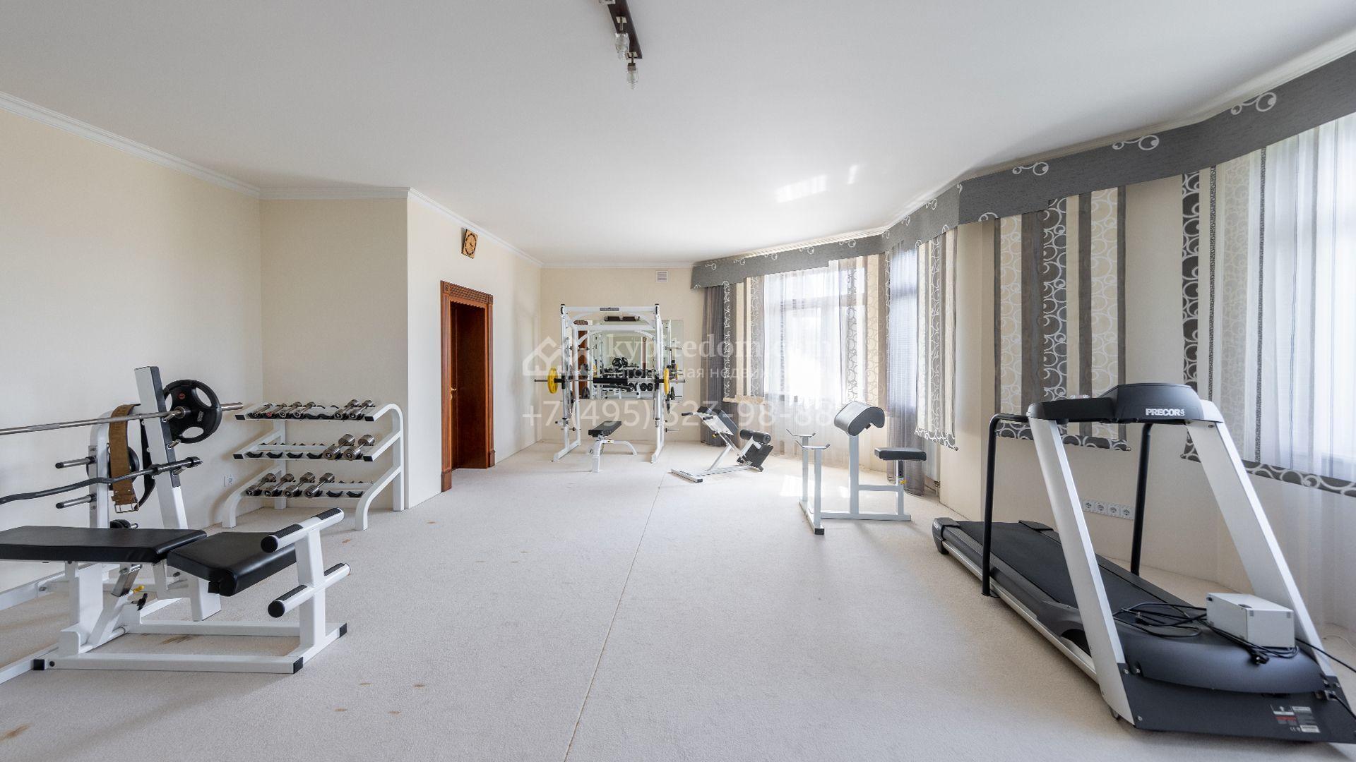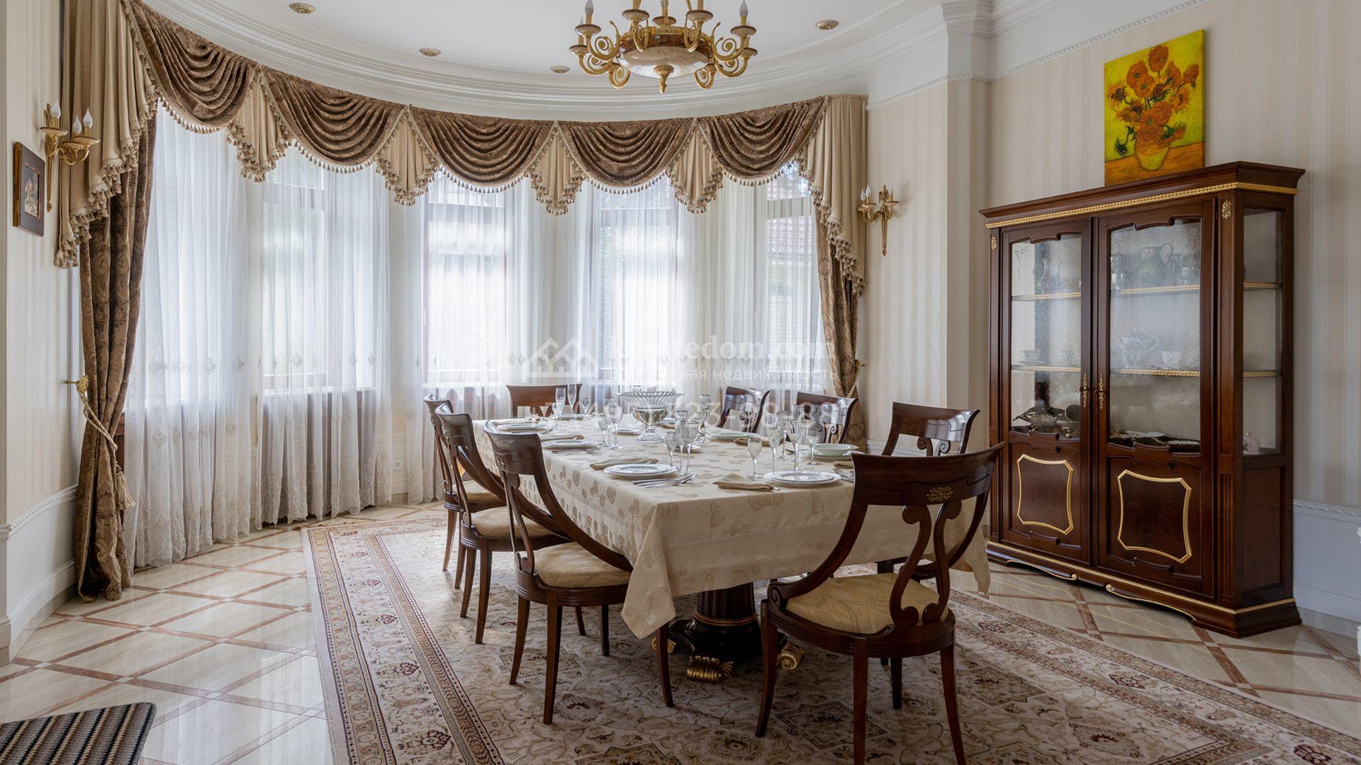 Загородный особняк в стиле русского модерна площадью 2009 м² построен на просторном участке 0,9 гектара с собственным озером. Фасад дома облицован бежевой штукатуркой, декорирован панно, рустовкой и коваными элементами. В отделке интерьера использованы светлые, теплые оттенки, создающие атмосферу уюта. Планировкой резиденции предусмотрены 3 спальни, 2 гостиные, одна из которых с камином и вторым светом, кухня, 2 столовые, кабинет и спа-зона с бассейном длиной 16 метров, хаммамом и сауной. На территории построены 4 гаража, гостевой дом, летний домик, беседка и зона барбекю, а также обустроены парк, сад, фонтан и паркинг. На участке с 2-мя въездами выполнены ландшафтный дизайн и дренажные работы, установлена система автополива, вымощены дорожки и оборудовано уличное освещение.
