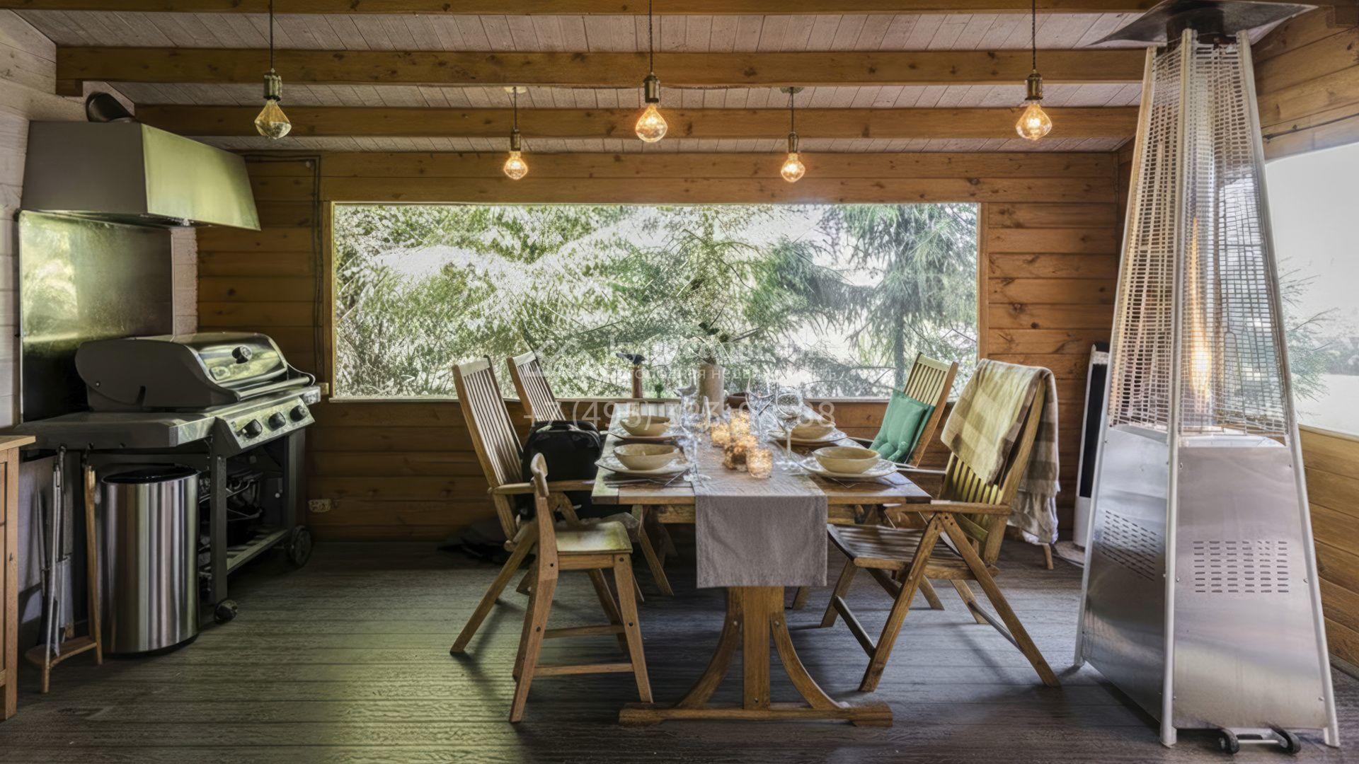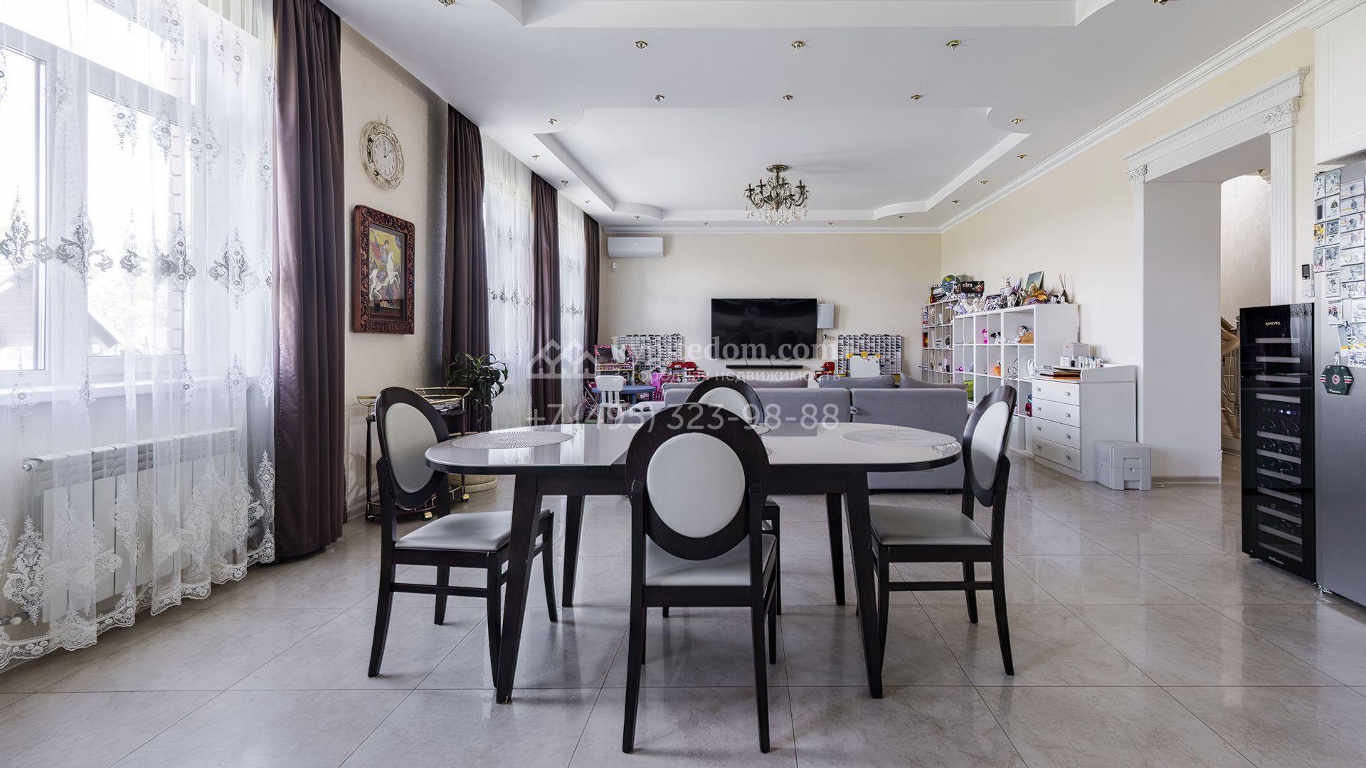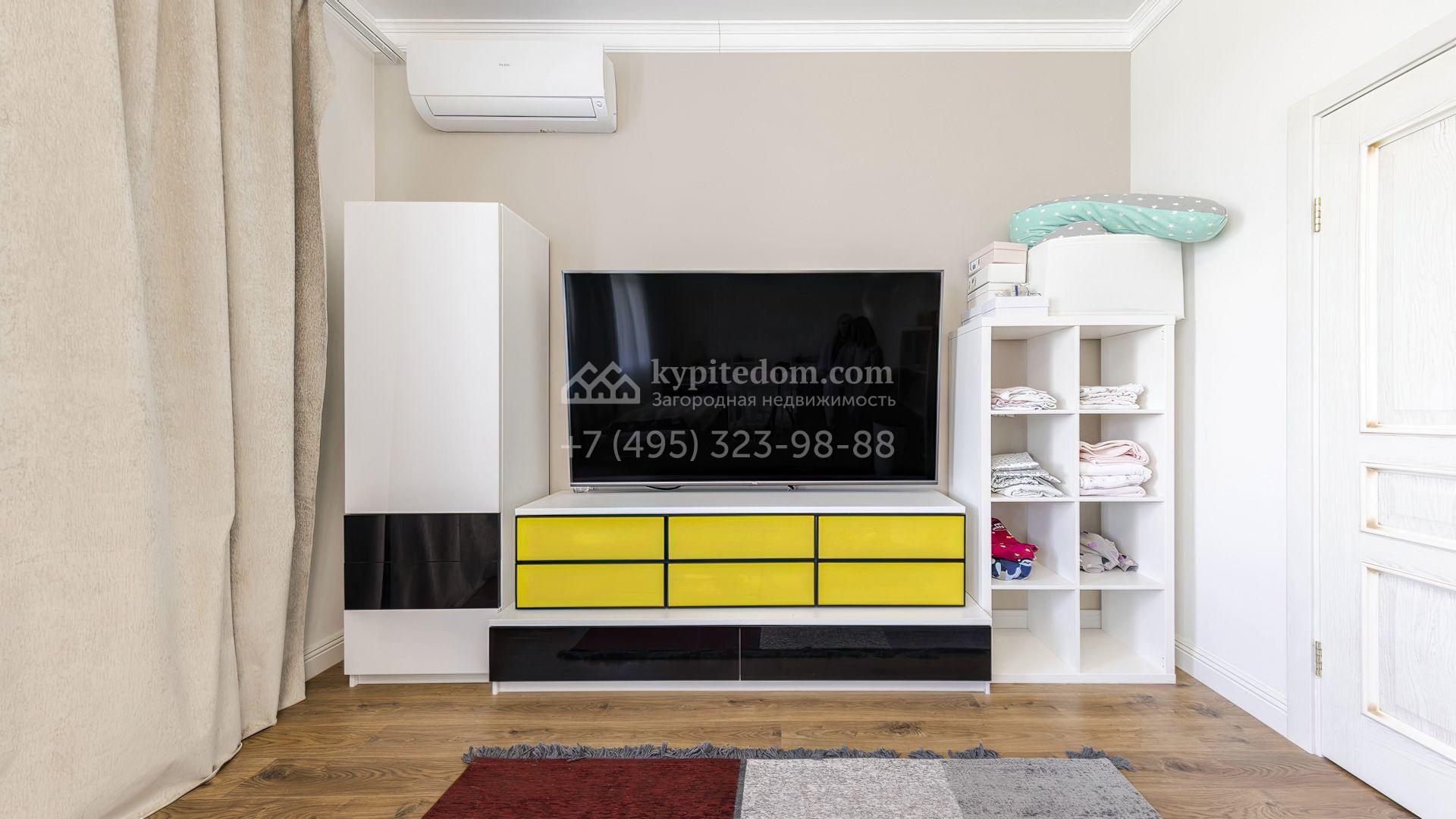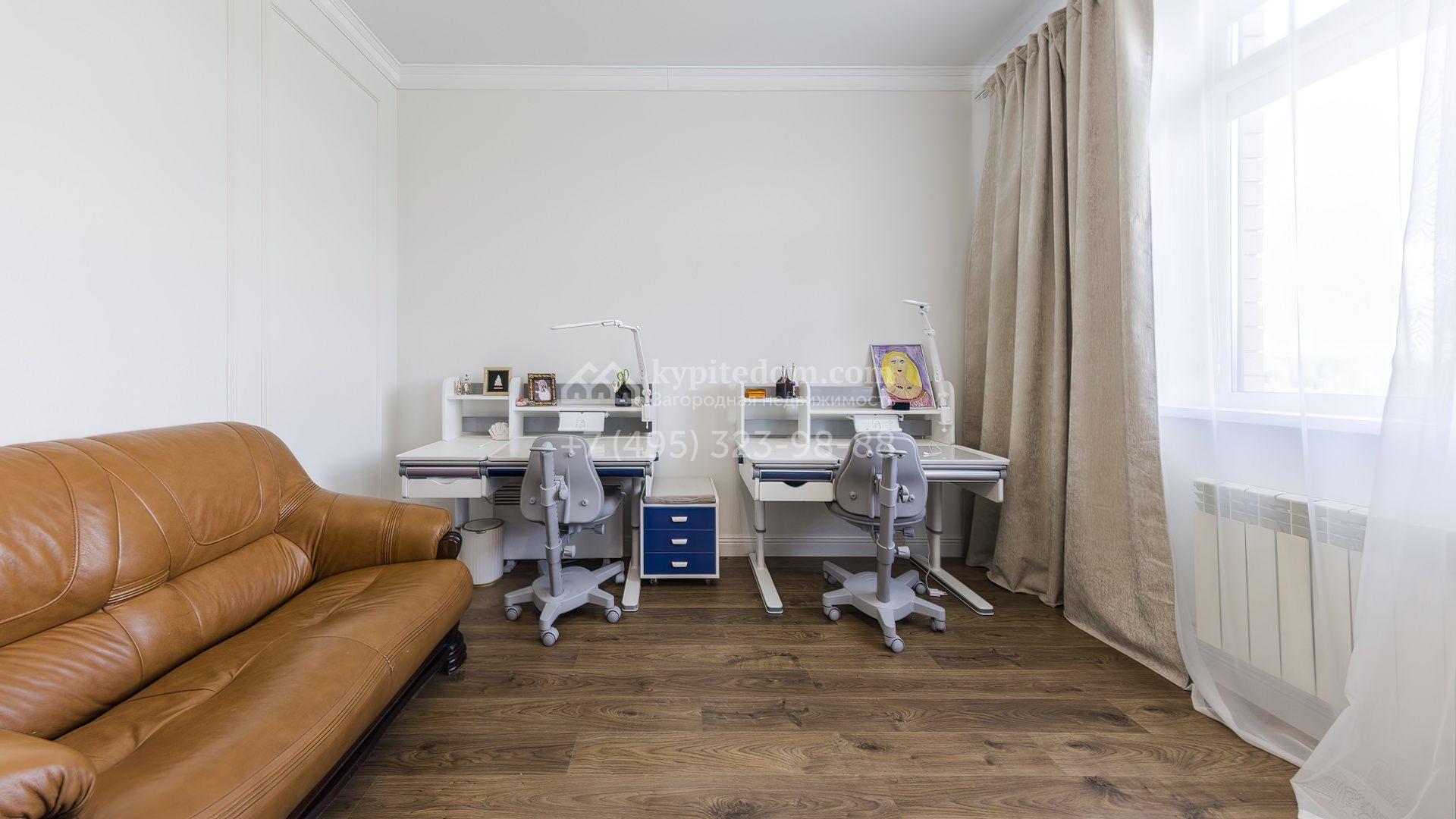 Функциональная планировка включает просторную кухню-гостиную, 5 спален и универсальную игровую комнату, объединённую с тренажёрным залом. На благоустроенном участке растут берёзы, хвойные деревья и декоративные кустарники. Для комфортного отдыха оборудована крытая беседка с зоной барбекю, современная детская площадка и удобный навес для трёх автомобилей.