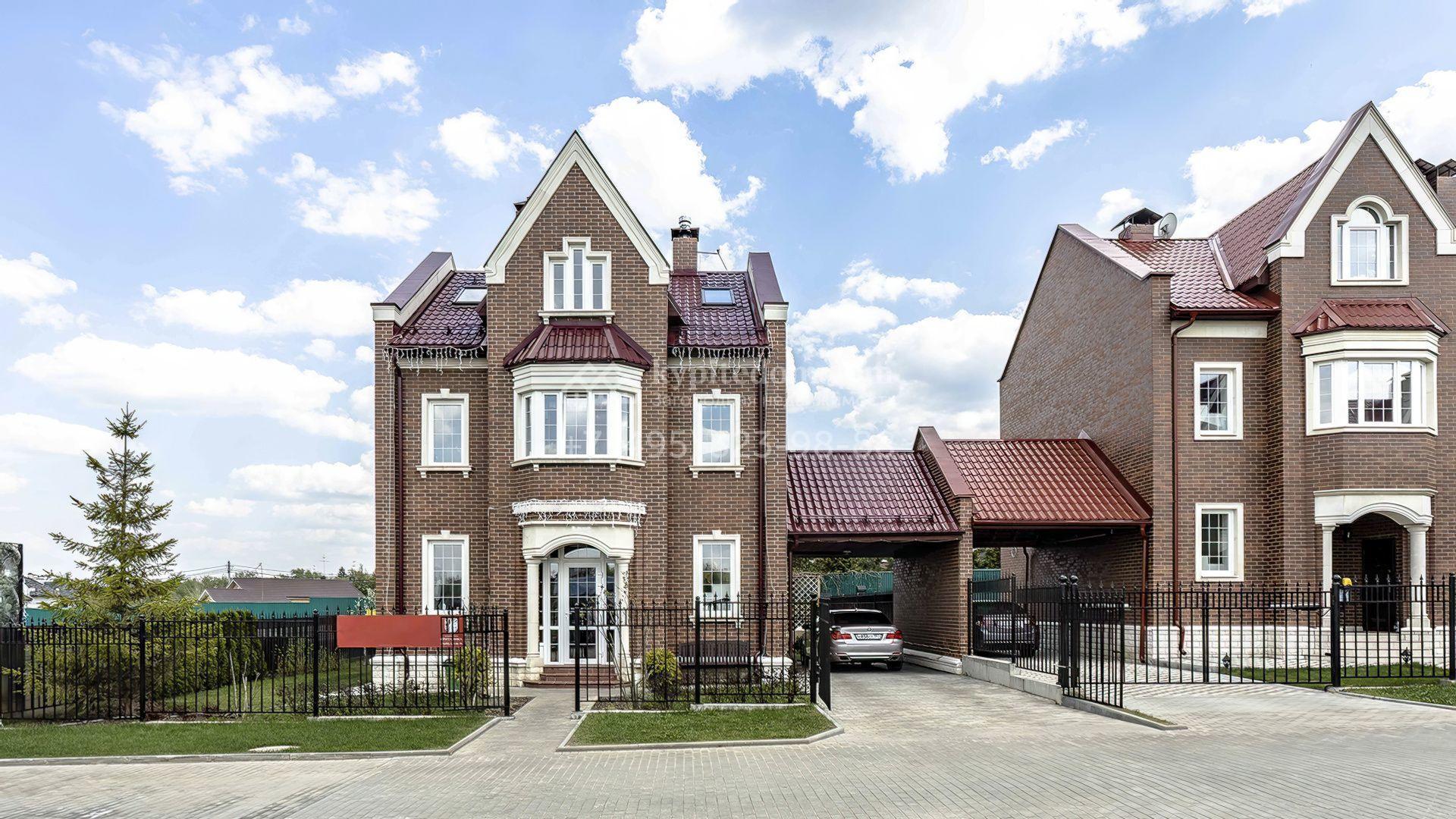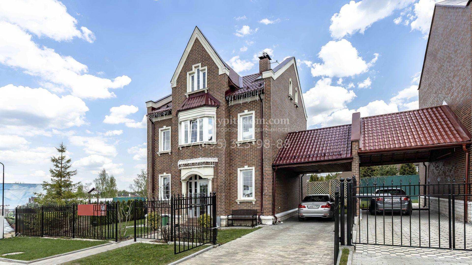 Коттедж площадью 166 м² расположен на полевом участке 4,7 соток. Здание выделяется сдержанным классическим стилем, в который органично вписаны элементы английской архитектуры. Фасад отделан клинкерной плиткой теплого кирпичного оттенка, а белые наличники, портик, эркер и фронтоны добавляют ему выразительности. Кровля из металлочерепицы насыщенного бордового цвета дополняет основной цвет стен, создавая эффект завершённости.