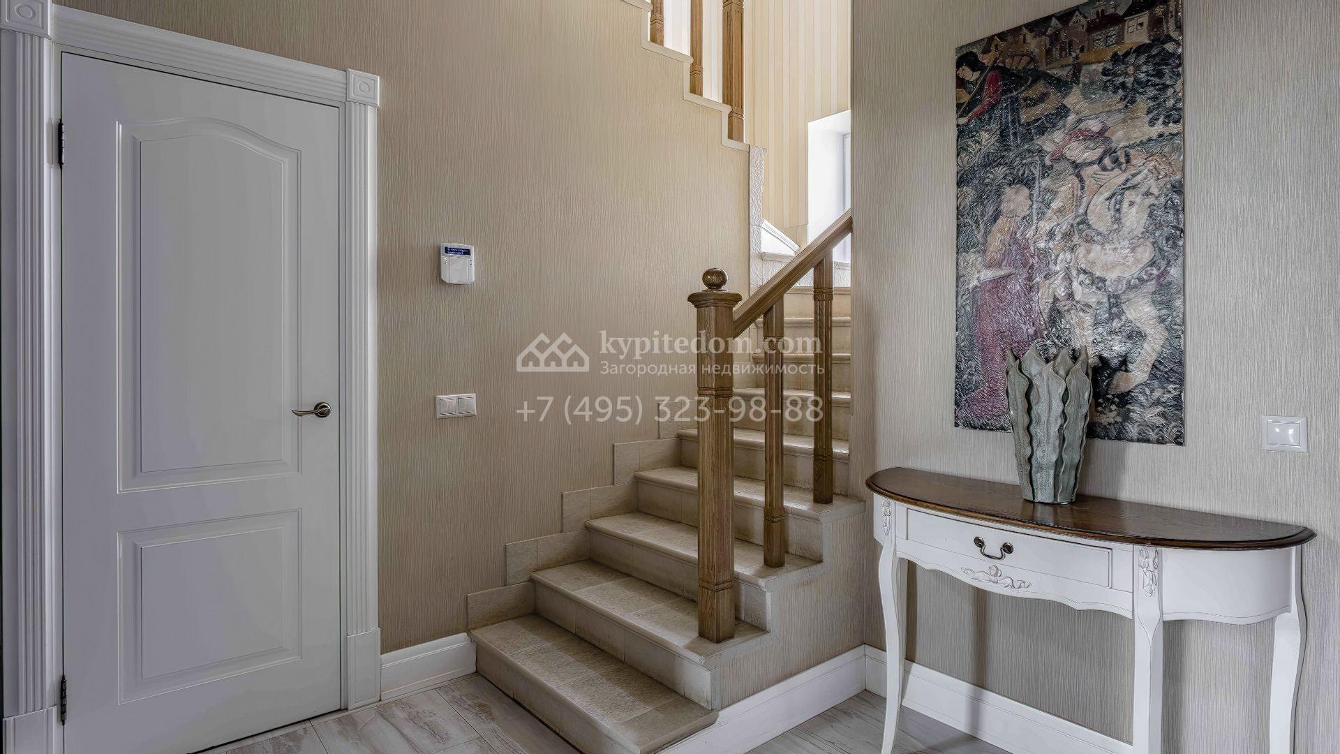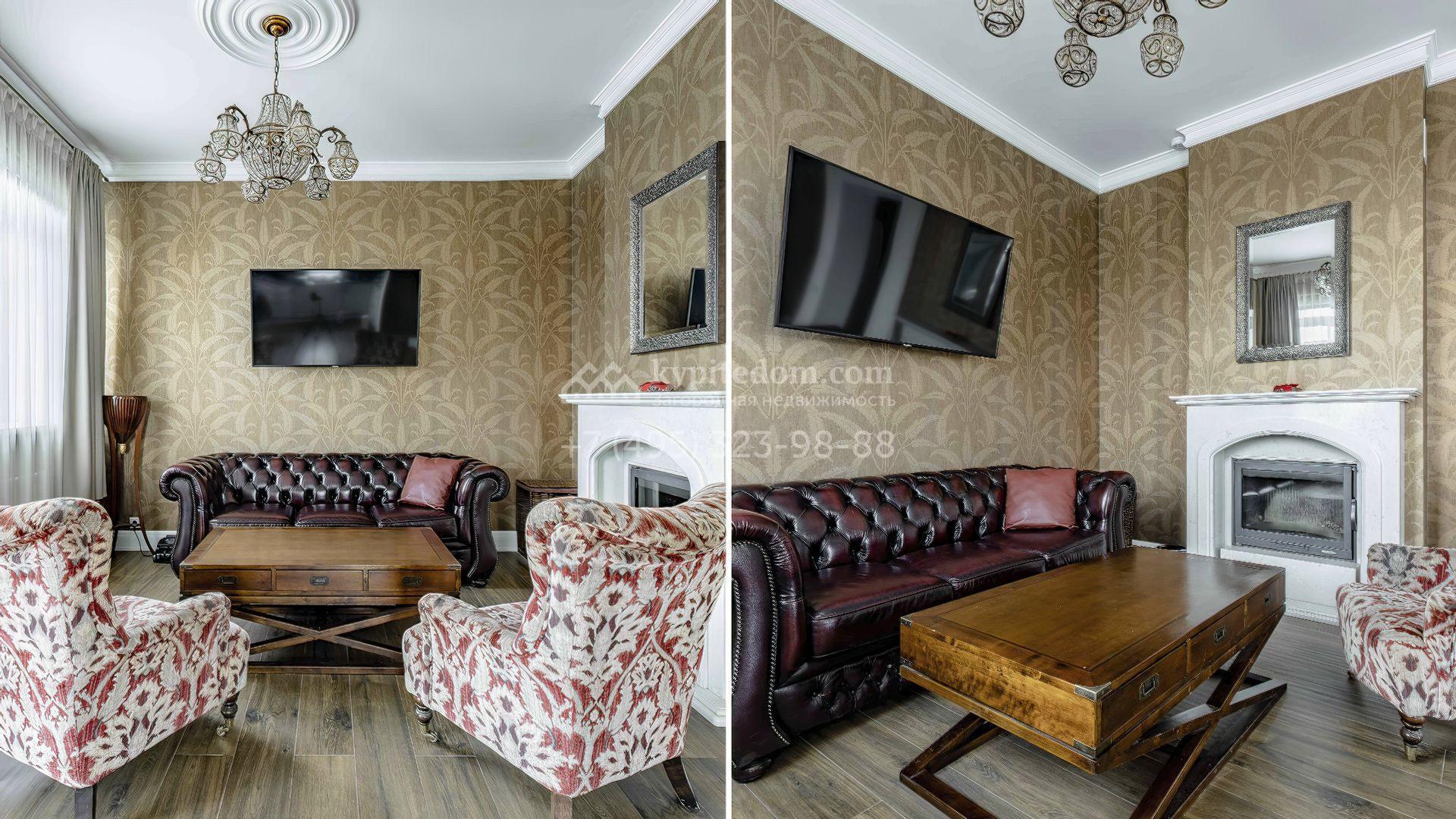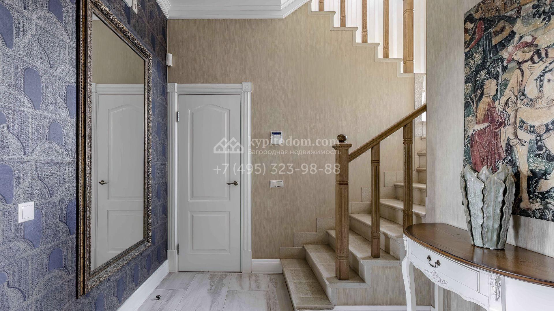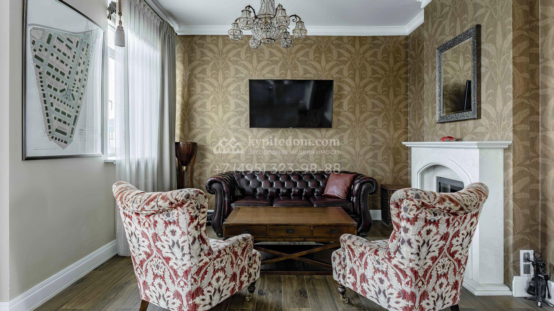 Интерьеры поддерживают общую концепцию дома, выделяя светлые оттенки, натуральные материалы и утонченные детали. Изящные обои с тонкими узорами придают помещению элегантность, а лаконичная мебель в сочетании с предметами декора и дизайнерскими люстрами подчеркивает уютную атмосферу.