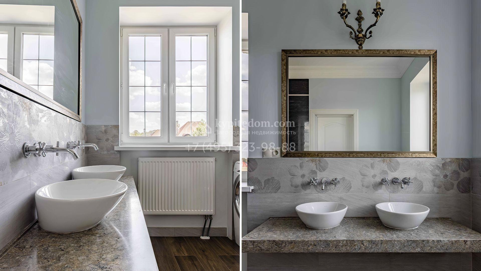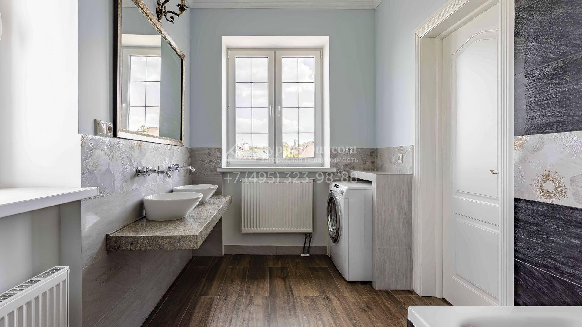 Планировка включает кухню-гостиную с дровяным камином, мастер-спальню с санузлом и гардеробной, 2 спальни и кабинет. Территория дома благоустроена и тщательно организована — установлены ворота с электроприводом, а также навес с чердачным пространством для хранения. По всему периметру засеян газон, высажены кустарники и проложены дорожки.
