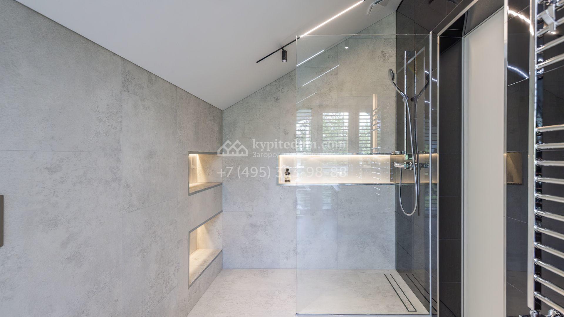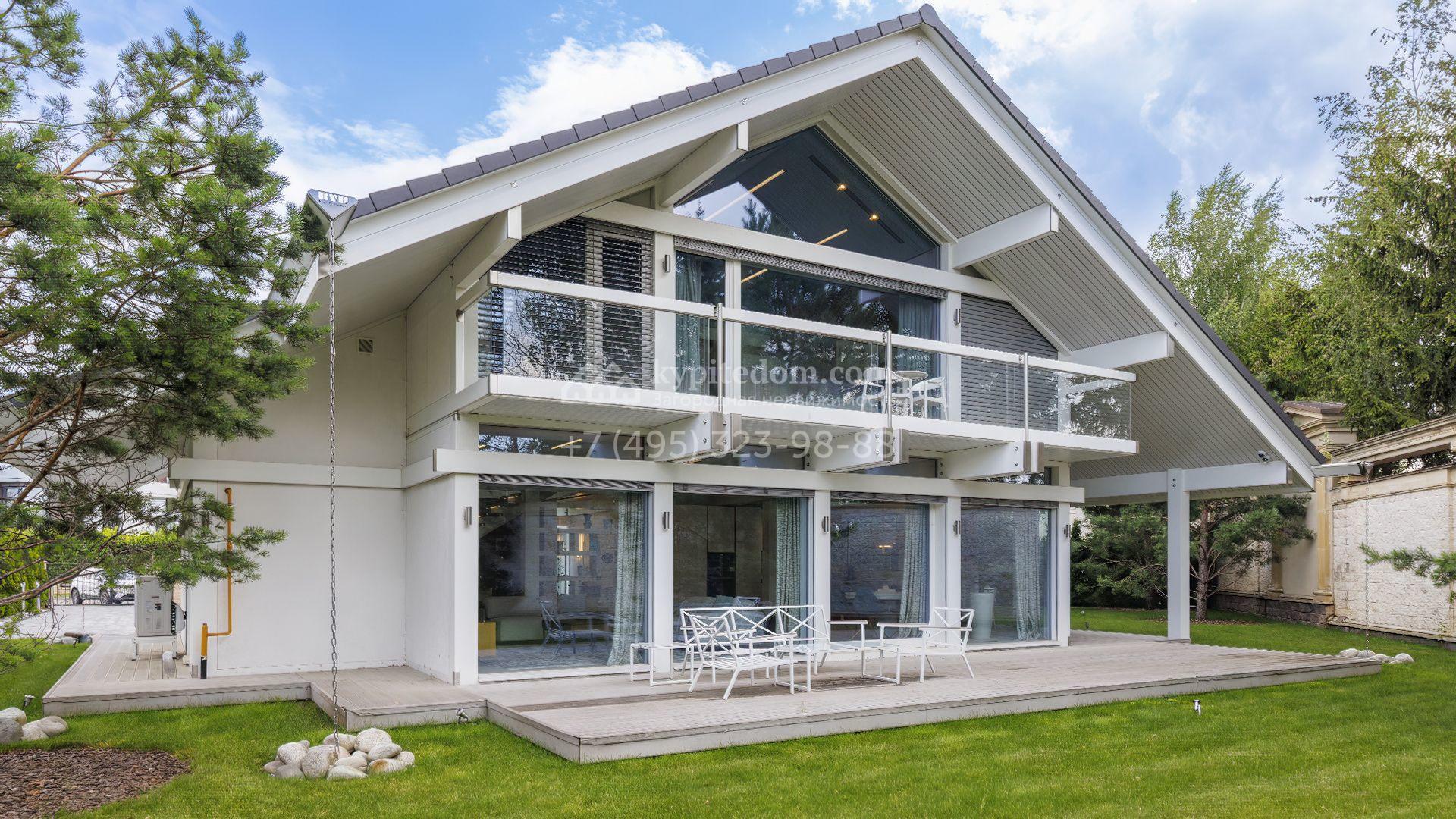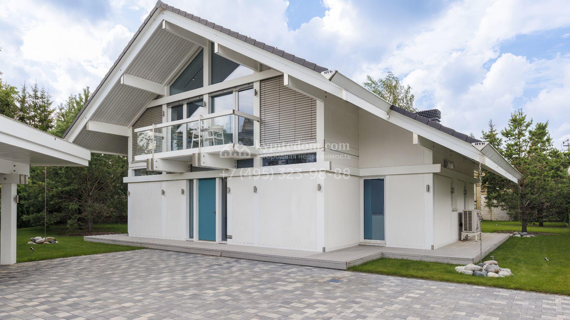 Коттедж площадью 250 м² расположен на участке 11 соток в тихой части поселка. Фасад выполнен в стиле фахверка, гармонично сочетая традиционные и современные элементы. Светлая отделка стен контрастирует с темной крышей, создавая выразительный образ, а декоративная подсветка усиливает общий эффект. Применение натуральных материалов вместе с металлическими акцентами подчеркивает минимализм и практичность. В доме предусмотрены приточная вентиляция с функцией увлажнения воздуха и система видеонаблюдения.