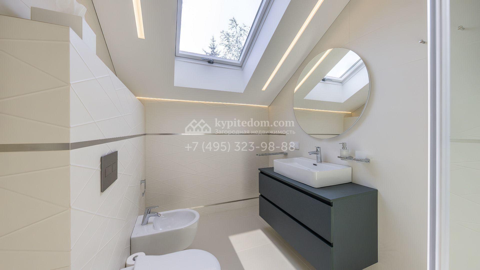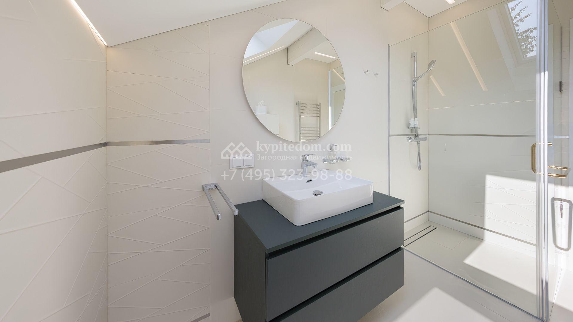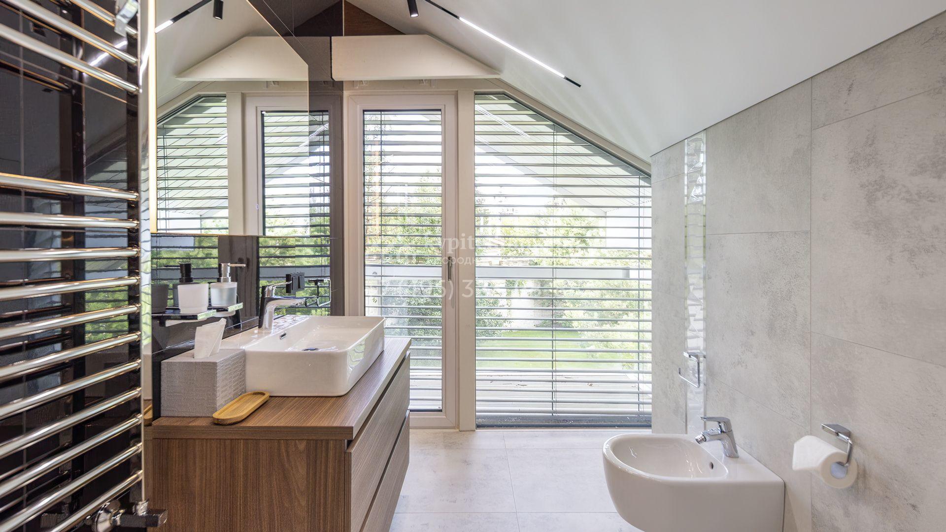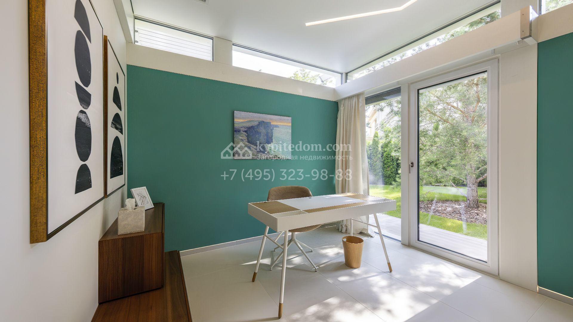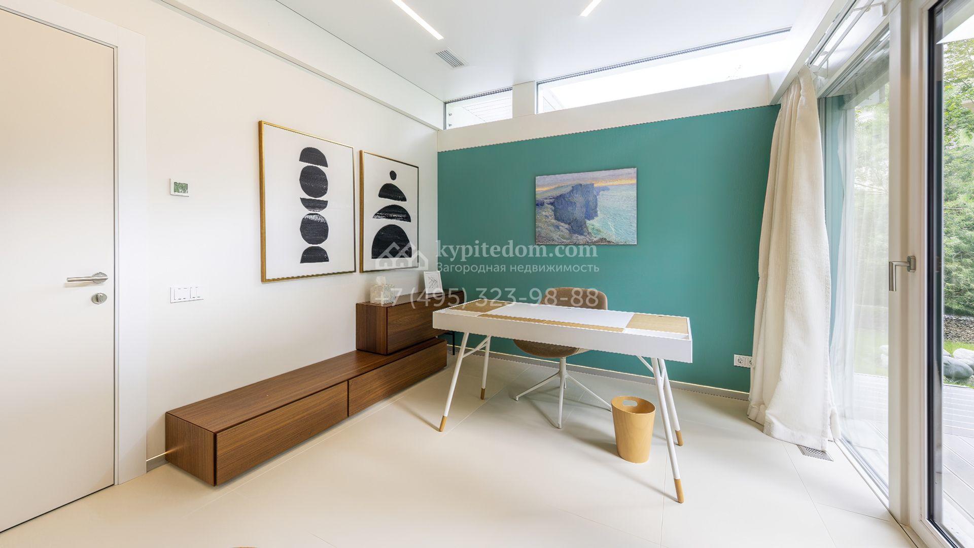 Интерьеры оформлены по эксклюзивному проекту, где в отделке преобладают нейтральные оттенки, дополненные природными текстурами. Продуманное освещение и панорамные окна наполняют комнаты светом и визуально расширяют пространство. Коттедж полностью меблирован и оснащен техникой от Samsung и Asko. В котельной установлен резервный генератор мощностью 21 кВт от итальянского производителя.