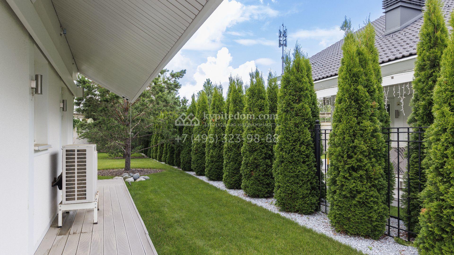 Планировка включает кухню-гостиную с обеденной зоной и выходом на террасу, 3 спальни и кабинет, который можно использовать как гостевую. На ухоженной территории высажены туи и взрослые хвойные деревья, а также организован автополив. Дополнительно возведены гараж на 1 машиноместо и навес для 2-х автомобилей.