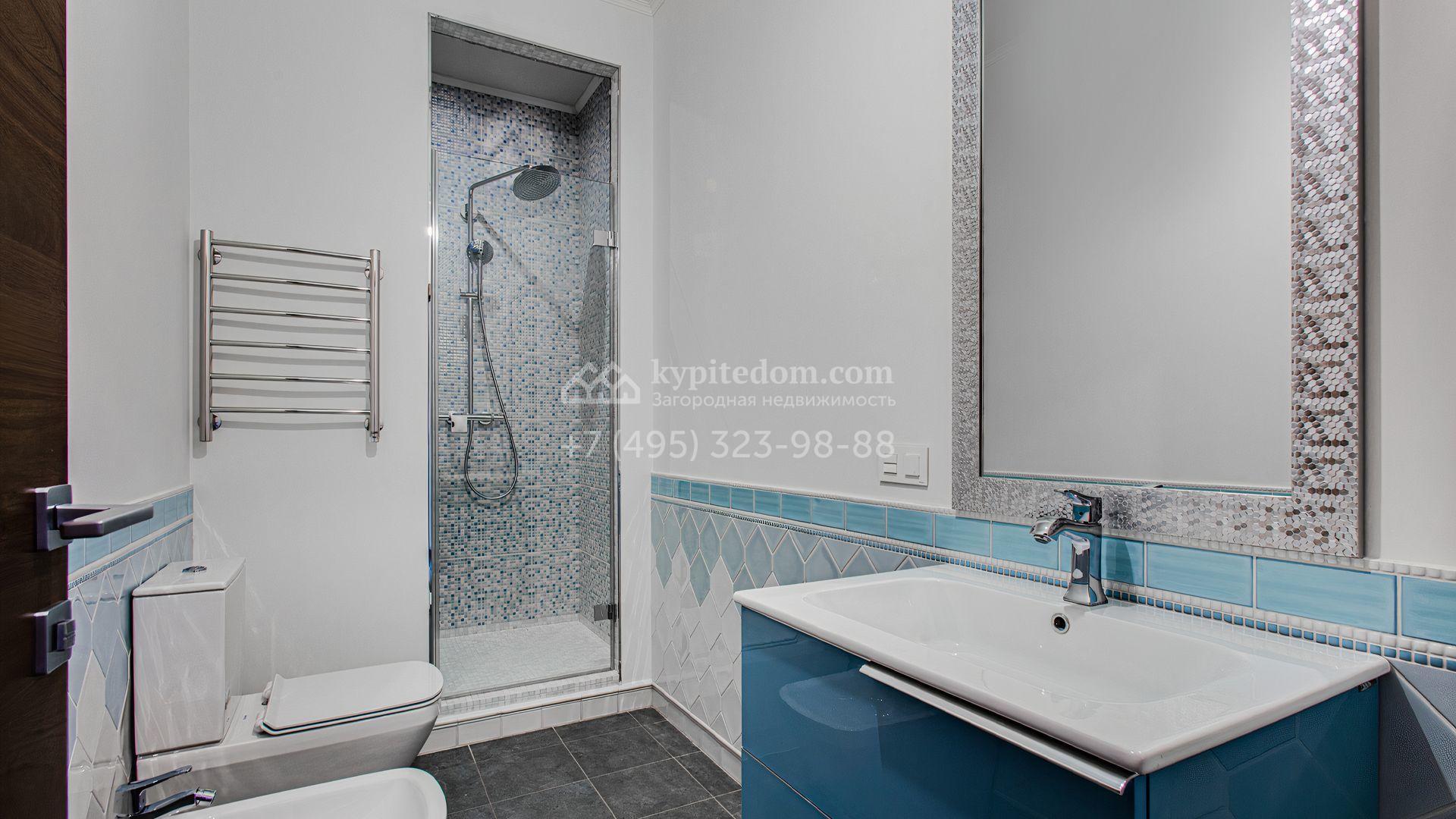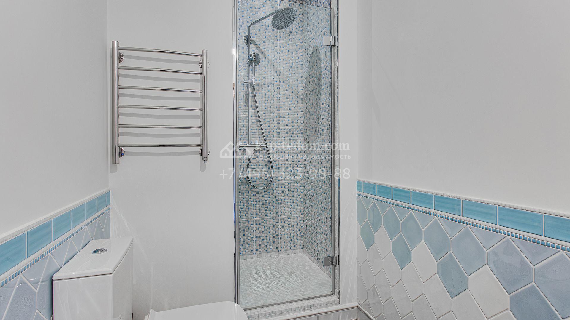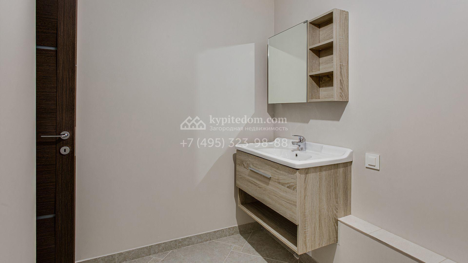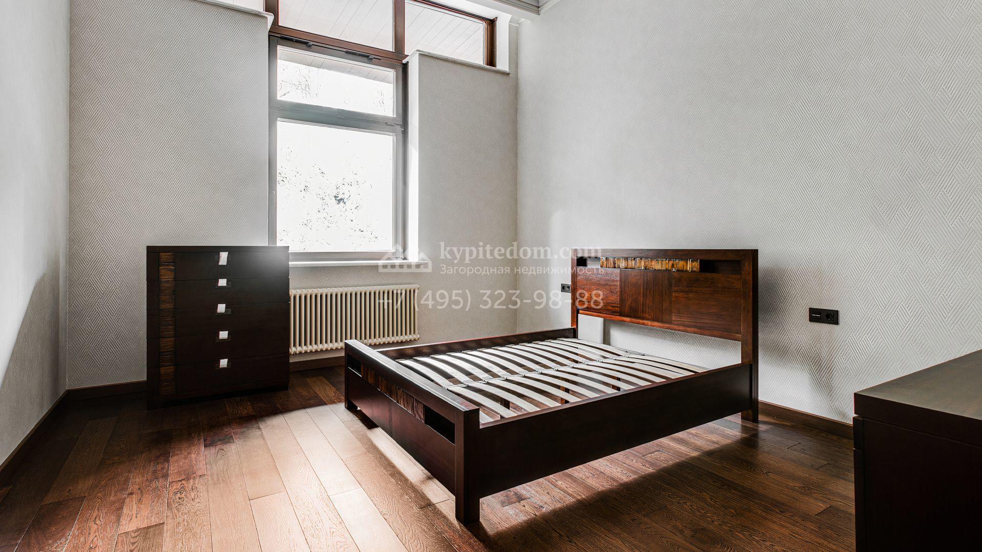 Трехуровневый таунхаус площадью 360 м² построен на полевом участке 3 сотки с газоном. Фасад с большими окнами в современном стиле облицован красным клинкерным кирпичом и бежевой штукатуркой. Лаконичный интерьер сочетает молочные оттенки и фактуру темного дерева. В доме разместили 3 спальни, гостиную-столовую с выходом на патио, кухню, кабинет и SPA-зону с сауной и комнатой отдыха. Предусмотрен блок для персонала с 2-мя спальнями и кухней. С участка открывается вид на высаженные деревья и кустарники.