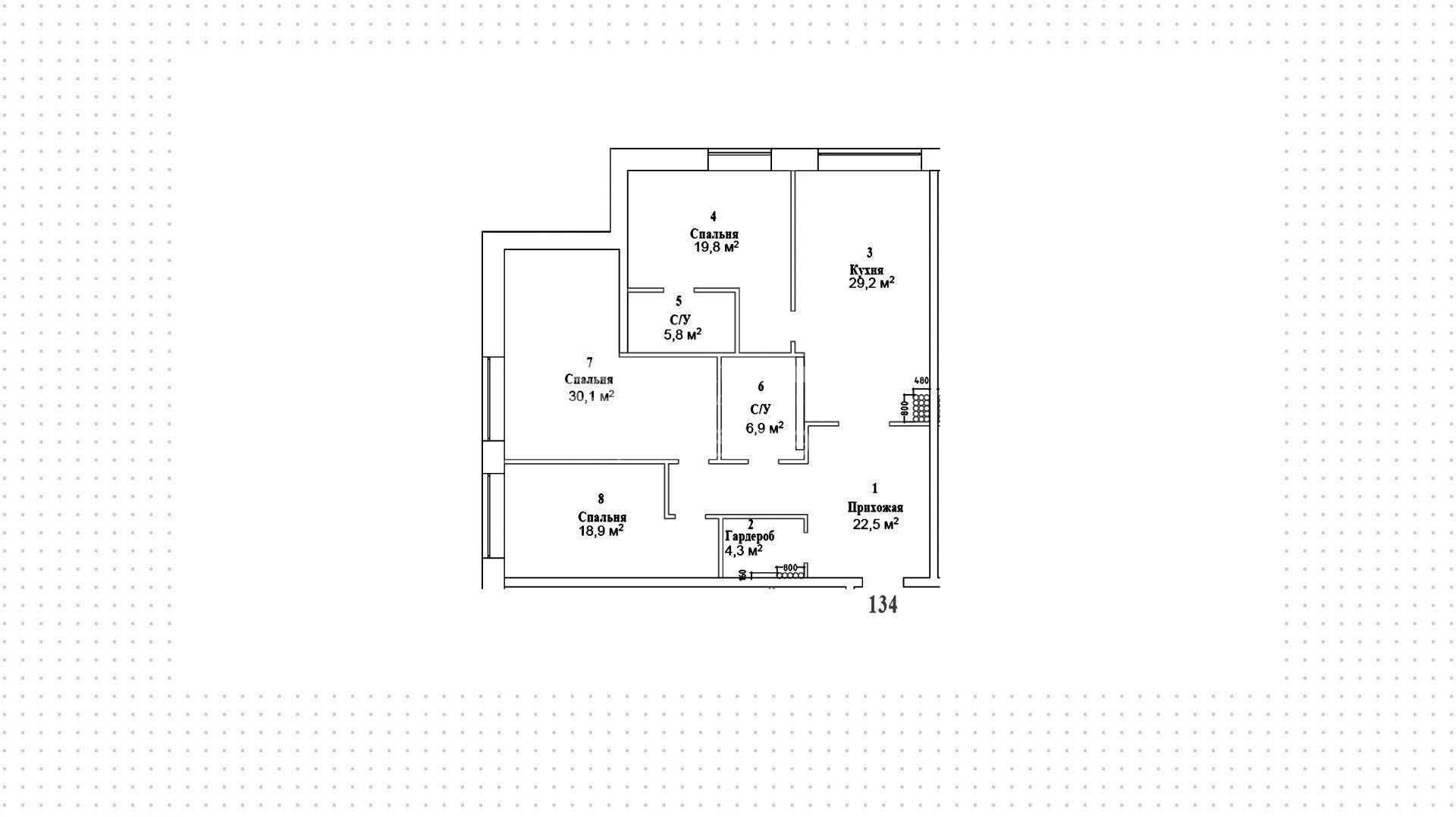 Трехкомнатная угловая квартира на шестом этаже с видом на парк. Общая площадь квартиры без отделки — 137 м². Предусмотрена просторная прихожая с гардеробной и санузлом, 2 спальни, большая угловая кухня и спальня с отдельной ванной комнатой.