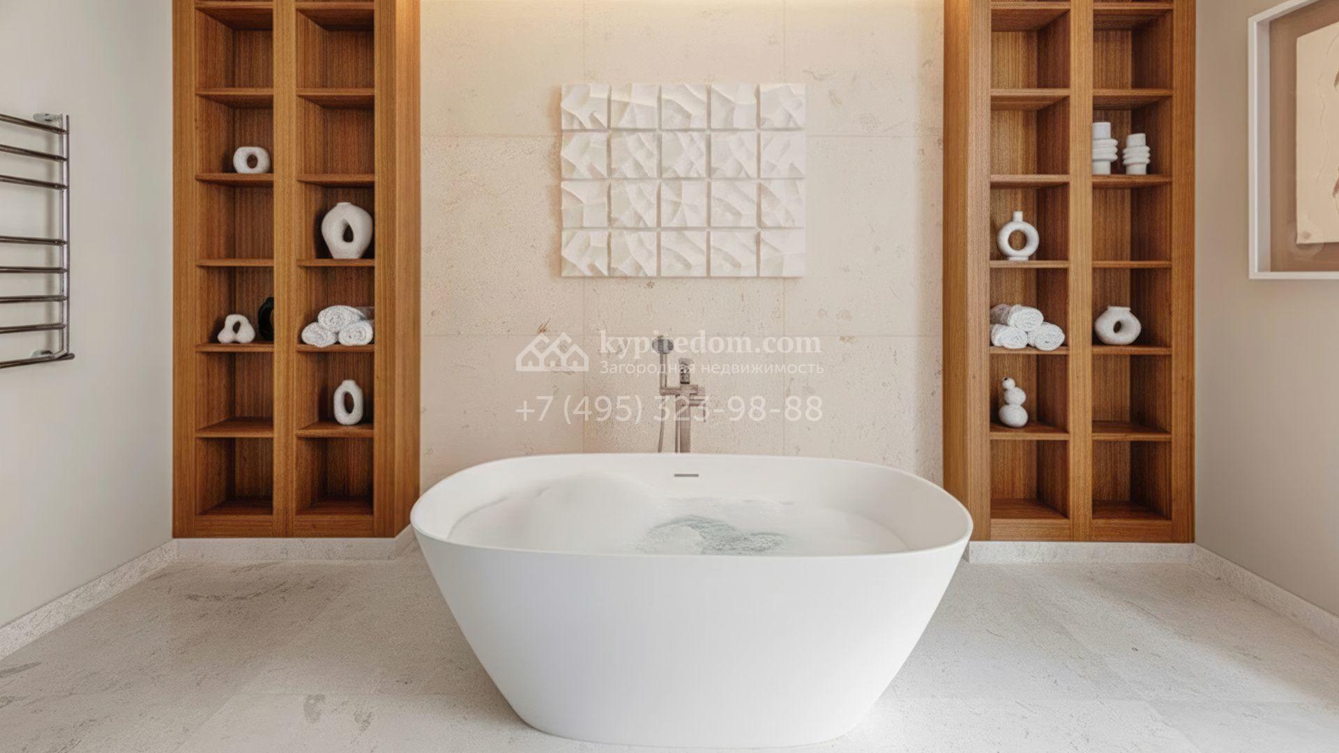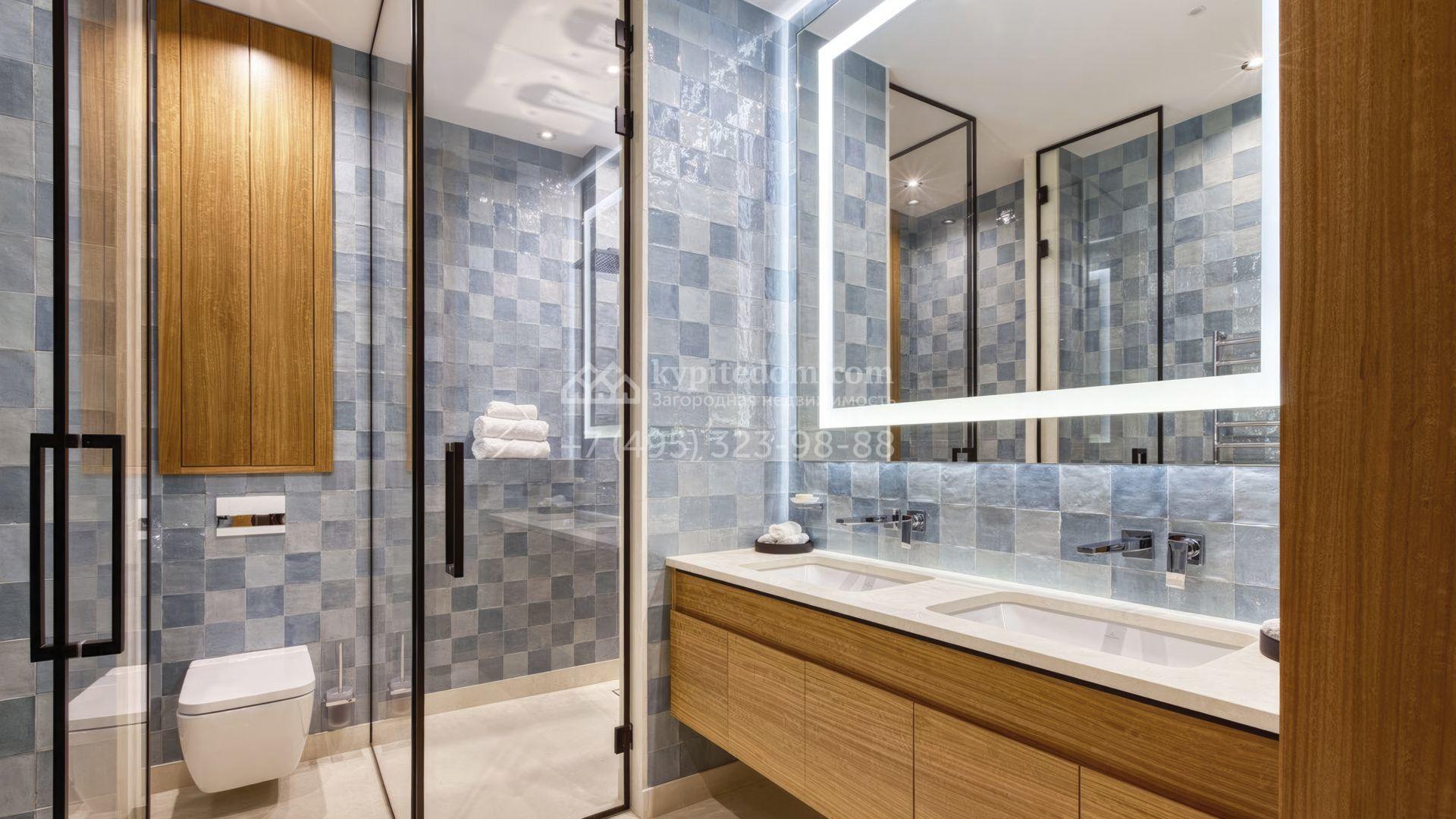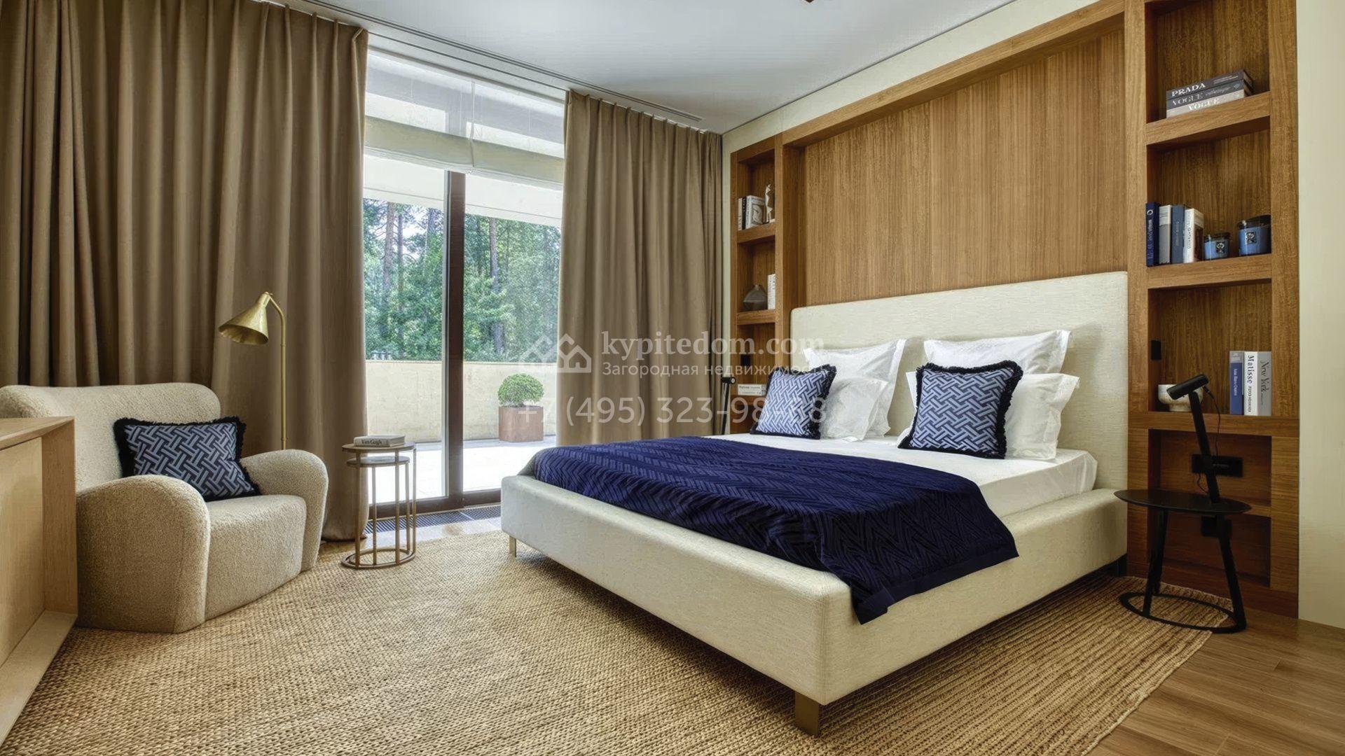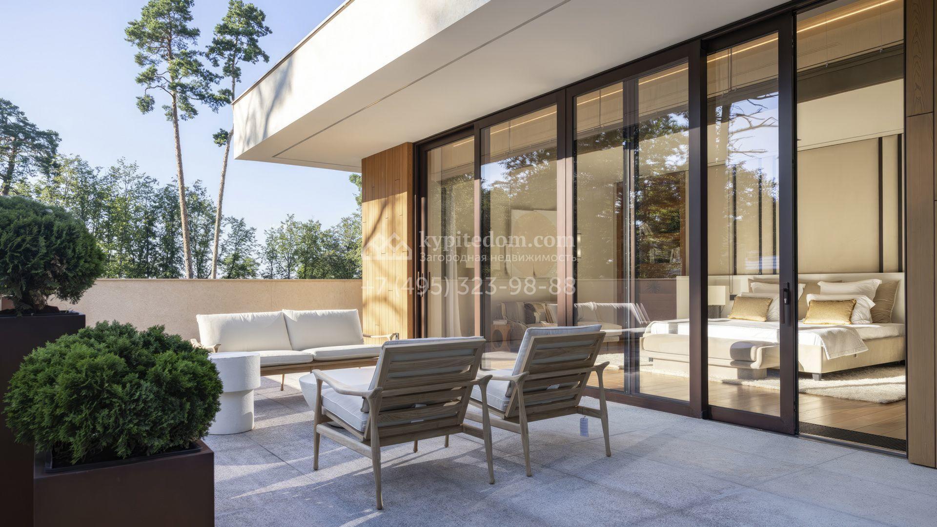 На втором и третьем — 5 спален, включая мастер-спальню с двумя гардеробными и выходом на террасу. Цокольный этаж превращён в роскошную спа-зону с сауной, хаммамом и переливным бассейном длиной 11 метров. Дополняют инфраструктуру четырёхместный гараж и квартира для персонала. Благоустроенная территория с аккуратным газоном, кустарниками, мощёными дорожками и мягким освещением создаёт завершённый образ идеального пространства для жизни.