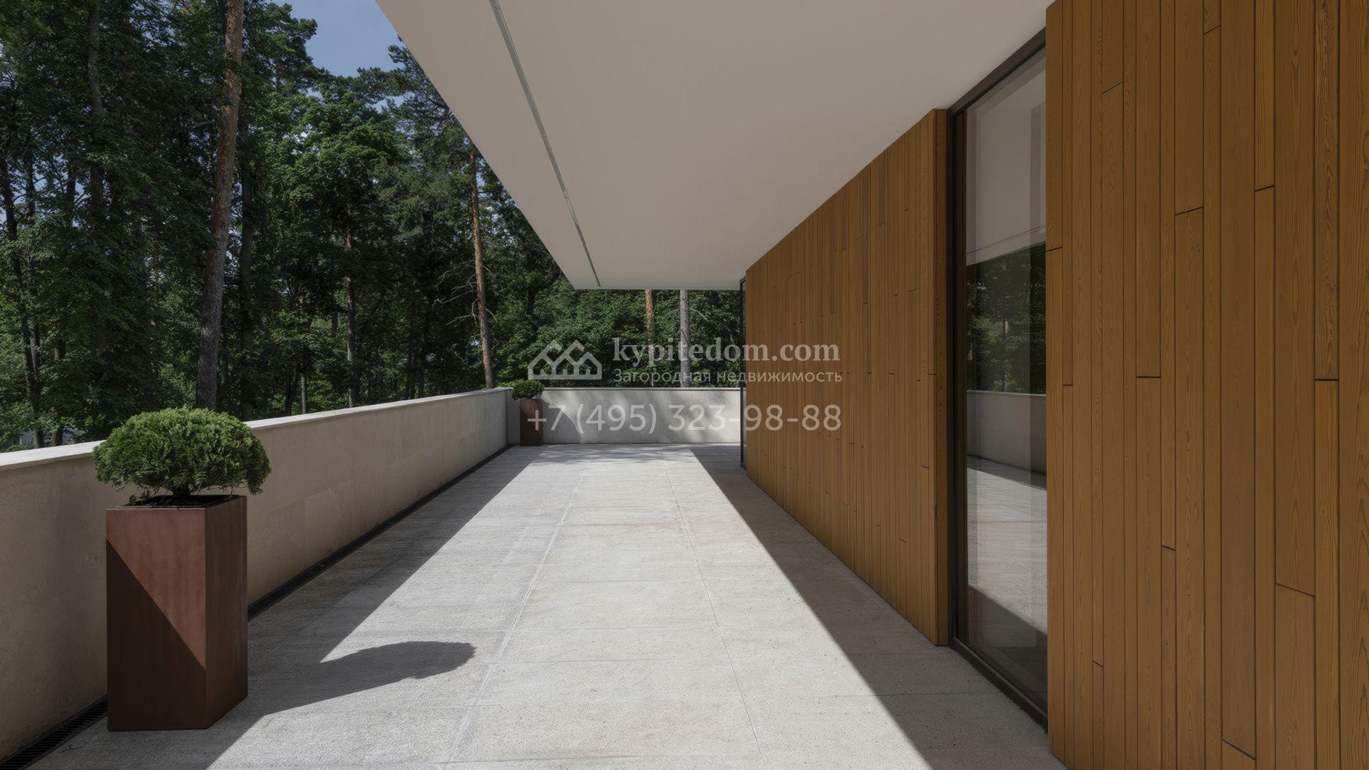 Загородная резиденция площадью 1495 м² расположена на участке 15 соток в окружении вековых сосен. Архитектурный облик, разработанный португальским бюро «Спейсворкерс» (Spaceworkers), впечатляет чистотой линий и гармоничным сочетанием фактур камня и дерева. Панорамное остекление стирает границы между живописным пейзажем и внутренним пространством, залитым солнечным светом.