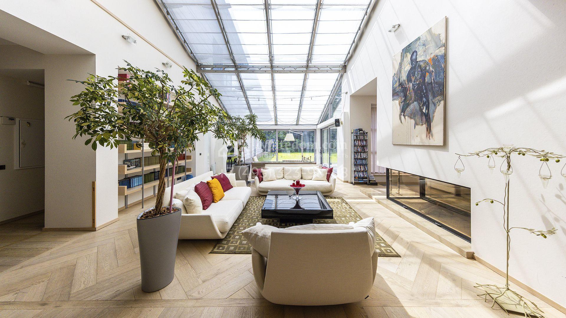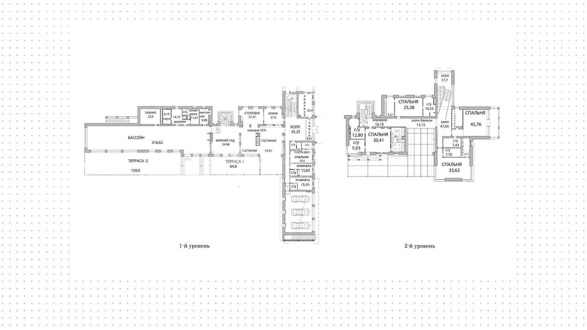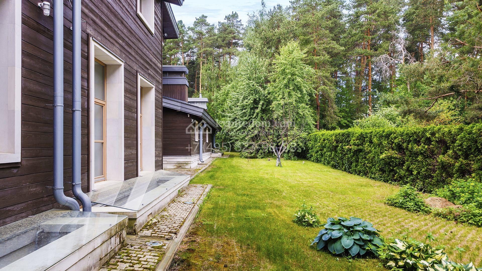 В проекте предусмотрены 5 спален, 2 кабинета, игровая зона, тренажерный зал, комната для массажа, домашний кинотеатр и полноценный SPA-комплекс с бассейном, хаммамом, сауной и джакузи. Для персонала спроектированы отдельные комнаты и рабочая кухня. Участок у самой кромки леса выделяется уникальным ландшафтным дизайном. Окружающий его газон аккуратно подсвечивается уличными фонарями. Перед домом раскинулась обширная зона патио с удобной садовой мебелью, что создает идеальное место для отдыха на свежем воздухе.