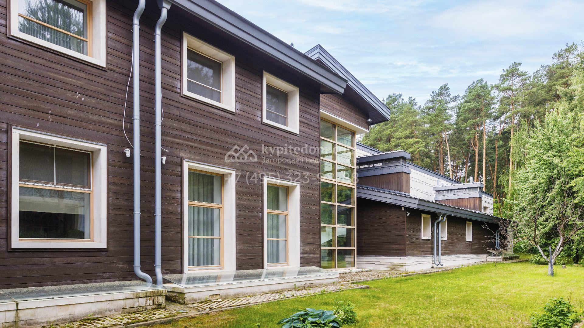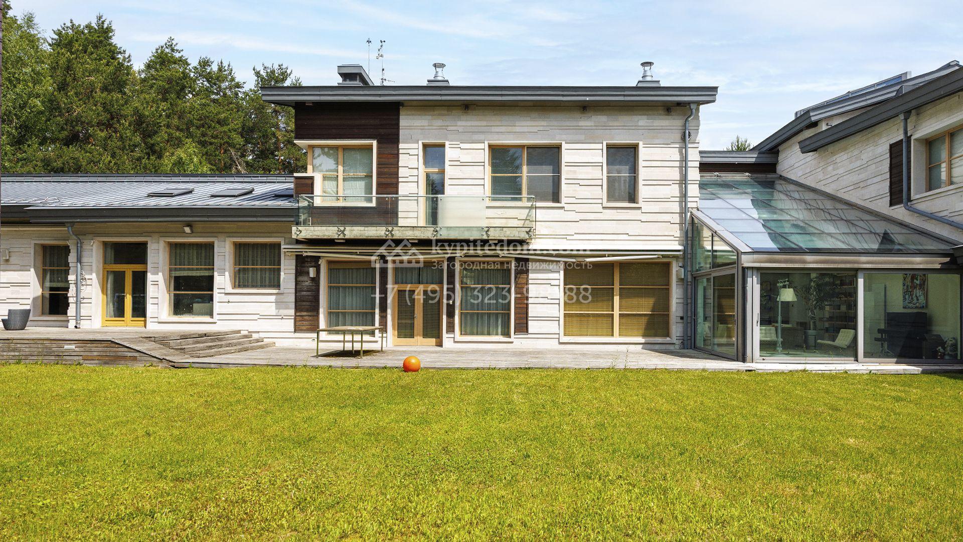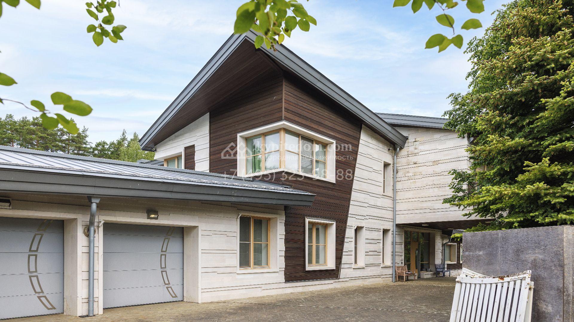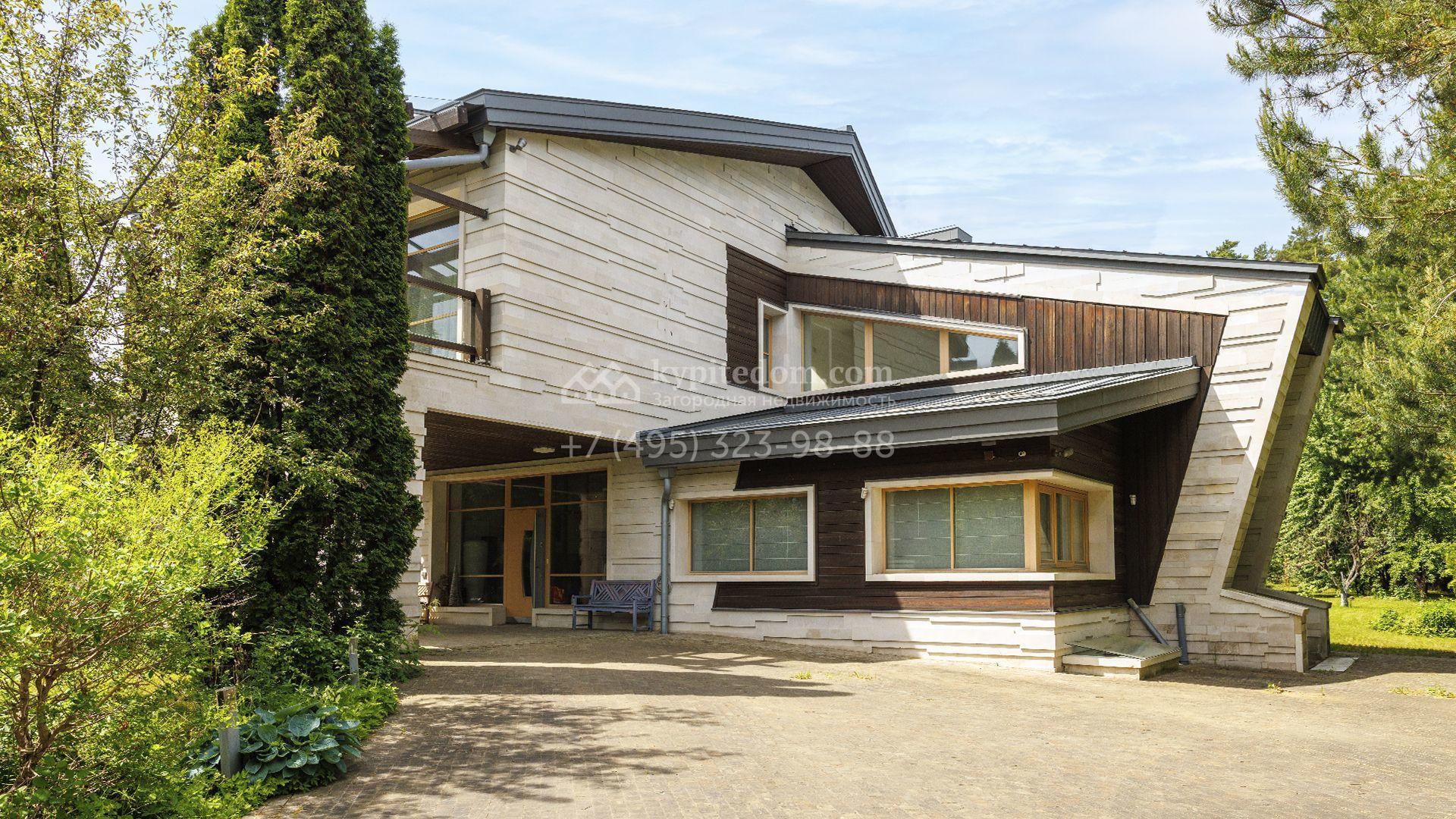 Двухэтажная резиденция площадью 1636 м² расположена на участке площадью 60 соток. Фасад здания выделяется контрастной фактурой — светлый камень и темная древесина сдержанно сочетают скандинавский стиль с современностью. Интерьеры оформлены в стиле минимализм, где живопись и скульптуры становятся ключевыми элементами декора. Из просторной гостиной-библиотеки с двойным светом открывается живописный вид на окружающий лес.